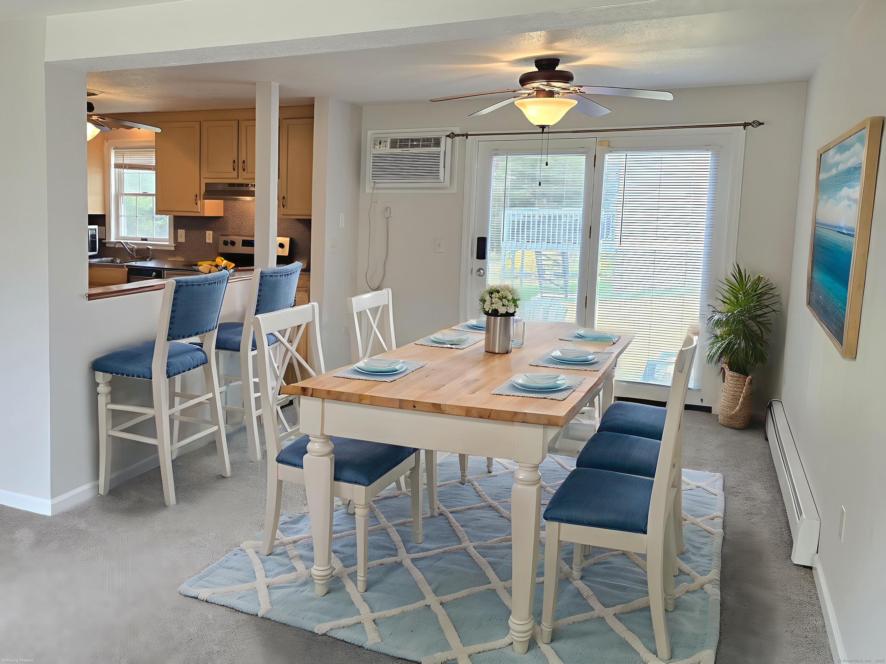 This charming and well-maintained PUD offers an inviting open-concept layout perfect for today's lifestyle. The sun-filled eat-in kitchen features stainless steel appliances, plank flooring, a ceiling fan, and a window overlooking peaceful wooded privacy. The kitchen flows seamlessly into the dining area with sliders leading to your own private outdoor space, and it opens to the spacious living room with oversized front windows that fill the home with natural light. Upstairs, both bedrooms are generously sized with double closets and their own wall A/C units for comfort. Additional highlights include a natural gas furnace, hot water heater, wall A/C in the dining/living areas, and abundant storage in the garage. Nestled in a quiet setting with town-owned open space nearby, this home combines convenience, comfort, and a touch of nature. Don't miss the opportunity to make this desirable Lydall Woods Colonial Village home your own!