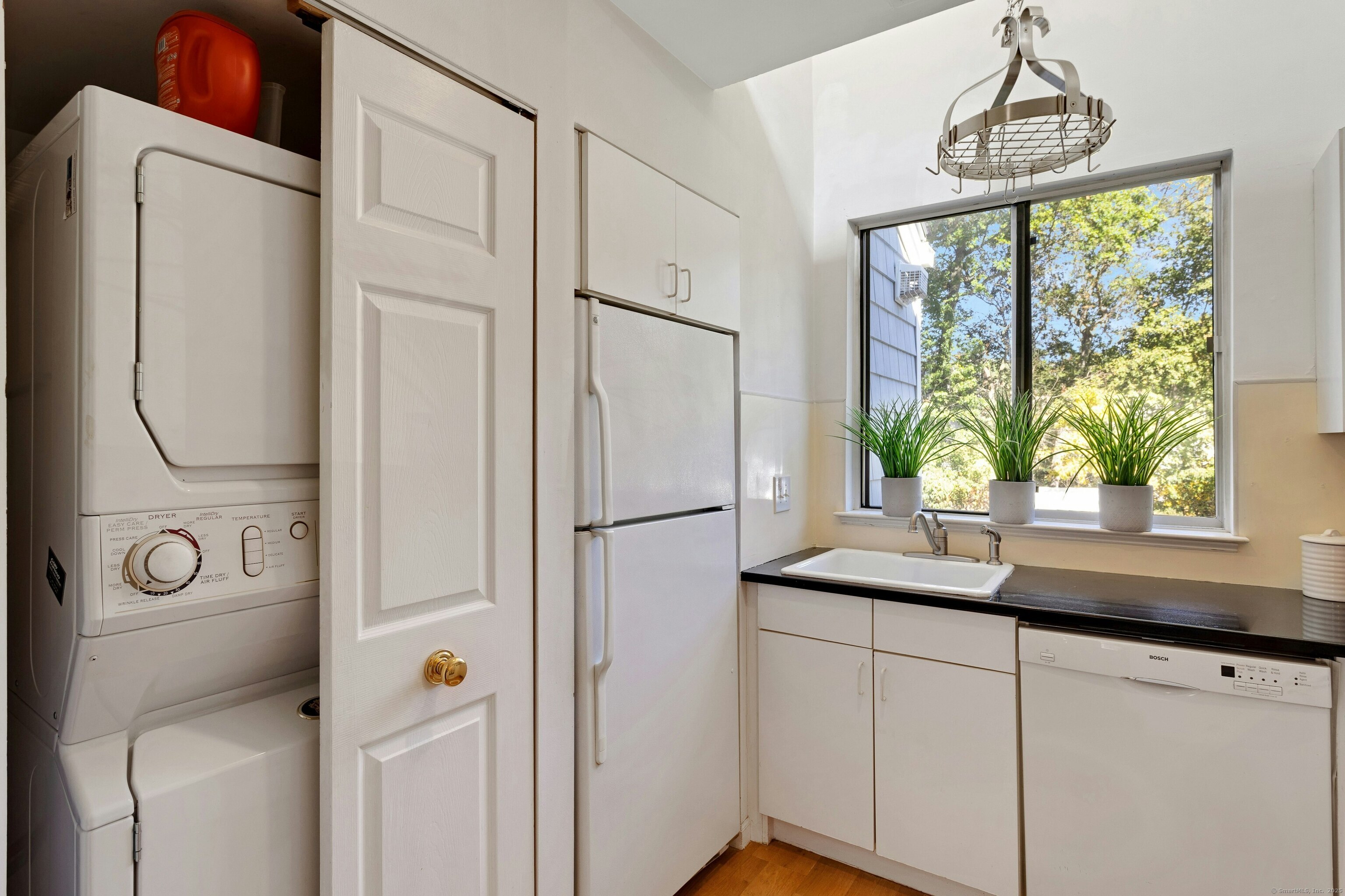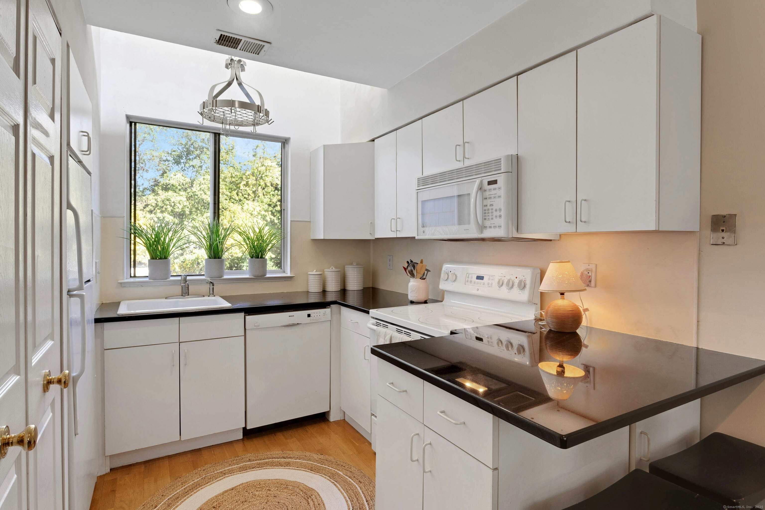 If you'd like to put a smile on your face every time you walk though your front door this may be the condo for you. Located in sought after Rowayton Woods, this two bedroom top floor unit with vaulted ceilings and tons of natural light make it hard not to be happy when you're home. There are two generous lofts for extra storage and living space - one with hardwood floors, large windows and enough square footage to accommodate anyone who wants a home office. An oversize deck off the living room provides additional space for entertaining or just relaxing while pretending you're in a tree house. Location Location - close to Darien and Rowayton shopping and restaurants, as well as easy access to I95 and the Merritt Parkway. In addition, you can walk to train where you are only 55 minutes away from all Manhattan has to offer, Come by and see if this cozy and welcoming condo could be your next home.