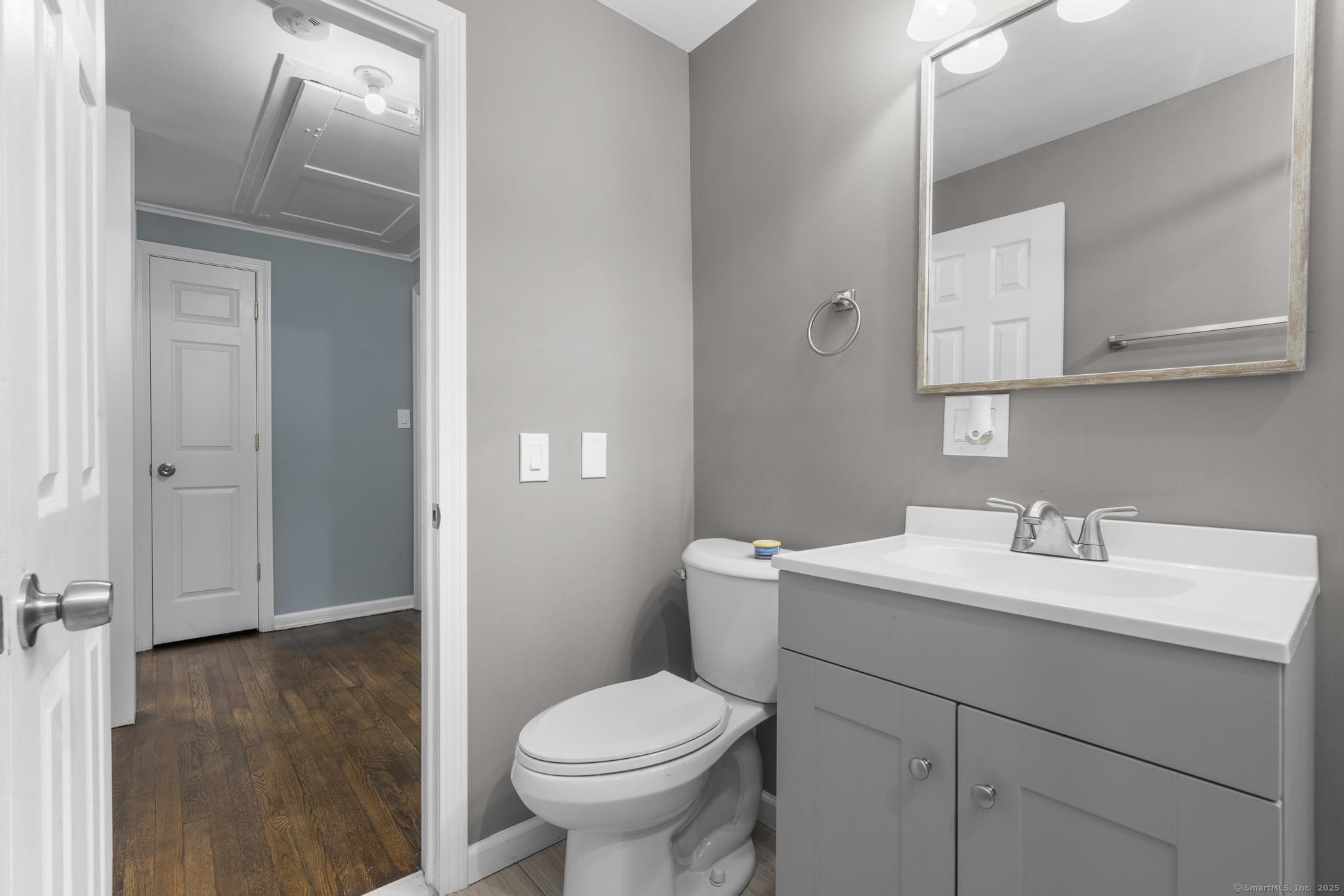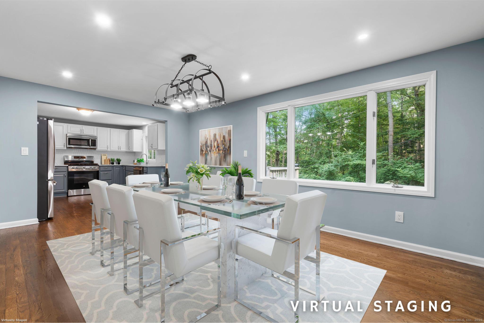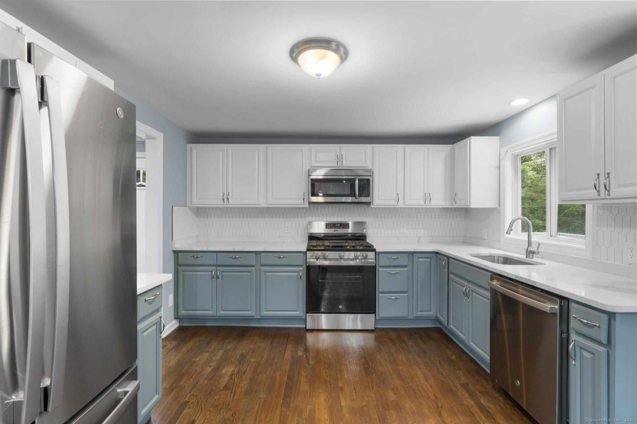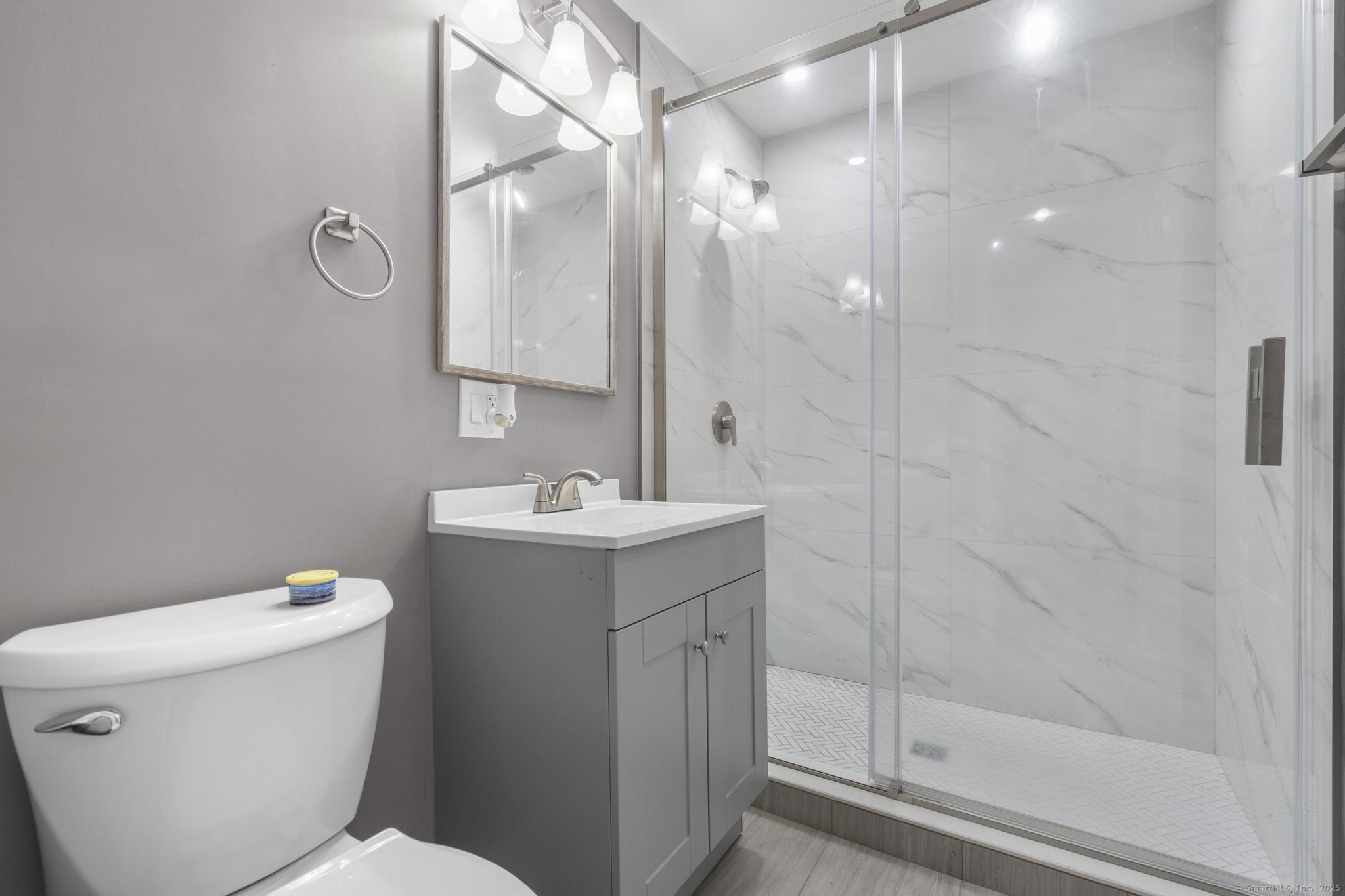 Tucked away in Guilford's sought-after Westwoods neighborhood, this fully renovated 3-bedroom, 2-bath ranch combines modern updates with rare natural privacy. Set on a wooded lot with no visible neighbors, the home features a stunning kitchen with two-tone shaker cabinets, quartz countertops, and stainless steel appliances, a spacious living room with a wood-burning fireplace, refinished hardwood floors, and recessed lighting, along with two completely remodeled bathrooms showcasing floor-to-ceiling tile showers and custom vanities. The primary suite offers backyard views and an en-suite bath, while the walk-out lower level provides a dedicated laundry area and flexible space ideal for a home gym, office, or playroom. Outside, enjoy a newer deck overlooking the secluded lot, fresh landscaping, an expanded driveway with one-car garage, and quick access to the Westwoods Trails for hiking and biking. With its blend of privacy, style, and proximity to the Guilford Green, beaches, train, and I-95, this turn-key home offers the best of both retreat living and everyday convenience.