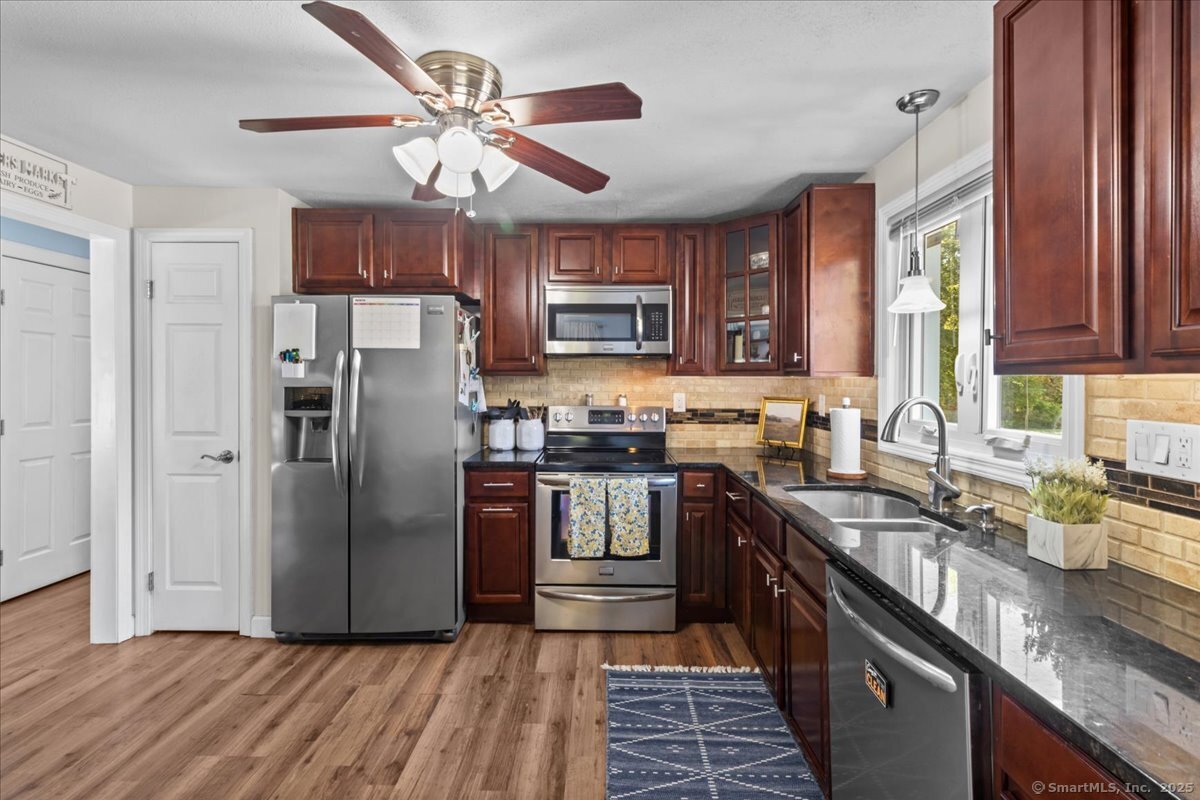 Welcome to your dream home! Nestled in a quiet neighborhood in Somers, this beautifully renovated raised ranch has nothing left for its next homeowners to do but move in. This home offers 4 good sized bedrooms, an enlarged, fully renovated master bathroom, updated kitchen, new septic tank (2023), newer roof (2016), and Central air. The main level offers a bright, open-concept living and dining area perfect for entertaining or quiet nights at home with loved ones. The updated kitchen has stainless steel appliances and granite countertops. The lower level has a 4th bedroom and bonus room that could be used for a variety of different functions such as a den, play room, office space or gym. The basement is dry and has a useful laundry/mechanical room with storage. There's also ample storage in the attic which can be easily accessed by the pulldown stairs in the hall. The spacious deck overlooks a level, fenced-in backyard, perfect for pets, play, and gatherings. This home offers small-town charm with easy access to major routes and all the major shopping Enfield has to offer just 10 minutes away. Springfield, MA is a quick 20 minute drive north on 91, and Hartford, CT is less than 30 minutes south. Don't miss this rare opportunity-schedule your private showing today!