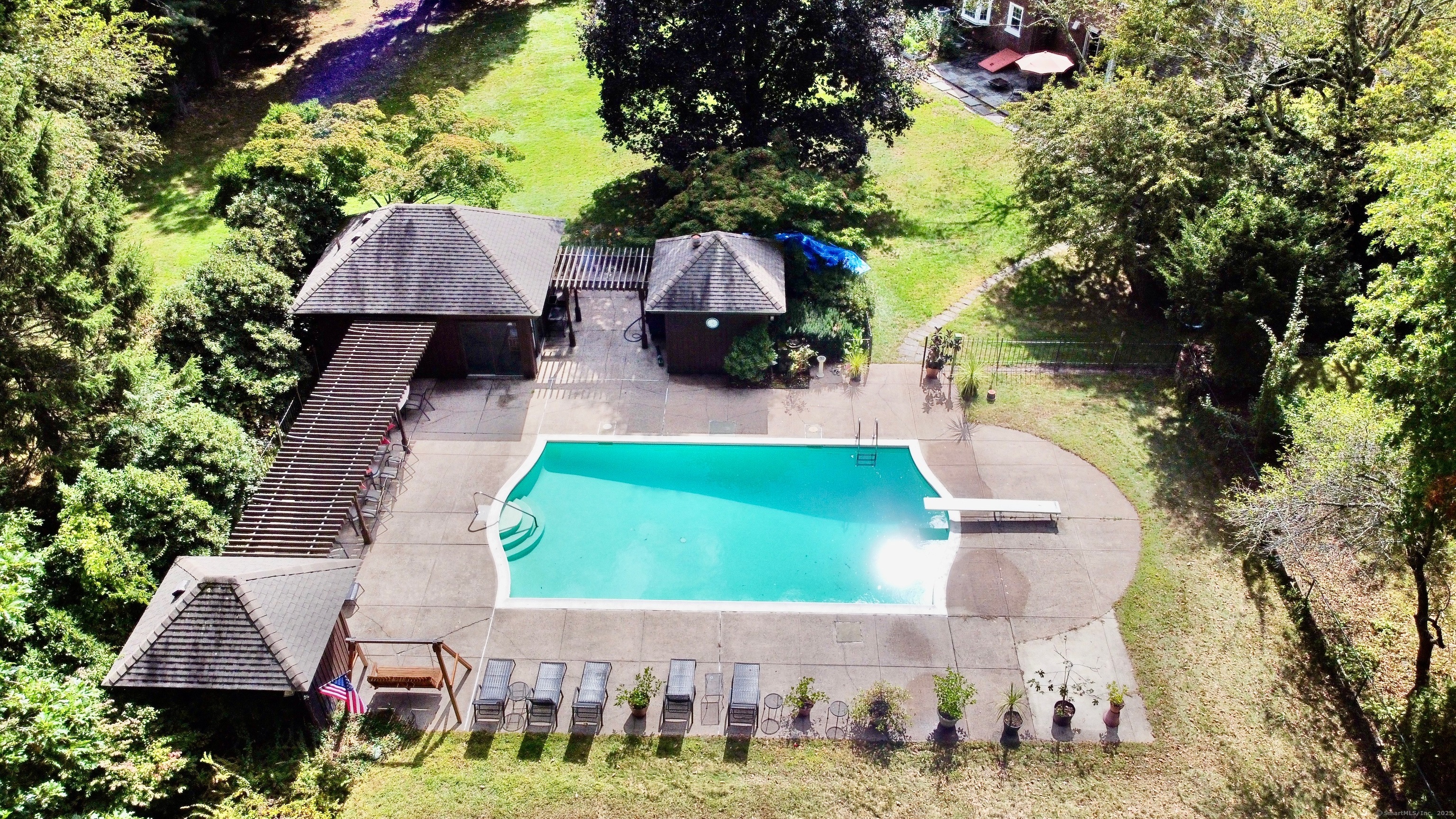 Rare opportunity & entertainer's private dream! Welcome to a timeless estate in 1 of Greater Waterbury's sought-after neighborhoods, backing onto the The Country Club of Waterbury. This 5-bed, 3.5-bath historic colonial spans 3,440 sqft. & blends character w/ modern comfort, 2 fireplaces & 2 primary suites. Set on over 4 ACRES of secluded, park-like grounds, surrounded by trees, stone walls, rolling lawns.. a sense of retreat! Property offers an in-ground pool, tennis court, pool house, expansive stone patios, & a covered slate terrace, perfect for gatherings or quiet moments alike. Inside, classic brick charm opens to a gracious foyer with hrdwd flrs, arched doorways, & custom millwork. The chef's kitchen offers bespoke cabinetry, granite breakfast bar, stainless GE Monogram appliances, gas oven, flowing seamlessly into the dining area w/ terrace access. For entertaining, enjoy the classic library/office w/ custom built-ins & fireplace, or the spacious living room w/ 2nd fireplace opening to a sun-3-season glass veranda. Upstairs, 2 primary suites: 1 w/ a remodeled bath w/ a wk-in shower, the other has its own private powder room. Bedrms offer space & gleaming hrdwd flrs. Central air & natural gas heat. Setting is Private/ serene, estate surrounded by oaks/evergreens, gardens & seclusion. Enjoy a pool w/ a patio & kitchenette, pool house, great yard & tennis courts for endless recreation. History of hosting distinguished guests, a landmark home ready for its next chapter!