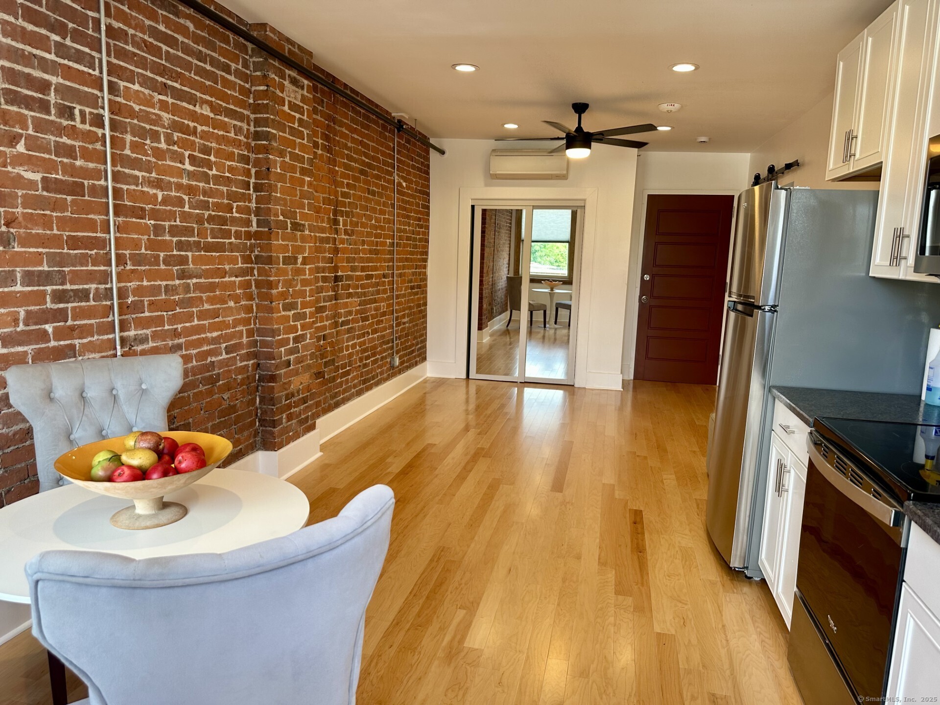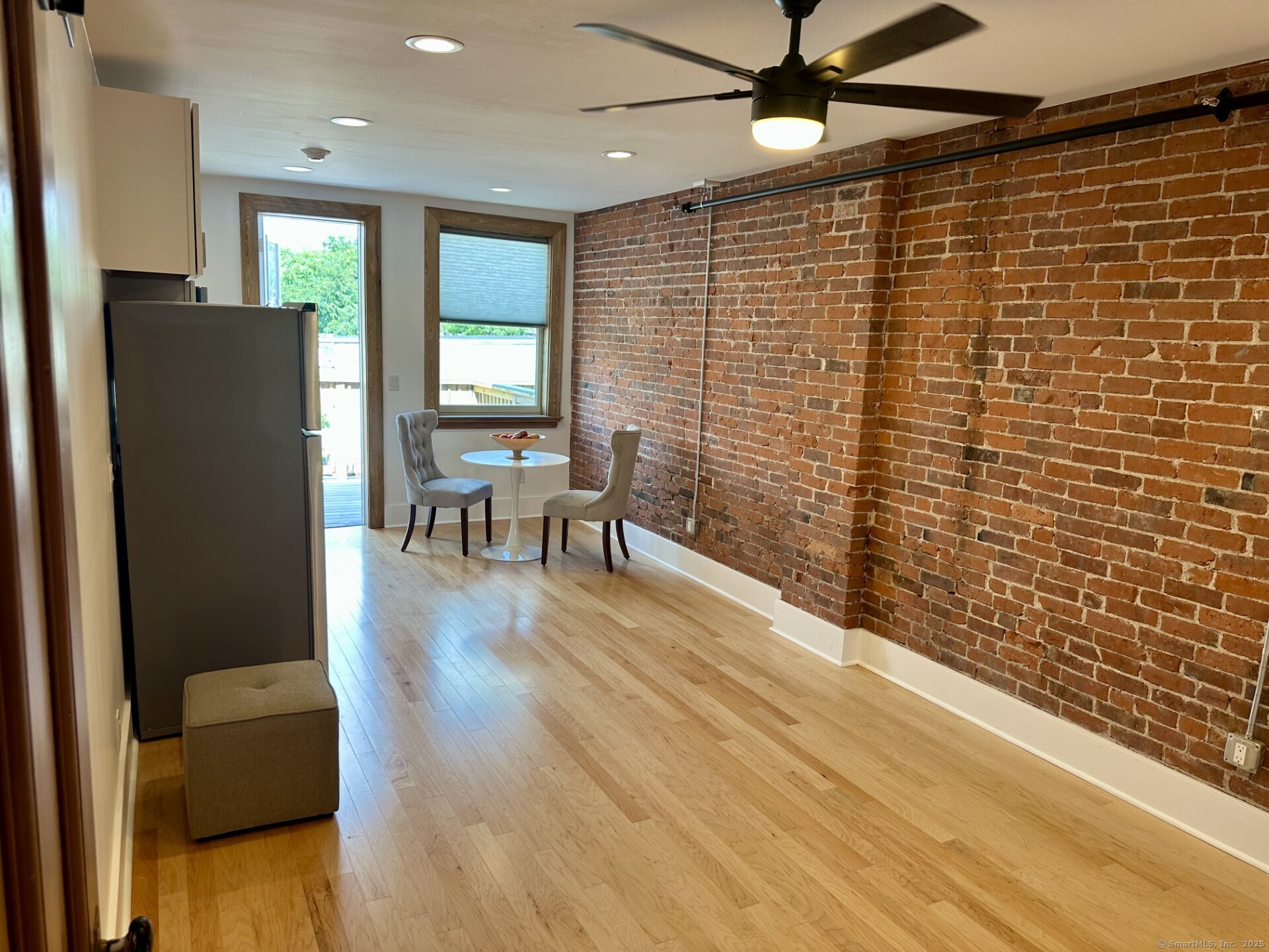 STUDIO - JUST RENOVATED! THIS IS A 1 ROOM BED/LIVING/DINING space . Welcome to the newest level of modern living in a downtown setting in Northwest CT! Close to all yet far enough and private. City vibes with tons of light flowing from two directions in this completely renovated historic downtown building premiere apartment. Original woodwork restored, adaptive reuse of turn of the century doors and beadboard and completely new interior construction in this building. Listen to water flowing beside your windows. Unit features a Walk out Deck and has all new stainless appliances, new windows with window treatments with privacy shades, hardwood floors, vintage inspired tile bathrooms with walk in showers with pressure adjustments and handheld. Efficient HVAC split units for summer AIR CONDITIONING /winter heat comfort, LED lighting for low electric bills, ceiling fans, tons of closet and storage space for easy carefree living. Come and go, travel more, or work from home! In house coin-op laundry machines on same floor, 24 hr video surveillance and convenient secure parking next door in city lot for approx.. $14 a month.
