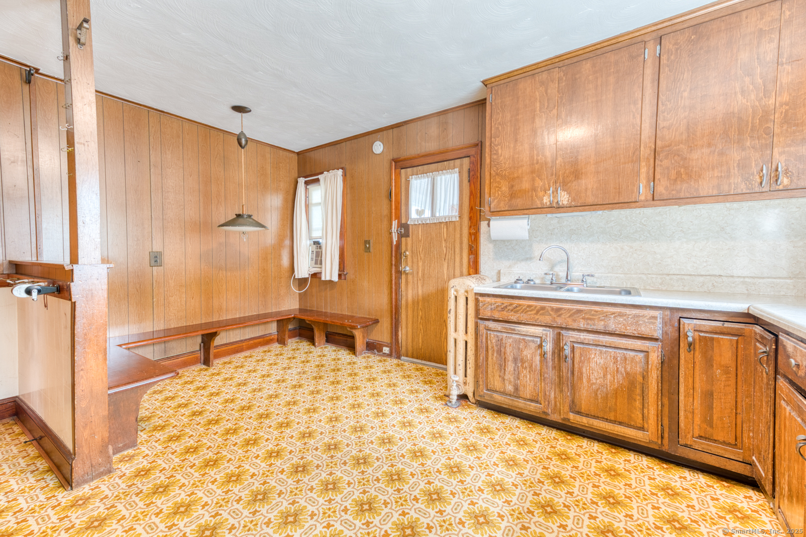 Charming Two-Bedroom Bungalow style ranch nestled in the Elmwood section. Living room has a fireplace and beautiful built-in bookshelves. Large Dining room has a built-in hutch and lots of sunshine. Two bedrooms with walk-in closets and Hardwood floors through out. The eat in Kitchen has a broom closet and a large nook with built-in benches for eating and opens to a sunroom/porch. A partially finished basement provides additional living space. A workshop/utility room can be used for extra storage. Three finished rooms and a half bath complete the lower level. A walk up attic with a finished room has expansion potential. Outdoor space highlights include a patio with a pergola, plus a two car garage with a storage room, a welcoming front porch and sidewalks Being sold AS-IS