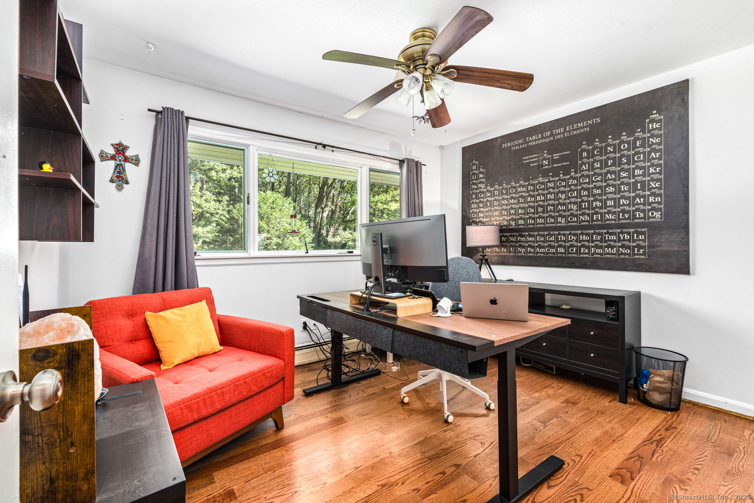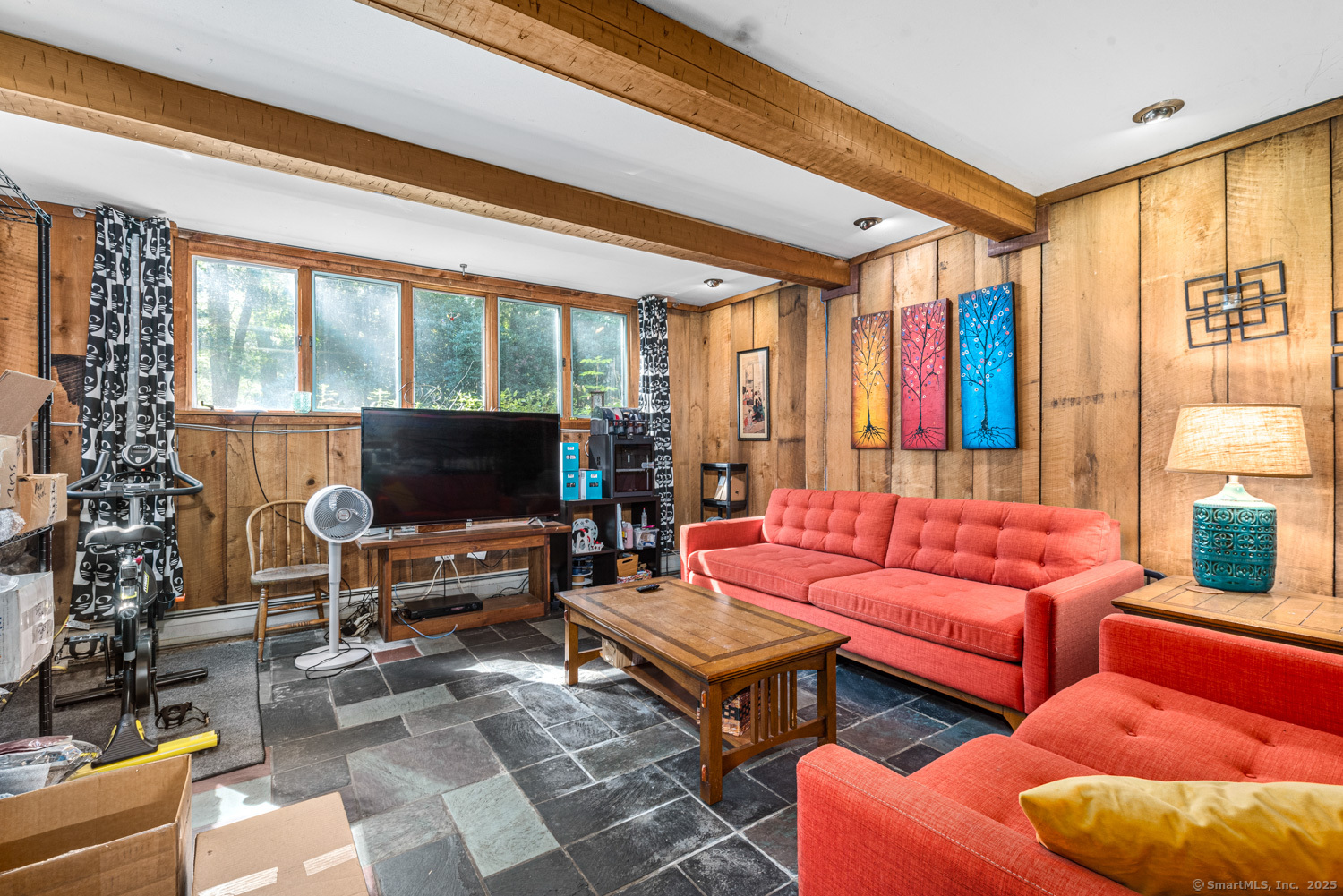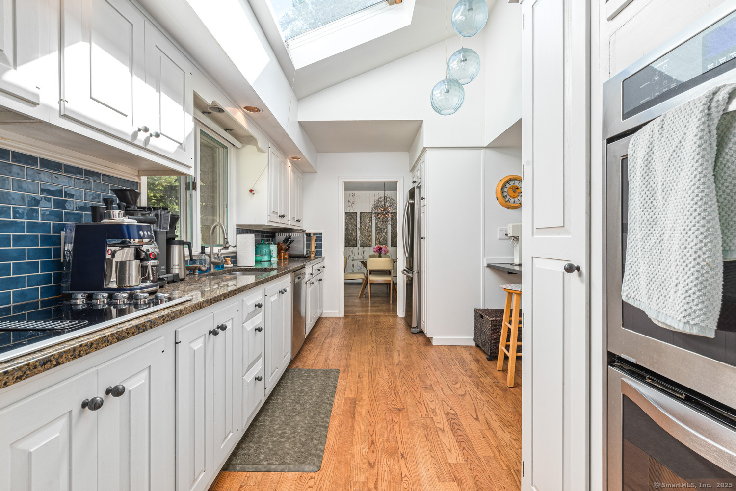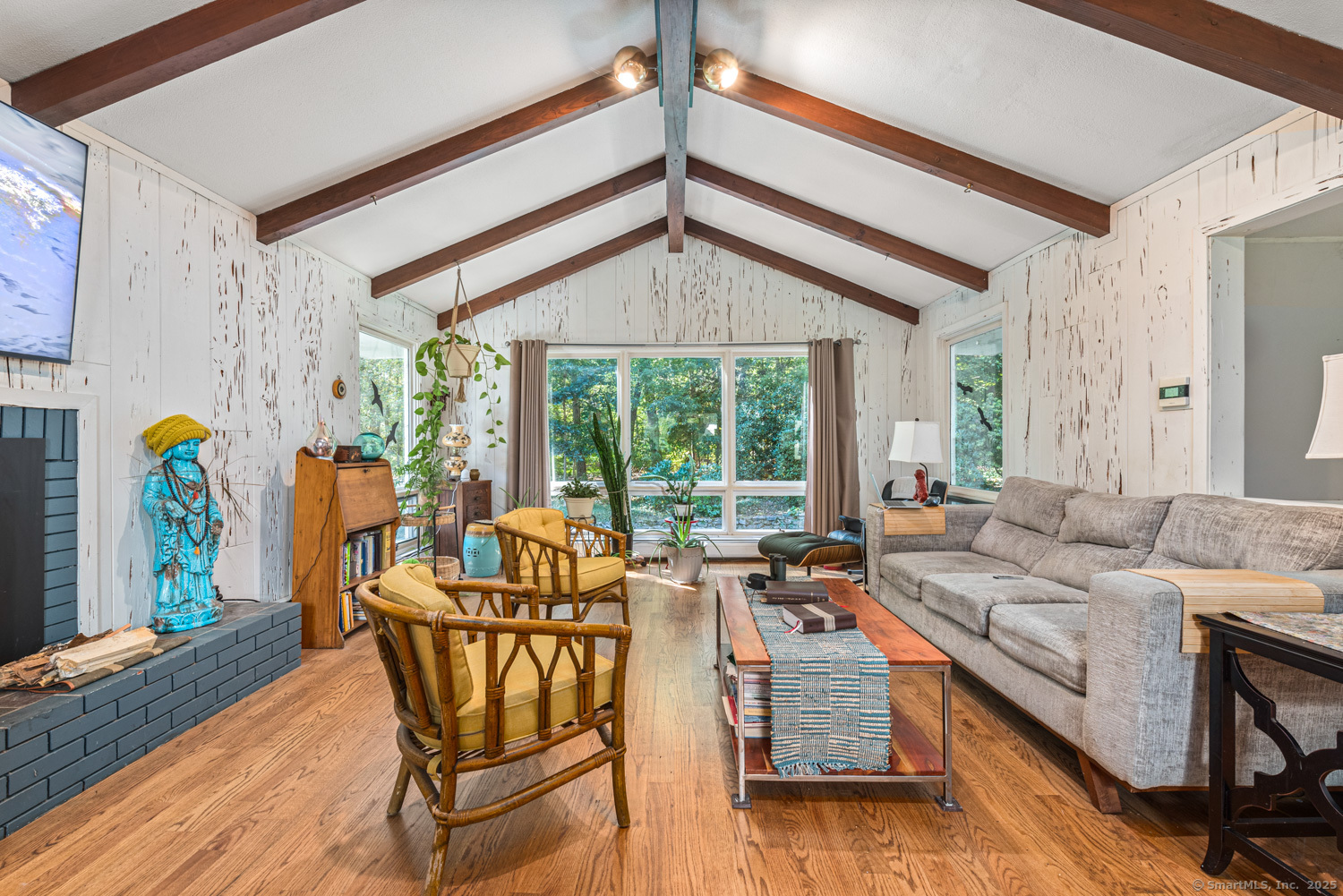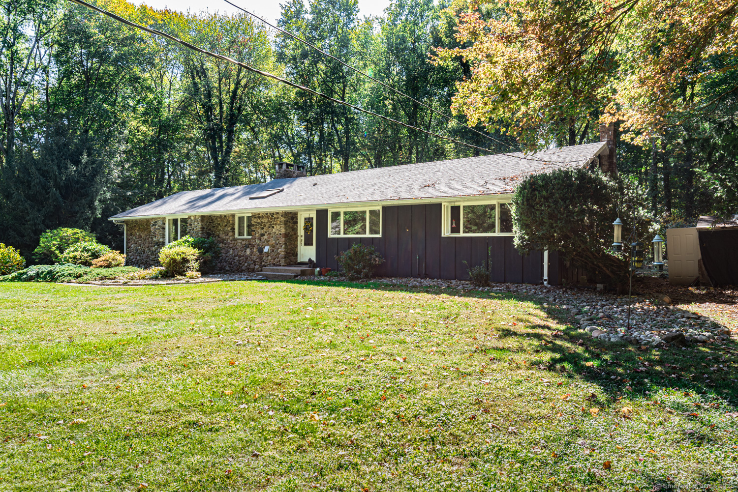 Discover a truly unique ranch-style home on over an acre in one of Cheshire's most desirable neighborhoods. Bright, open spaces with vaulted ceilings create a comfortable flow throughout, while large windows bring in natural light and views of the private, wooded setting. The main level offers three bedrooms, including a primary suite, and the walk-out lower level features a spacious family room with fireplace with insert, bar, and guest suite. With updated baths, and central air, this home blends country charm with everyday comfort-perfect for those seeking character and convenience. A special place to call home.
