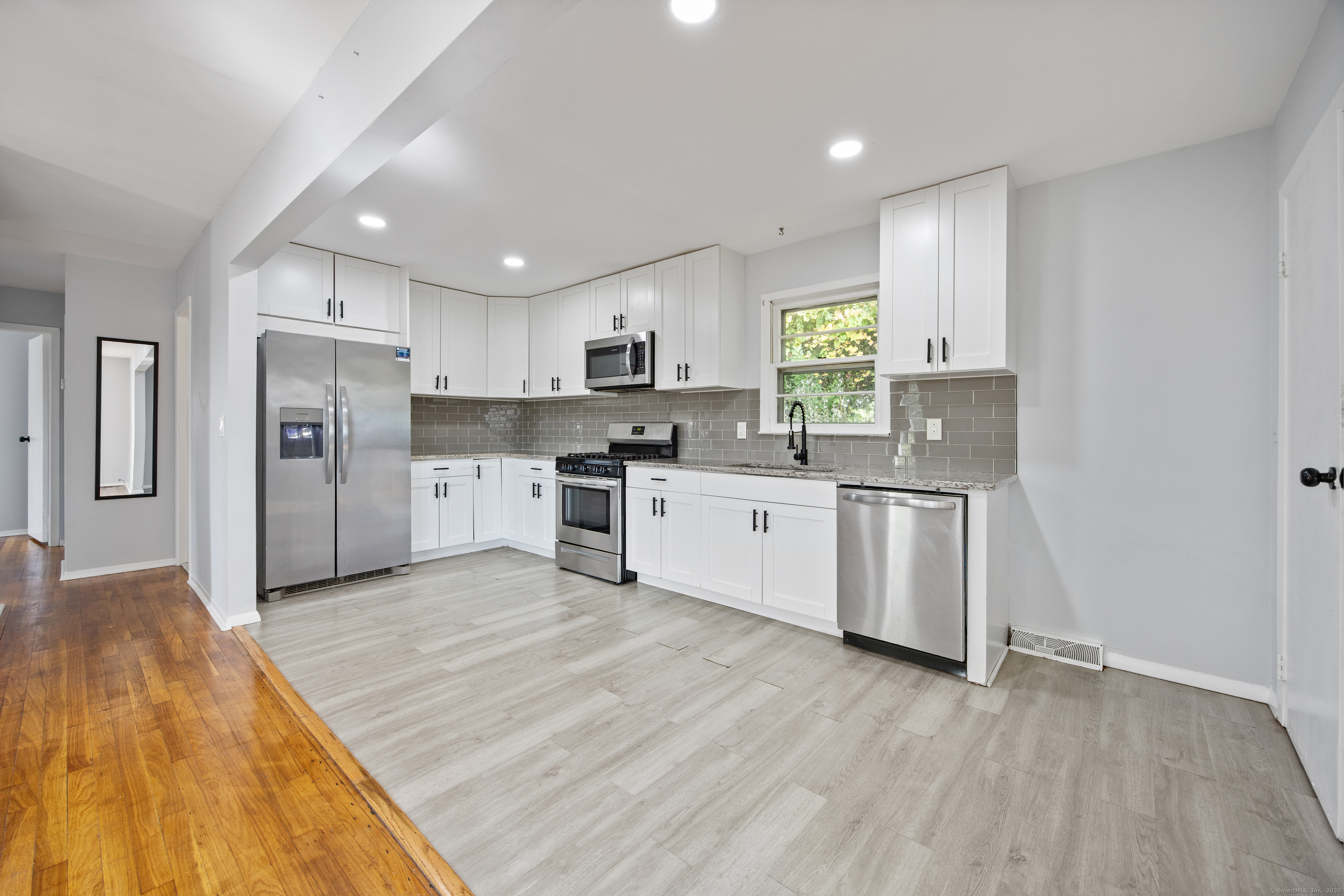 Welcome to this beautifully renovated three-bedroom ranch! The spacious living room features gleaming hardwood floors and opens seamlessly to the bright kitchen, showcasing granite countertops and stainless steel appliances. The main level is complete with three bedrooms and a full bath. The lower level offers a fully finished basement with a full bathroom and flexible space ideal for a home office, recreation room, or playroom. Don't miss this move-in ready home-schedule your showing today!
