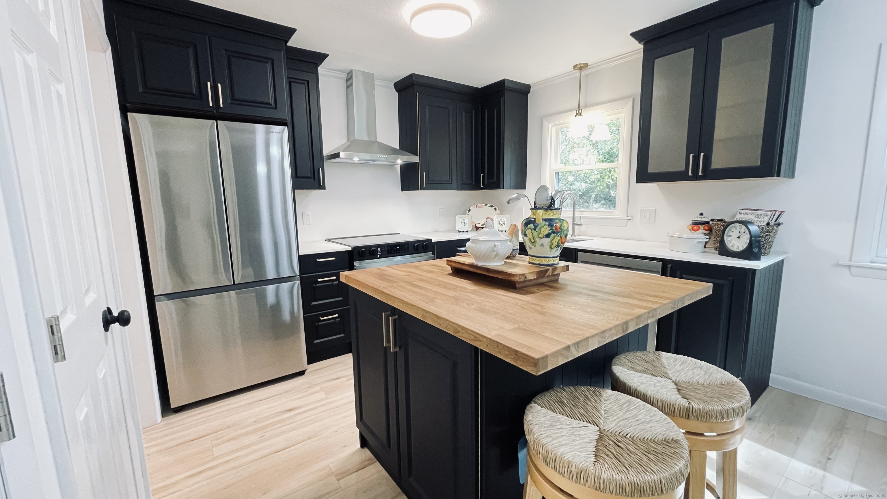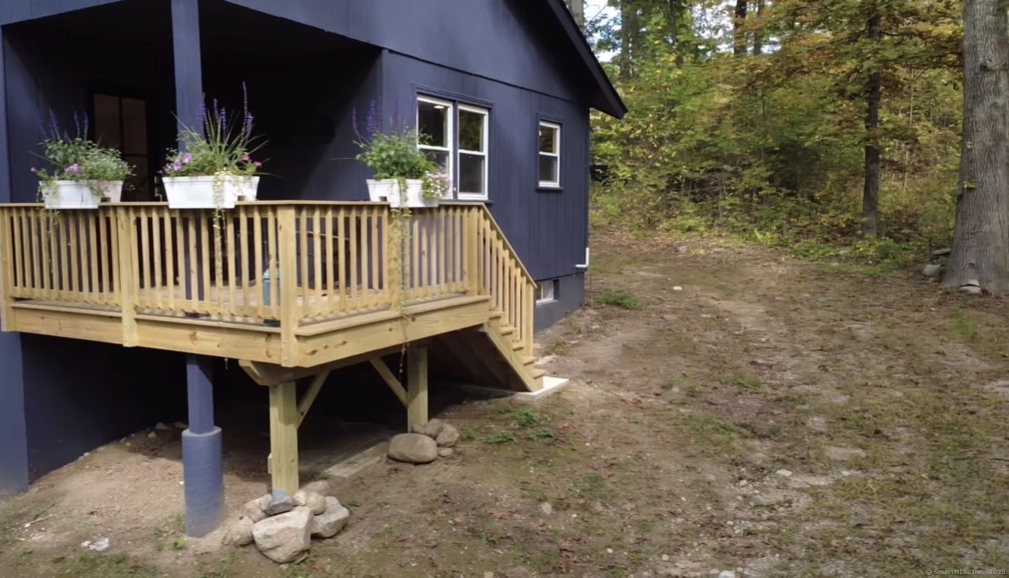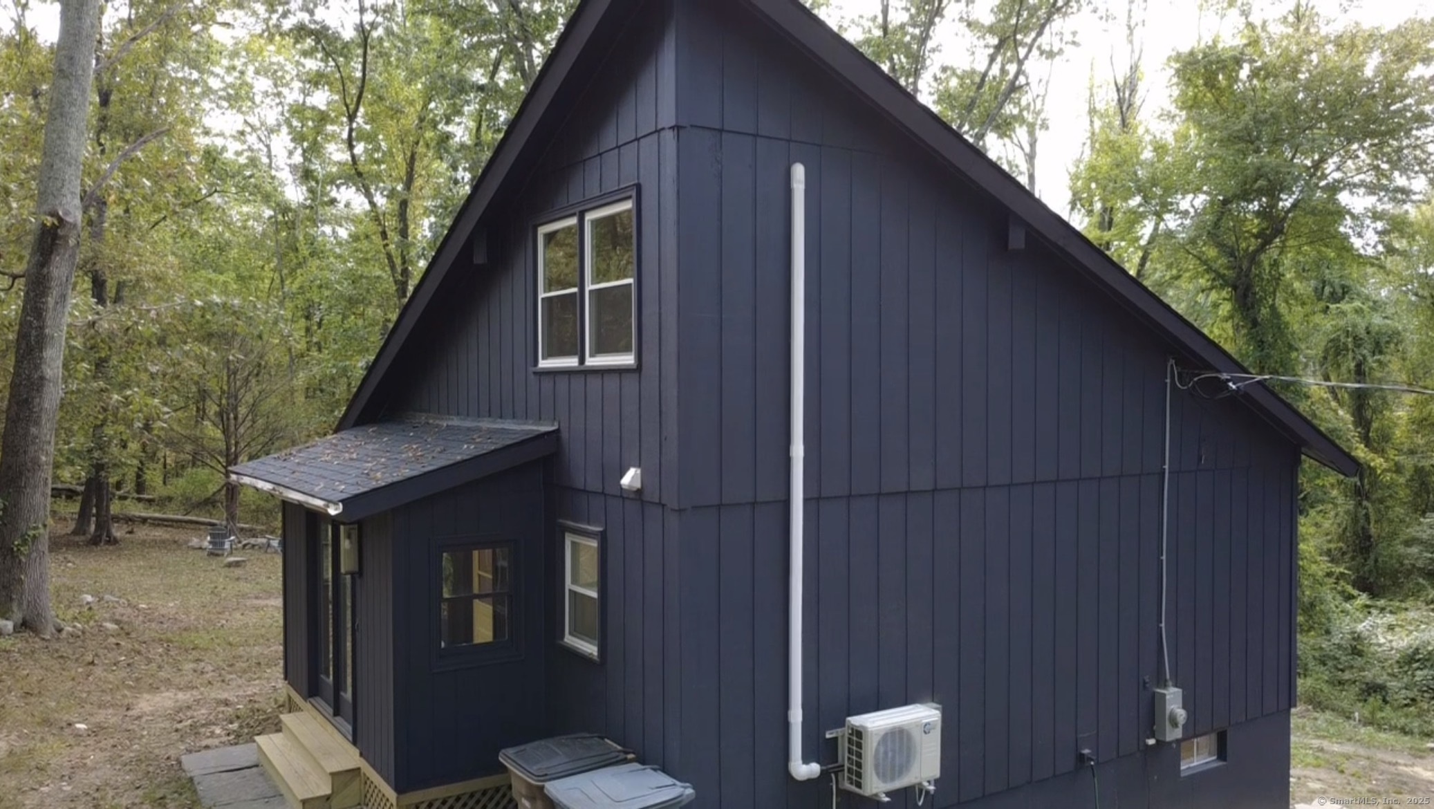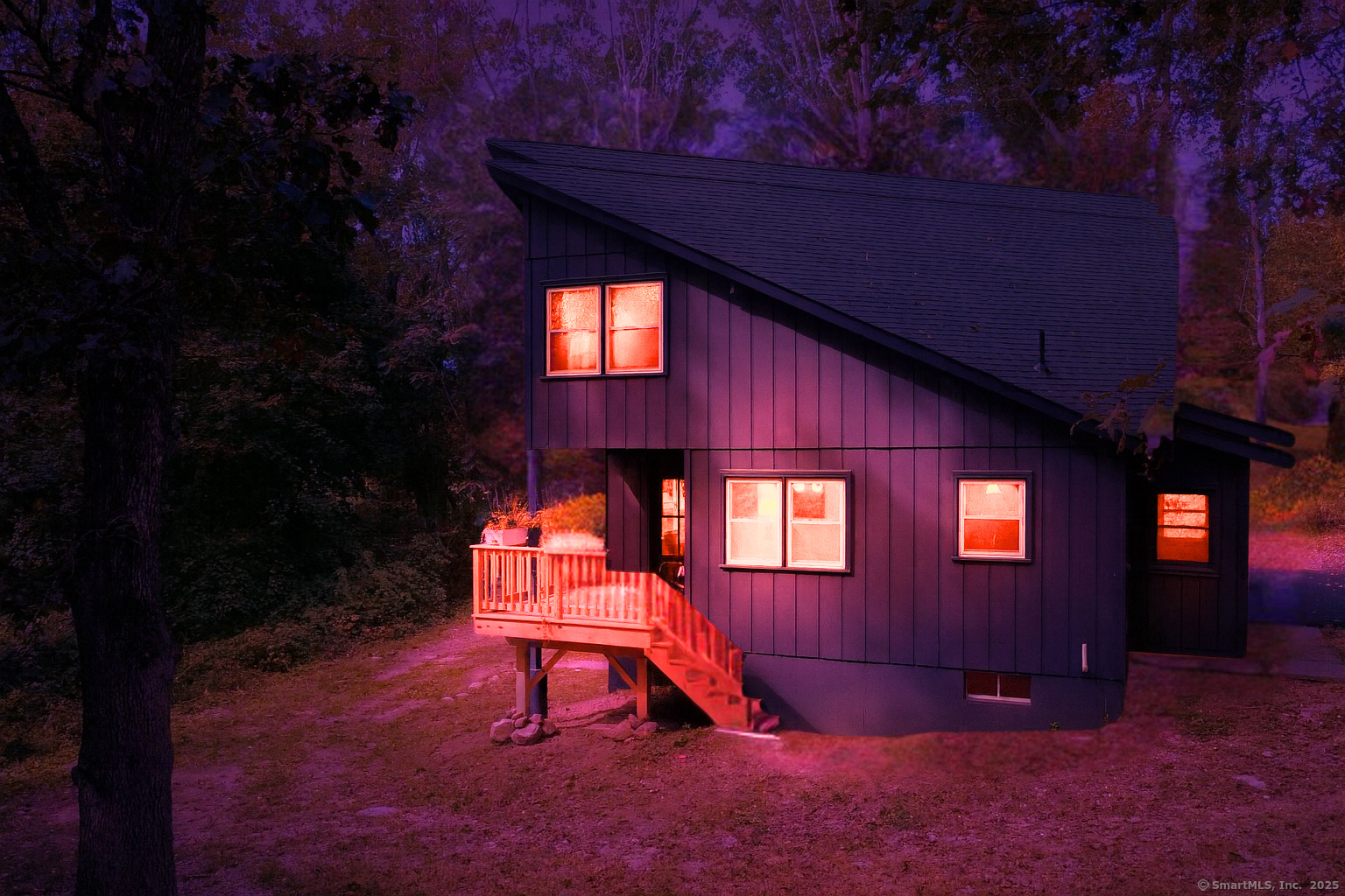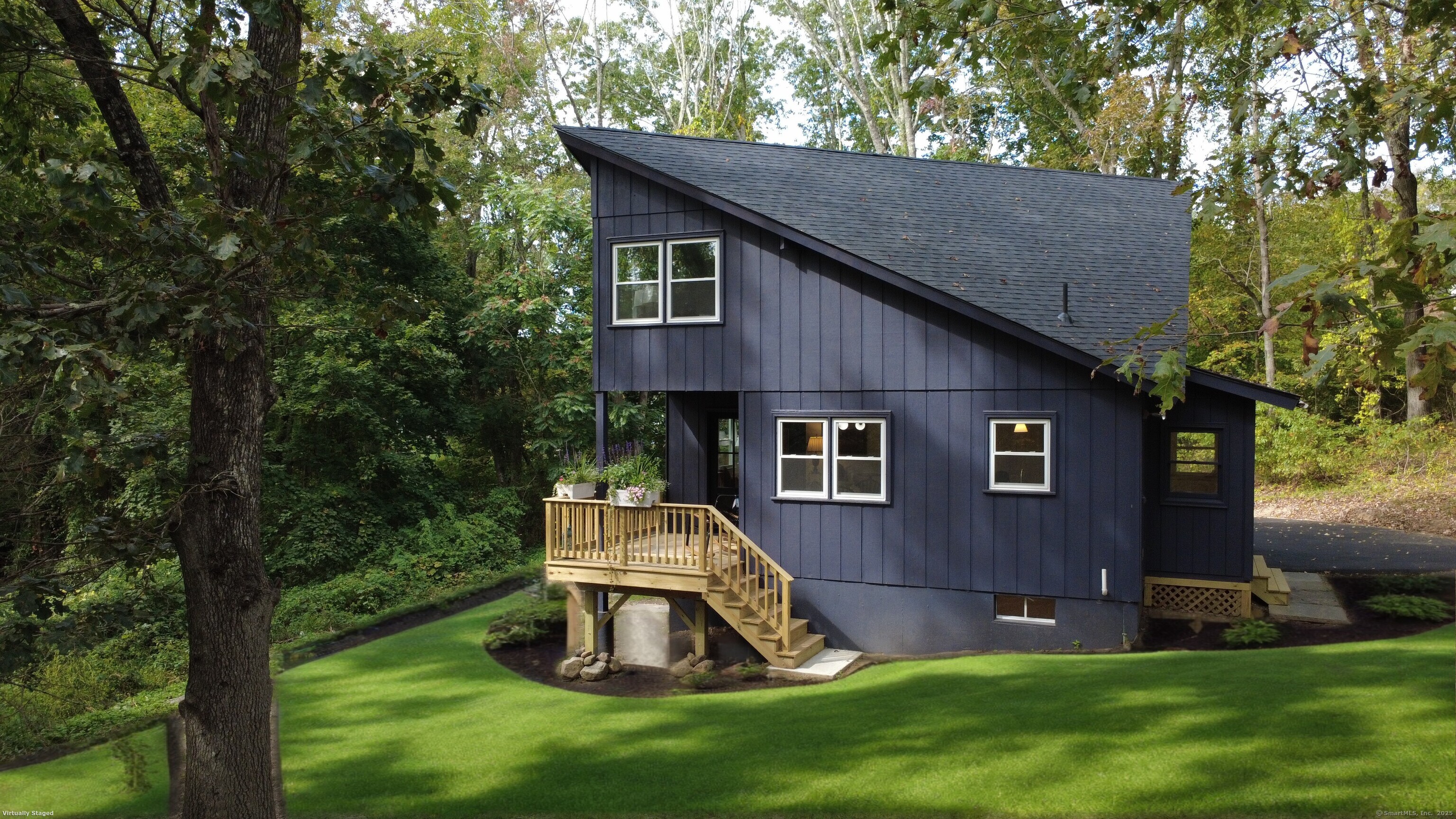Privately set at the end of a cul-de-sac, this completely remodeled contemporary home is ready to win hearts. Buy with peace of mind with new windows, new roof, new water heater, new mini splits with heat and air-conditioning, new plumbing and electrical, new LVP floors, new appliances, all new lighting, new deck, water proofed basement, and fresh paint! With over 1,800 sq ft across three finished levels, it balances style, space, and comfort. The gourmet kitchen, with its butcher block island and high-end appliances, invites everything from late-night snacks to holiday feasts. An open living area leads to a covered deck overlooking a private acre-perfect for morning coffee or sunset reflections. The nearly 250 sq ft primary bedroom boasts soaring vaulted ceilings. While the second level shines with hardwood floors, the main level flows with durable luxury vinyl plank. Downstairs, a finished 612 sq ft basement retreat offers a bedroom, full bath, and cozy den/family room with walk-out separate entry which could work well for that accessory dwelling space. Efficient mini splits keep the top two levels comfortable. All this, just minutes from Cedar Ridge Golf Course and the beaches, dining, and shops of downtown Niantic. Come see where modern convenience meets a touch of heart.