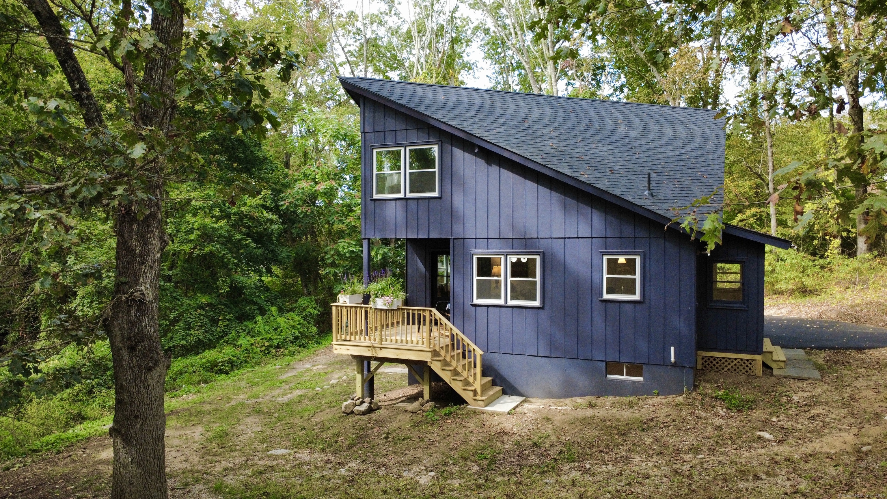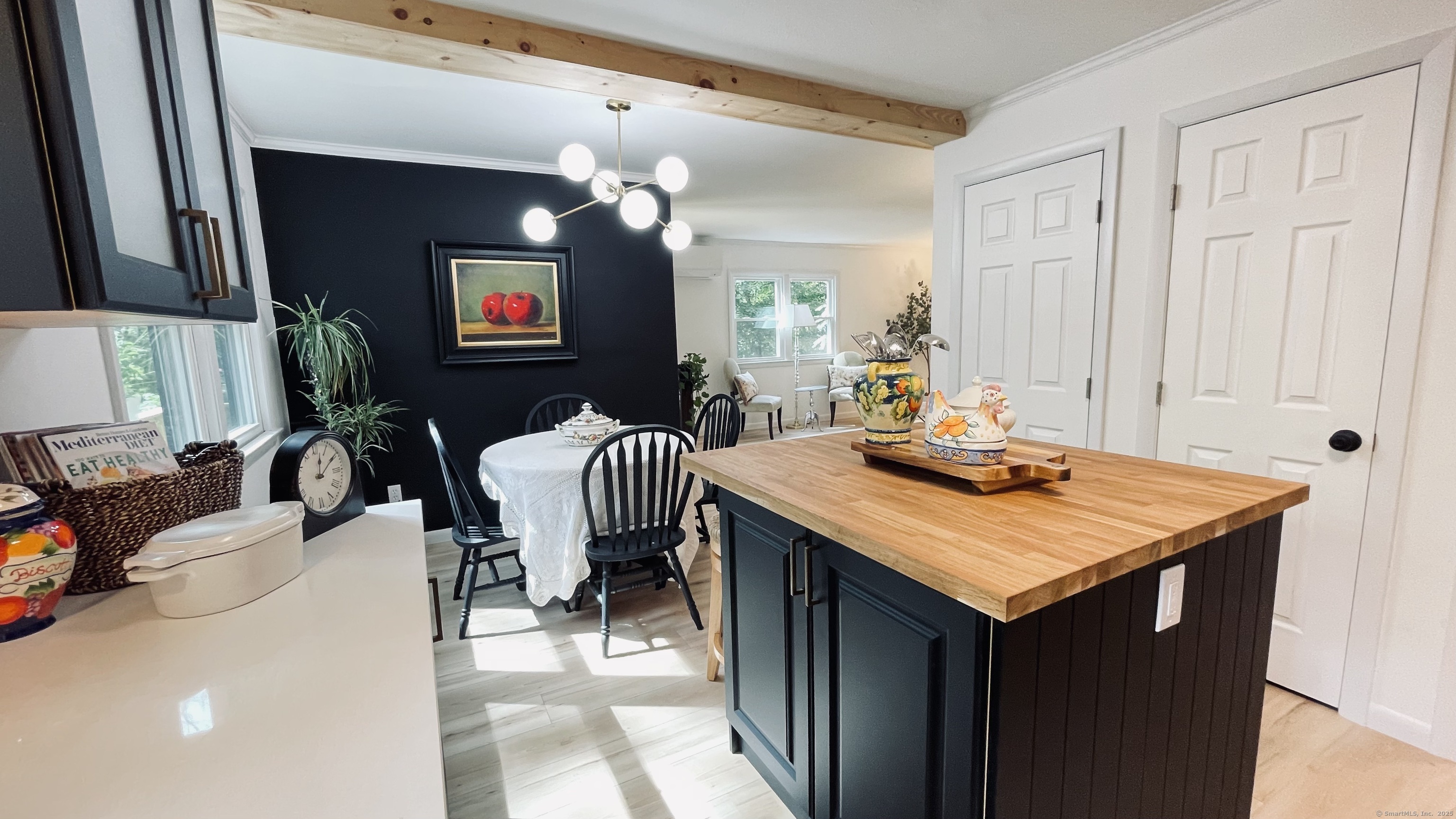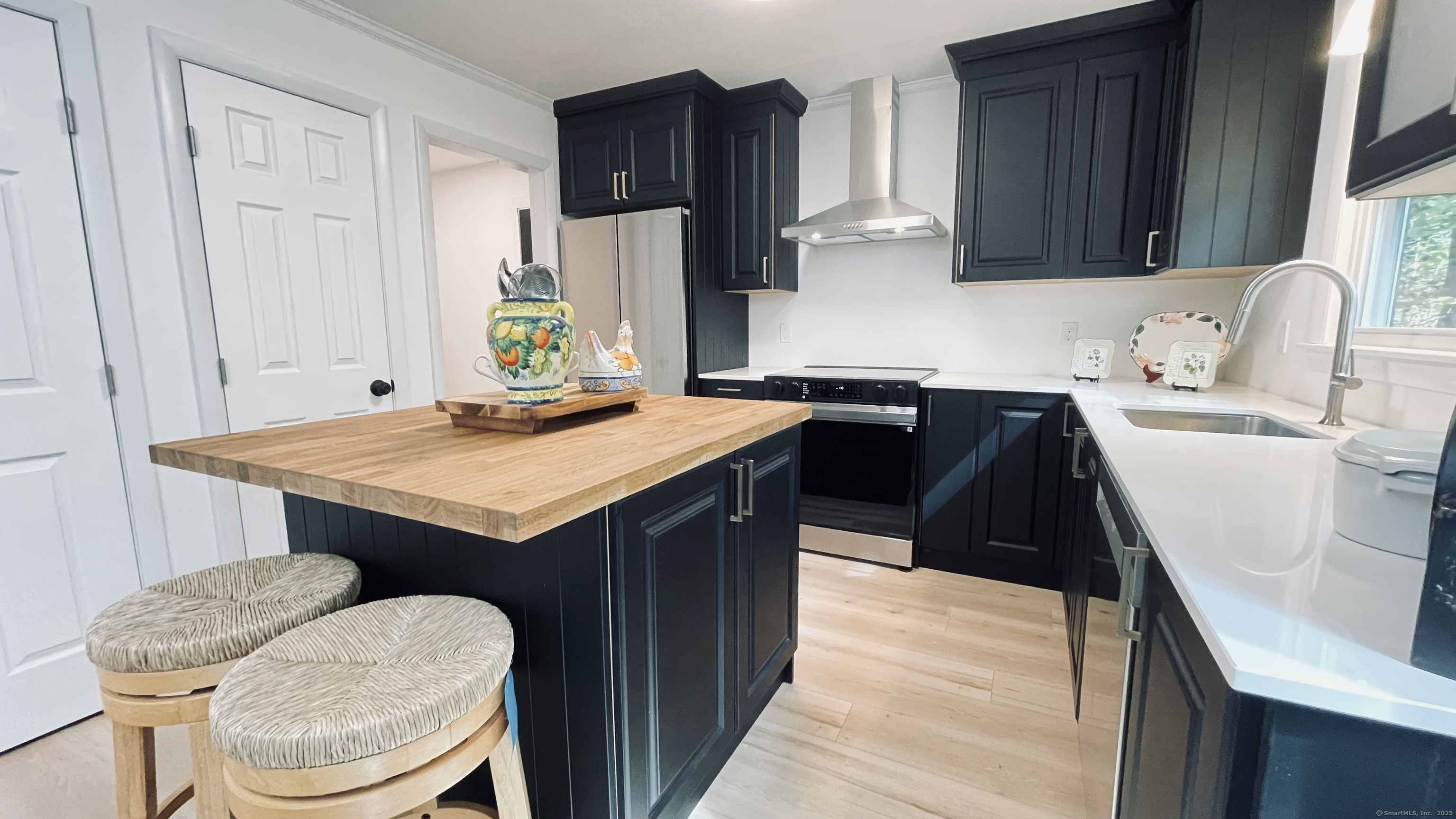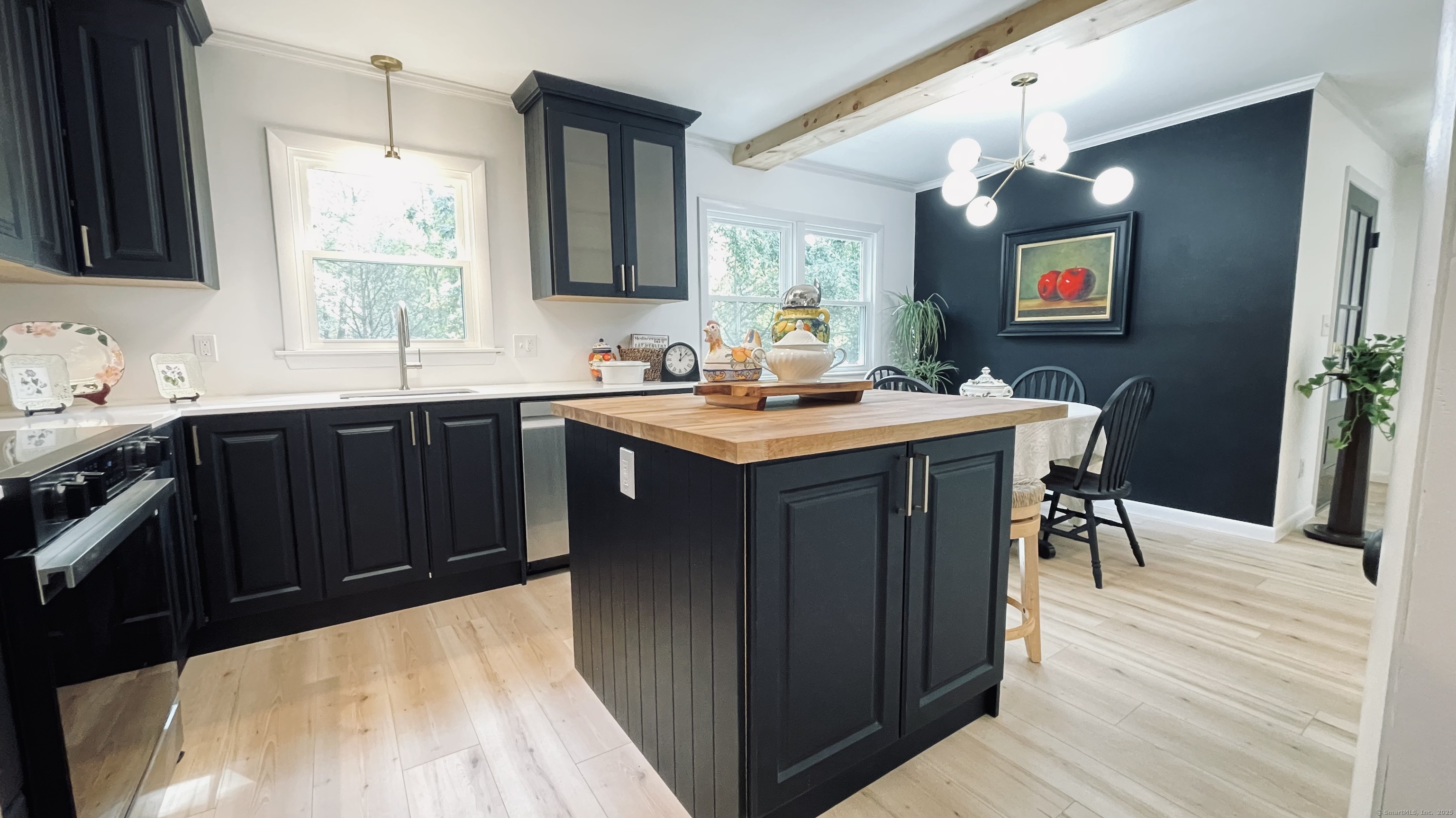 Privately set at the end of a cul-de-sac, this completely remodeled contemporary home is ready to win hearts. Buy with peace of mind with new windows, new roof, new water heater, new mini splits with heat and air-conditioning, new plumbing and electrical, new LVP floors, new appliances, all new lighting, new deck, water proofed basement, and fresh paint! With over 1,800 sq ft across three finished levels, it balances style, space, and comfort. The gourmet kitchen, with its butcher block island and high-end appliances, invites everything from late-night snacks to holiday feasts. An open living area leads to a covered deck overlooking a private acre-perfect for morning coffee or sunset reflections. The nearly 250 sq ft primary bedroom boasts soaring vaulted ceilings. While the second level shines with hardwood floors, the main level flows with durable luxury vinyl plank. Downstairs, a finished 612 sq ft basement retreat offers a bedroom, full bath, and cozy den/family room with walk-out separate entry which could work well for that accessory dwelling space. Efficient mini splits keep the top two levels comfortable. All this, just minutes from Cedar Ridge Golf Course and the beaches, dining, and shops of downtown Niantic. Come see where modern convenience meets a touch of heart.
