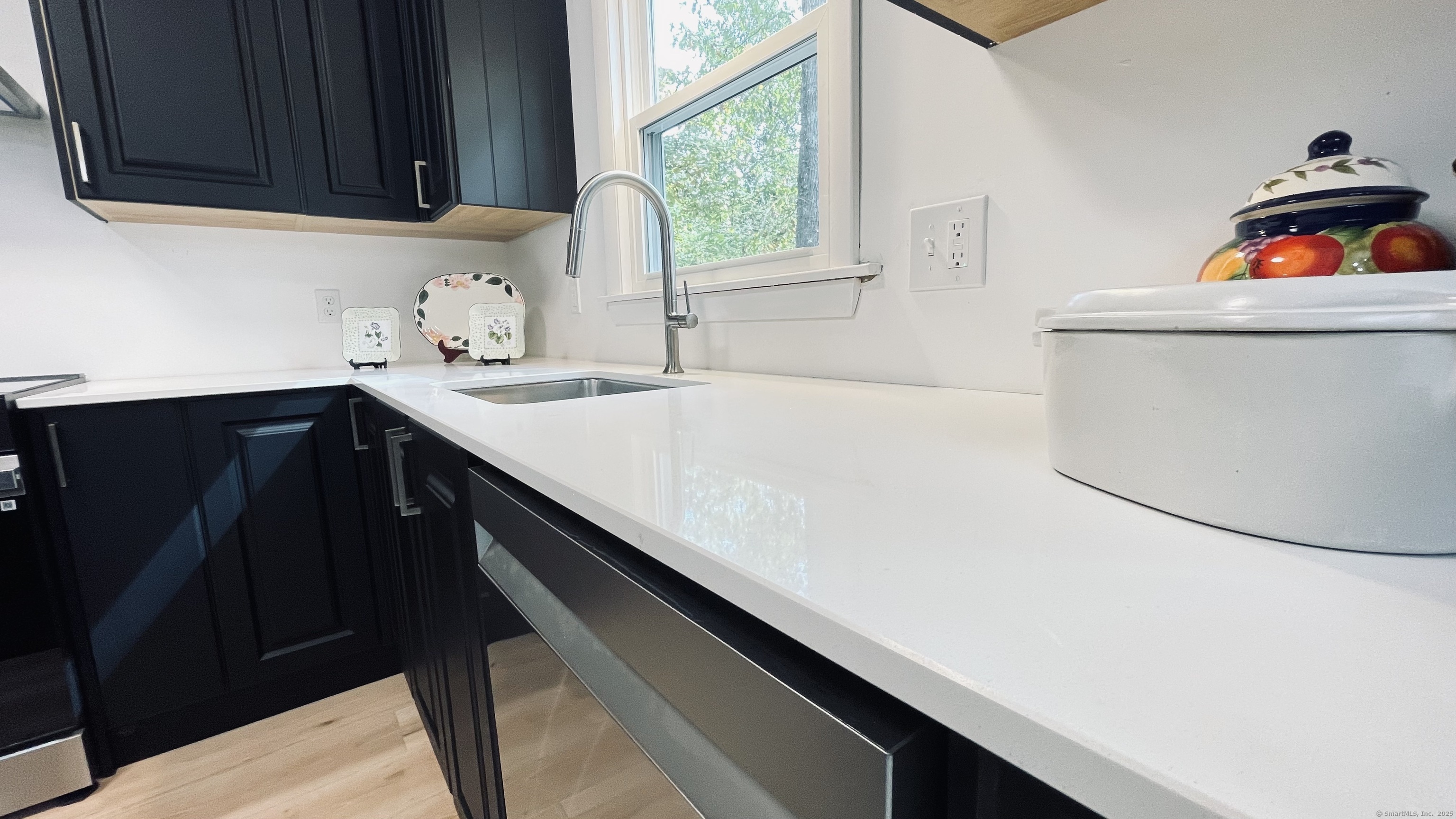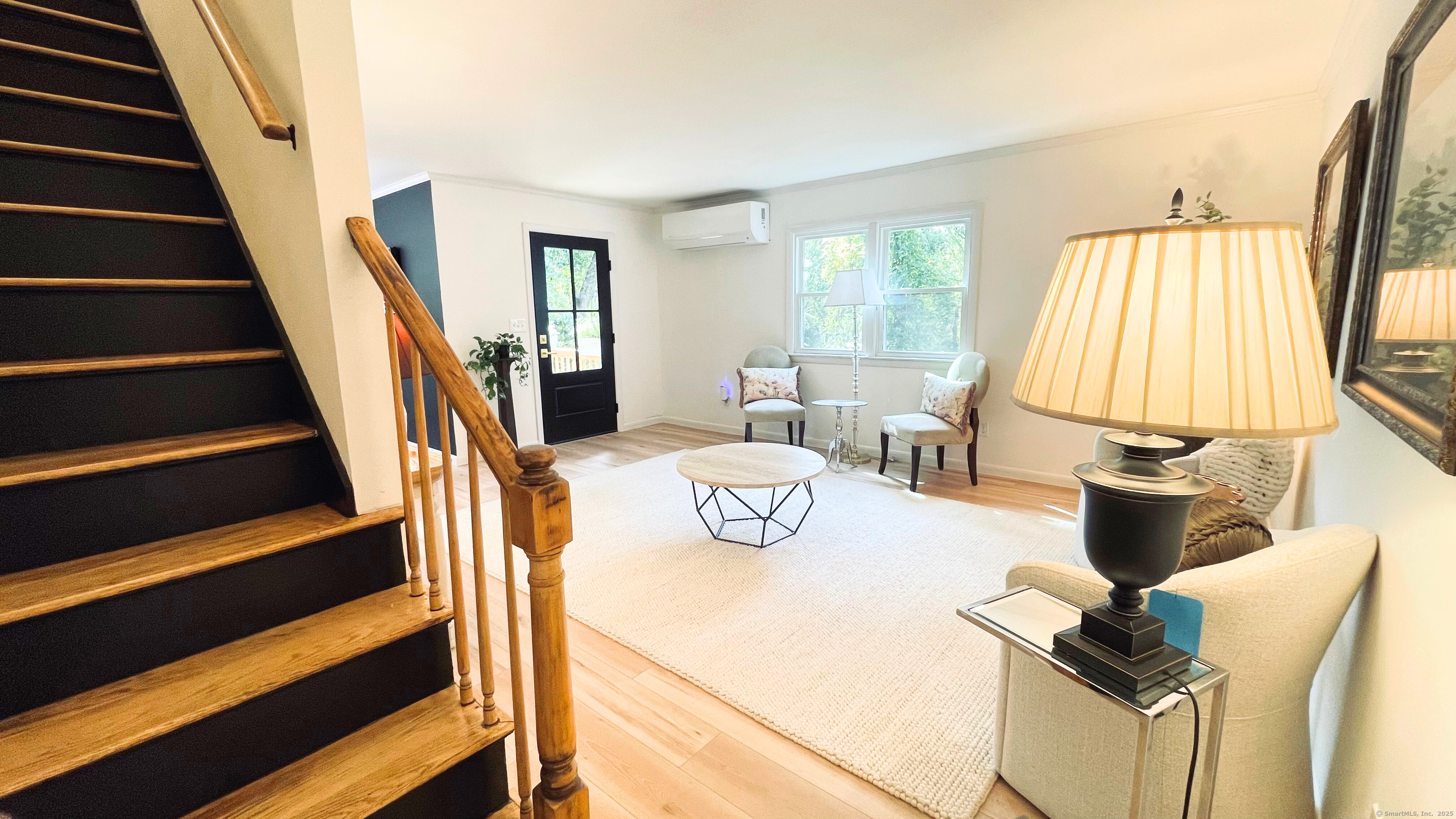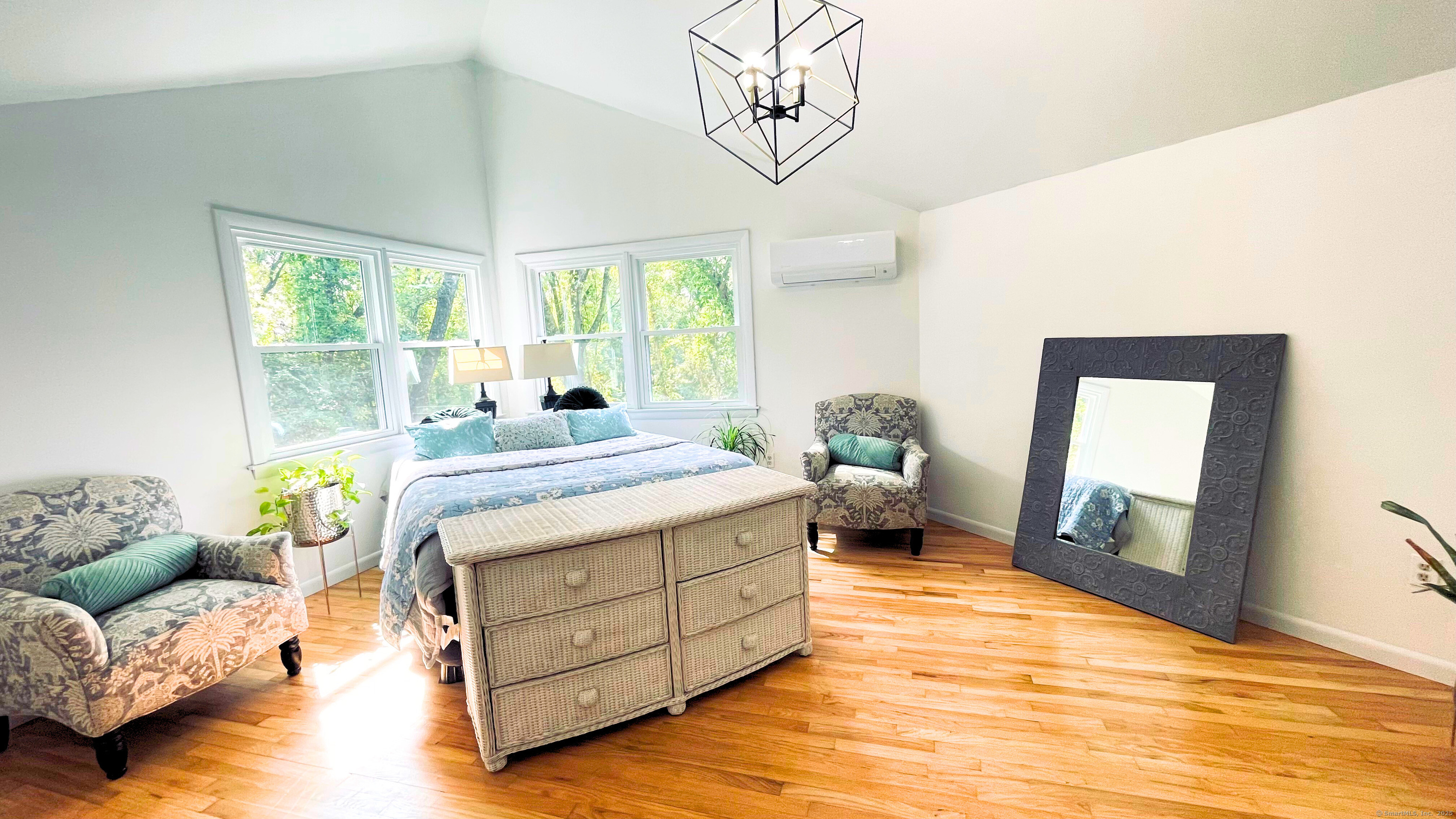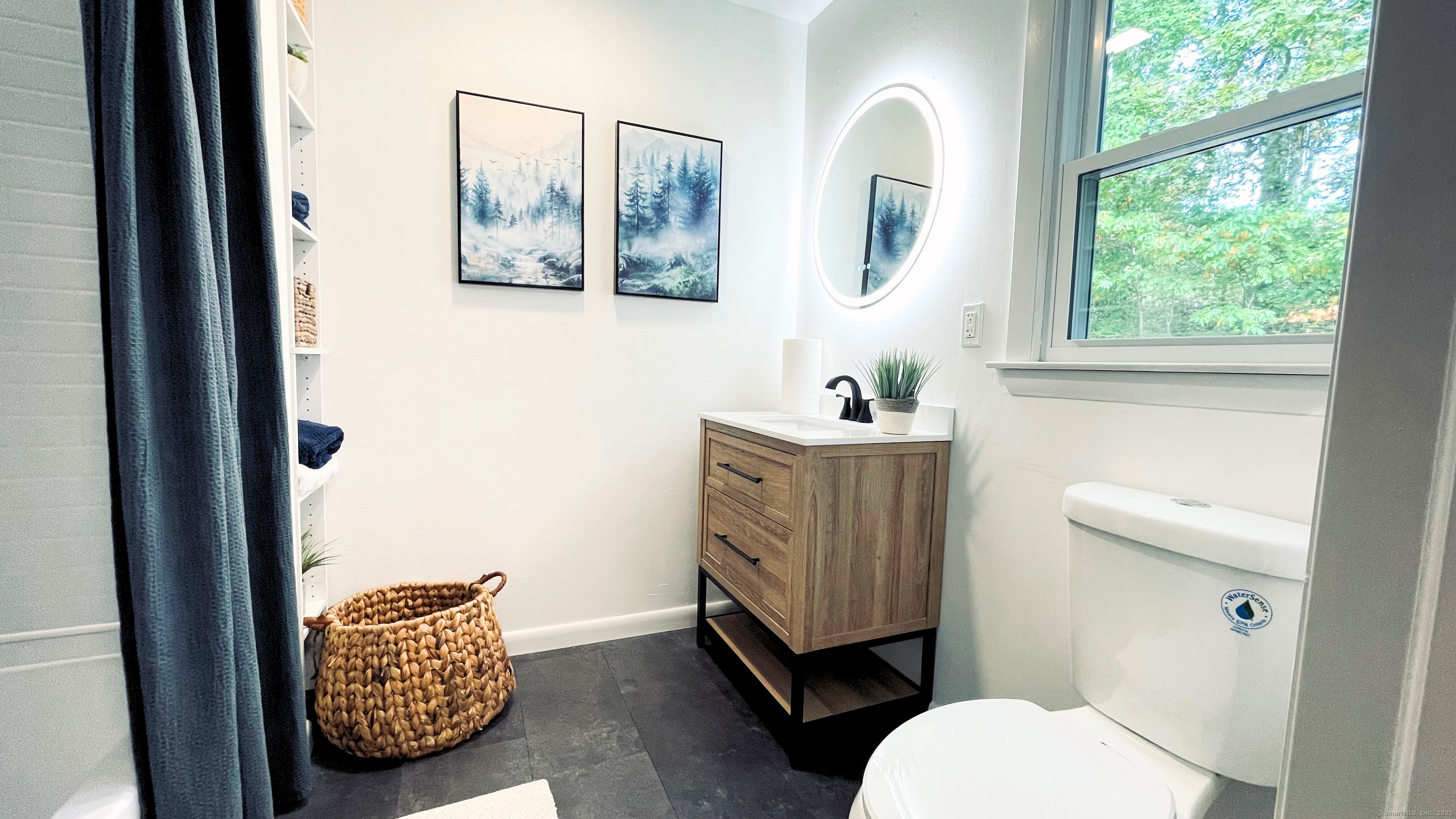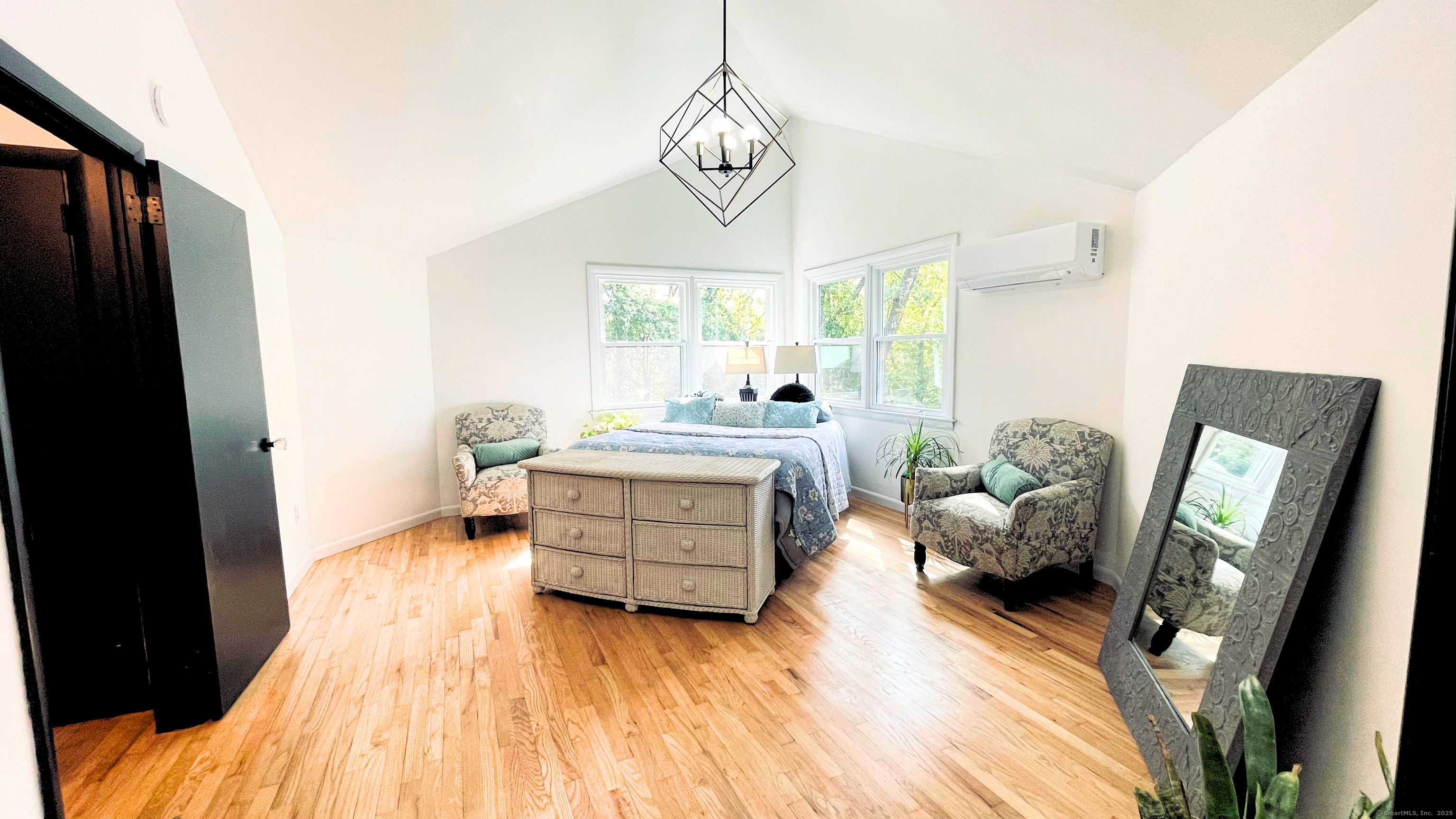Privately set at the end of a cul-de-sac, this completely remodeled contemporary home is ready to win hearts. Buy with peace of mind with new windows, new roof, new water heater, new mini splits with heat and air-conditioning, new plumbing and electrical, new LVP floors, new appliances, all new lighting, new deck, water proofed basement, and fresh paint! With over 1,800 sq ft across three finished levels, it balances style, space, and comfort. The gourmet kitchen, with its butcher block island and high-end appliances, invites everything from late-night snacks to holiday feasts. An open living area leads to a covered deck overlooking a private acre-perfect for morning coffee or sunset reflections. The nearly 250 sq ft primary bedroom boasts soaring vaulted ceilings. While the second level shines with hardwood floors, the main level flows with durable luxury vinyl plank. Downstairs, a finished 612 sq ft basement retreat offers a bedroom, full bath, and cozy den/family room with walk-out separate entry which could work well for that accessory dwelling space. Efficient mini splits keep the top two levels comfortable. All this, just minutes from Cedar Ridge Golf Course and the beaches, dining, and shops of downtown Niantic. Come see where modern convenience meets a touch of heart.