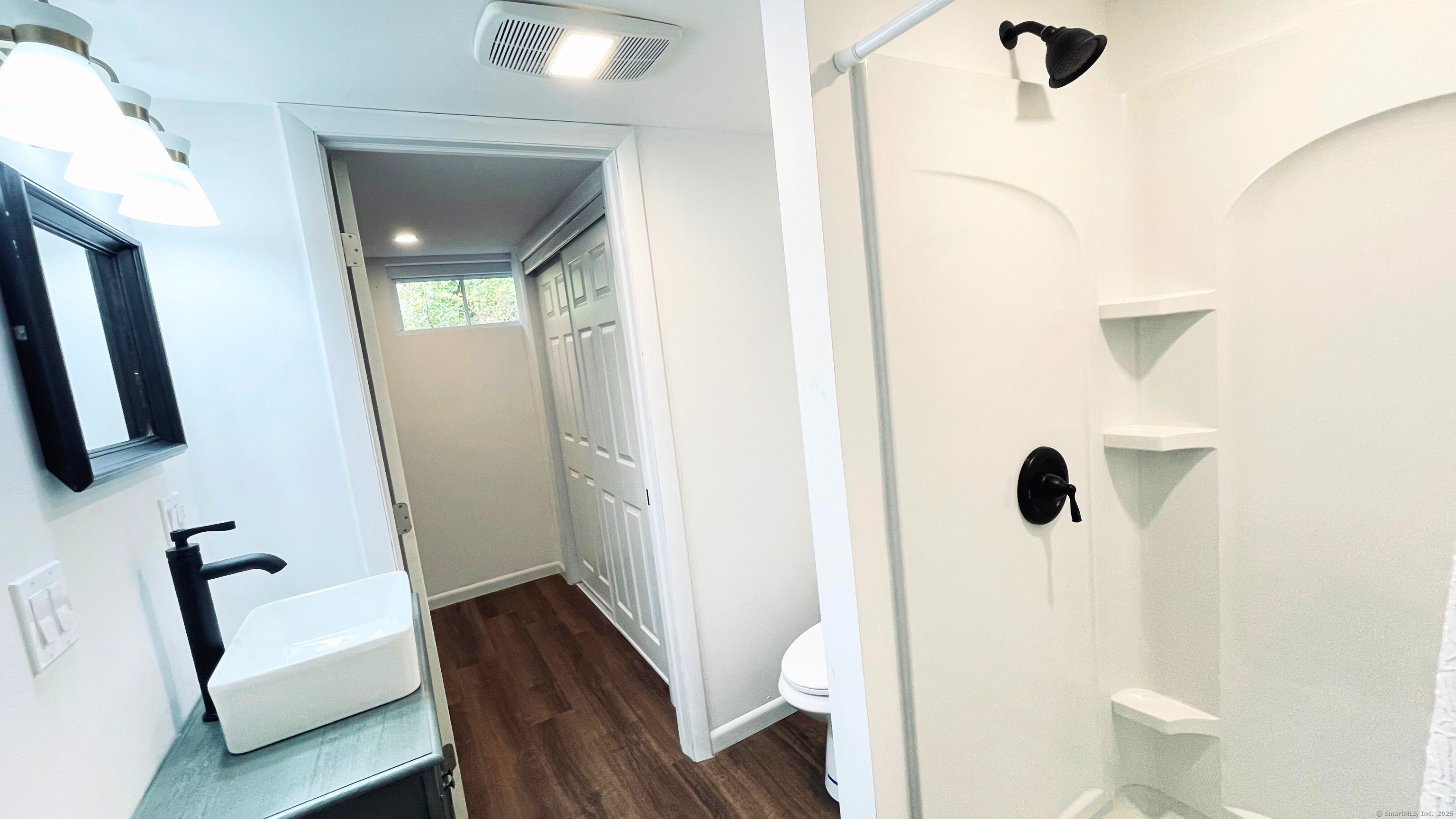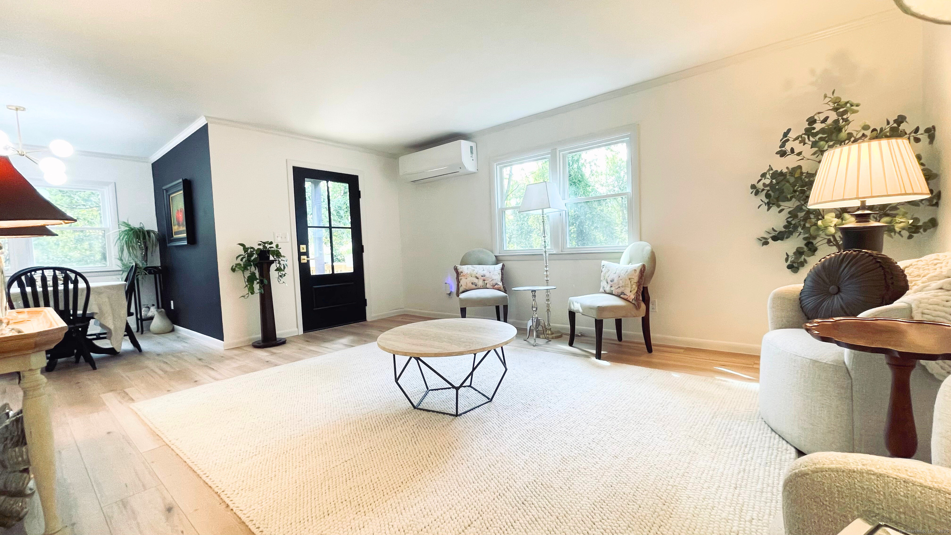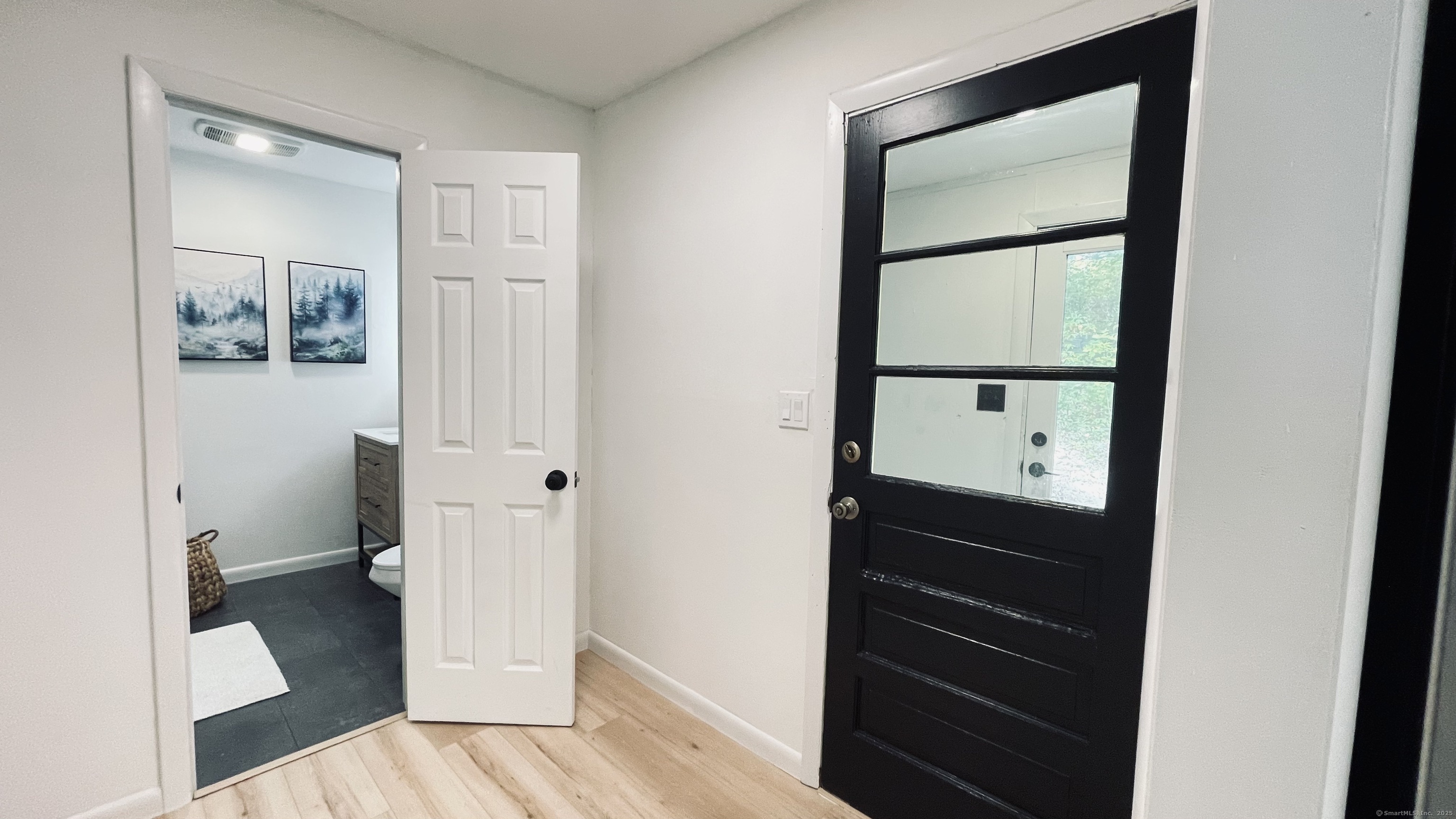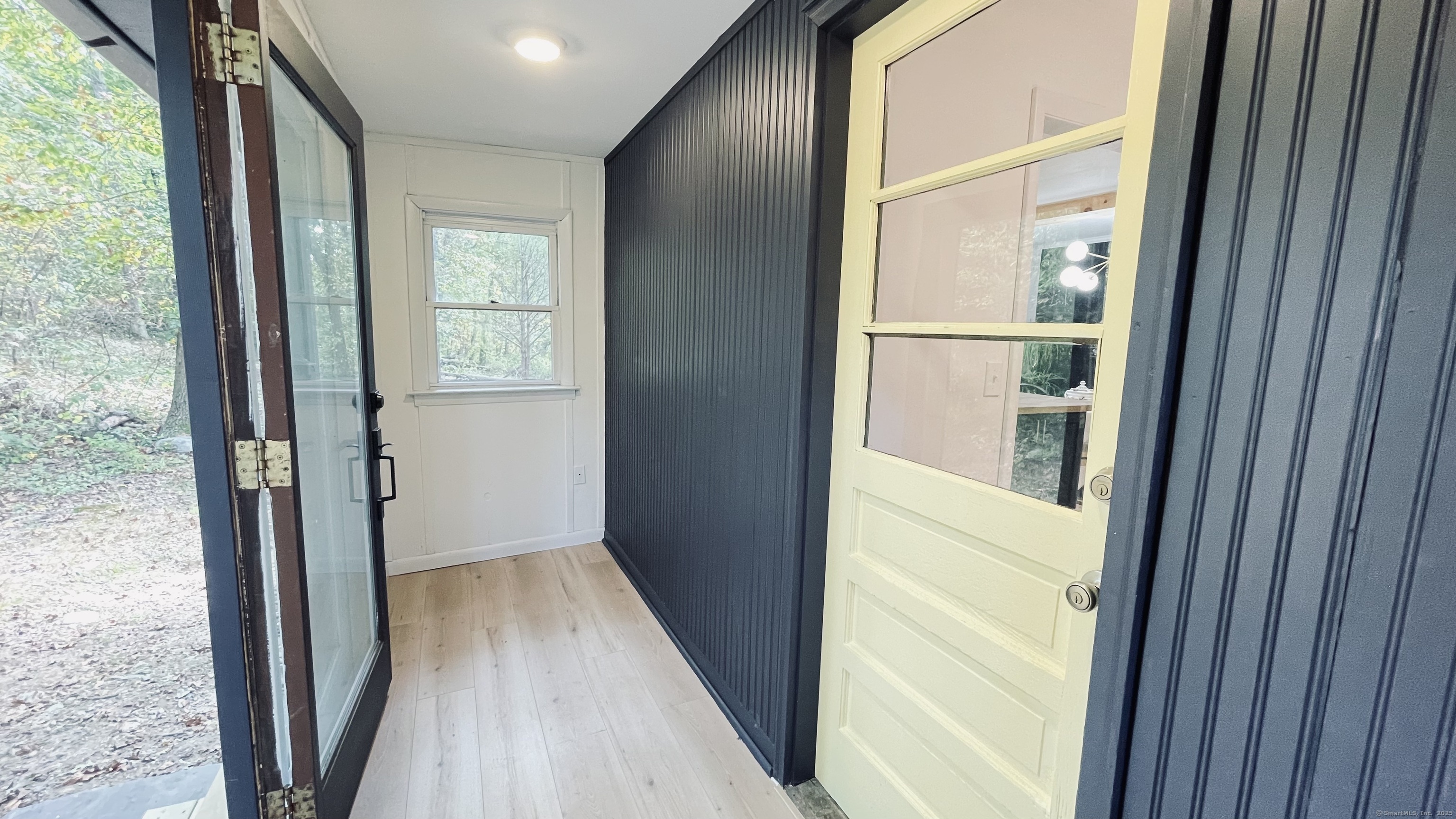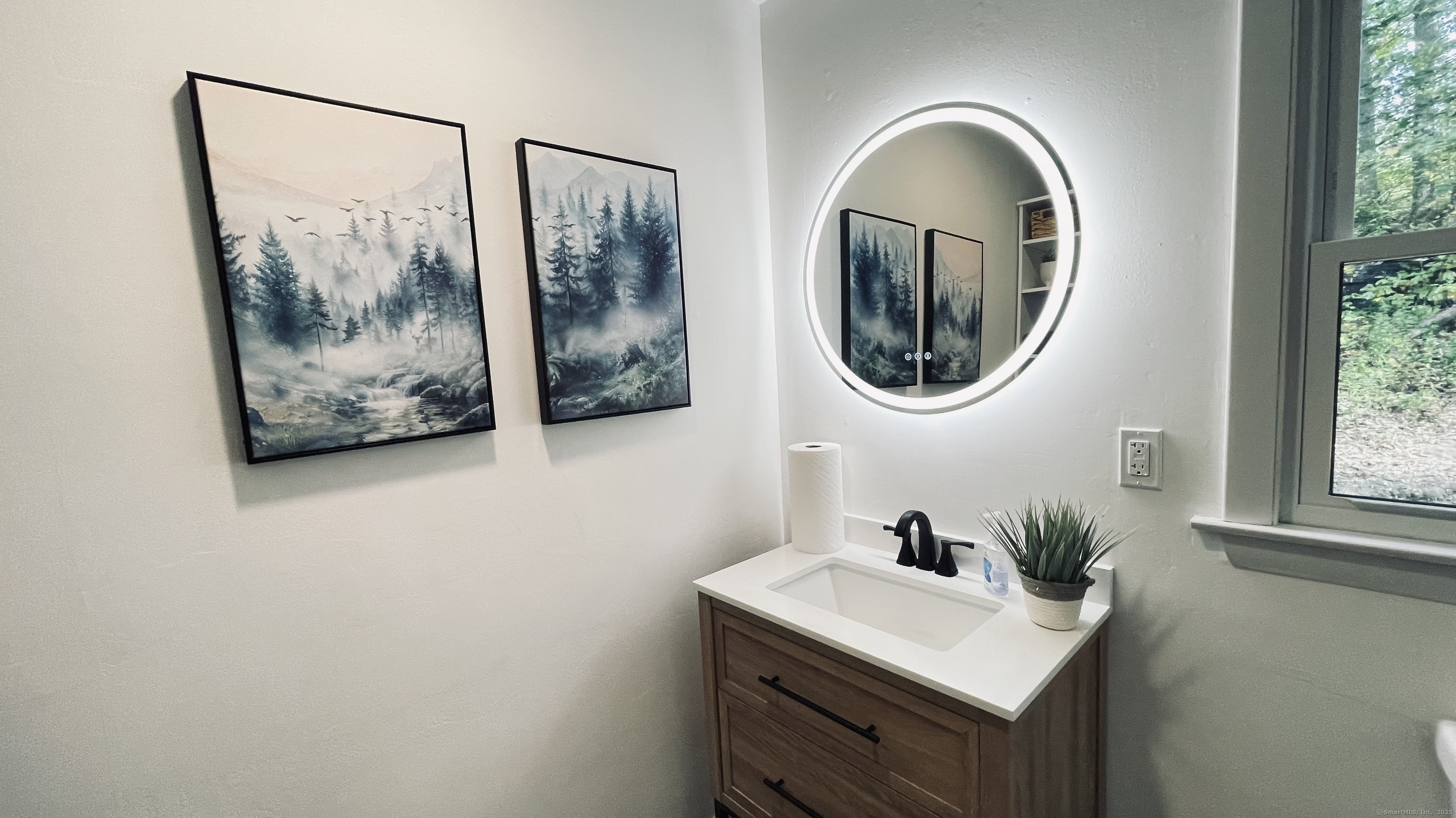 Privately set at the end of a cul-de-sac, this completely remodeled contemporary home is ready to win hearts. Buy with peace of mind with new windows, new roof, new water heater, new mini splits with heat and air-conditioning, new plumbing and electrical, new LVP floors, new appliances, all new lighting, new deck, water proofed basement, and fresh paint! With over 1,800 sq ft across three finished levels, it balances style, space, and comfort. The gourmet kitchen, with its butcher block island and high-end appliances, invites everything from late-night snacks to holiday feasts. An open living area leads to a covered deck overlooking a private acre-perfect for morning coffee or sunset reflections. The nearly 250 sq ft primary bedroom boasts soaring vaulted ceilings. While the second level shines with hardwood floors, the main level flows with durable luxury vinyl plank. Downstairs, a finished 612 sq ft basement retreat offers a bedroom, full bath, and cozy den/family room with walk-out separate entry which could work well for that accessory dwelling space. Efficient mini splits keep the top two levels comfortable. All this, just minutes from Cedar Ridge Golf Course and the beaches, dining, and shops of downtown Niantic. Come see where modern convenience meets a touch of heart.
