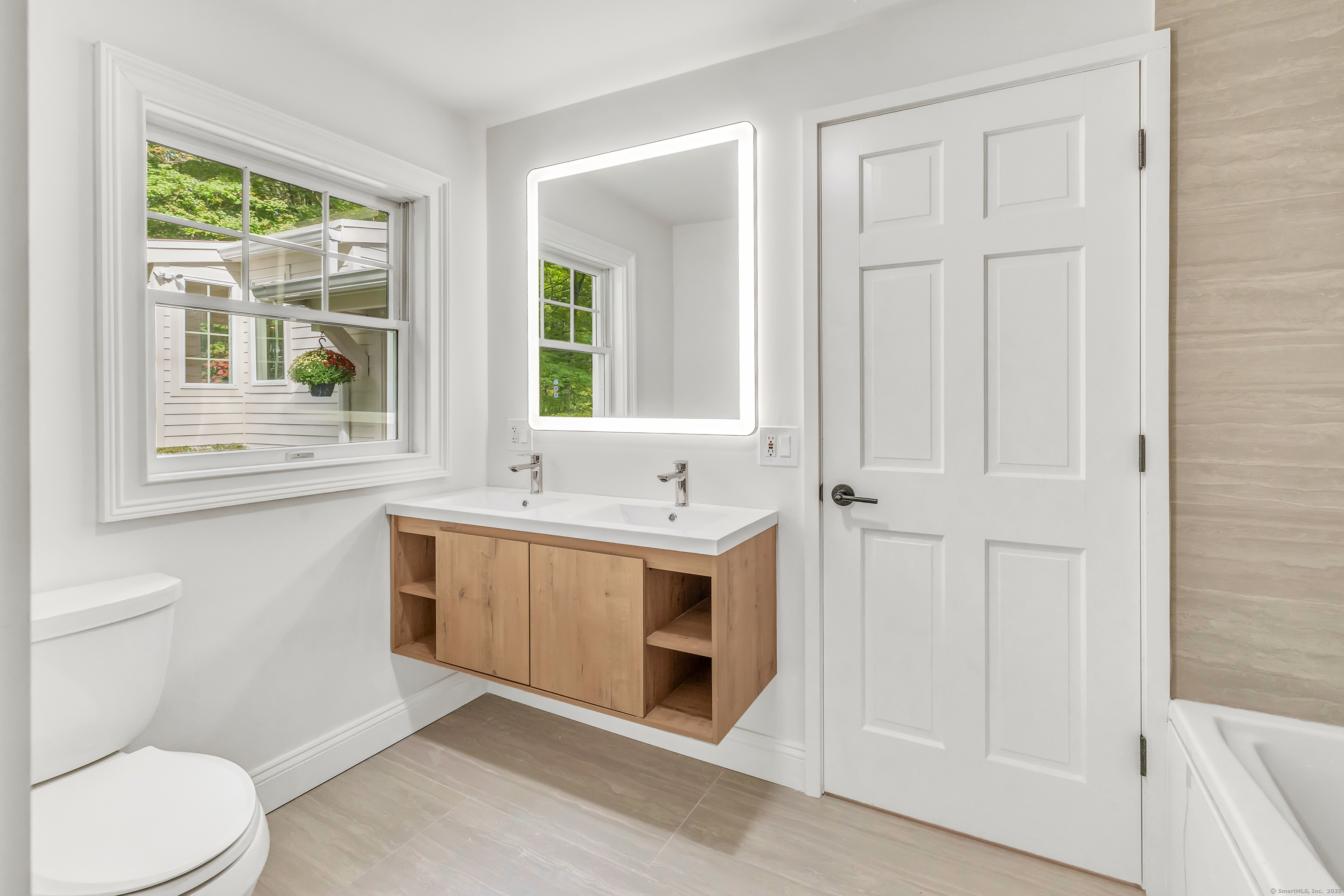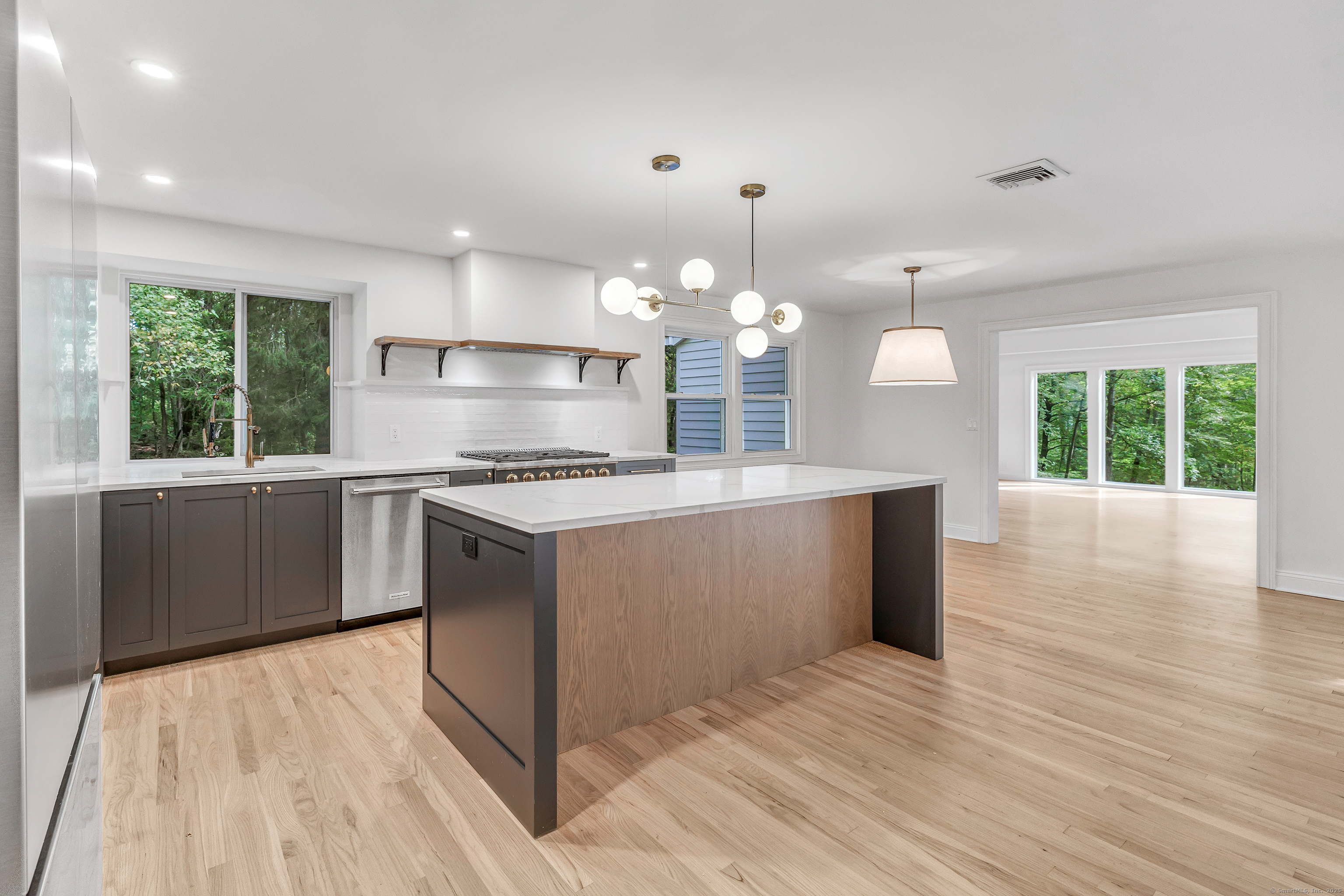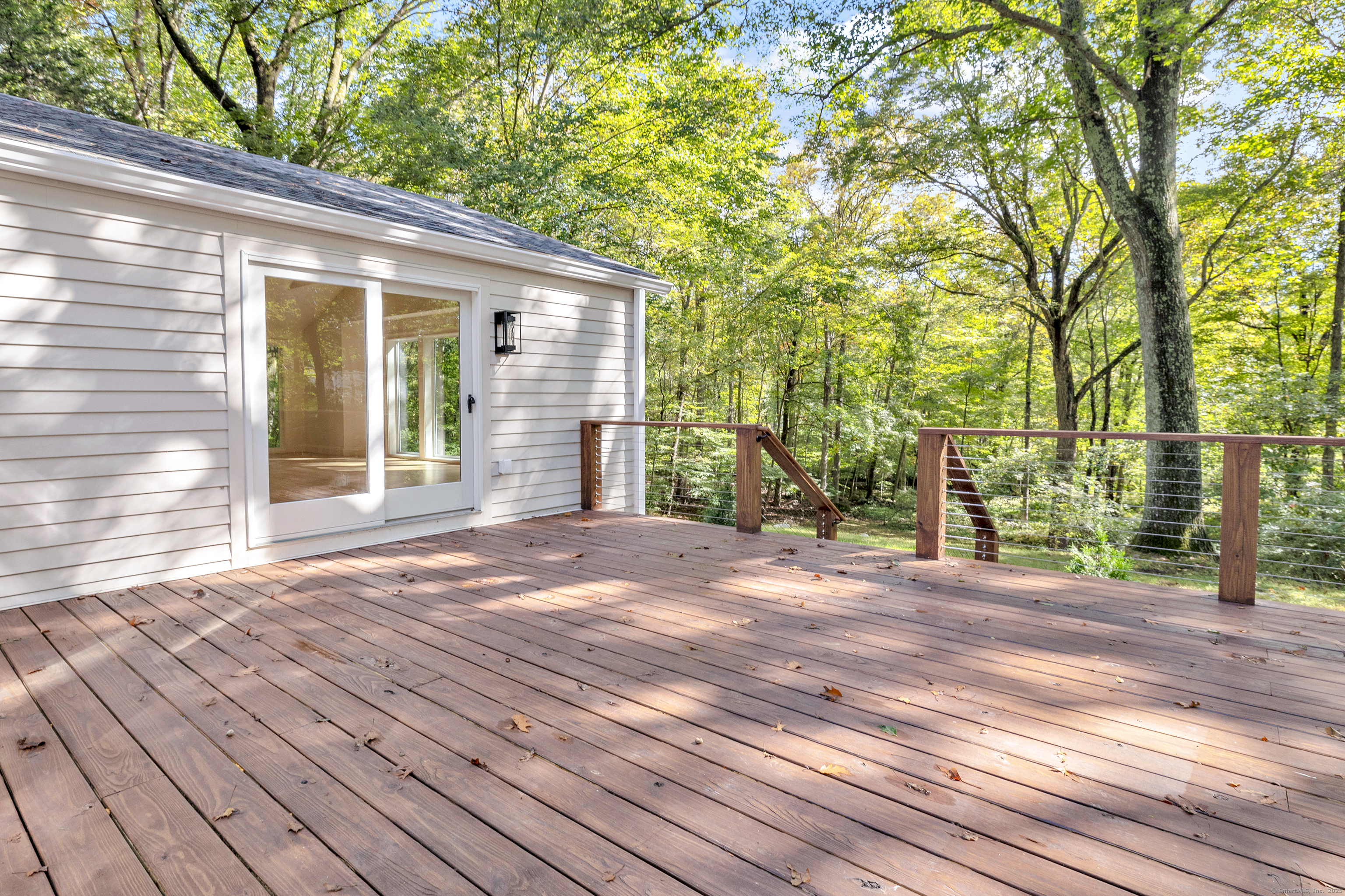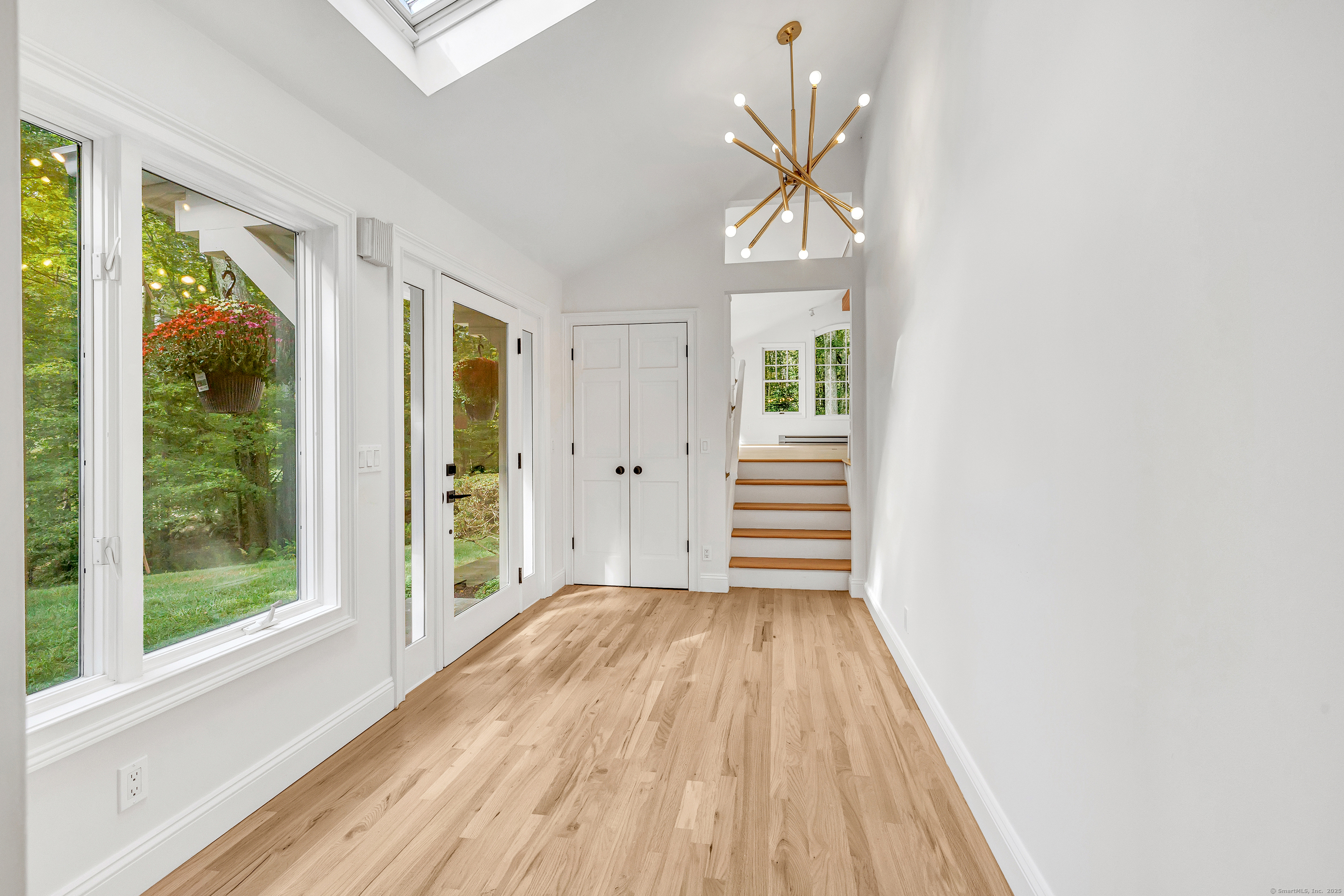 Bluestone walkway leading to the tastefully renovated 3,000+ sqft, four-bedroom, three full-bath New England retreat with direct waterfront access on the Aspetuck River. Enjoy a tucked-away and serene property on a private lane in Lower Weston, minutes to Westport and Weston town centers, and award-winning schools. Brand new kitchen, bathrooms, fiber-cement siding, hydro air forced air heating, all appliances, and laundry. New garage doors and garage door openers. Many windows and doors are new; new and refinished hardwood floors. New large deck with modern cable railings. Professional landscaping. Comfortable ONE LEVEL LIVING.