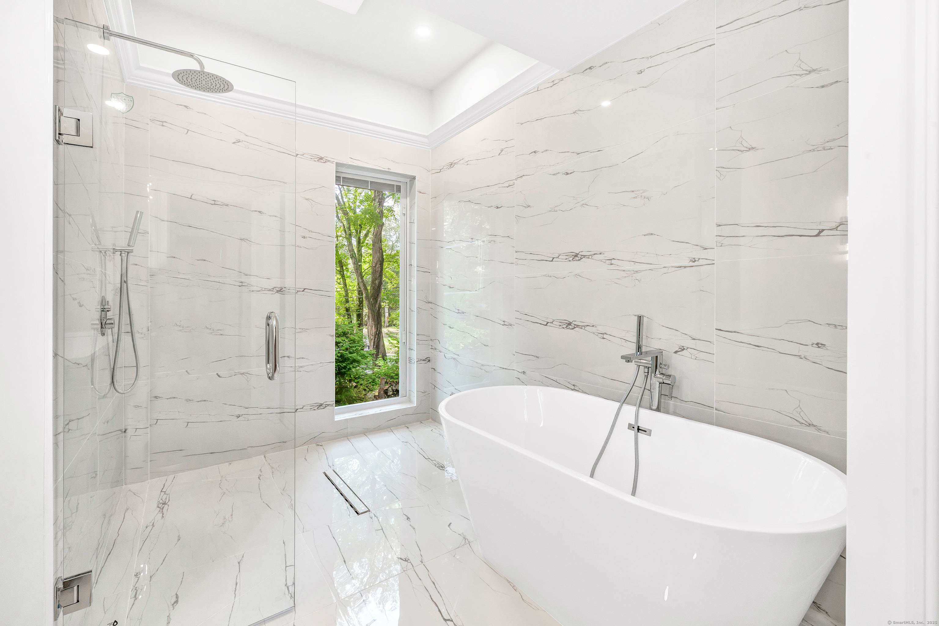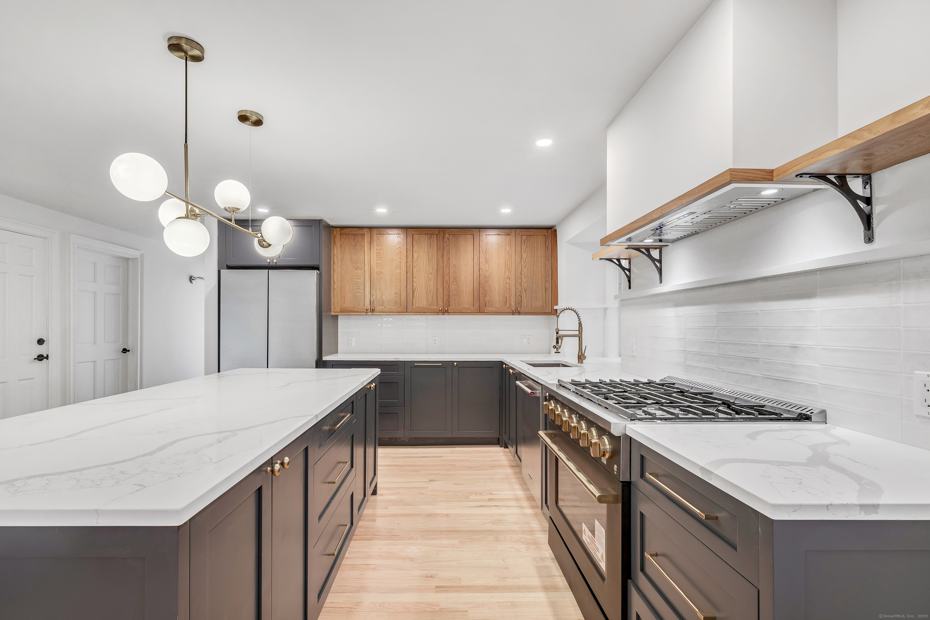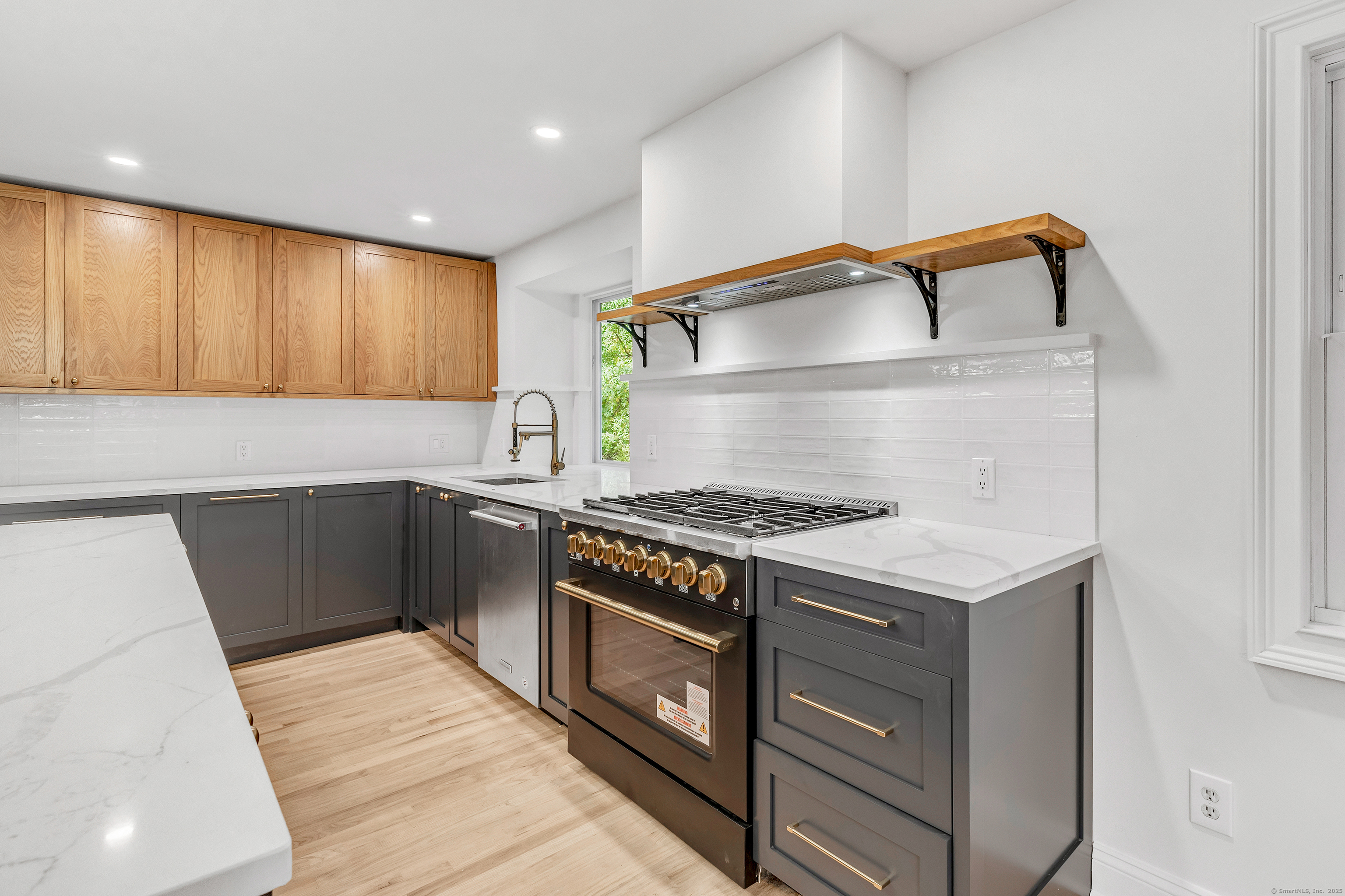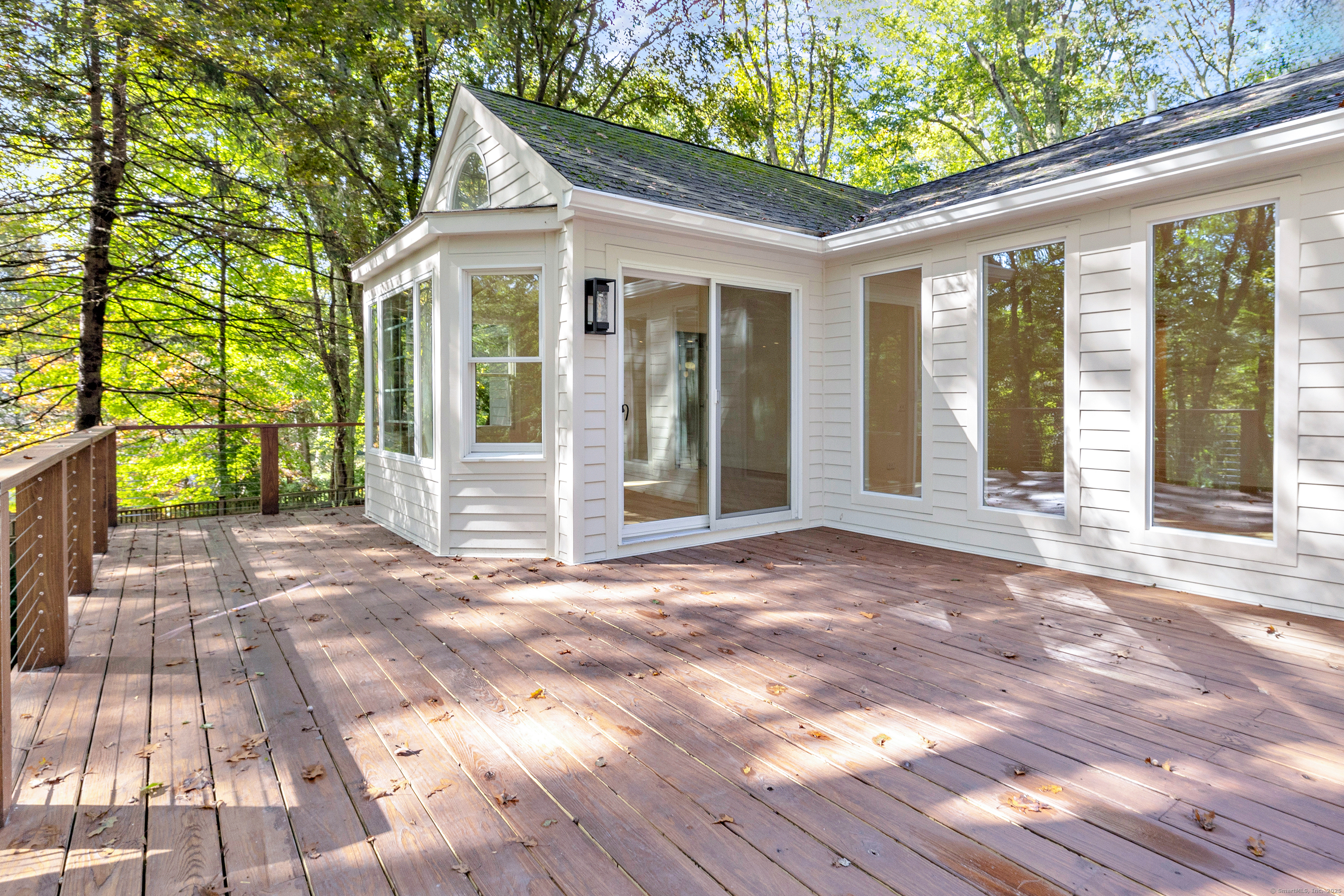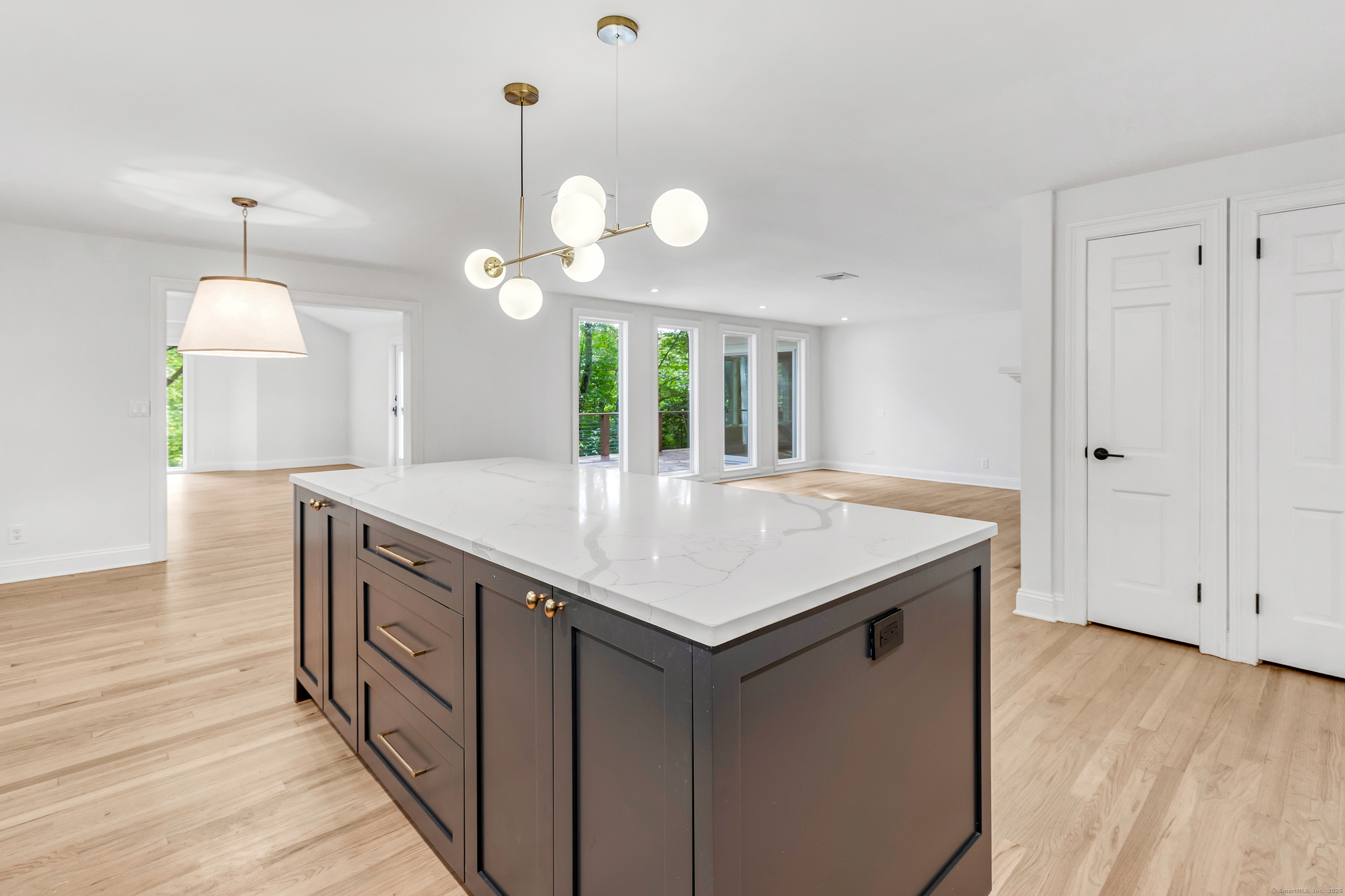 Bluestone walkway leading to the tastefully renovated 3,000+ sqft, four-bedroom, three full-bath New England retreat with direct waterfront access on the Aspetuck River. Enjoy a tucked-away and serene property on a private lane in Lower Weston, minutes to Westport and Weston town centers, and award-winning schools. Brand new kitchen, bathrooms, fiber-cement siding, hydro air forced air heating, all appliances, and laundry. New garage doors and garage door openers. Many windows and doors are new; new and refinished hardwood floors. New large deck with modern cable railings. Professional landscaping. Comfortable ONE LEVEL LIVING.