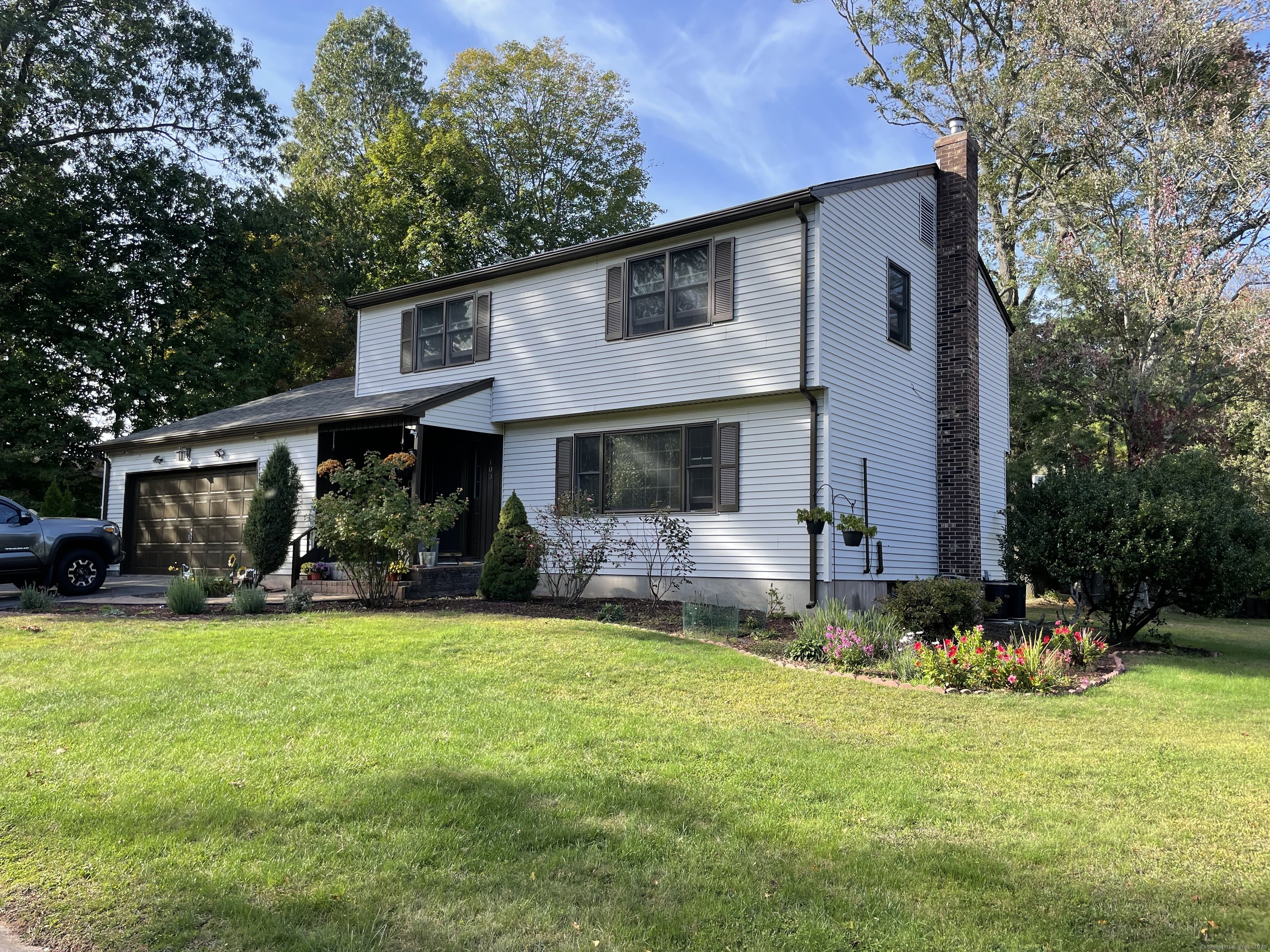 Beautiful Colonial in a great neighborhood and not far from all kinds of stores and restaurants. Walk into the home to a large foyer with a large closet. To the left is the full set of stairs to the 2nd floor. To the right is the living room with hardwood floor and opens to the formal dining room and then leads you to the oversized open white kitchen with a step down to the family room that opens to the back yard with an area to relax in and/or to sit down and enjoy meals. Back to the Hallway with a remodeled half bath and then back to the front. The second floor has 4 bedrooms and 2 full baths. All with hardwood floors. The primary bedroom has a newly remodeled full bath with a large shower. Stay cool in the summer with CAIR and warm in the winter with extra insulation having been added.