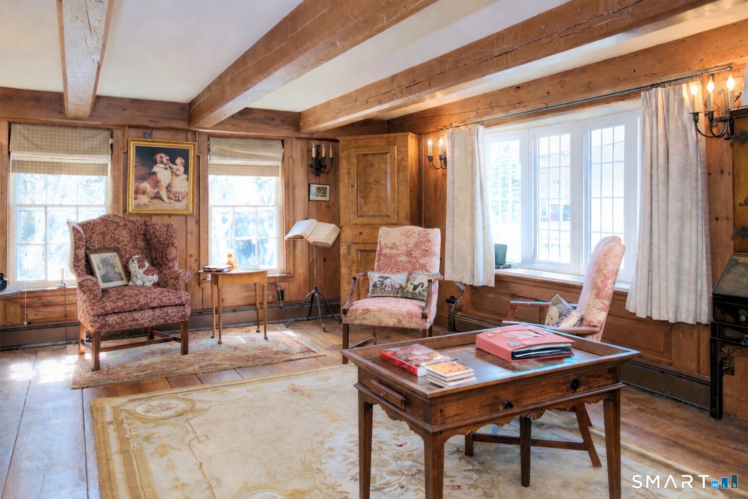Antique lovers- bring your vision and discover the incredible potential this home has to offer! Honored as one of Ridgefield's historic homes, this is a rare offering where timeless character and everyday livability come together. Layered with history, the 18th-century residence, later expanded in the 19th century, retains its original charm. With the front portion of the home dating back to 1732, this remarkable property showcases beautifully preserved chestnut flooring and pine and poplar beams throughout the interior, while the exterior is complemented by exceptional stonework. All rooms offer its own charm, highlighted by distinctive wooden doors- each with its own character and paired with original materials that create a true sense of history. The living room features a wood-burning fireplace and built-ins, while the dining room offers a second fireplace and a charming built-in dumbwaiter. The kitchen blends function and character w/ direct access to the backyard. The main level includes two bedrooms, one with a half bath, and a large window overlooking the private yard. Upstairs, a cozy library with built-ins and a skylight provides a perfect retreat, along with a primary suite featuring a full bath and serene property views. The walk-out lower level offers flexible space w/ a kitchen, full bath & a versatile room ideal for use as a bedroom. A wonderful opportunity for thoughtful restoration, allowing you to preserve & enhance its historic character for years to come