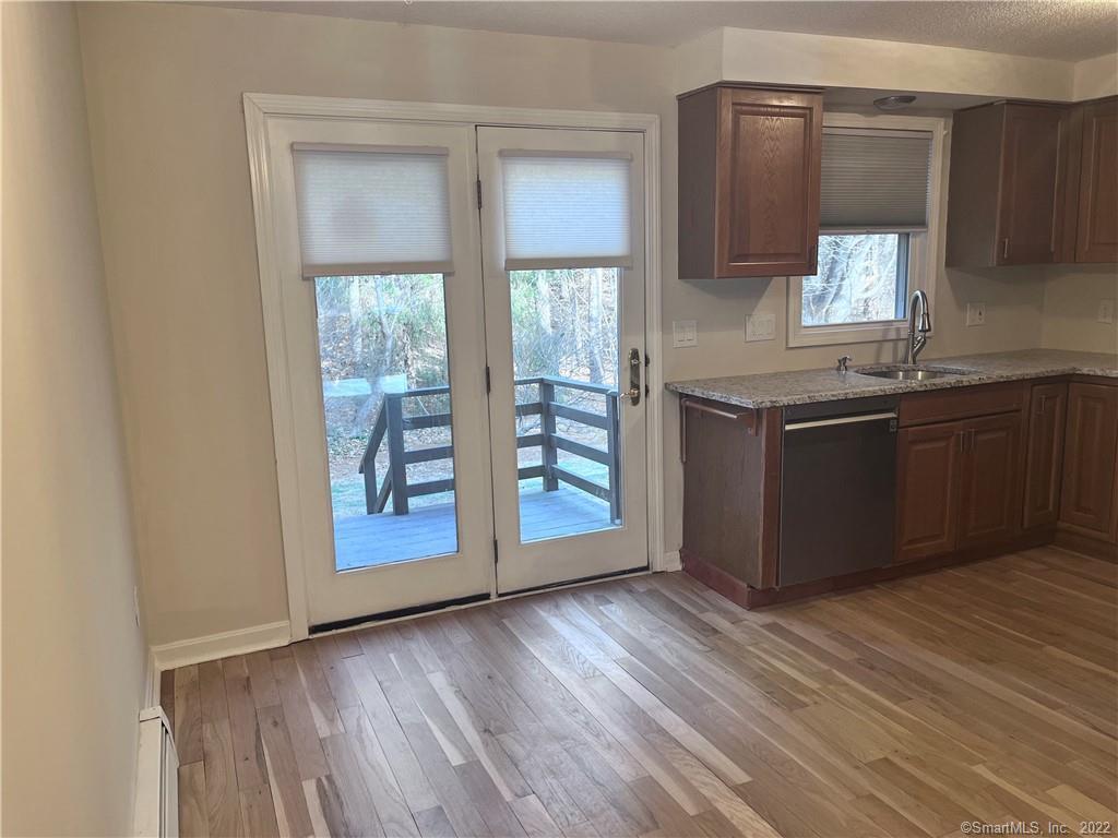 Beautiful townhouse condominium in quiet, country setting! New Granite Countertops in Kitchen, Stainless Steel Appliances, French Doors to Deck. Hardwood Floors just refinished on first floor. Half Bath on First Floor. Two Bedrooms, One full bath on second floor, with access from Master Bedroom and Hallway. Two Large Closets in Master Bedroom. Two Finished Lower Level Rooms, Laundry in lower level. One-car garage, pool, basketball, and clubhouse! Agent related to owner