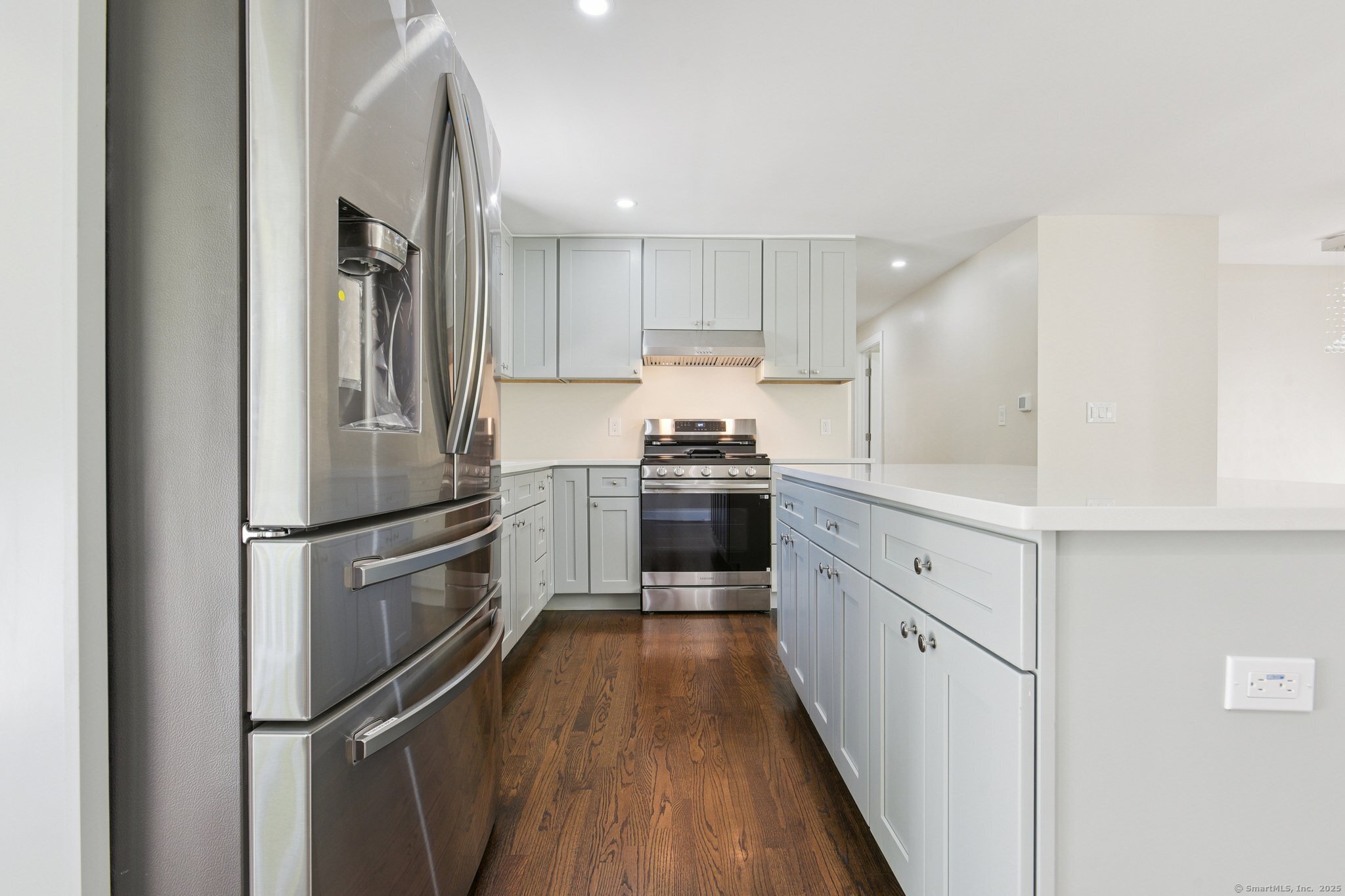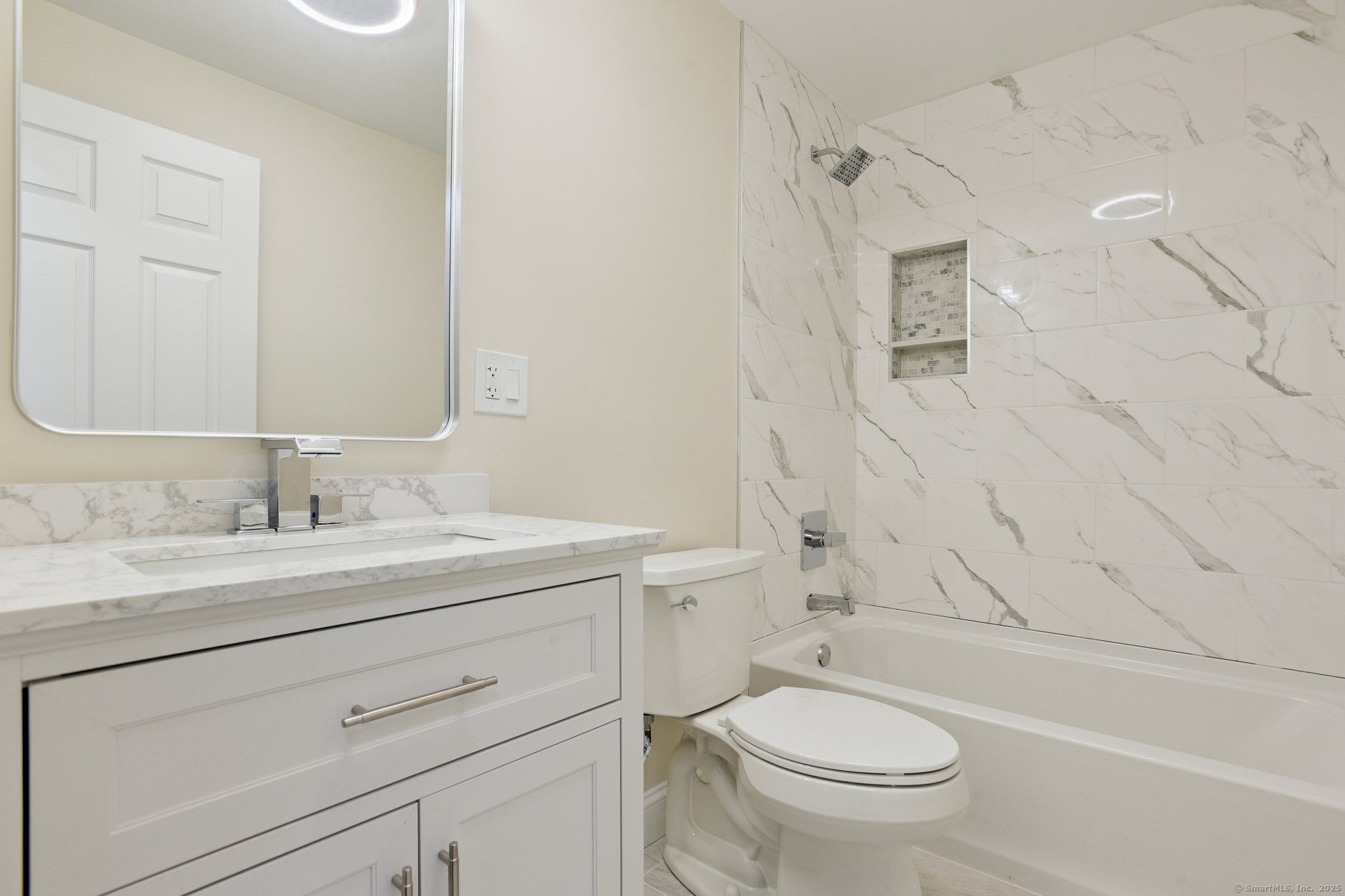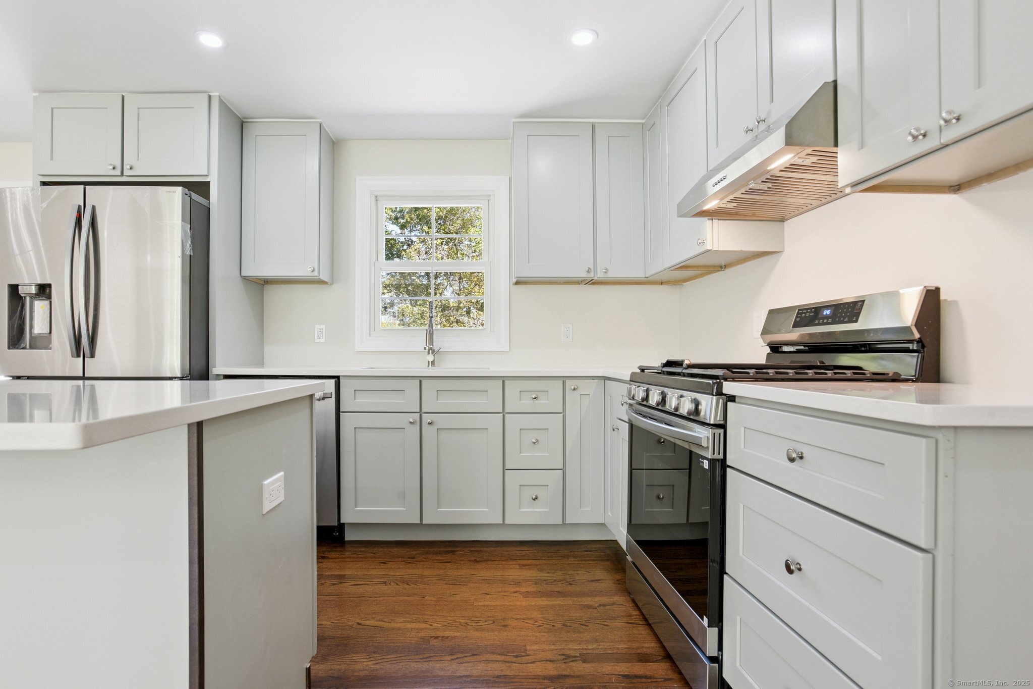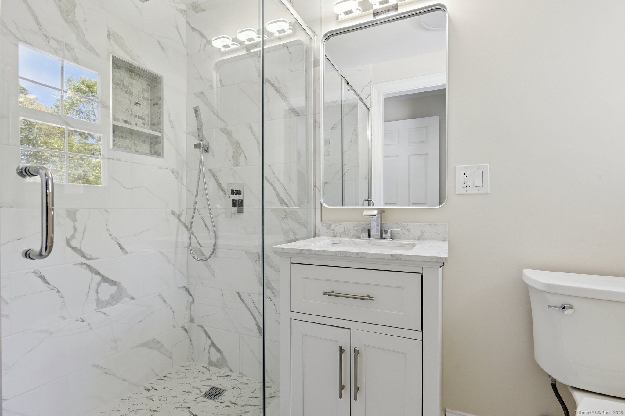 Welcome to this exquisitely renovated turnkey home. This property features 4 bedrooms, 2.1 bathrooms, & a 2-car garage as well as an upgraded tankless system. Set back from the street, the home offers a sense of seclusion & abundant space. Newly paved driveway that provides ample parking & an ideal recreational area for families. Step inside to discover an open-concept main floor blending form and function. The layout has the newly remodeled kitchen with island & modern appliances. The adjacent dining area opens to a large rear deck, offering picturesque views of the lightly wooded backyard-a tranquil oasis perfect for relaxation & entertainment. The main level has three secondary bedrooms, sparkling tiled hall bath, and a master suite with en-suite bathroom. Newly refinished hardwood floors add warmth throughout. For additional living space, the lower level features a large, open family room, a convenient laundry room, and a half bath, with direct access to the attached garages. Nestled in a peaceful residential setting, you're minutes from dining and shopping. Commuters will appreciate the easy access to major routes including Route 80 and Interstate 95. The home is ideally situated between North Branford center and the charming Branford Shoreline, and only a 10-minute drive to either Wallingford or New Haven.