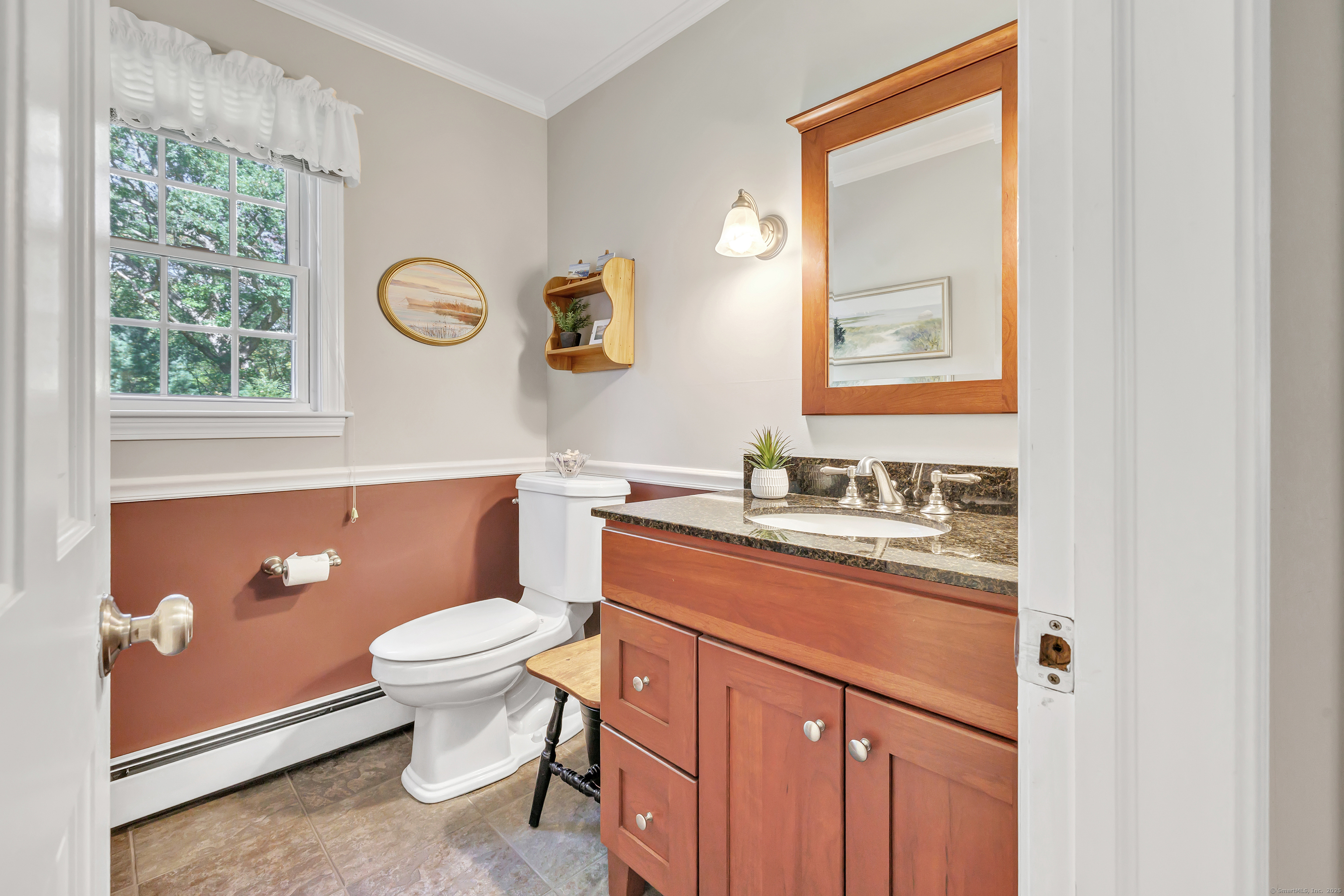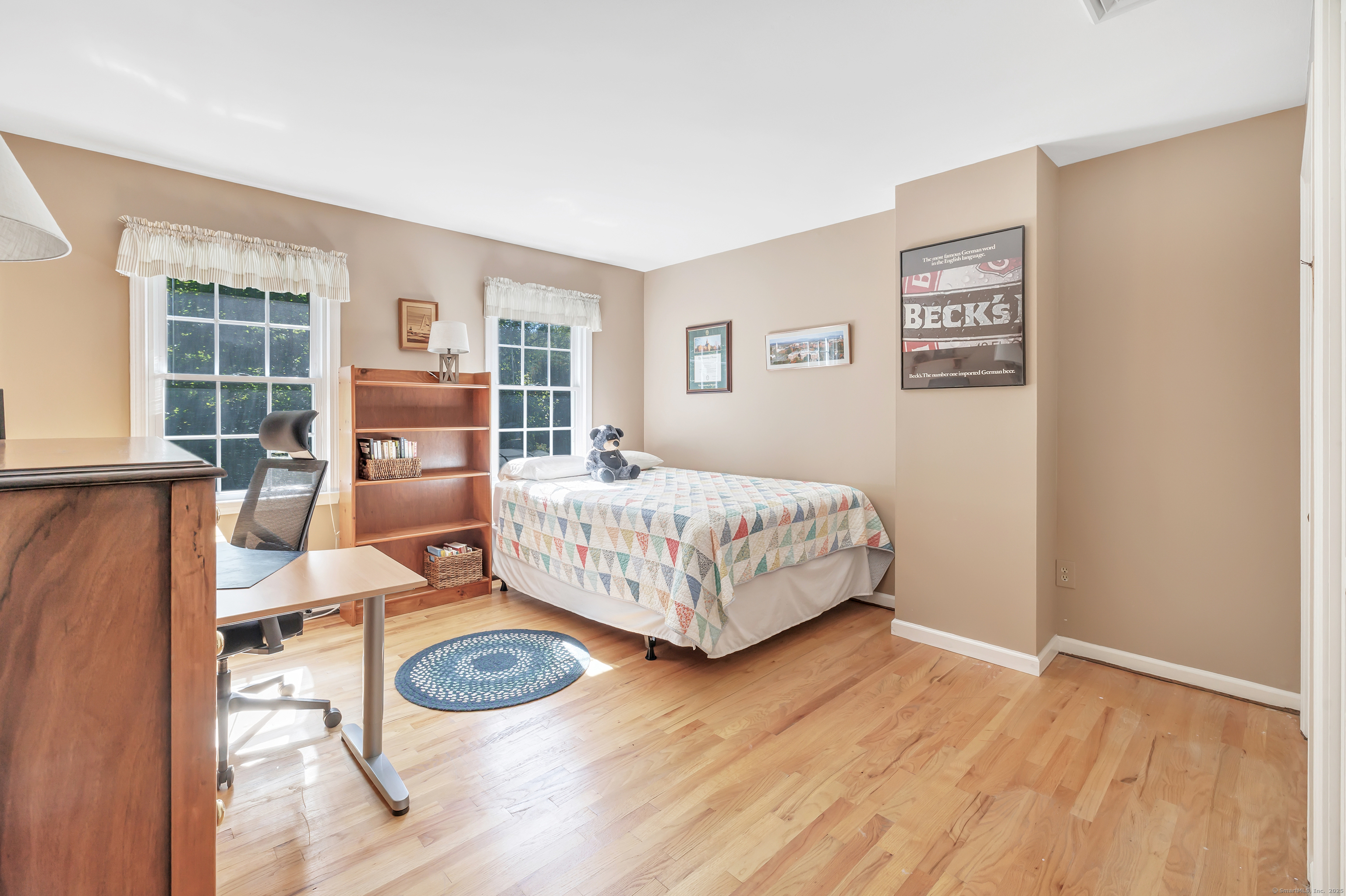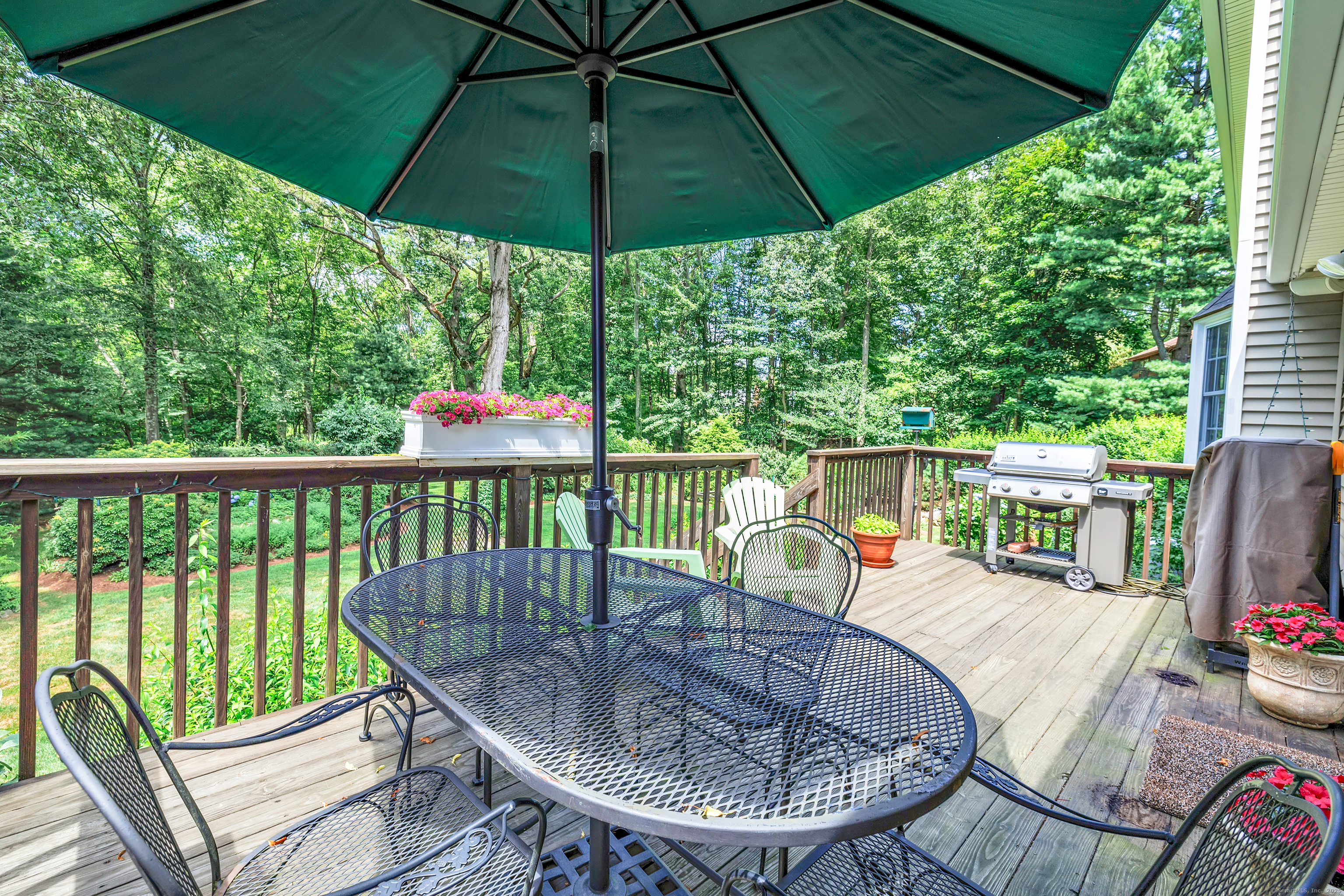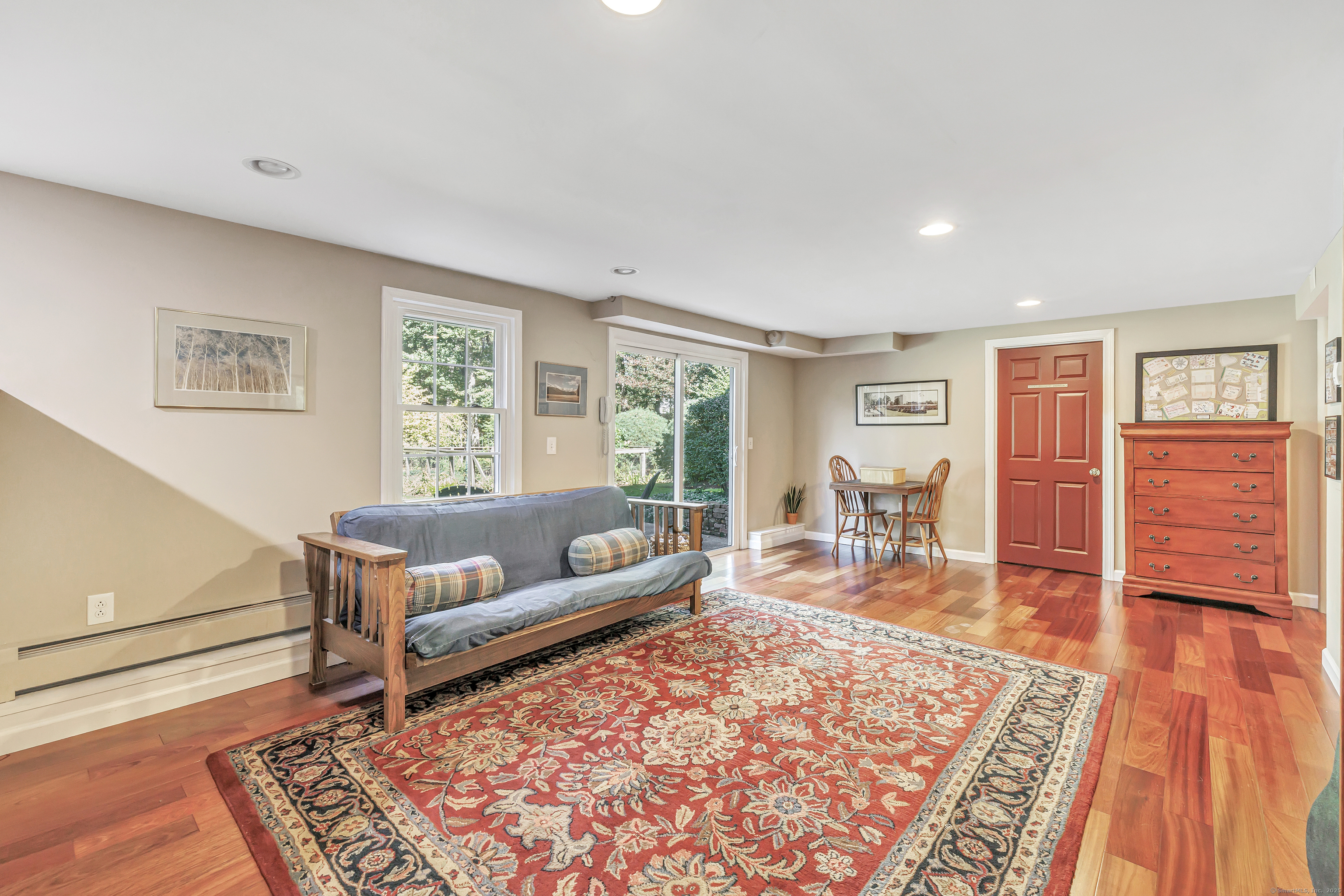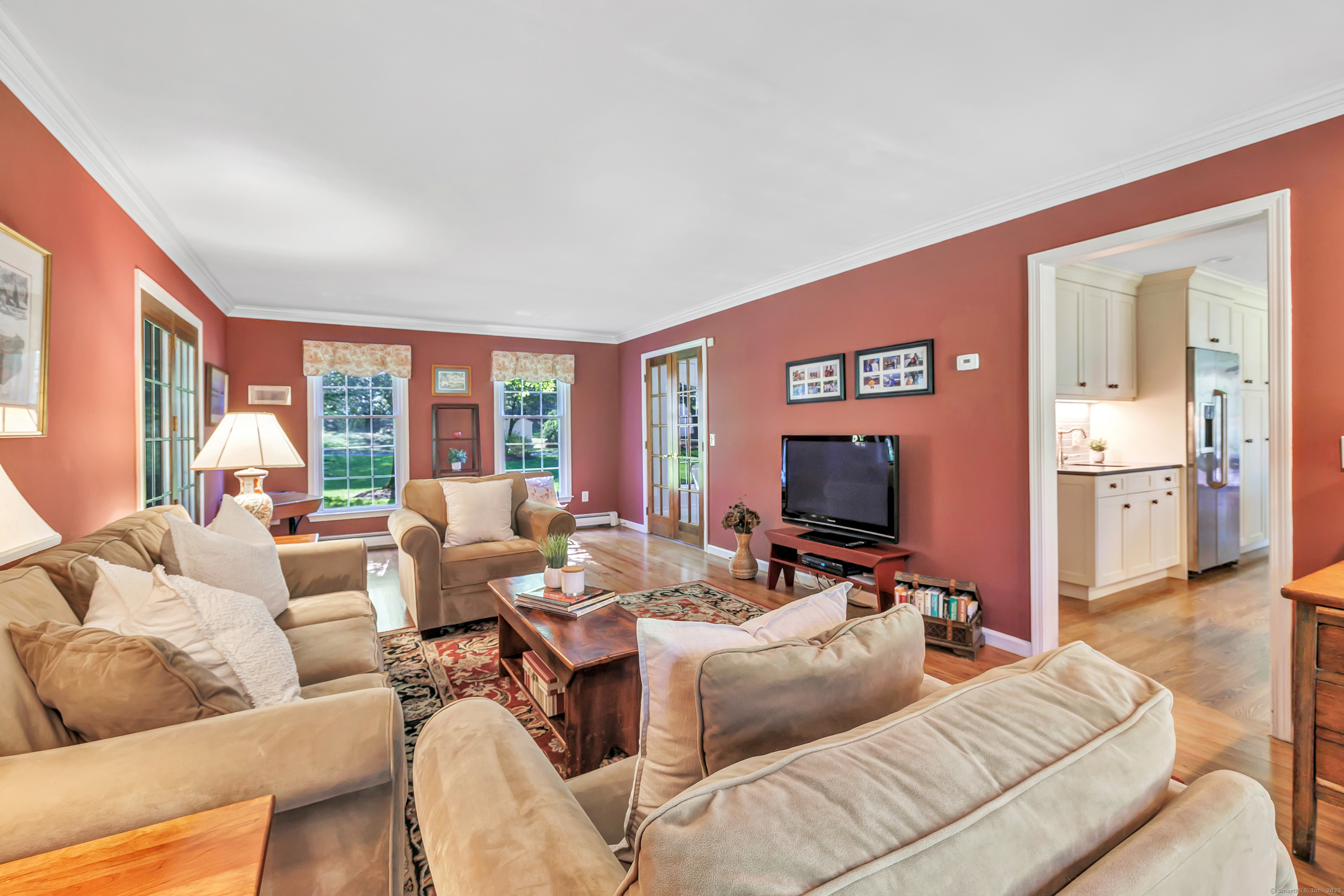 Welcome to 23 Finchwood Drive, nestled in the highly sought-after Nichols neighborhood! This gorgeous colonial blends timeless charm with modern updates, featuring hardwood floors, French doors, and abundant character throughout. The inviting foyer opens to a spacious front-to-back living room with French doors leading to a charming sun porch-perfect for peaceful evenings or family dinners. The sun porch opens to a second deck, creating a seamless indoor-outdoor flow. The custom, updated kitchen is an entertainer's dream with granite counters, a reclaimed wood-top island, gas stove, farmhouse sink, wet bar, and pantry. Adjacent are the formal dining room, half bath, and a magnificent family room with vaulted ceilings, exposed wood beams, a floor-to-ceiling brick wood-burning fireplace, a second wet bar, and french doors leading to the main deck and backyard. Upstairs, the primary suite offers hardwood floors (under carpeting), a walk-in closet, and full bath with double vanity and shower. Three additional bedrooms share an updated hall bath. The walk-out lower level adds great bonus space-perfect for a rec room, gym or playroom-along with a large laundry area, mudroom and extra storage. Set on a beautifully landscaped level one-acre lot, the property features park-like grounds with a granite walkway, shed, and fenced garden. Located near the Nichols Improvement Association, Merritt Parkway, Route 8, shopping, and dining. A must-see home!