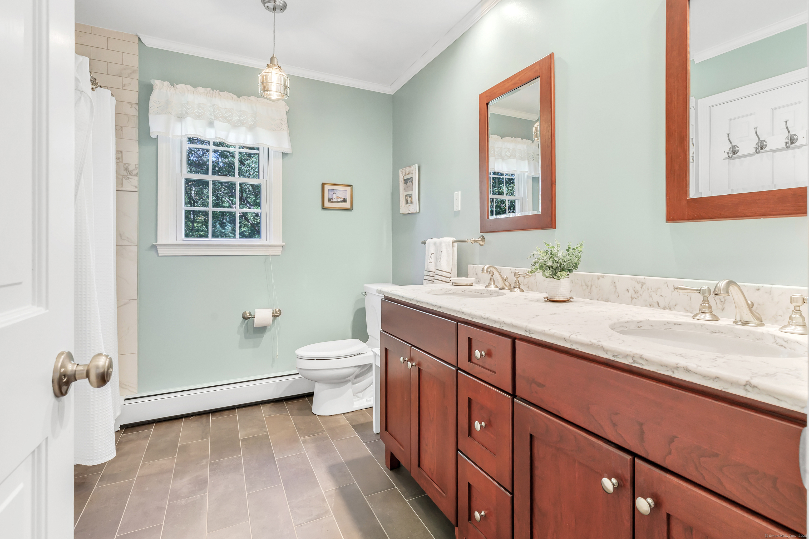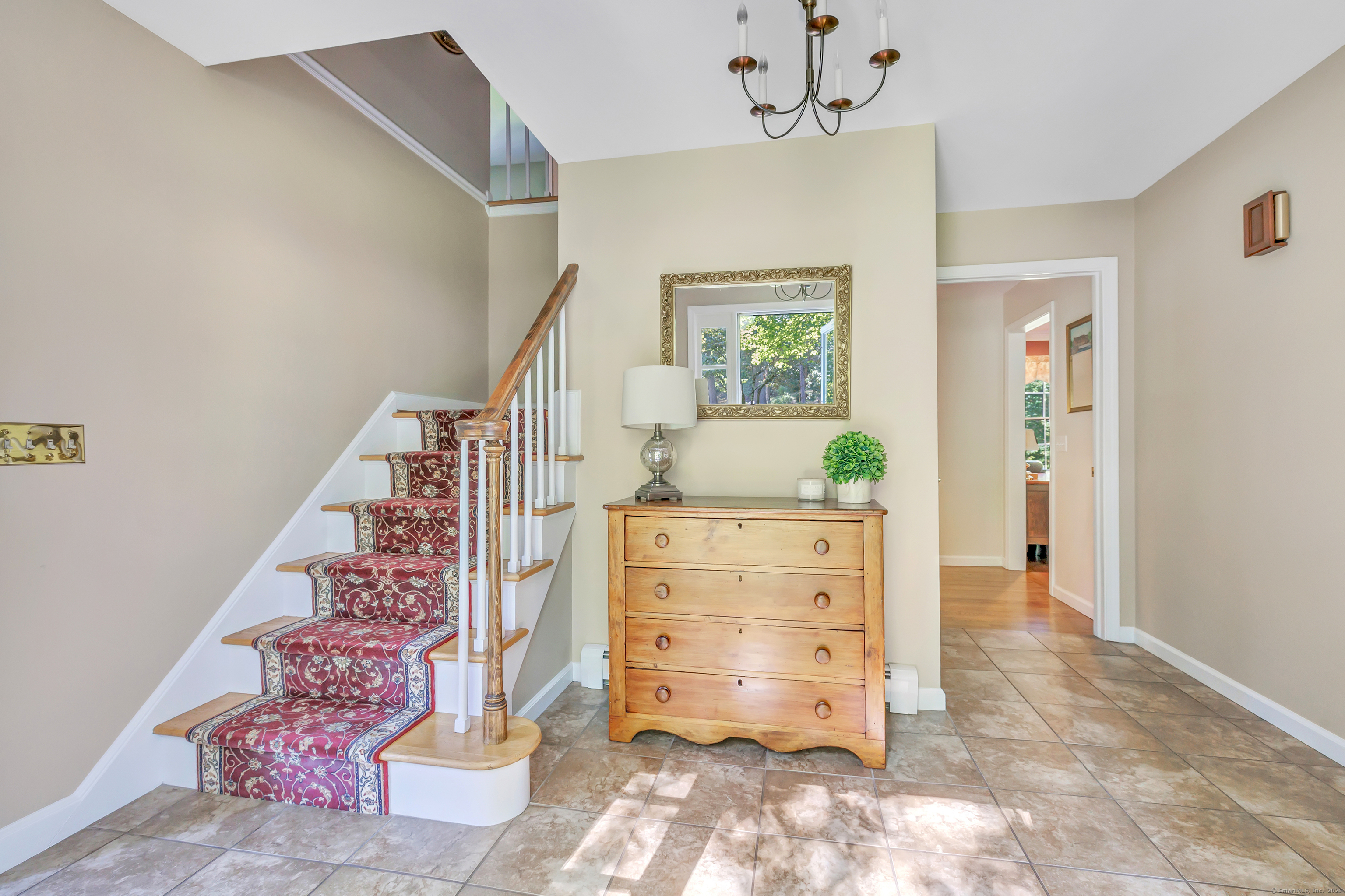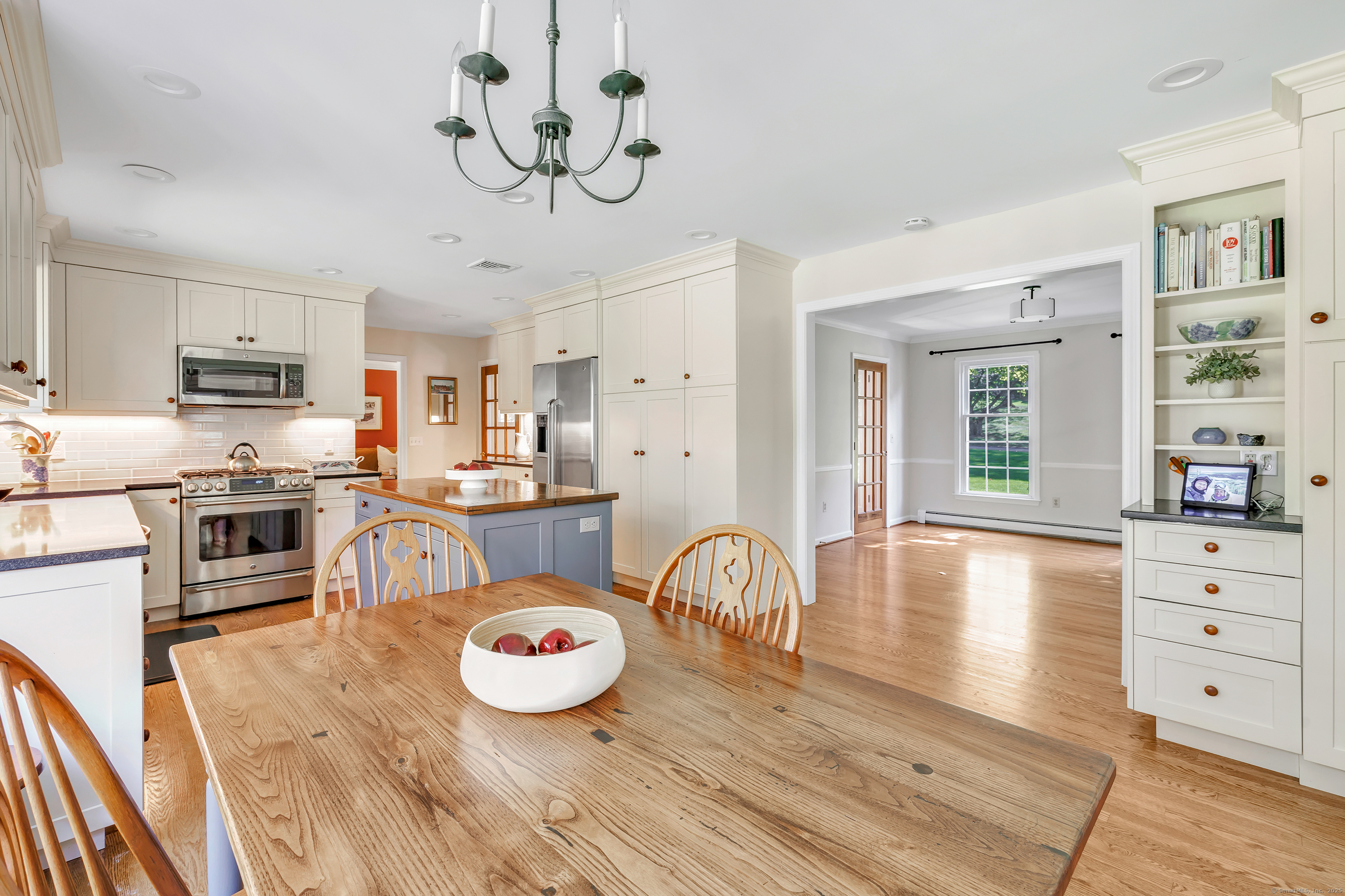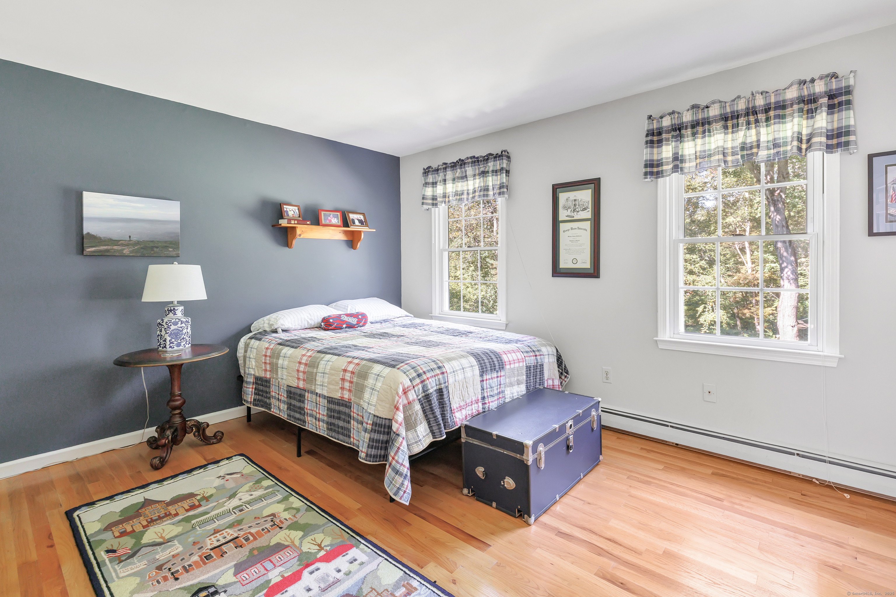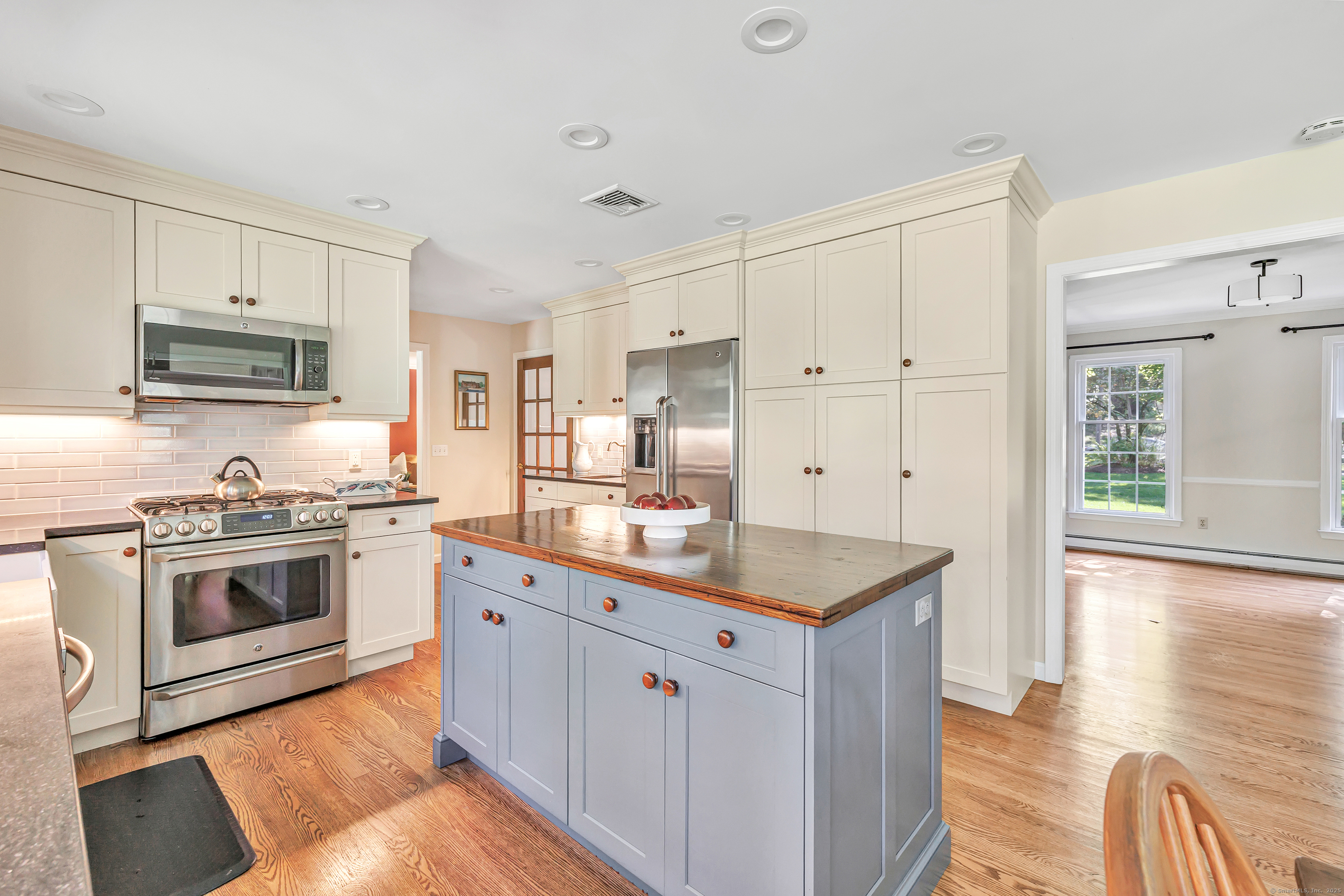 Welcome to 23 Finchwood Drive, nestled in the highly sought-after Nichols neighborhood! This gorgeous colonial blends timeless charm with modern updates, featuring hardwood floors, French doors, and abundant character throughout. The inviting foyer opens to a spacious front-to-back living room with French doors leading to a charming sun porch-perfect for peaceful evenings or family dinners. The sun porch opens to a second deck, creating a seamless indoor-outdoor flow. The custom, updated kitchen is an entertainer's dream with granite counters, a reclaimed wood-top island, gas stove, farmhouse sink, wet bar, and pantry. Adjacent are the formal dining room, half bath, and a magnificent family room with vaulted ceilings, exposed wood beams, a floor-to-ceiling brick wood-burning fireplace, a second wet bar, and french doors leading to the main deck and backyard. Upstairs, the primary suite offers hardwood floors (under carpeting), a walk-in closet, and full bath with double vanity and shower. Three additional bedrooms share an updated hall bath. The walk-out lower level adds great bonus space-perfect for a rec room, gym or playroom-along with a large laundry area, mudroom and extra storage. Set on a beautifully landscaped level one-acre lot, the property features park-like grounds with a granite walkway, shed, and fenced garden. Located near the Nichols Improvement Association, Merritt Parkway, Route 8, shopping, and dining. A must-see home!