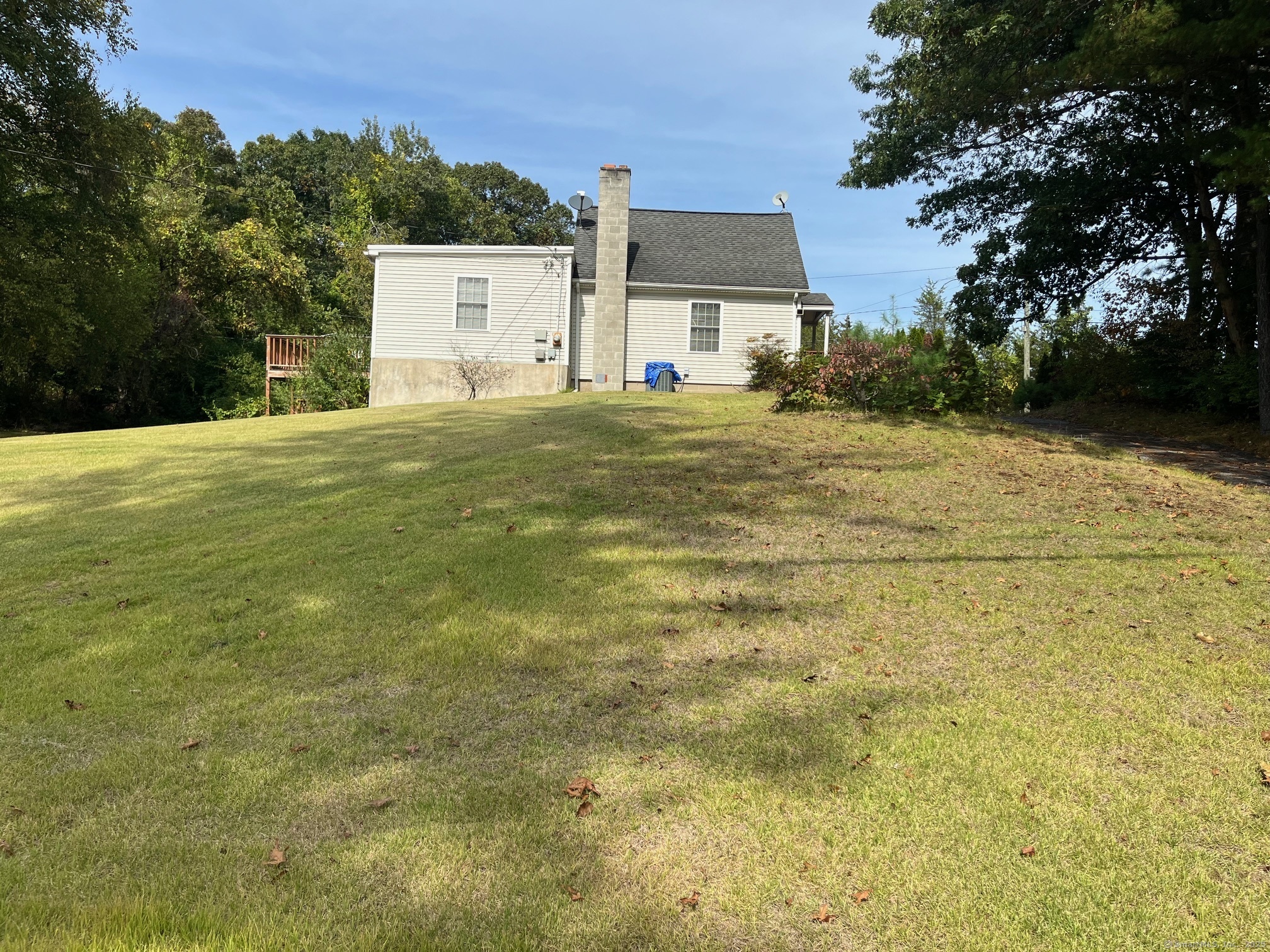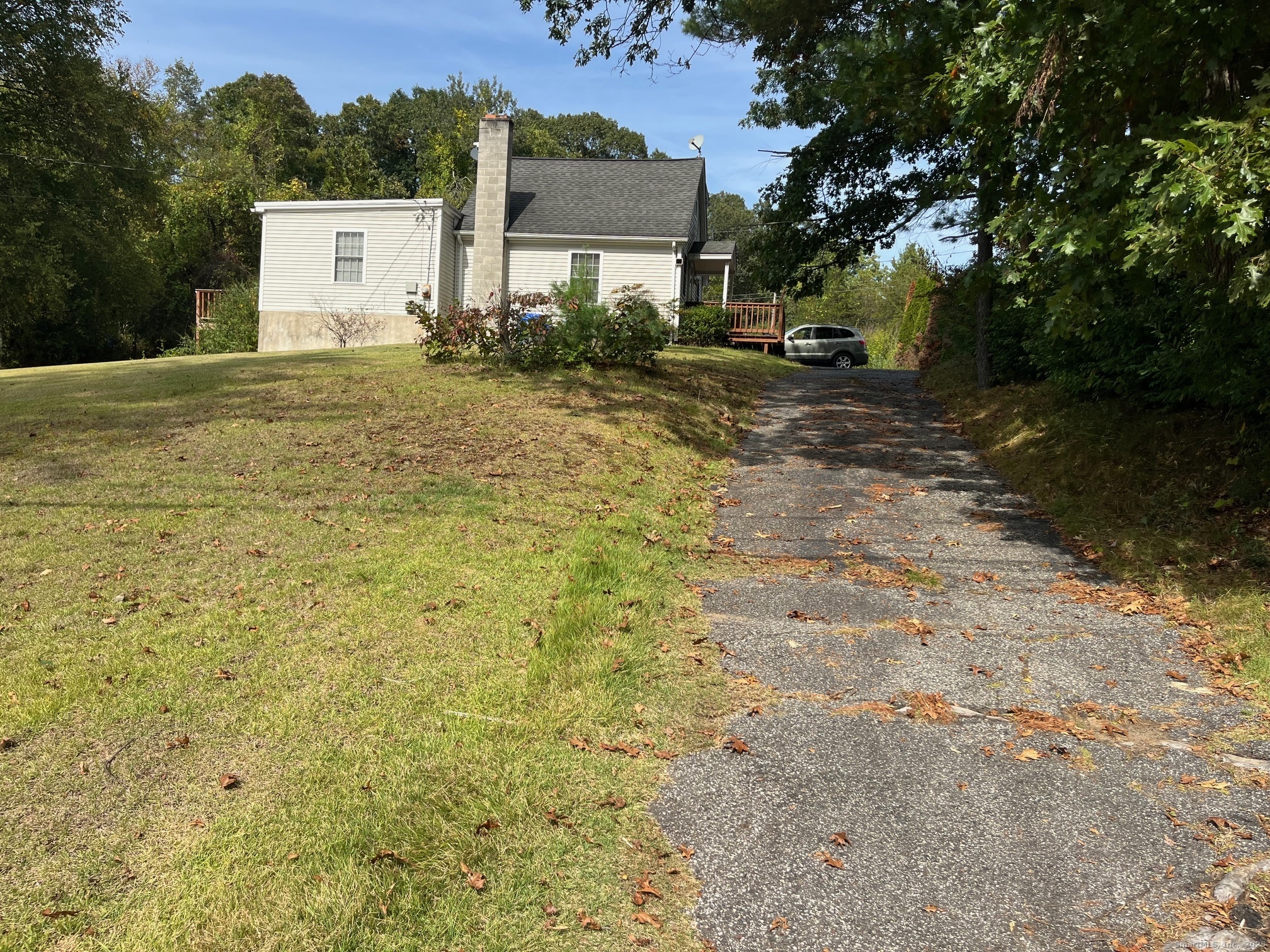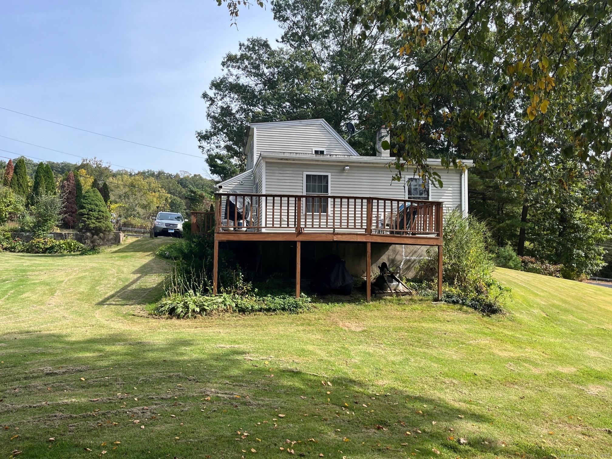 3 Bedroom Cape with the 2 full baths on a dead end street. Home offers some Living room with Hardwood flooring. Eat in Kitchen with Hardwood flooring. Primary Bedroom in upper level has a full bath. Lower level has 2 additional bedrooms and a hall Bath. Main level laundry room. Large yard with large shed. Large rear Deck for entertaining. Central Air! Home as is