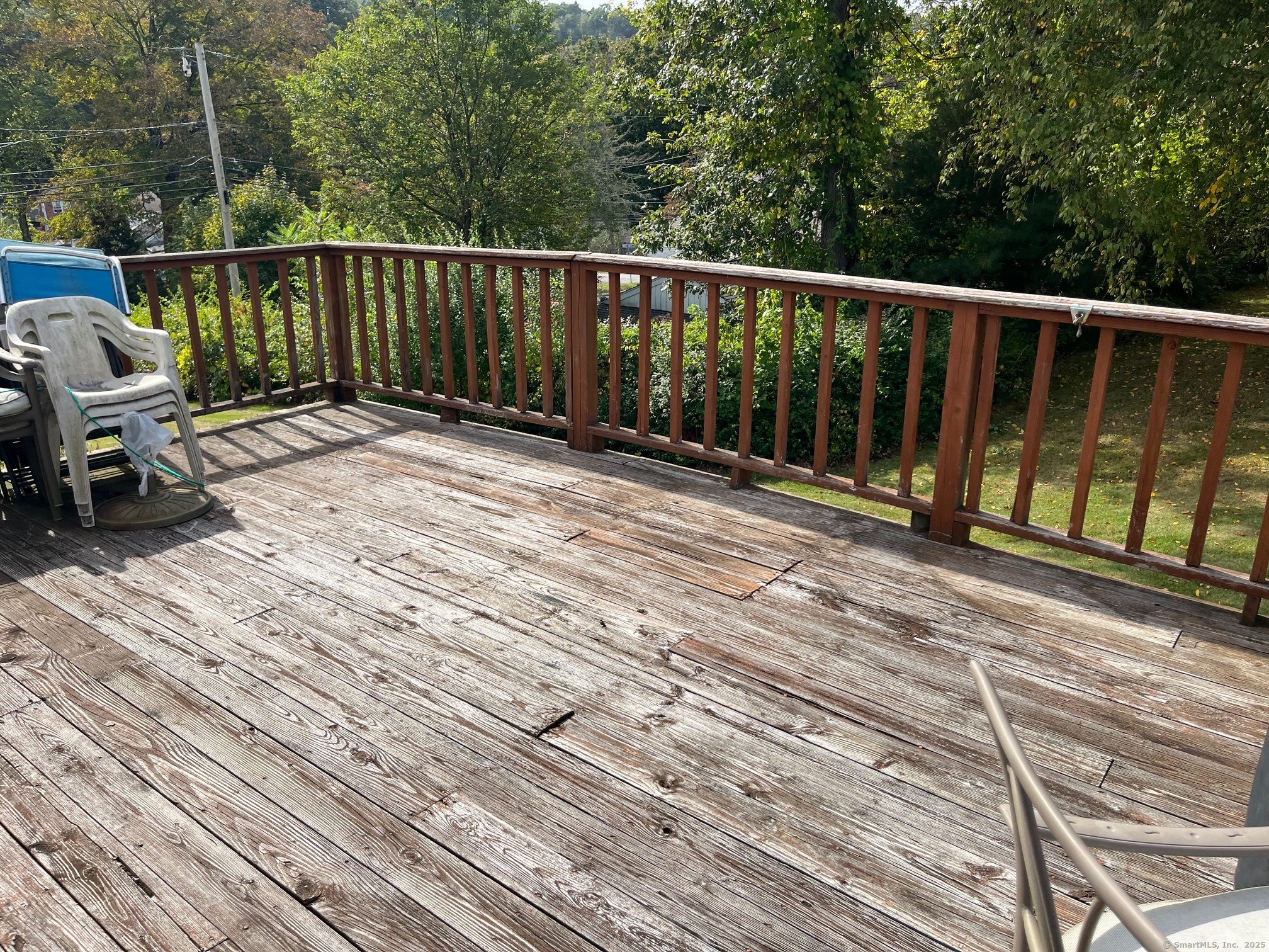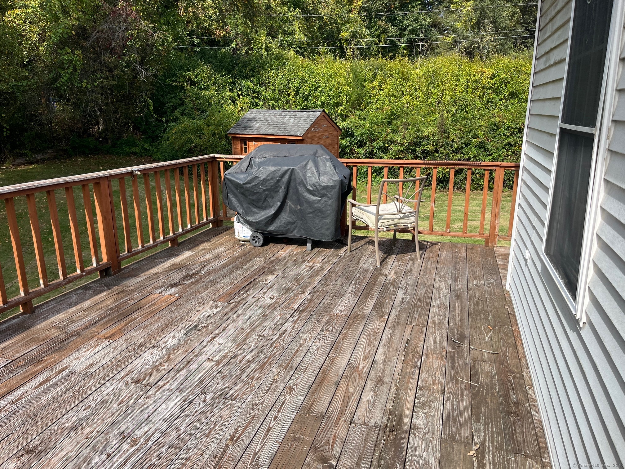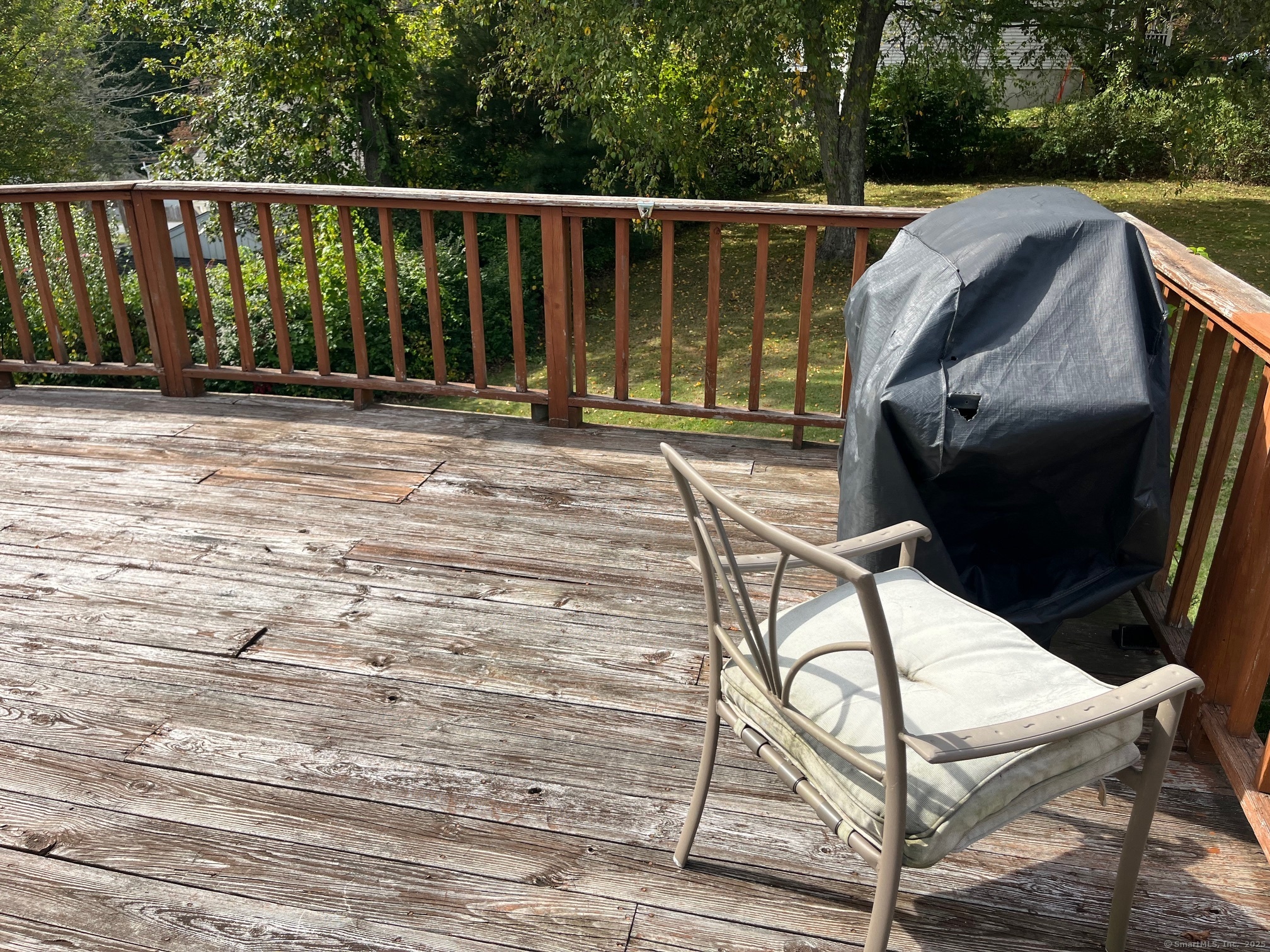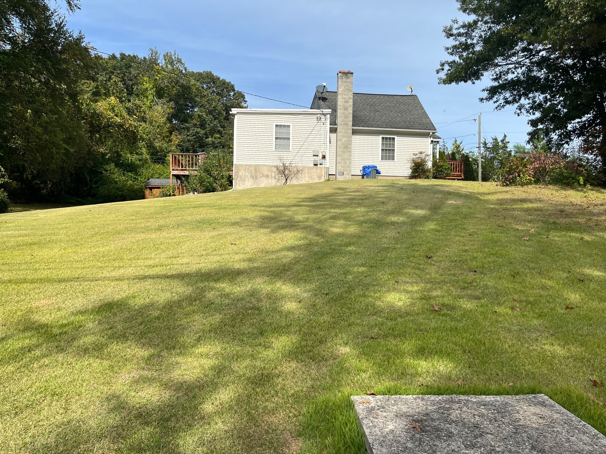 3 Bedroom Cape with the 2 full baths on a dead end street. Home offers some Living room with Hardwood flooring. Eat in Kitchen with Hardwood flooring. Primary Bedroom in upper level has a full bath. Lower level has 2 additional bedrooms and a hall Bath. Main level laundry room. Large yard with large shed. Large rear Deck for entertaining. Central Air! Home as is