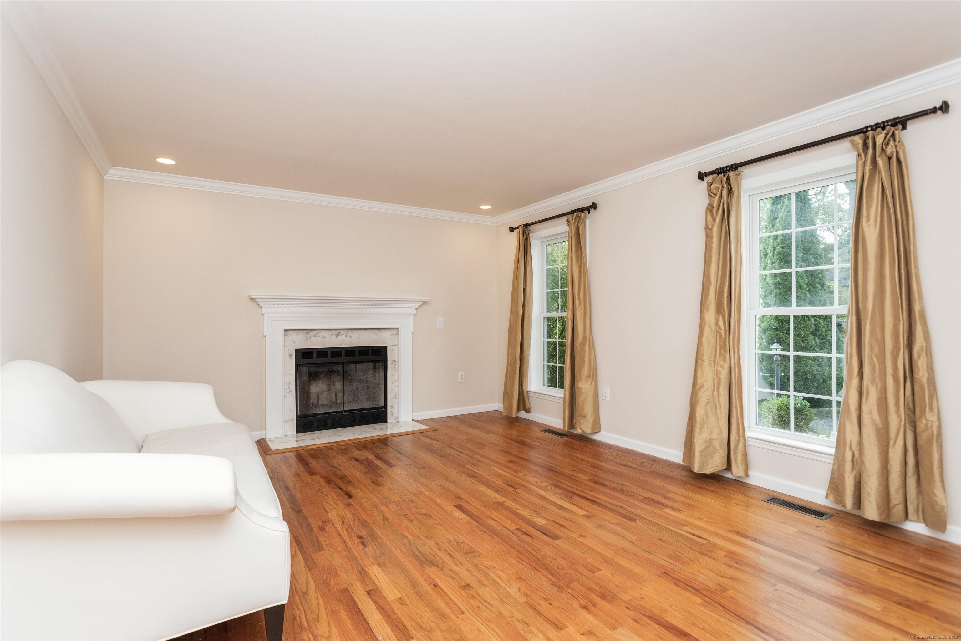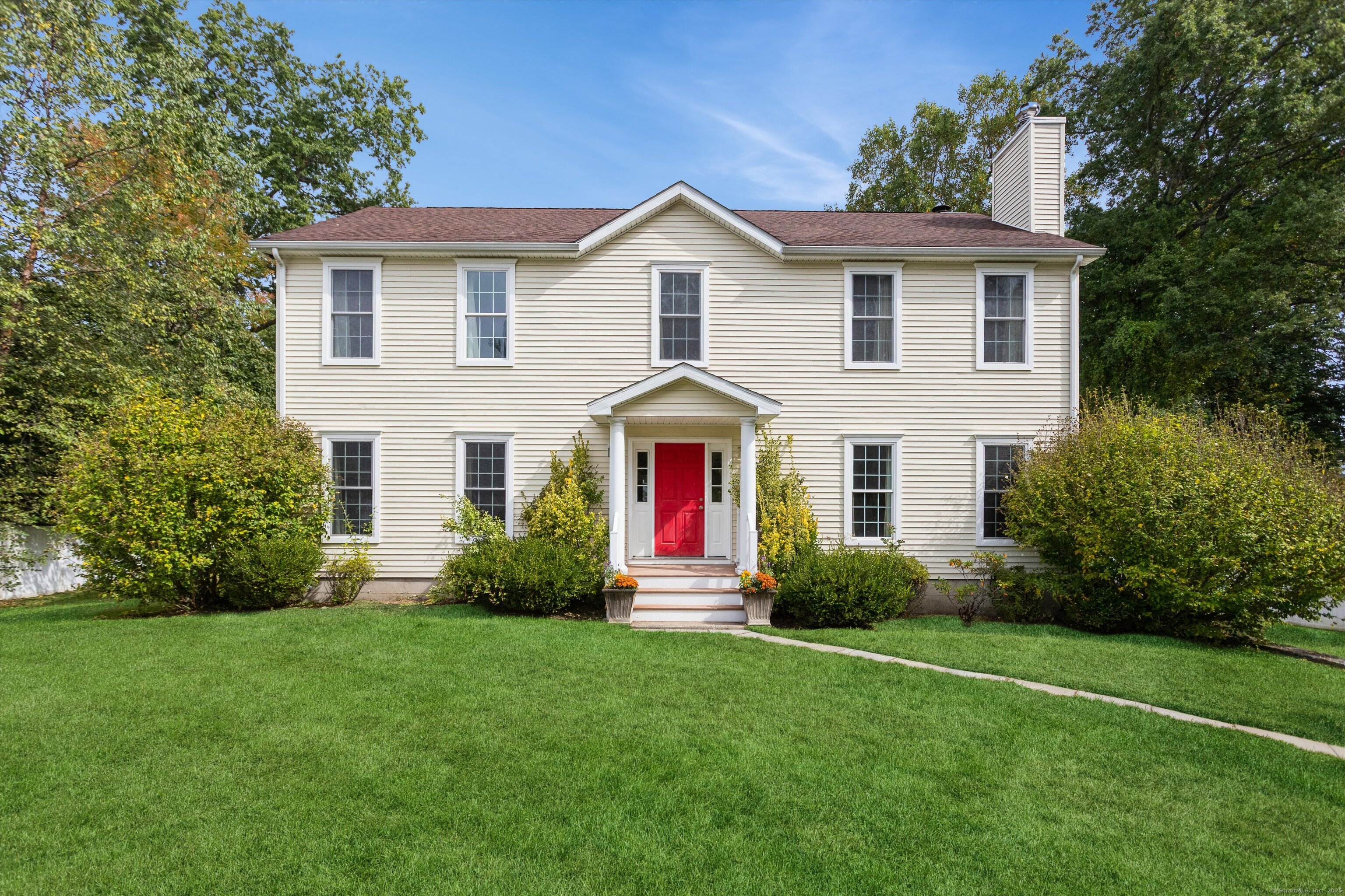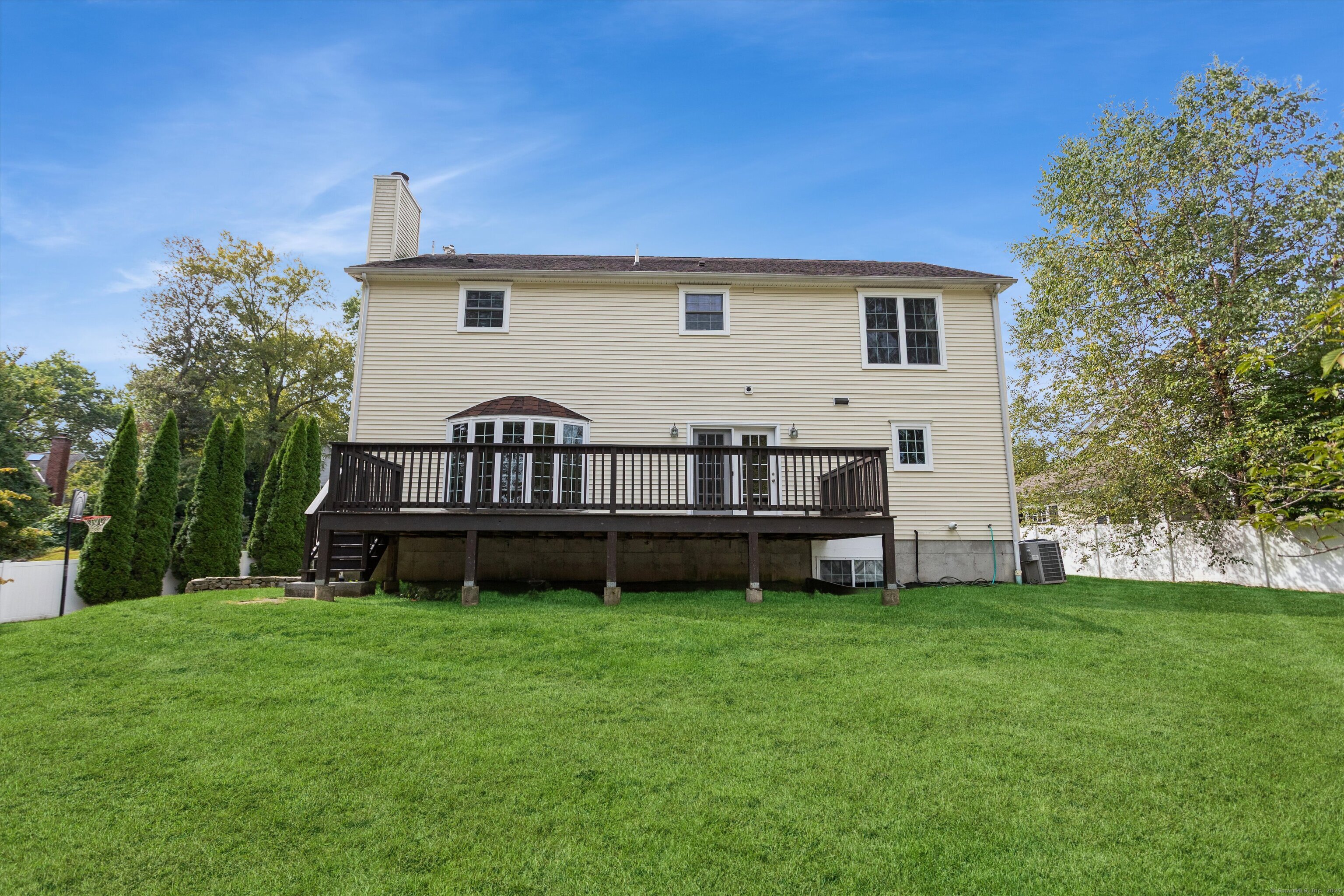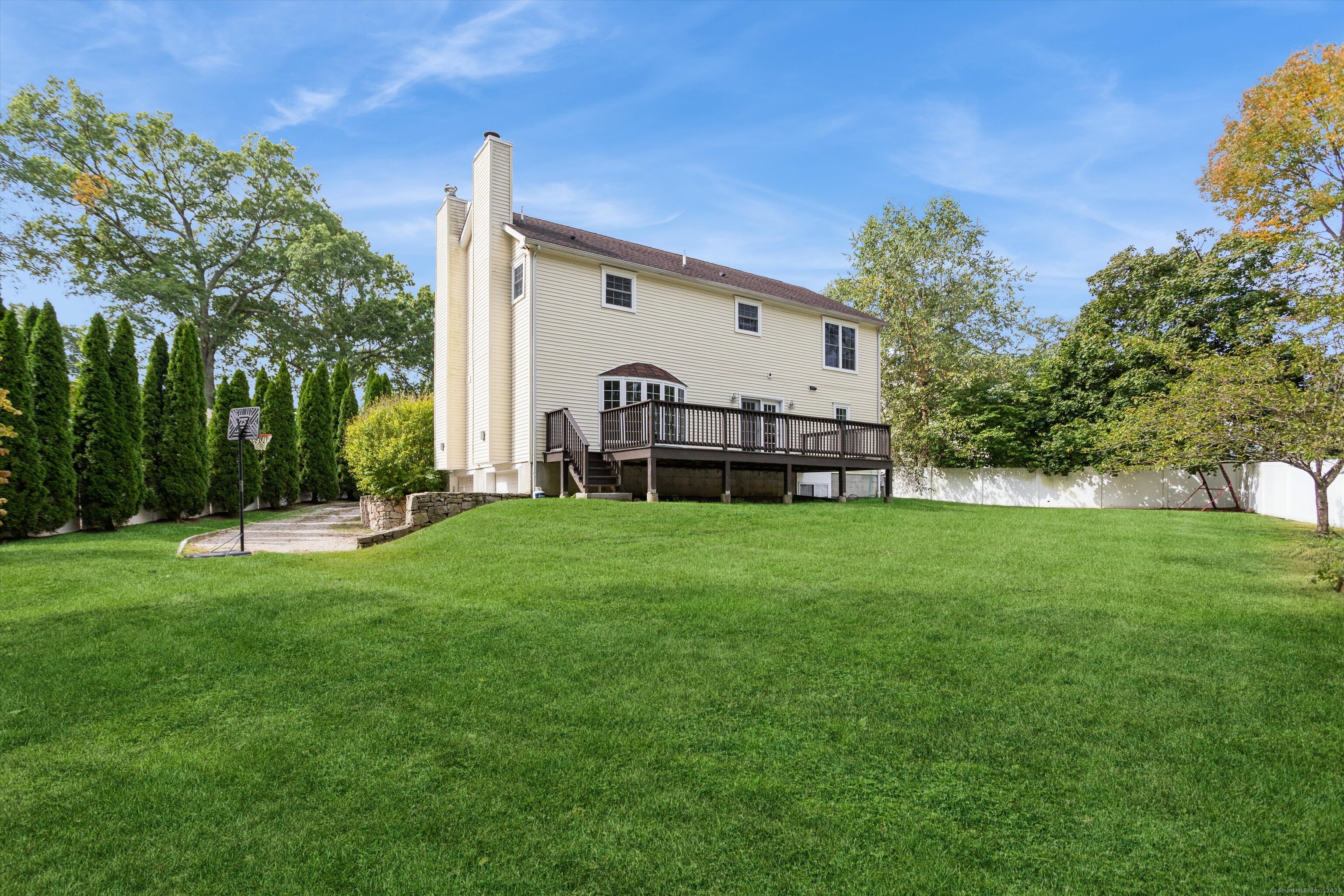Welcome to this stunning 4-bedroom, 3.5-bath Colonial nestled on a desirable Riverside cul-de-sac. The main level boasts a spacious living room with a cozy fireplace, a formal dining room, a convenient powder room, a large family room with a second fireplace. The expansive eat-in kitchen features a center island and opens to a generous deck-perfect for entertaining and outdoor dining. Upstairs, you'll find a luxurious primary suite with a spa like bath and a gas fireplace Three additional well-sized bedrooms share a large hall bath, and a second-floor laundry room adds everyday convenience. The finished lower level offers a full bath and versatile living space ideal for a playroom, media room, or home office. A large two-car attached garage includes plenty of storage. Enjoy privacy and outdoor living in the fully fenced, oversized backyard perfect for gatherings, gardening, or simply relaxing. Pool site plans available. Enjoy all that living in Greenwich has to offer, easy NYC commute via metro north train, beautiful beaches, award winning parks, exceptional schools, world class shopping, and fabulous restaurants.