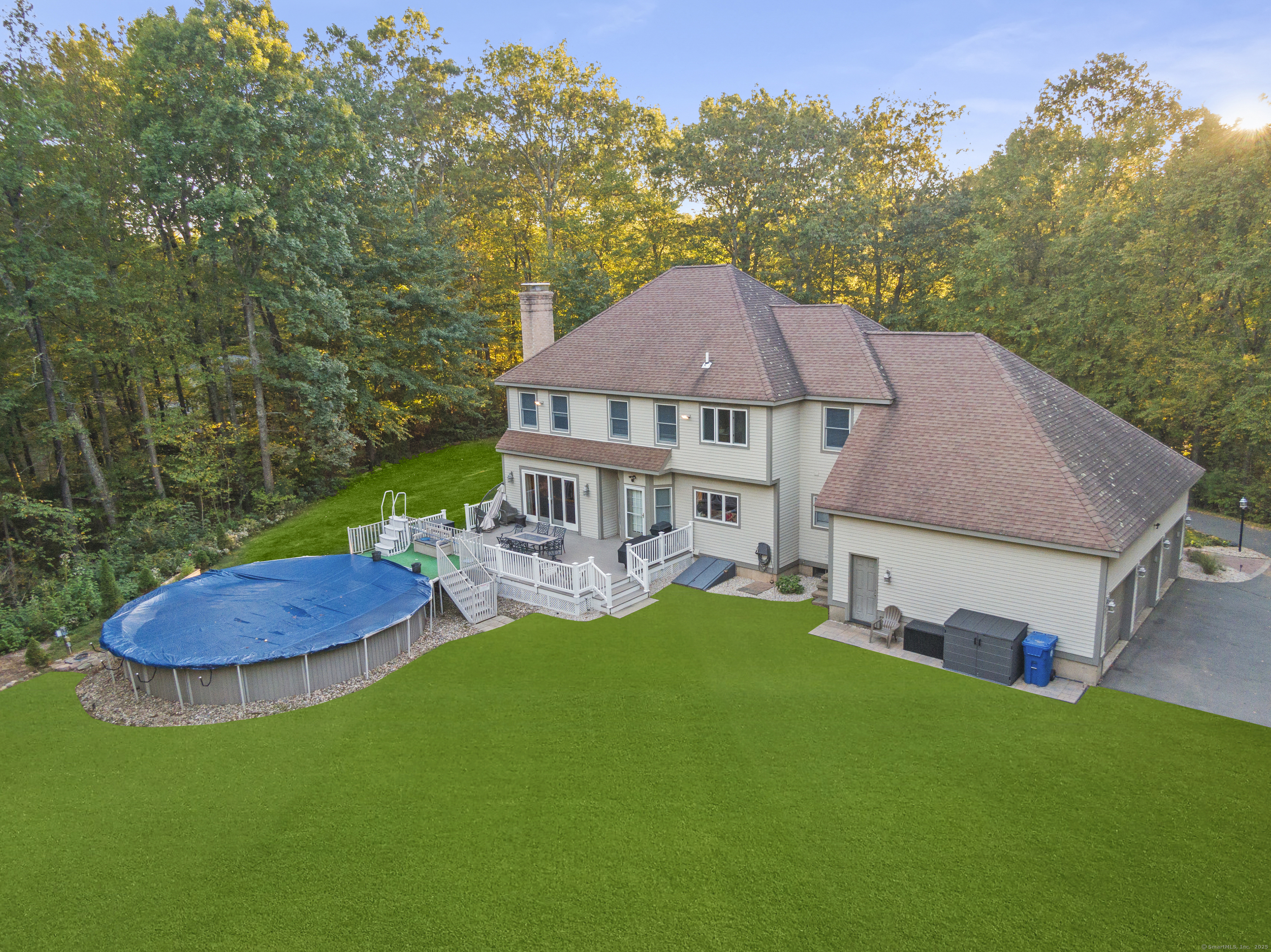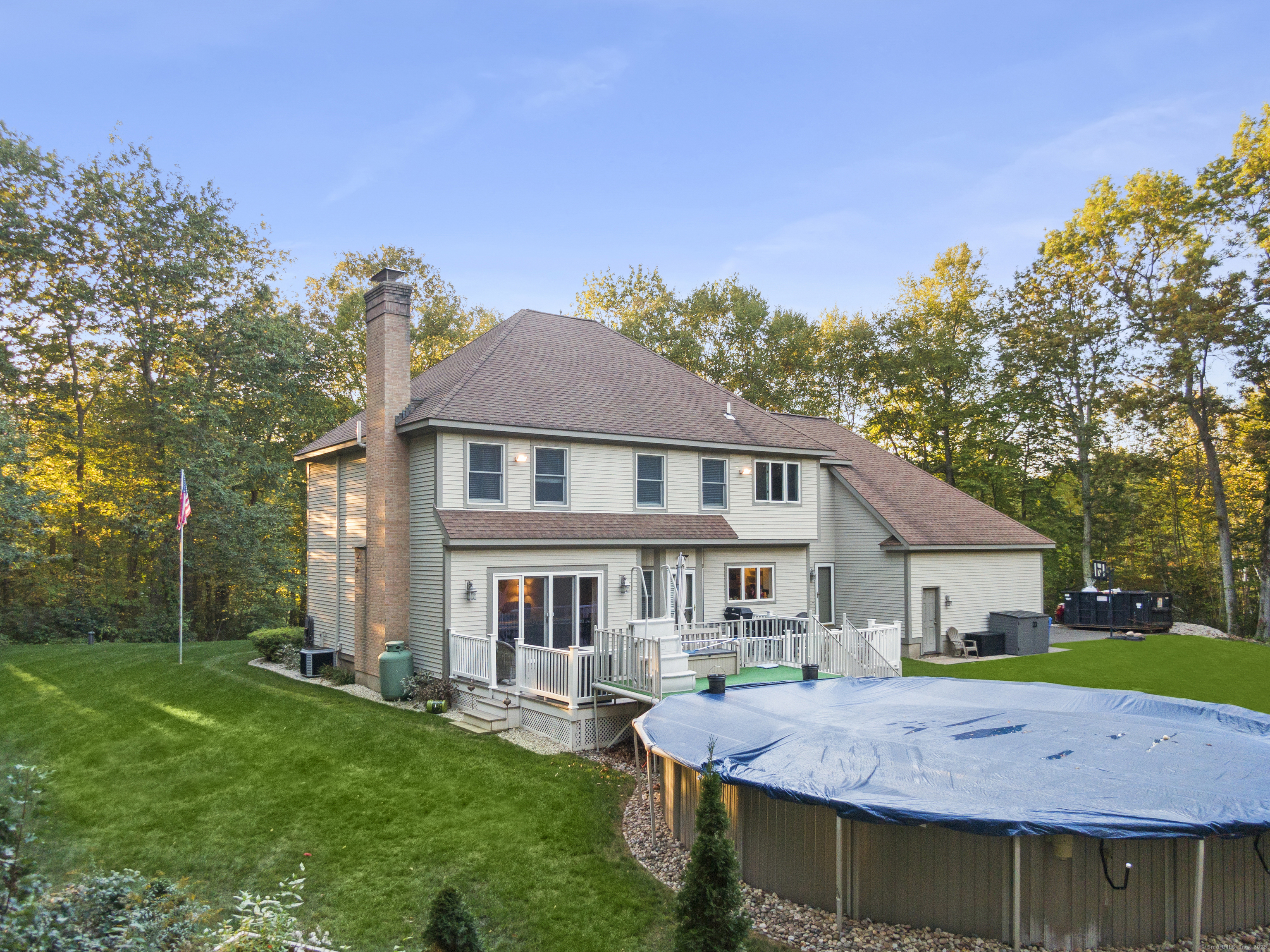 Beautiful 4 bedroom, 2.5 bath Colonial set on 2+ private acres! Enter through the grand two-story foyer to find a spacious eat-in kitchen with granite, stainless appliances & double wall oven. First floor features an open floor plan with 9' ceilings, hardwood floors, family room with fireplace, formal living & dining rooms, plus laundry & half bath off garage. Upstairs offers 4 bedrooms including a sprawling primary suite with multiple walk-ins, cedar closet & a newly renovated bath. Basement is partially finished with vinyl flooring & custom cabinetry. Updates & features include: recessed lighting, hardwood in family room & primary, hard-wired generator hookup, central vac, walk-up attic, water filtration system, oversized new well tank, 3-car garage & abundant storage. Enjoy the outdoors with a newer deck (2020), above-ground pool with wrap-around deck, new shed & large private yard.