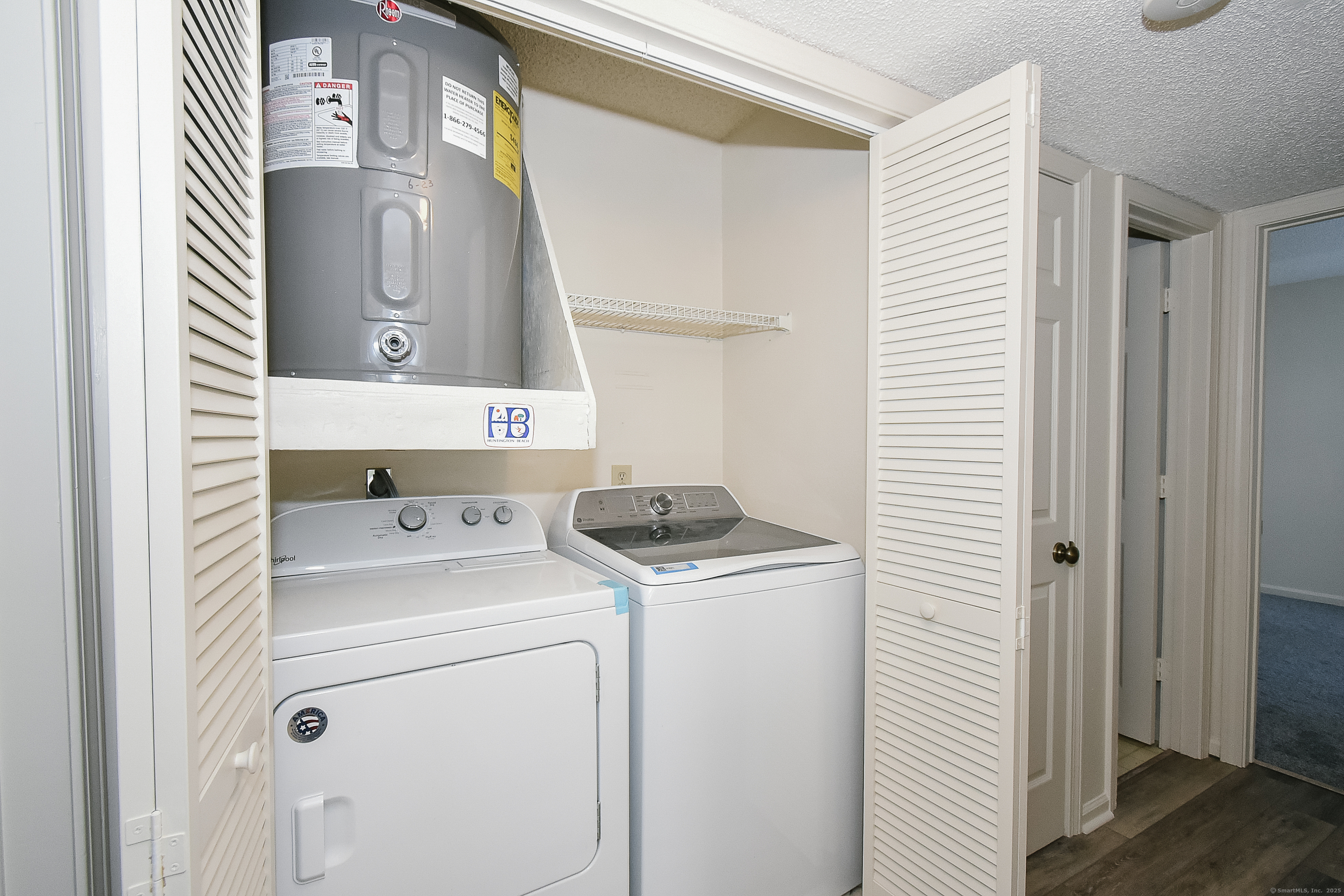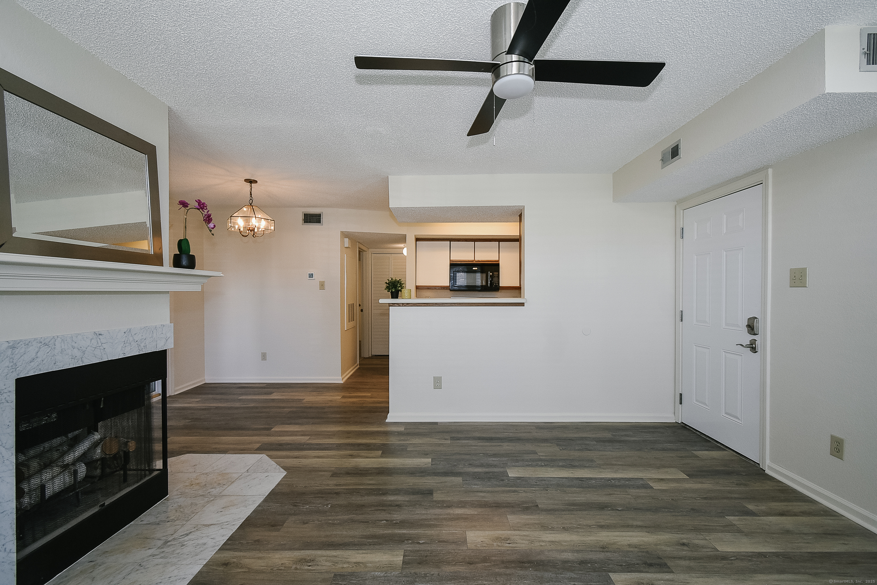 Welcome to Carriage Crossing! This bright and beautifully maintained 2 bedroom, 2 bath first floor ranch style condo offers comfort and convenience in one of Middletown's most sought after communities. Step inside to find freshly painted interiors, brand new bedroom carpeting, and plenty of natural light throughout. The spacious living area features a cozy fireplace, and sliders off the dining area lead to a private patio, perfect for morning coffee or evening relaxation. This is the largest 2 bedroom floor plan in the complex, offering extra space and an open, airy feel, with a prime location within the complex. The kitchen is equipped with a new stove, the washing machine is new and the central air conditioning and hot water heater are only a few years old for added comfort and peace of mind. The primary bedroom includes an en suite bath and generous closet space. Carriage Crossing residents enjoy resort style amenities, including a swimming pool, fitness center, and clubhouse. You'll love the nearby walking trails and the easy access to shopping, restaurants, and major highways, making commuting and errands a breeze. Move right in and start enjoying easy, maintenance free living today!