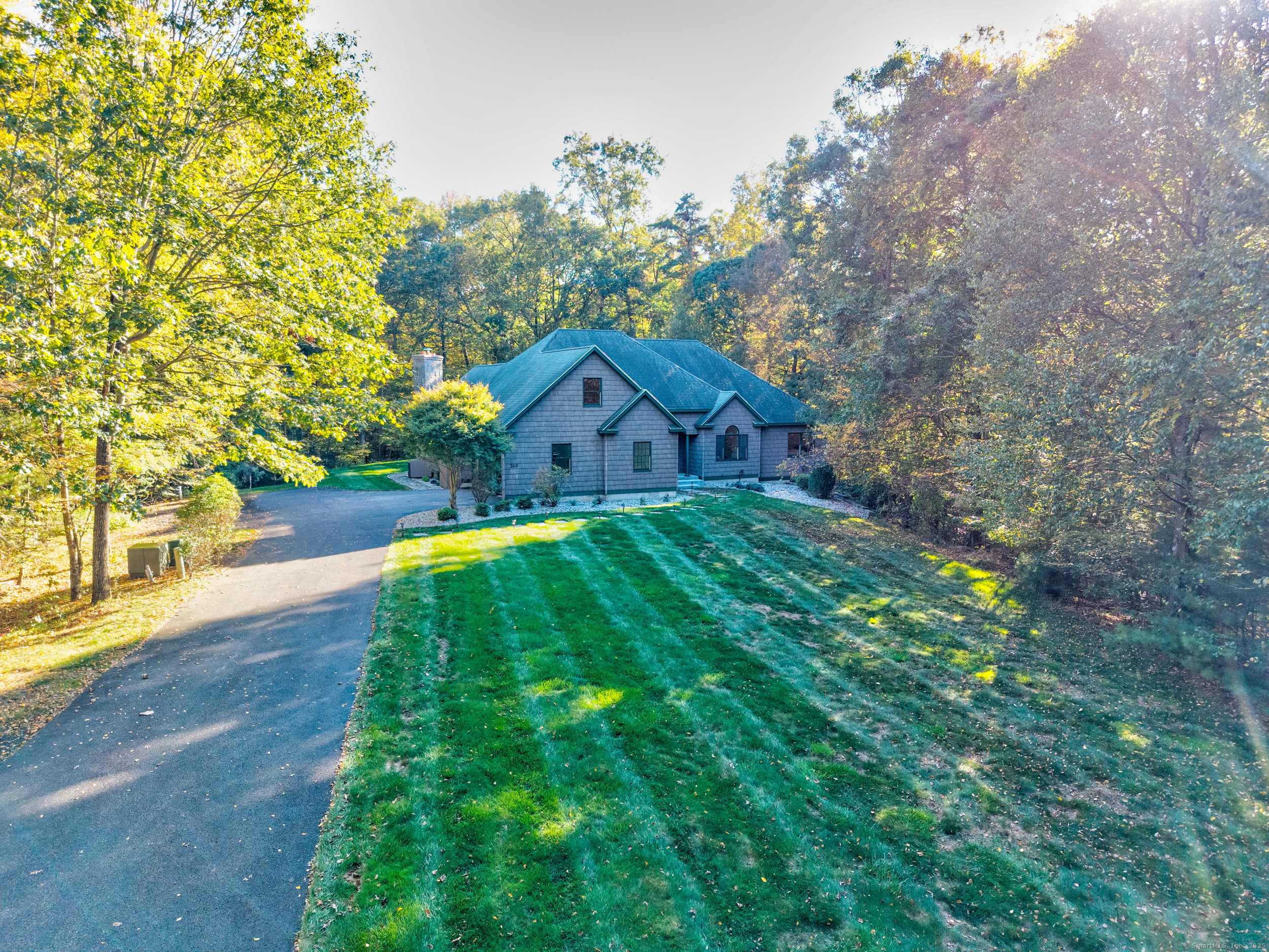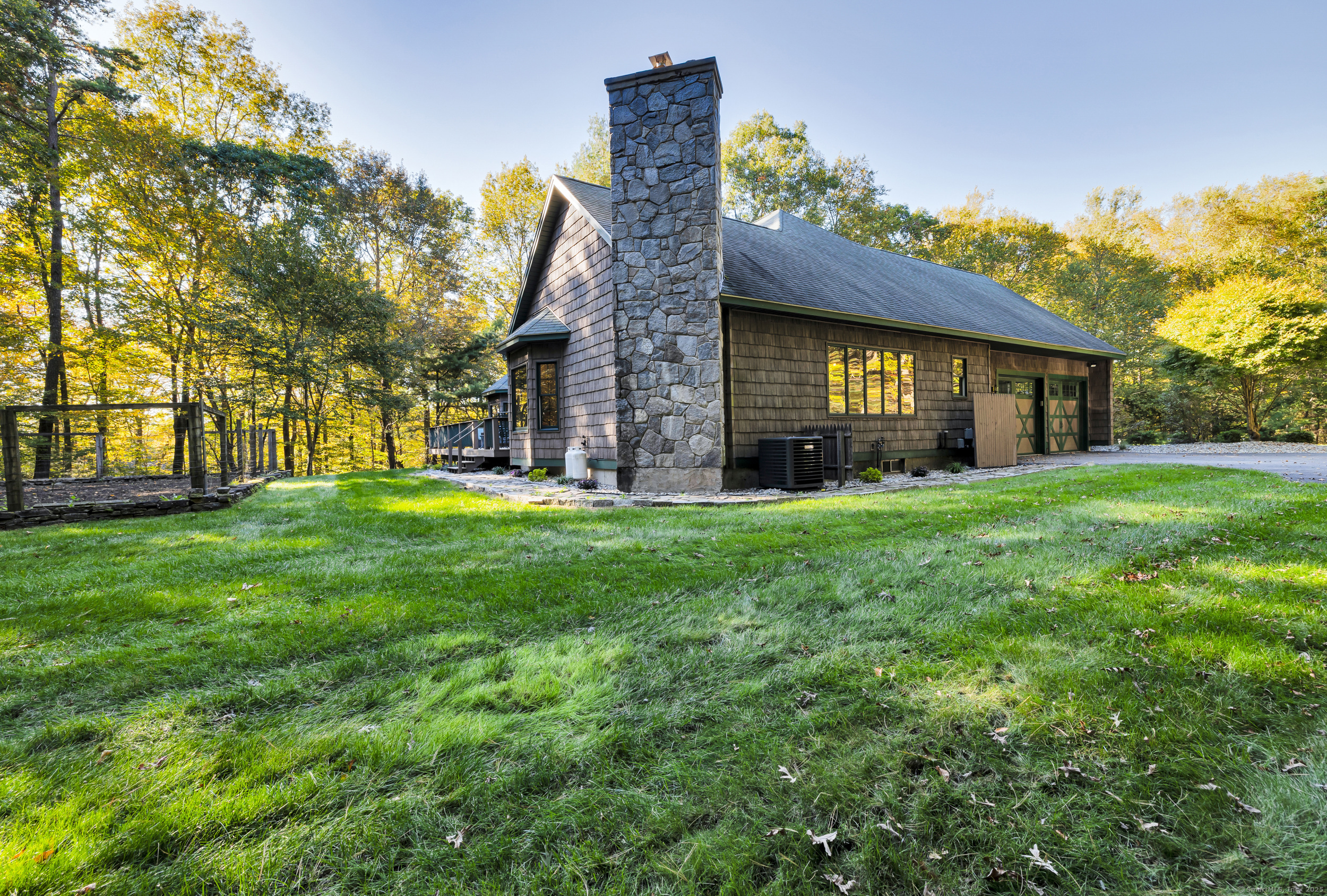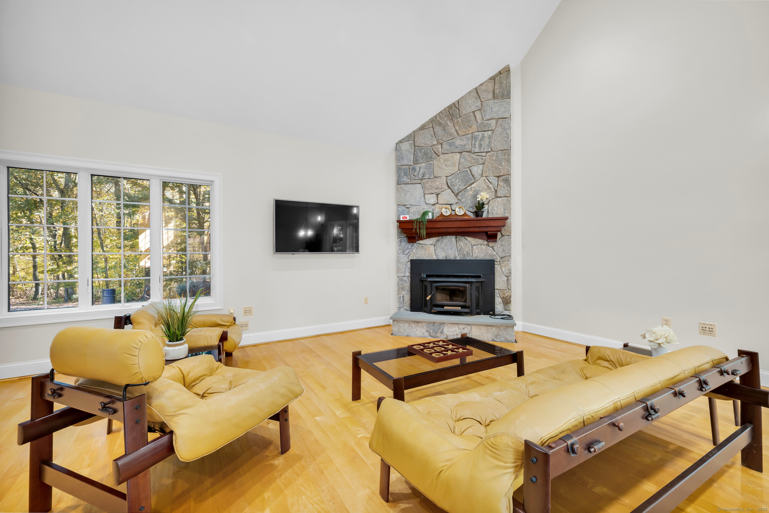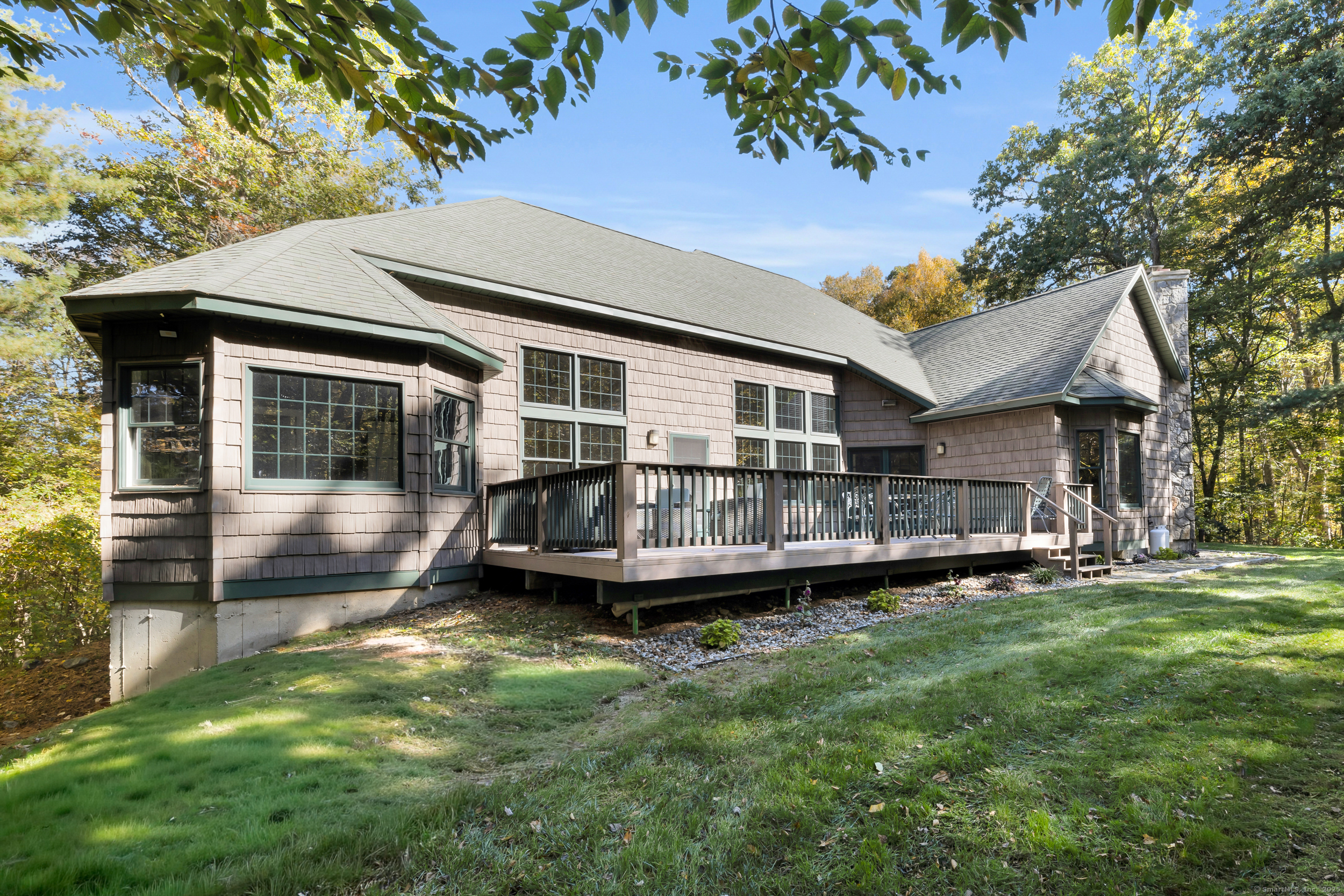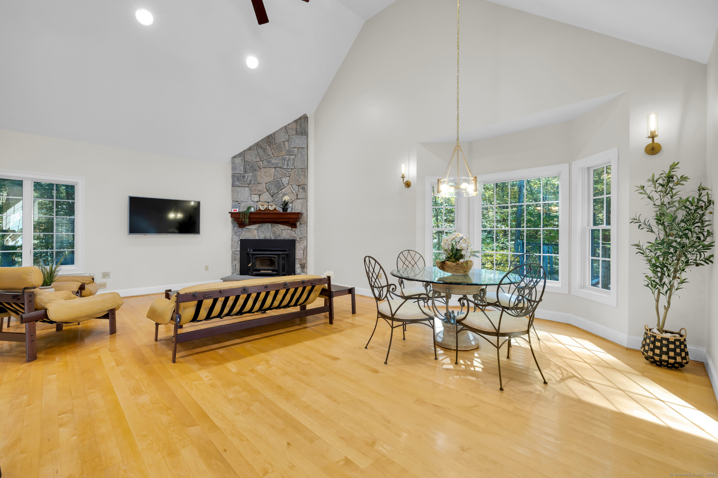 Surrounded by wooded serenity, this 2,915 SF expanded ranch sits on 7.27 acres of peaceful forest w/ private walking trails & endless potential that will have you saying yes! Inside, an open floor plan welcomes you with soaring cathedral ceilings & walls of windows that fill the home w/ abundant natural light & year-round views. Fresh paint, new lighting & brand-new central AC system are the latest updates. The great room flows seamlessly into the eat-in kitchen, where abundant cabinetry & expansive countertops make daily cooking & entertaining a joy. Natural maple HW floors extend throughout the main level, adding a sense of warmth & elegance. The spacious primary suite provides a private retreat with serene views of the surrounding woods and a spa-like bath featuring an oversized soaking tub-perfect for unwinding after a long day. Two other beds share a jack n jill full bath. Upstairs, a cozy reading nook overlooks the main living space, & a large bonus room offers you flexibility. Fully finished lower level includes two offices, an open recreation area divided into multiple zones, a kitchenette, half bath, and additional space ideal for a wine cellar or storage. Every inch of this home was thoughtfully designed for comfort, flexibility, and connection. Outdoors, an expansive deck overlooks a fenced garden area & offers the perfect setting for BBQ's, gatherings, or peaceful mornings. HIGHEST AND BEST IS TUESDAY, OCT 14TH AT NOON.