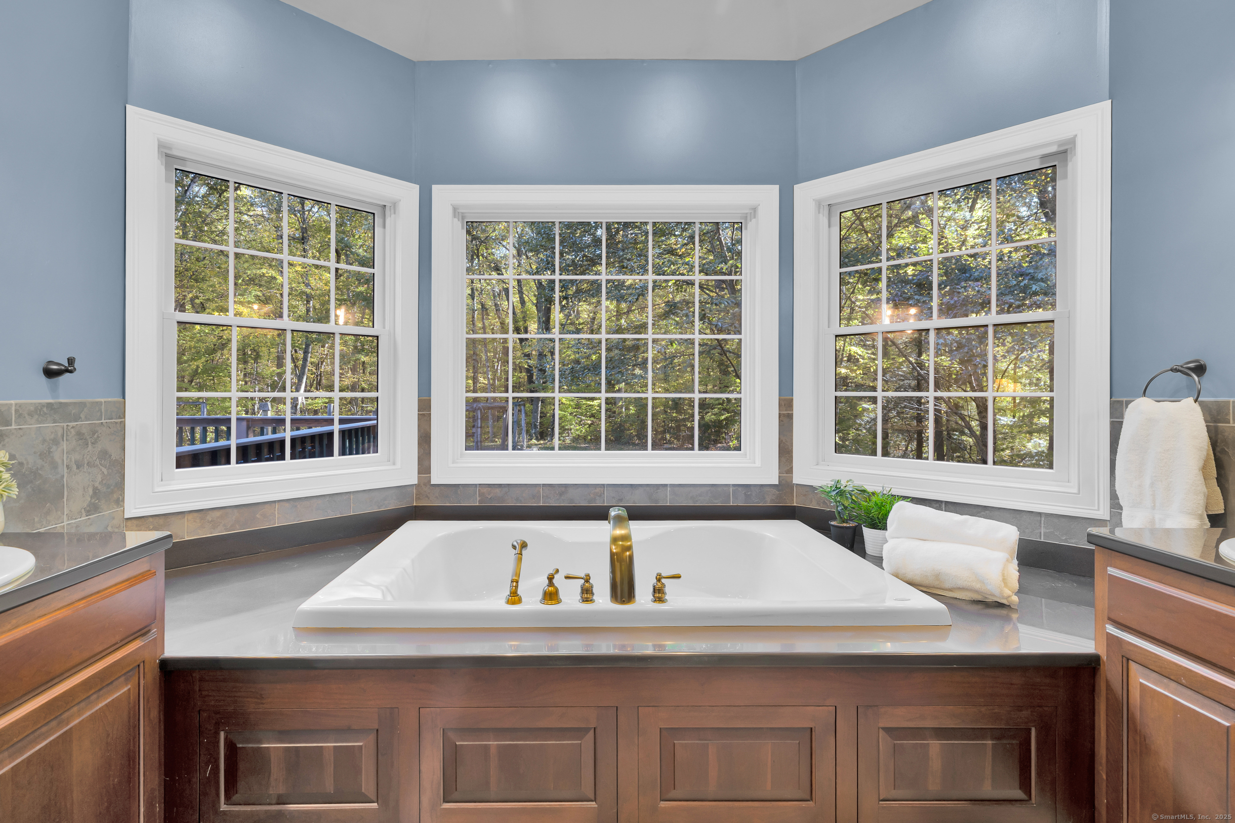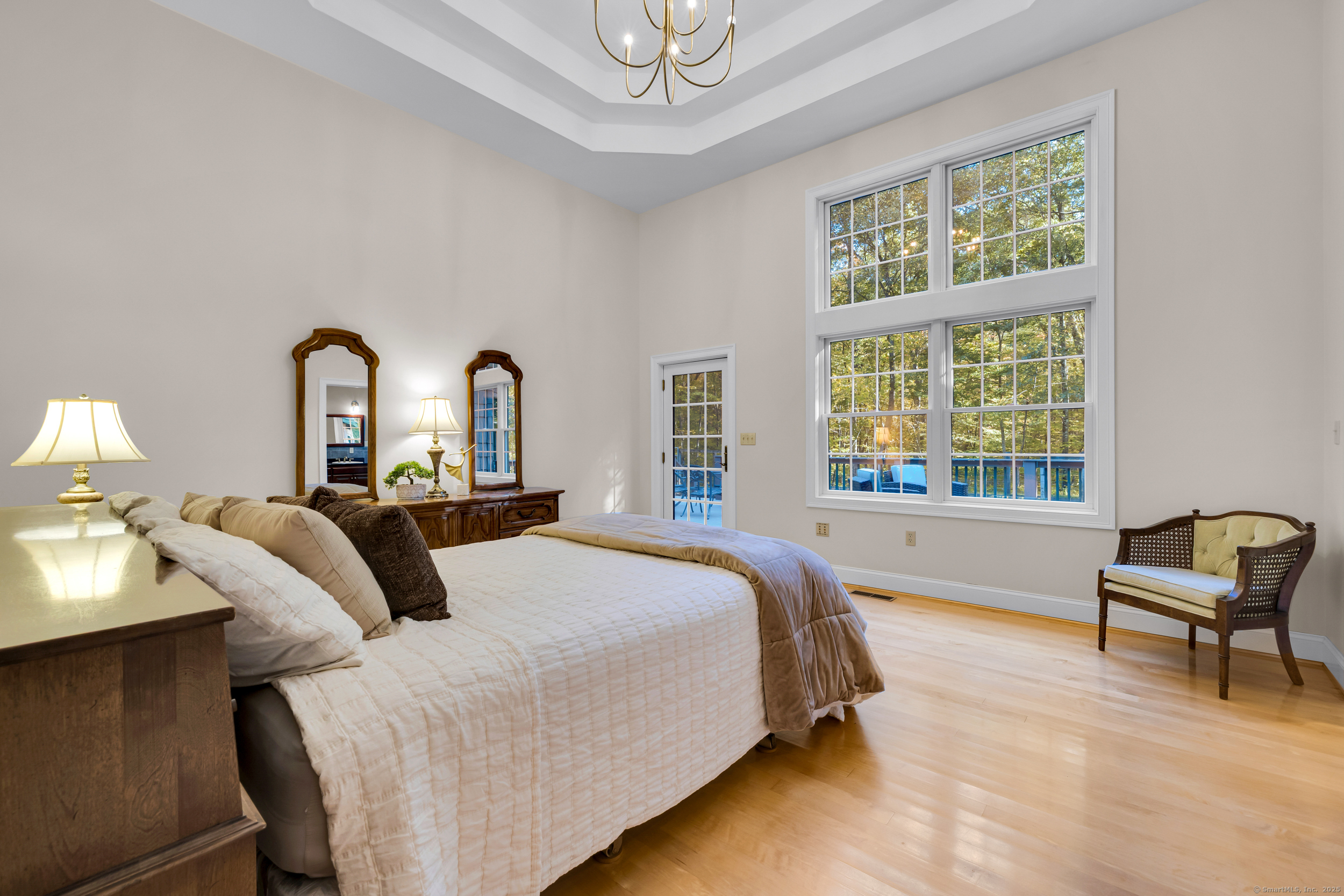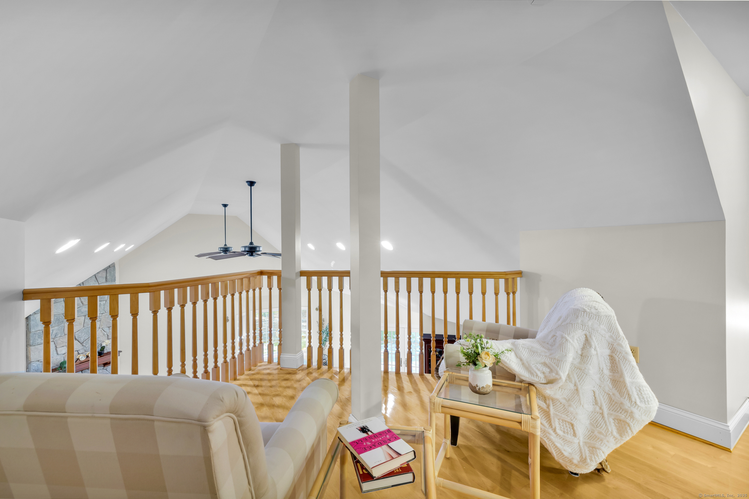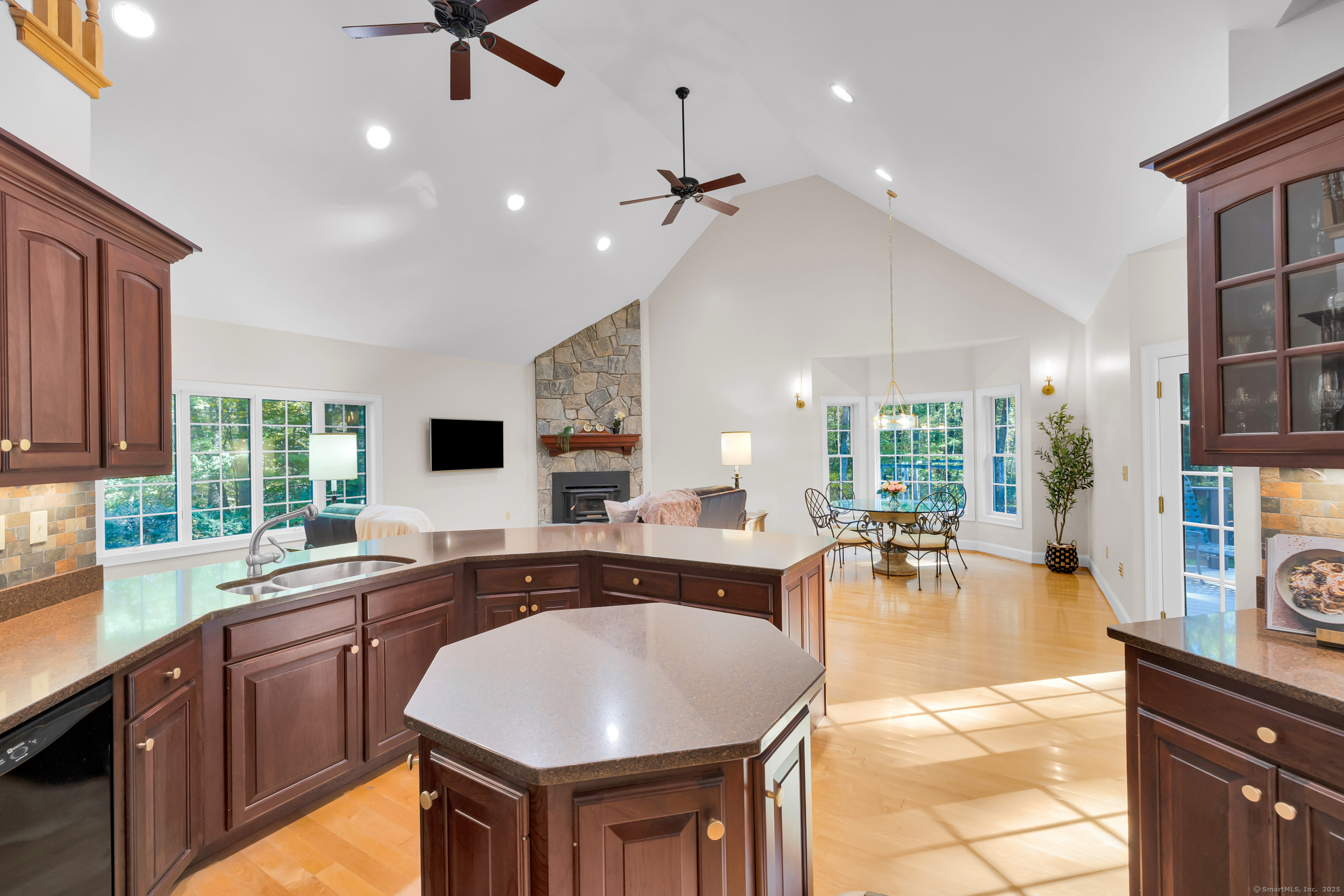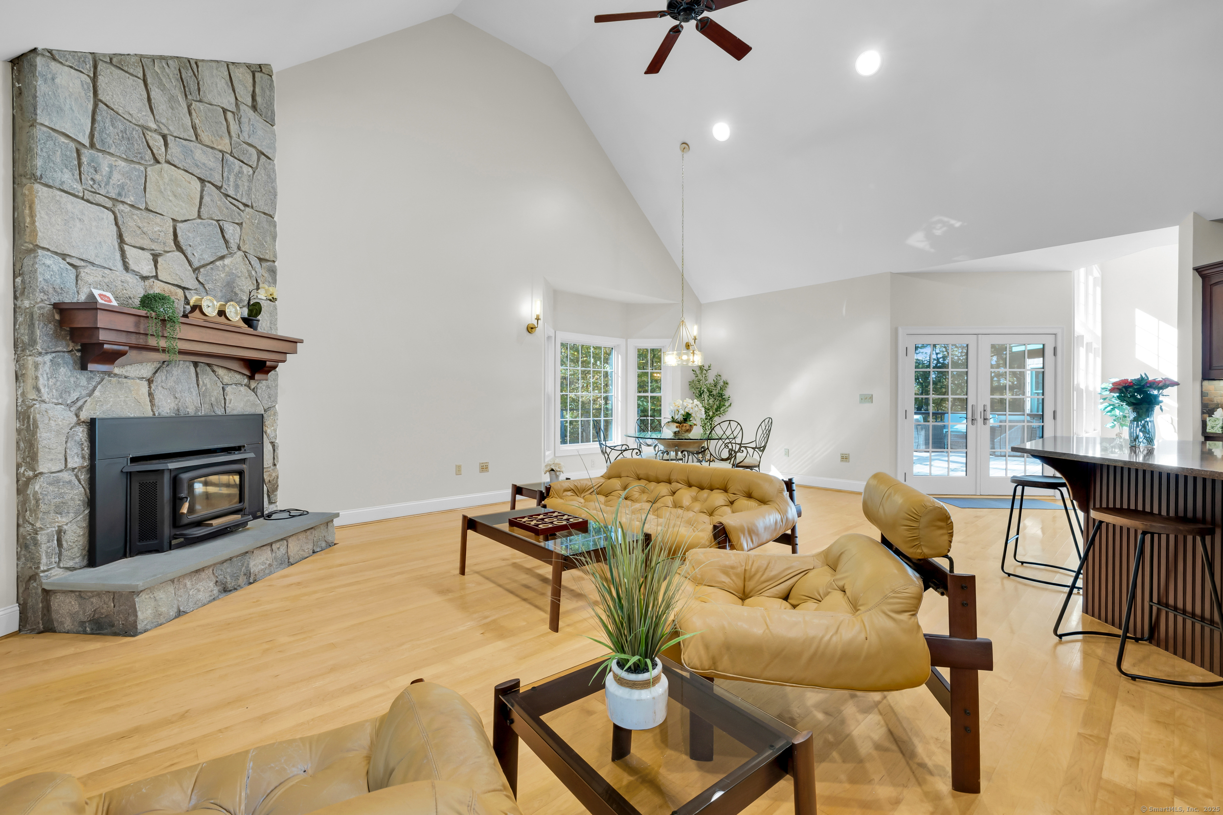 Surrounded by wooded serenity, this 2,915 SF expanded ranch sits on 7.27 acres of peaceful forest w/ private walking trails & endless potential that will have you saying yes! Inside, an open floor plan welcomes you with soaring cathedral ceilings & walls of windows that fill the home w/ abundant natural light & year-round views. Fresh paint, new lighting & brand-new central AC system are the latest updates. The great room flows seamlessly into the eat-in kitchen, where abundant cabinetry & expansive countertops make daily cooking & entertaining a joy. Natural maple HW floors extend throughout the main level, adding a sense of warmth & elegance. The spacious primary suite provides a private retreat with serene views of the surrounding woods and a spa-like bath featuring an oversized soaking tub-perfect for unwinding after a long day. Two other beds share a jack n jill full bath. Upstairs, a cozy reading nook overlooks the main living space, & a large bonus room offers you flexibility. Fully finished lower level includes two offices, an open recreation area divided into multiple zones, a kitchenette, half bath, and additional space ideal for a wine cellar or storage. Every inch of this home was thoughtfully designed for comfort, flexibility, and connection. Outdoors, an expansive deck overlooks a fenced garden area & offers the perfect setting for BBQ's, gatherings, or peaceful mornings. HIGHEST AND BEST IS TUESDAY, OCT 14TH AT NOON.