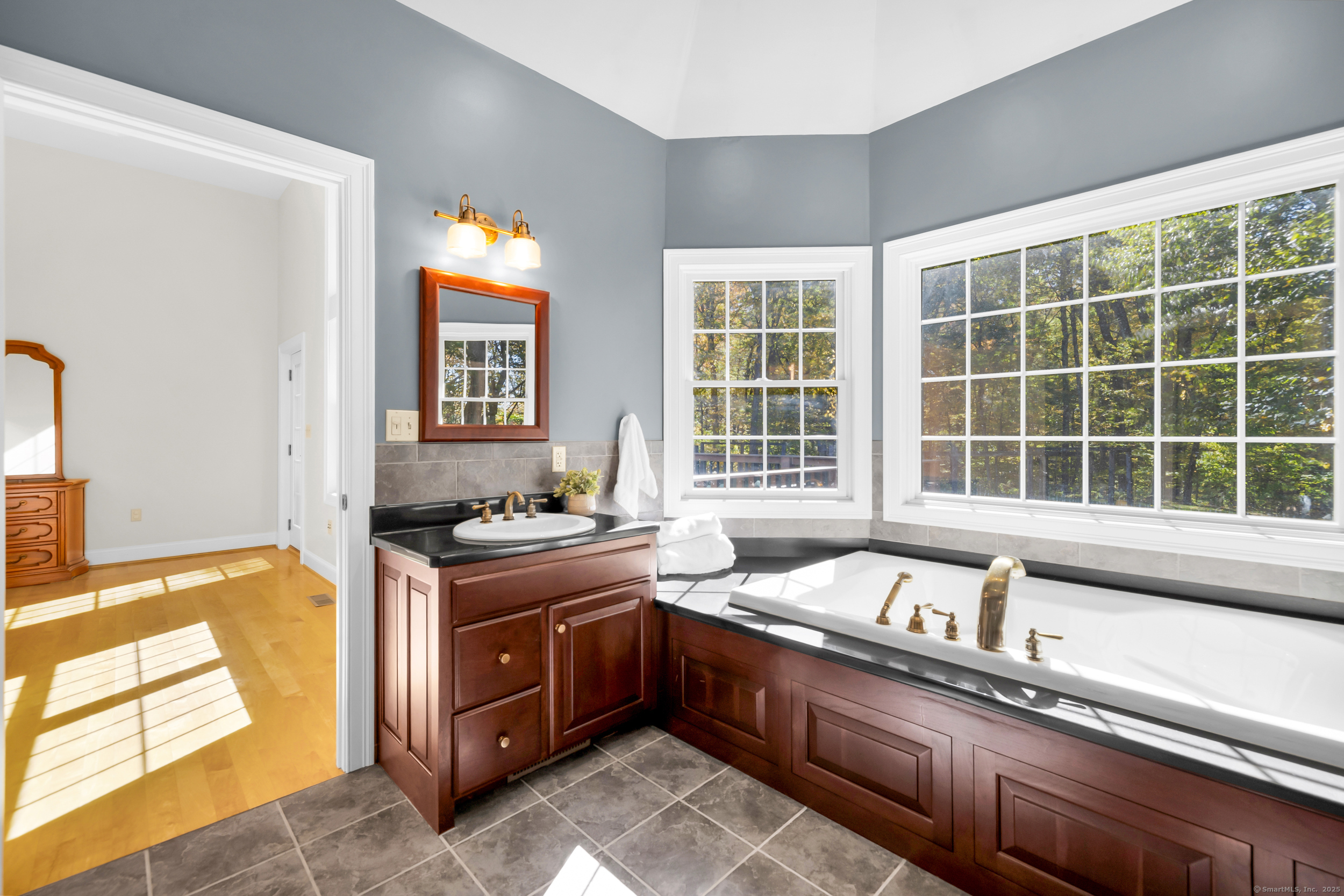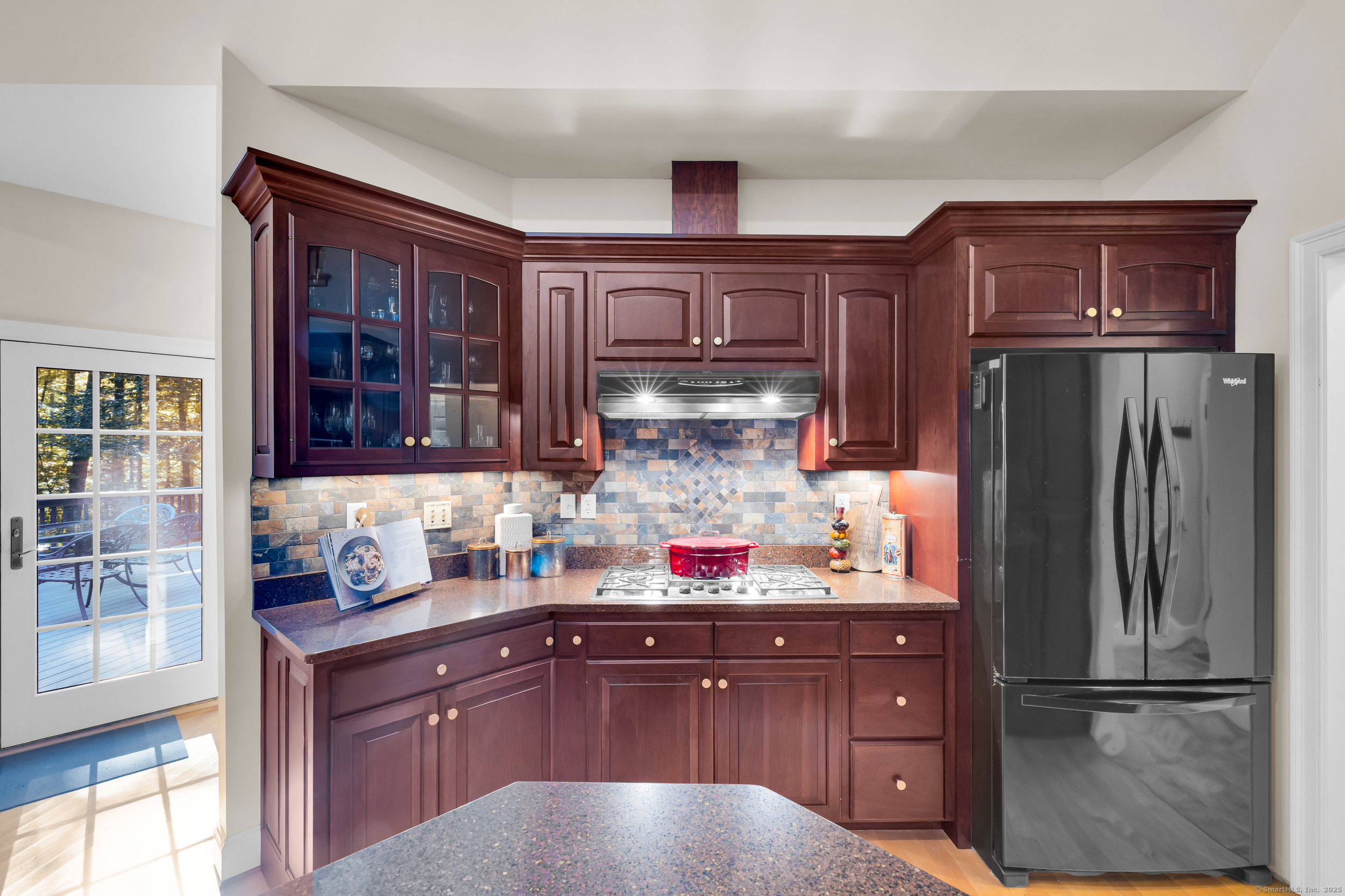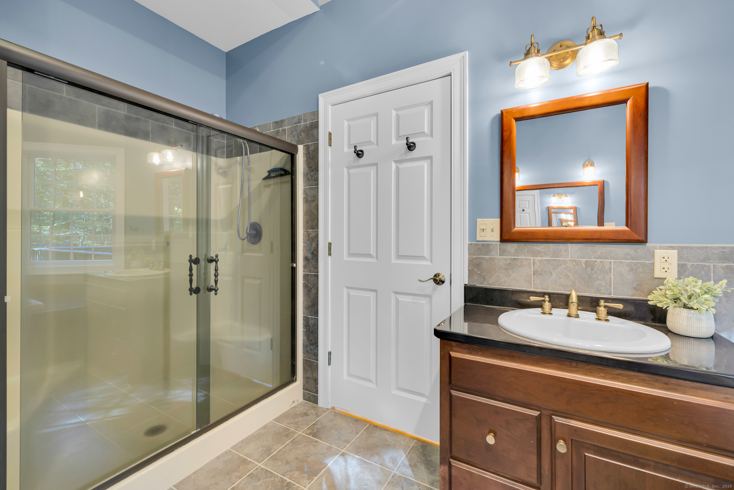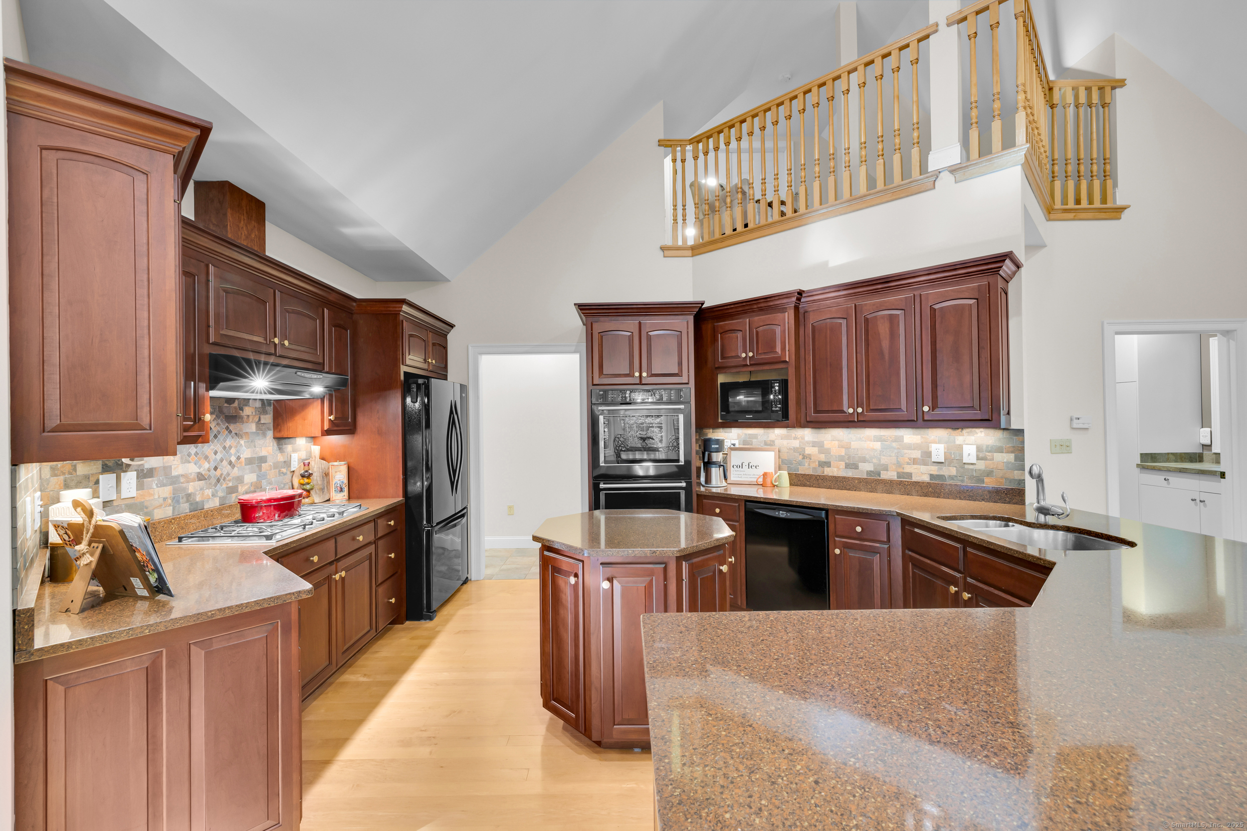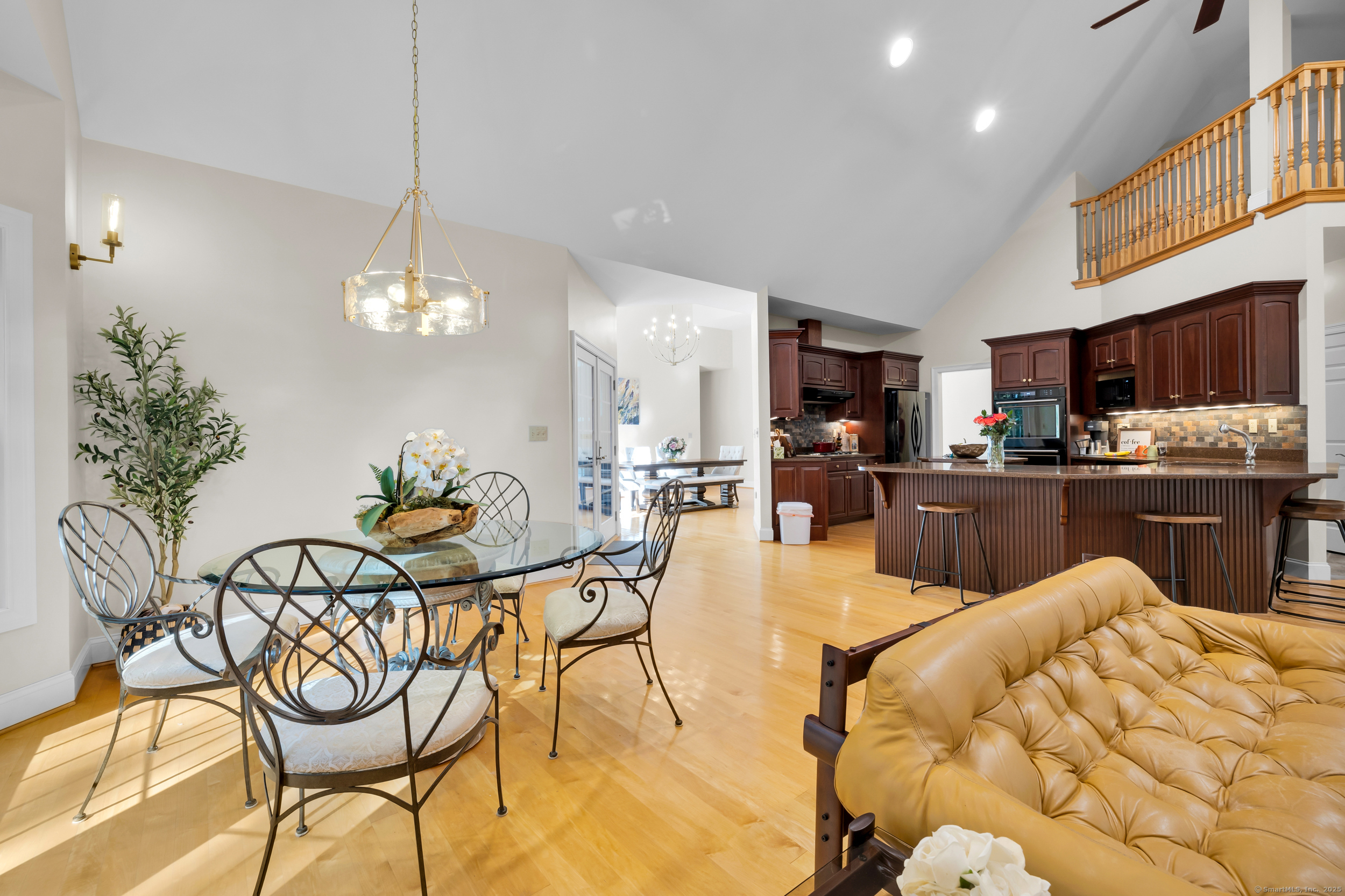 Surrounded by wooded serenity, this 2,915 SF expanded ranch sits on 7.27 acres of peaceful forest w/ private walking trails & endless potential that will have you saying yes! Inside, an open floor plan welcomes you with soaring cathedral ceilings & walls of windows that fill the home w/ abundant natural light & year-round views. Fresh paint, new lighting & brand-new central AC system are the latest updates. The great room flows seamlessly into the eat-in kitchen, where abundant cabinetry & expansive countertops make daily cooking & entertaining a joy. Natural maple HW floors extend throughout the main level, adding a sense of warmth & elegance. The spacious primary suite provides a private retreat with serene views of the surrounding woods and a spa-like bath featuring an oversized soaking tub-perfect for unwinding after a long day. Two other beds share a jack n jill full bath. Upstairs, a cozy reading nook overlooks the main living space, & a large bonus room offers you flexibility. Fully finished lower level includes two offices, an open recreation area divided into multiple zones, a kitchenette, half bath, and additional space ideal for a wine cellar or storage. Every inch of this home was thoughtfully designed for comfort, flexibility, and connection. Outdoors, an expansive deck overlooks a fenced garden area & offers the perfect setting for BBQ's, gatherings, or peaceful mornings. HIGHEST AND BEST IS TUESDAY, OCT 14TH AT NOON.
