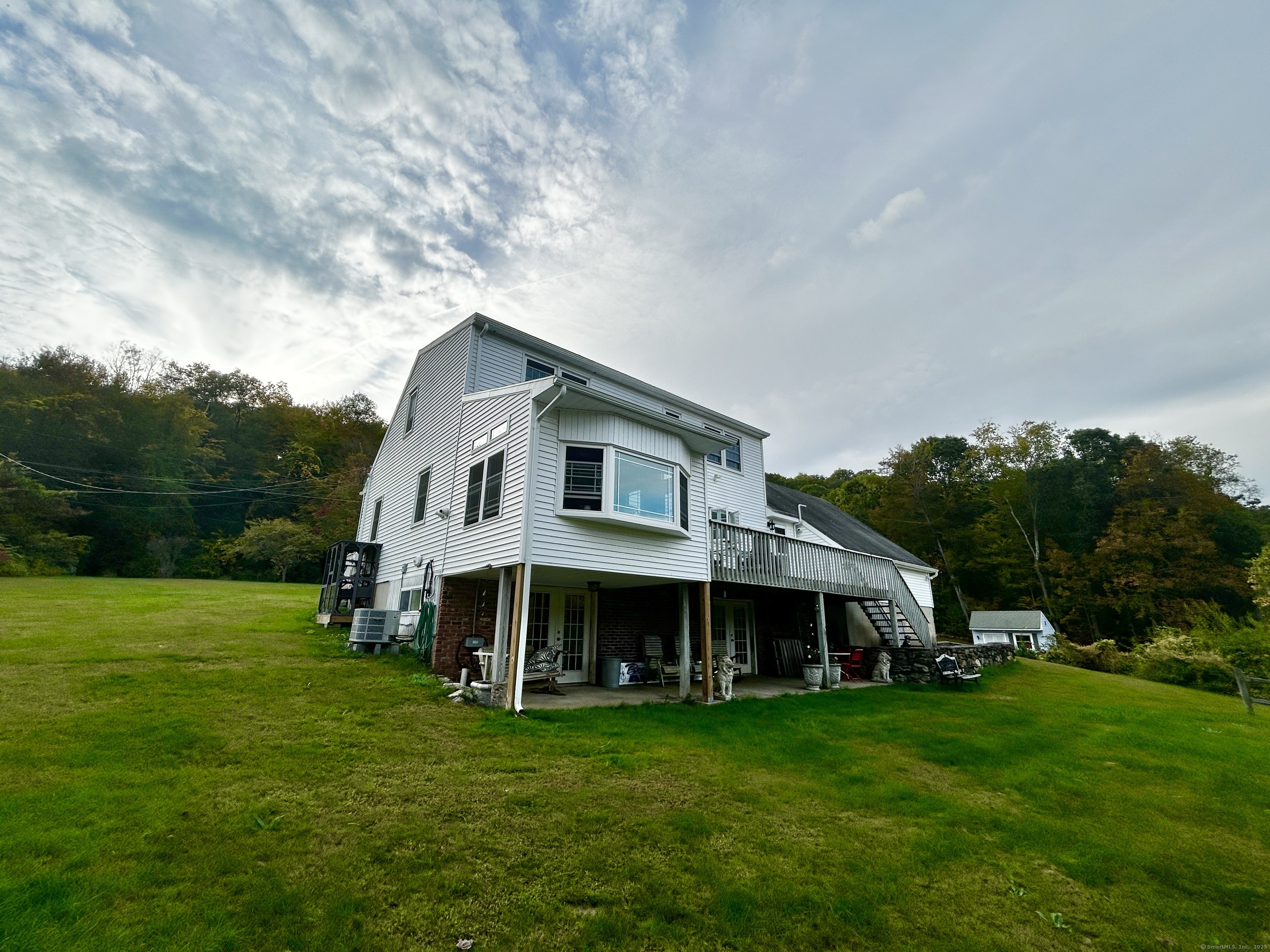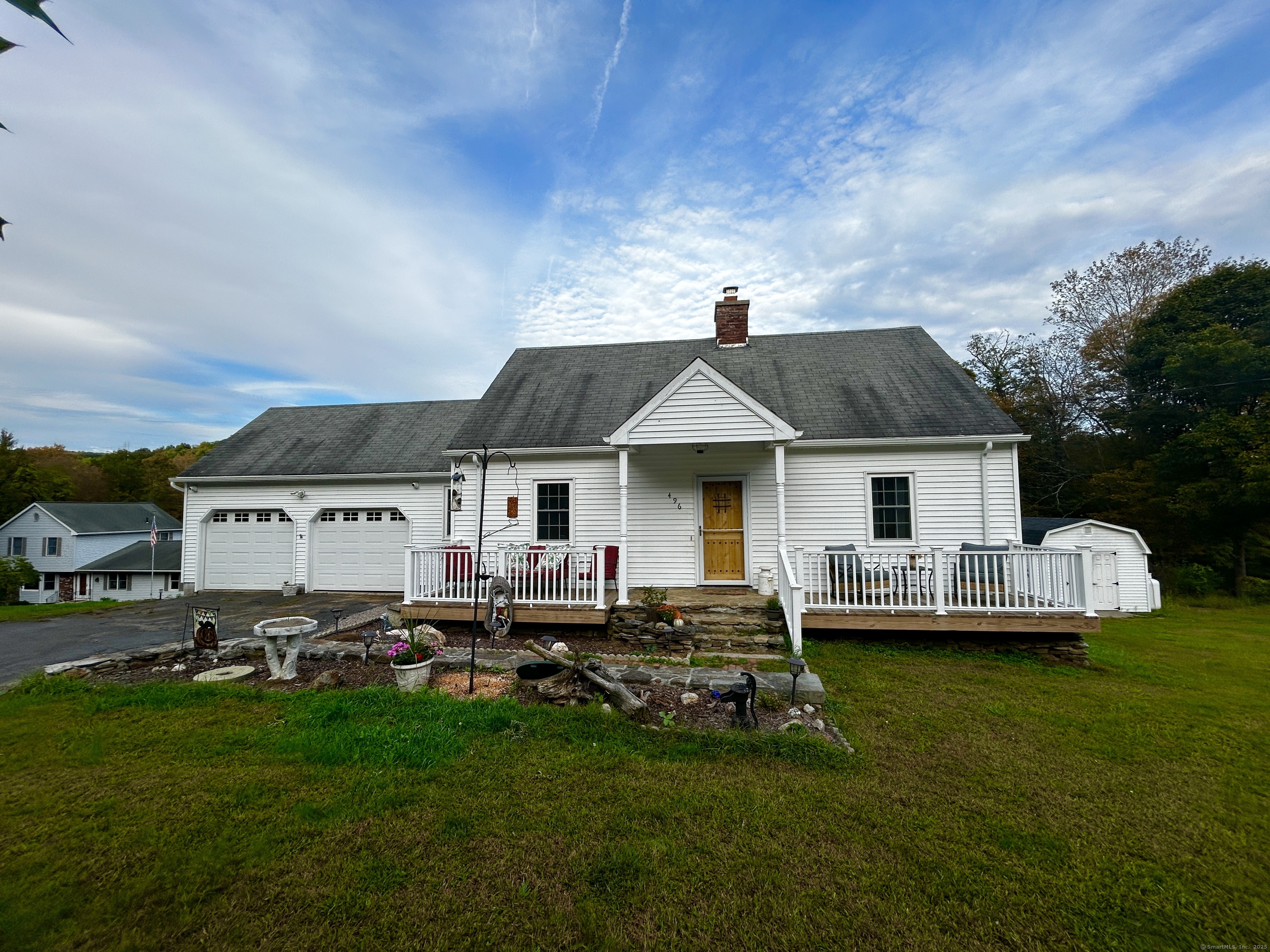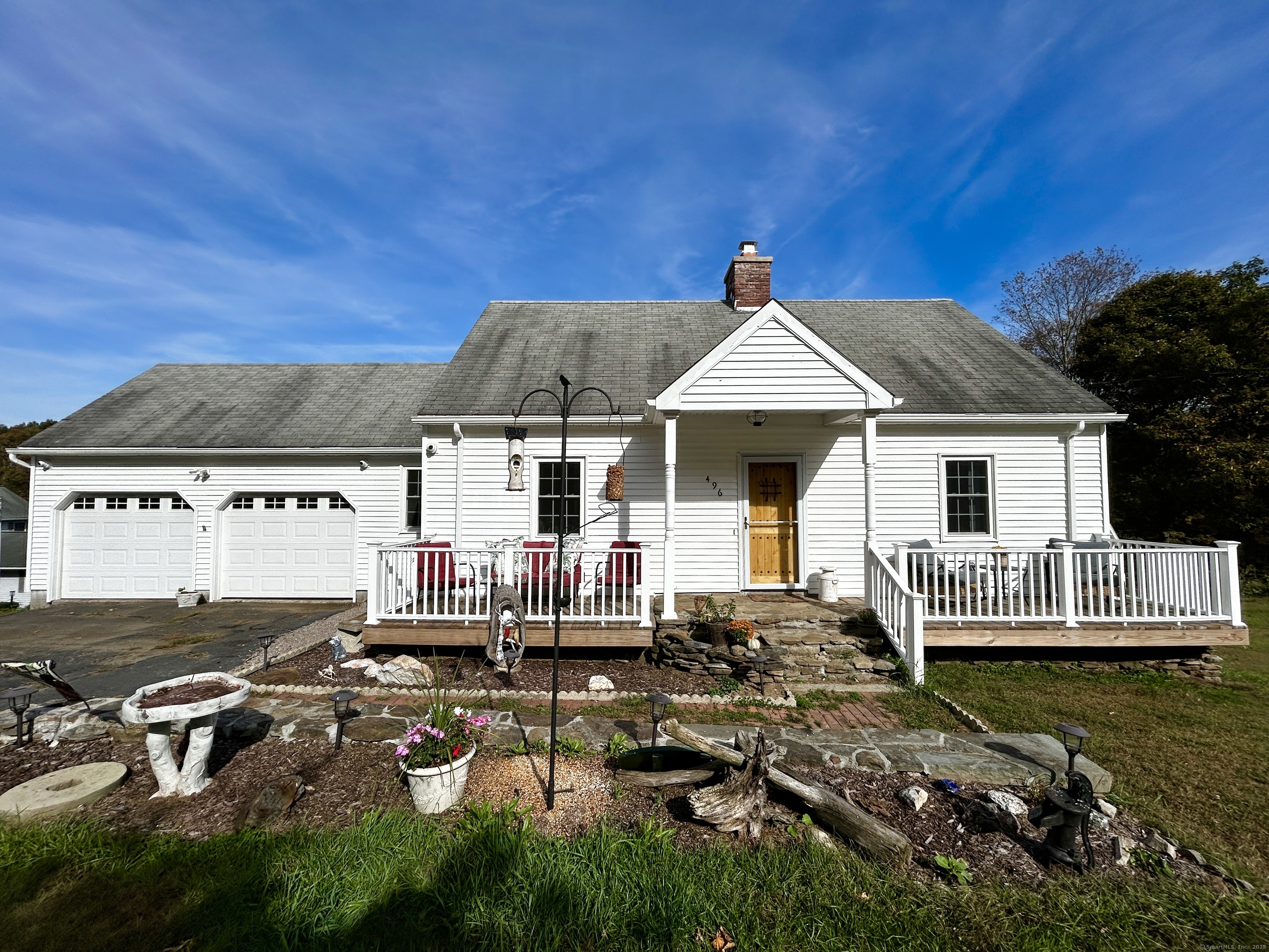 Charming Traditional Cape, Fully Updated! Welcome to this perfectly maintained traditional Cape, offering timeless New England charm, on a country setting on over 2 acres! Bounded by the Northfield Brook in your backyard. This inviting home features 3 bedrooms, 2 full bathrooms with a first-floor bedroom having potential for an office or dining room. Enjoy the warmth and appeal of the stone fireplace with propane insert in the living room opening up to to the year round heated sunroom. Entertain with ease on the large front and rear back decks, ideal for gatherings or quiet mornings outdoors. The walk out basement features two sets of French doors to the patio below the deck. The attached, spacious 2-car garage offers plenty of room for vehicles and overhead/attic storage. This home is a must-see for anyone seeking both character and move in condition. Note: First-floor bathroom currently installing new fixtures, will be completed prior to sale. Additional Improvements all within the Last 3 Years: Thermal Windows, Propane HVAC System with Central Air, All New Kitchen Appliances, New Deck Flooring, New Exterior Doors and Storm-Doors, Oversize 12x24 Shed, Advanced Security System, Refinished wood Flooring, Interior repainted, etc.