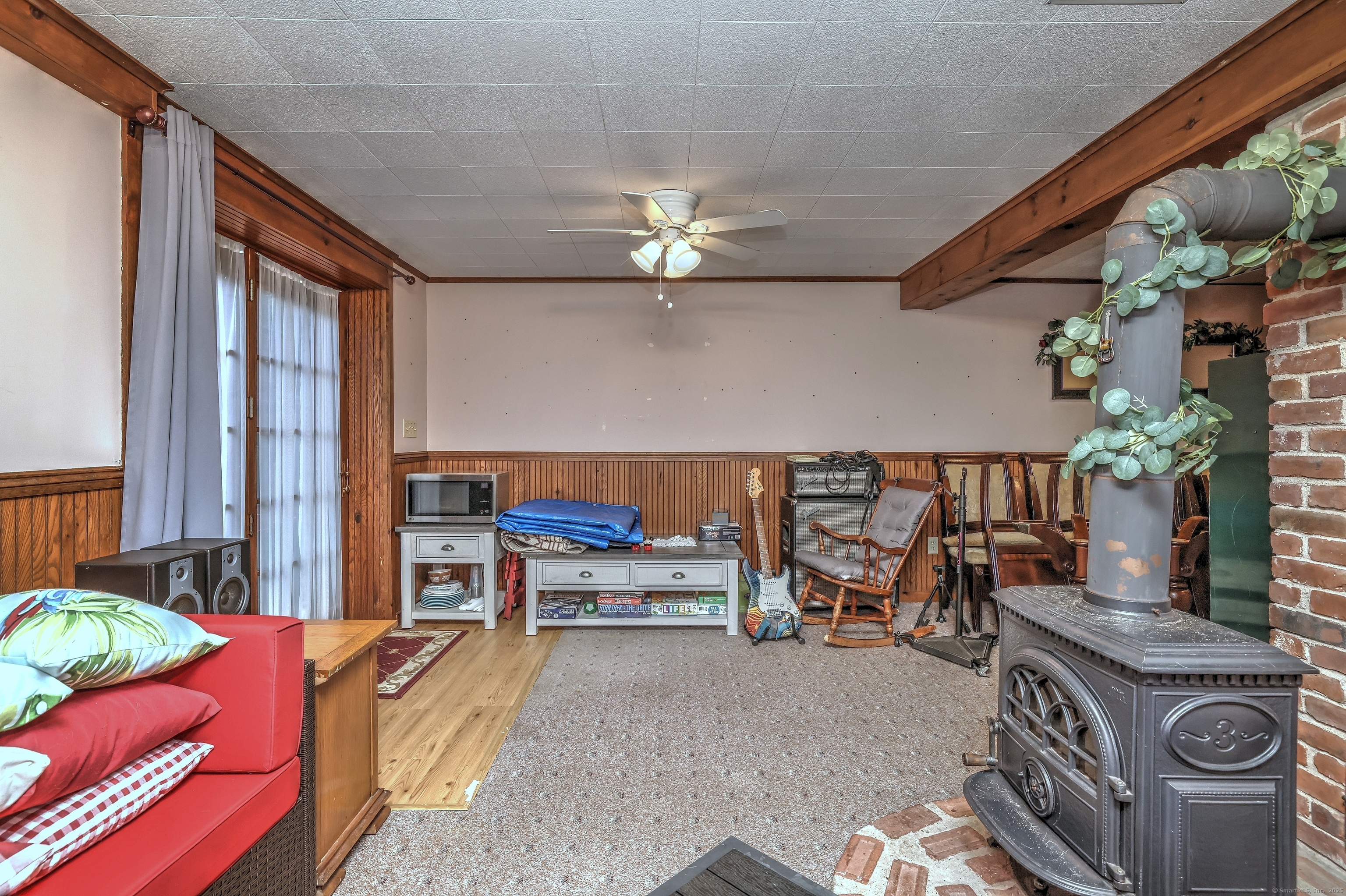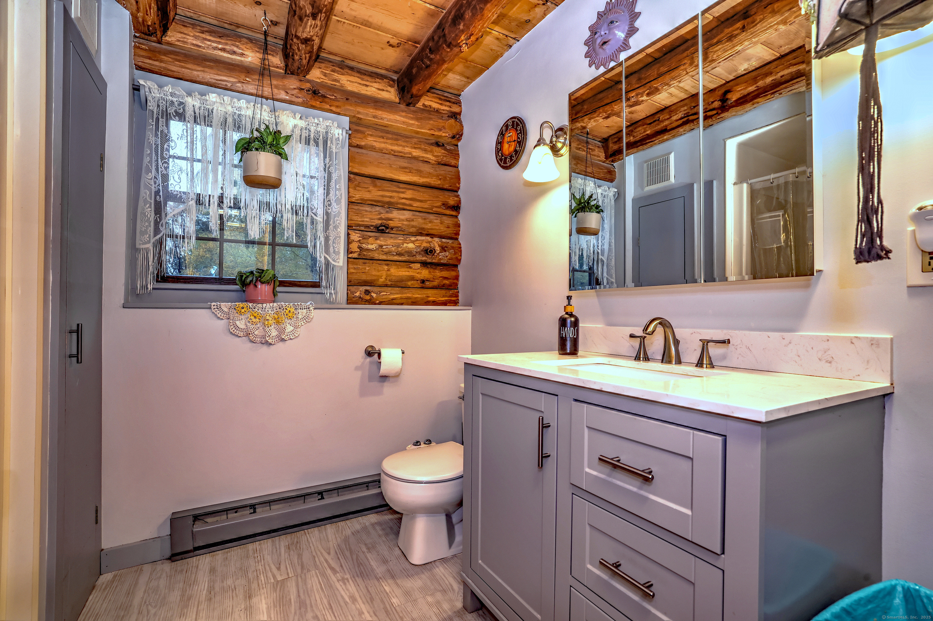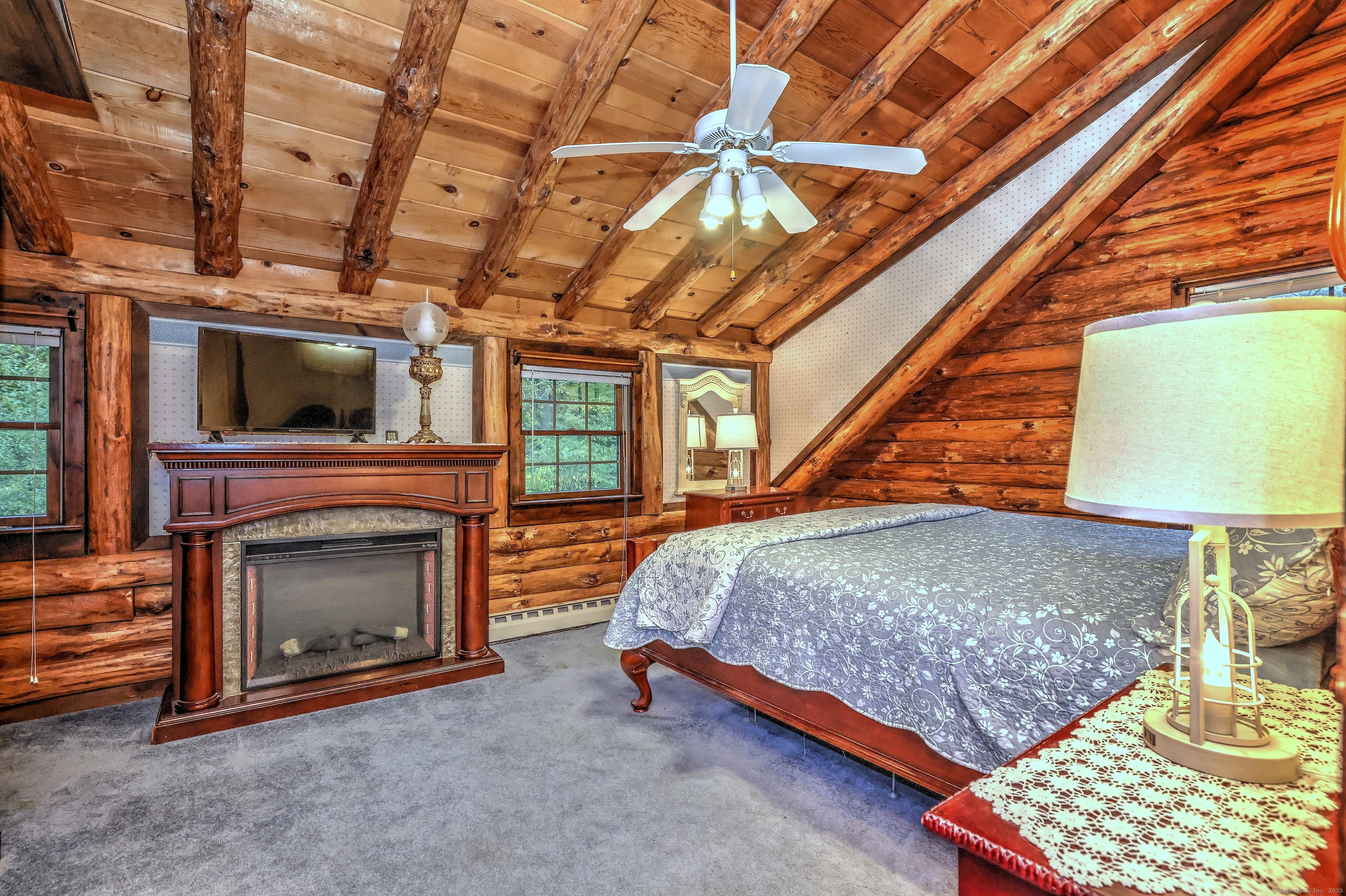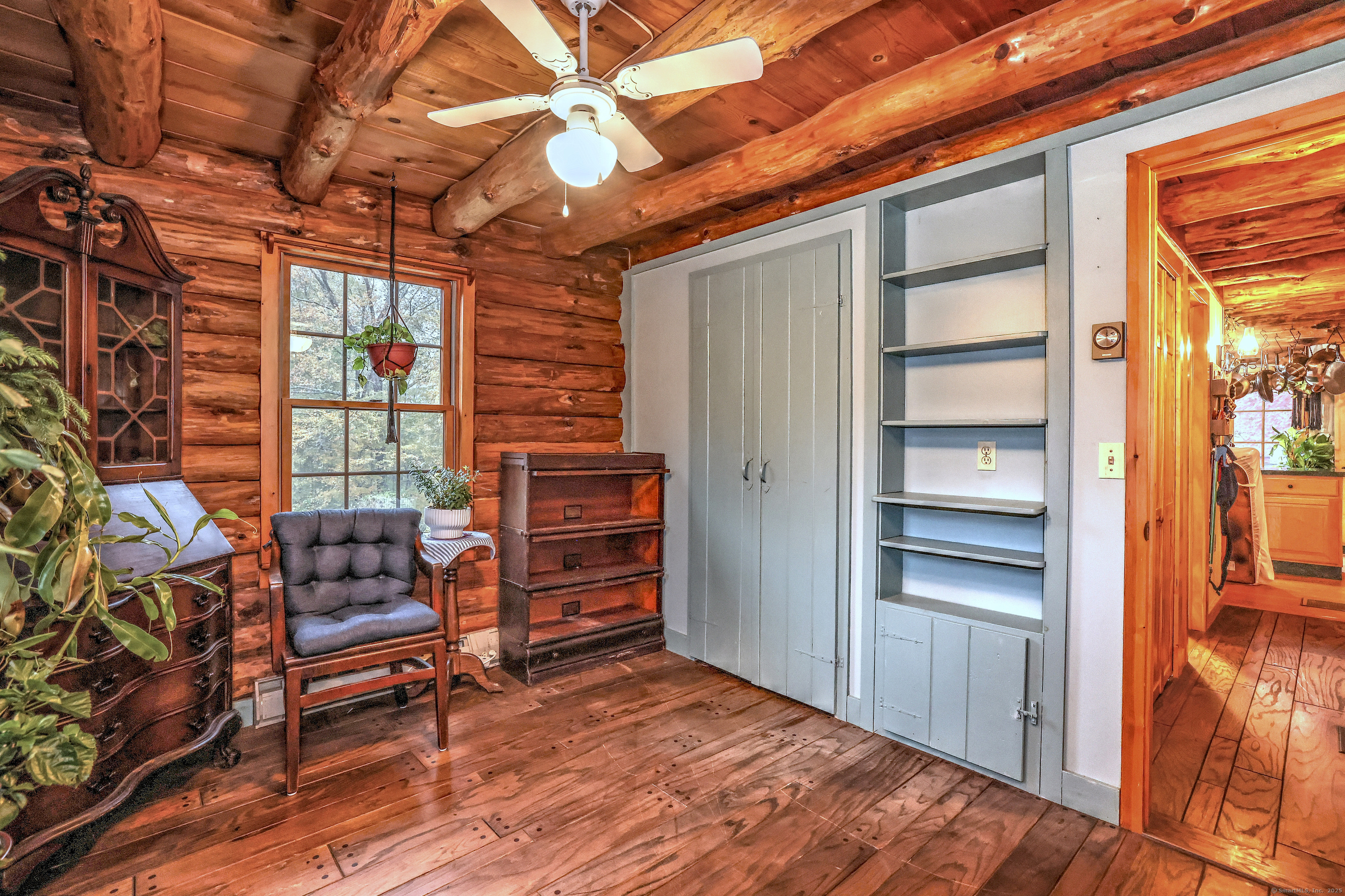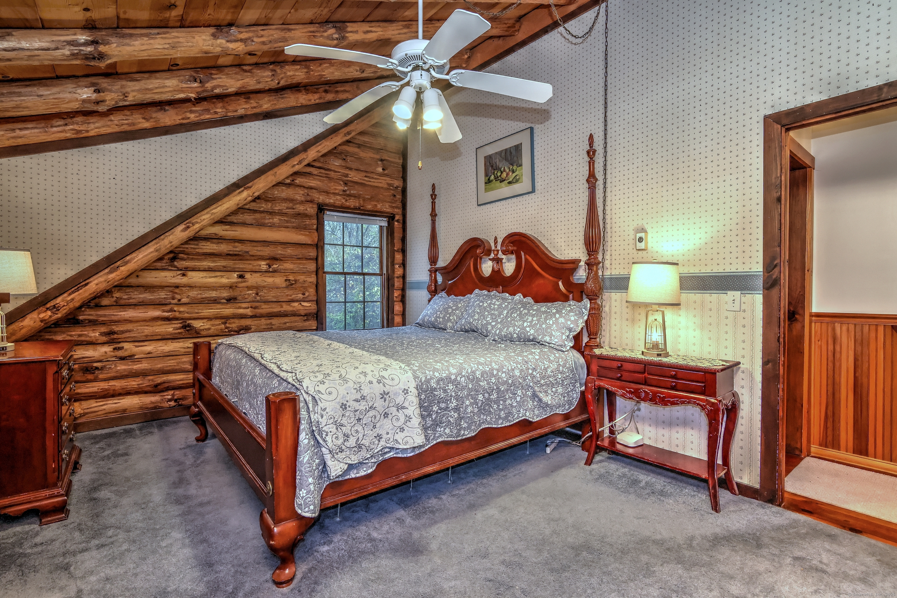 Set back from the road on over 2 acres, this handcrafted full-scribe log home offers peace, privacy, and the kind of warmth that only true country living can provide. Picture arriving home for the holidays, the porch strung with lights, and a fire crackling inside as snow drifts softly outside. At the heart of the home is a stunning stone fireplace, built with stones gathered from the property and topped with a hard rock maple mantel. For added comfort, two wood stoves, one in the rec room and another in the utility area, create a cozy atmosphere throughout the seasons. The home comes with six cords of seasoned wood, so you'll be ready this winter. The country kitchen, complete with a brand-new refrigerator and dishwasher, flows into a welcoming dining room and opens to a multi-level deck overlooking a landscaped backyard with flowering trees. A brook meanders through the 2.18-acre property, completing the retreat setting. A first-floor office or den with a closet offers flexibility to serve as a 4th bedroom if needed. The finished lower level provides a rec room with French doors to the backyard. Added conveniences include 200 amp service, a central vacuum system and a laundry chute. Car lovers and hobbyists will appreciate the oversized two-car garage with workshop and loft, plus three open bays accessible from the back for storage or projects. Conveniently located near Rte 11 and I-395.