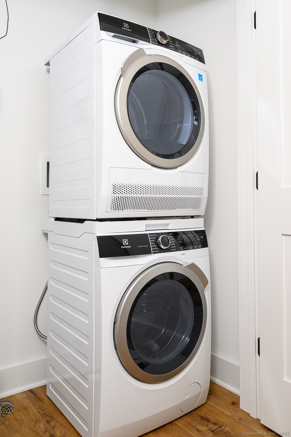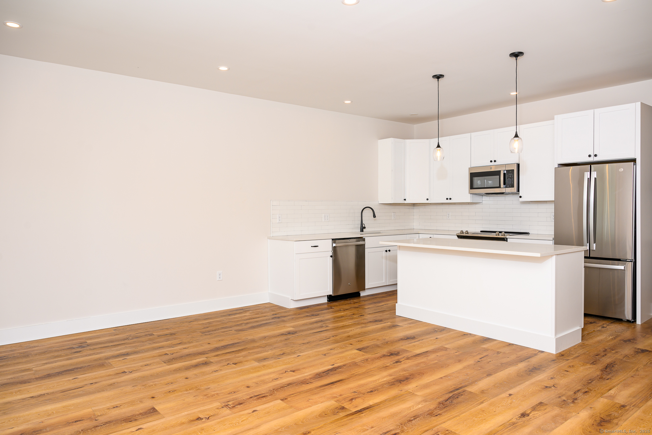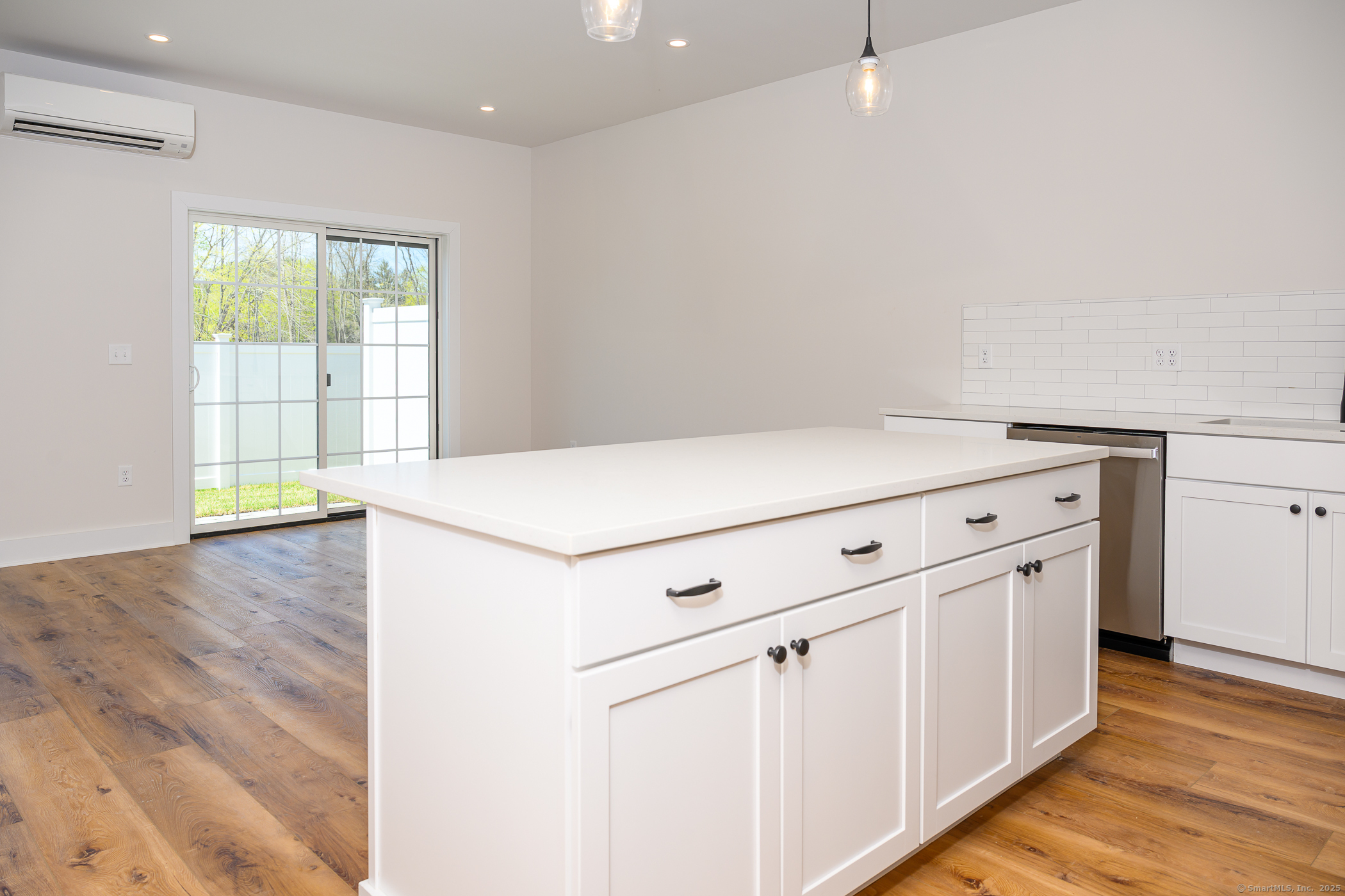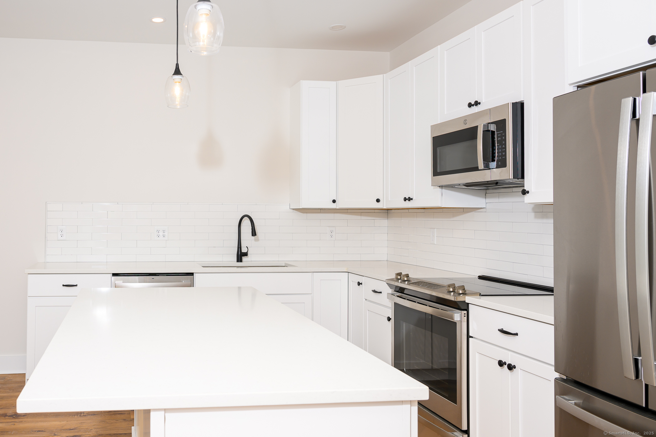Discover the ease and elegance of Connecticut shoreline living in this brand-new 55+ community, ideally located at Flanders Four Corners-just minutes from Niantic's beaches, marinas, shops, and restaurants. Offering the ease of a maintenance-free lifestyle with 24/7 property management, this townhouse-style residence is the perfect year-round home or coastal retreat. Set within the third of three condominium buildings, Unit 15 features 1,210 sq ft of bright, open living space. Enter through a welcoming foyer and front hallway that includes a spacious utility closet with washer, dryer, and water heater, as well as a stylish powder room at the end of the hall. The home showcases wide-plank luxury vinyl flooring and a custom white shaker kitchen with quartz counters, subway tile backsplash, stainless-steel appliances, and a large island flowing seamlessly into the living and dining area. An extra-deep storage and coat closet provides additional convenience, while a sliding door opens to a private patio-perfect for morning coffee or evening relaxation. A detached garage adds ease and storage. Upstairs, two generous bedrooms share a full bath with a large walk-in shower. Premium energy-efficient Marvin windows, mini-split heating, and central air ensure year-round comfort. With daily essentials just steps away and Niantic's coastal charm only four miles from your door, this home offers an ideal blend of style, comfort, and value in a prime shoreline setting.
