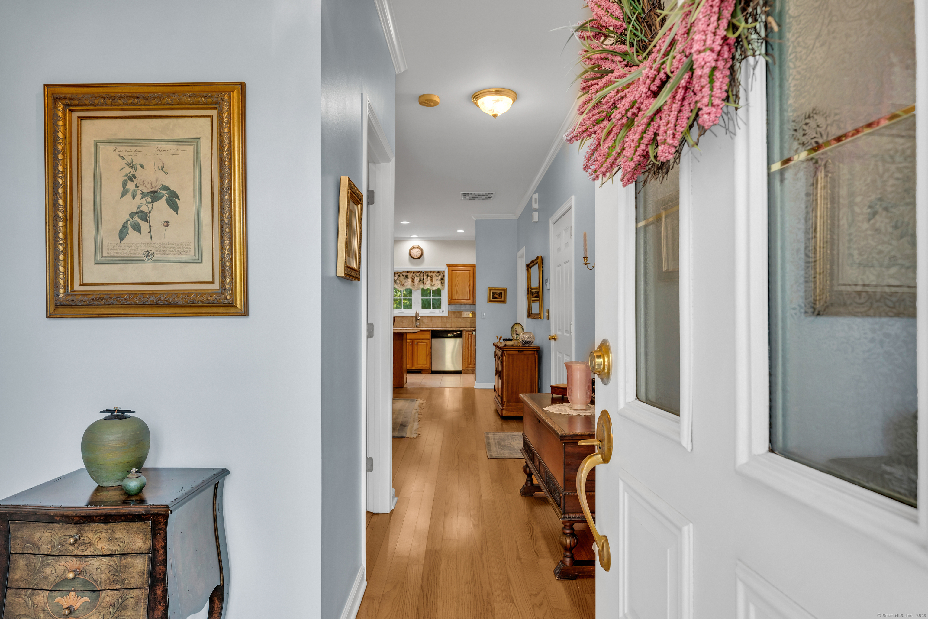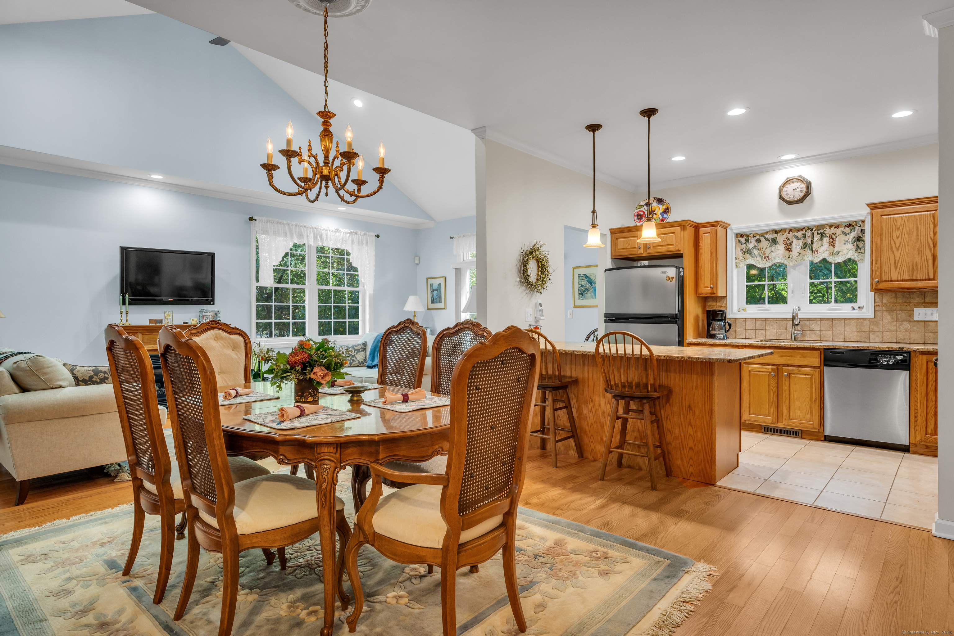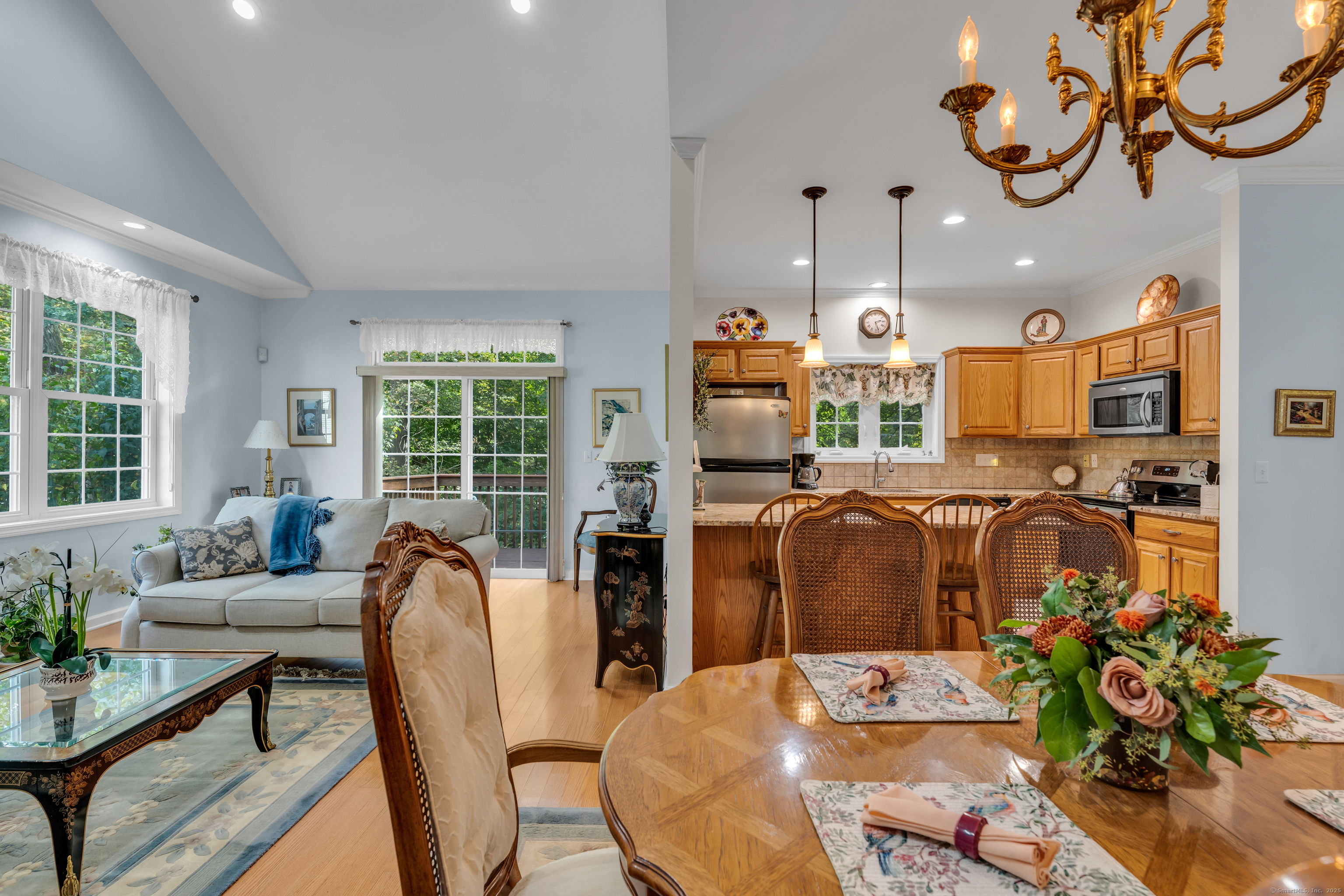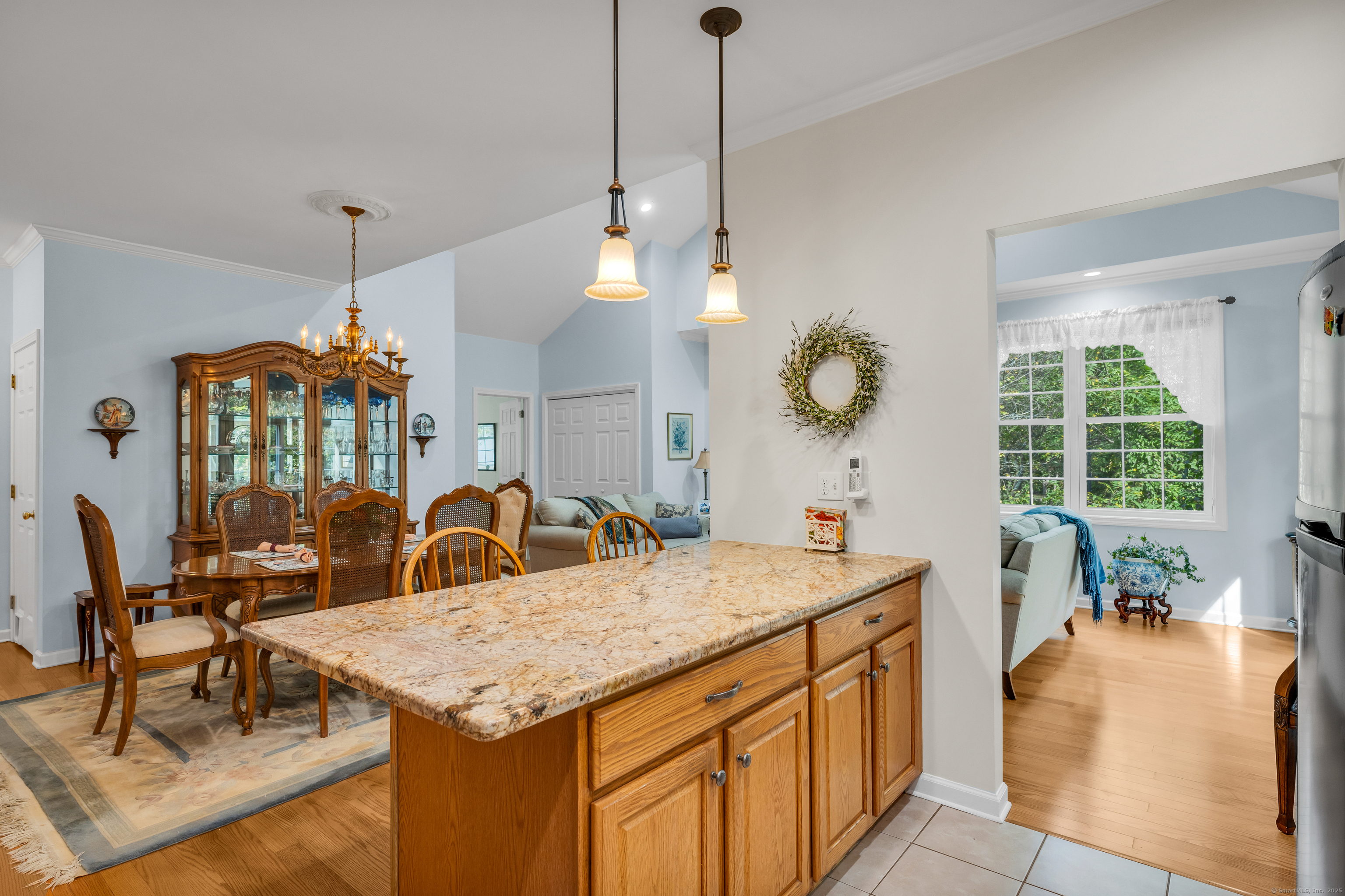 Welcome to Pond View Estates, a quiet and desirable 55+ community where this spacious 2-bedroom, 2.5-bath ranch offers comfortable living and thoughtful design. An inviting open floor plan features hardwood floors throughout, a living room with cathedral ceilings, gas fireplace, and sliders leading to a private deck-perfect for relaxing or entertaining. The kitchen is beautifully appointed with granite counters and stainless steel appliances. Each bedroom has its own private bath, with the primary suite offering a walk-in closet and stall shower. The walk-out lower level provides endless possibilities-whether as a family room, gym, workshop, or extra storage. A two-car attached garage and main-level laundry add convenience. With its stylish finishes and flexible spaces, this home is an ideal blend of comfort and practicality.