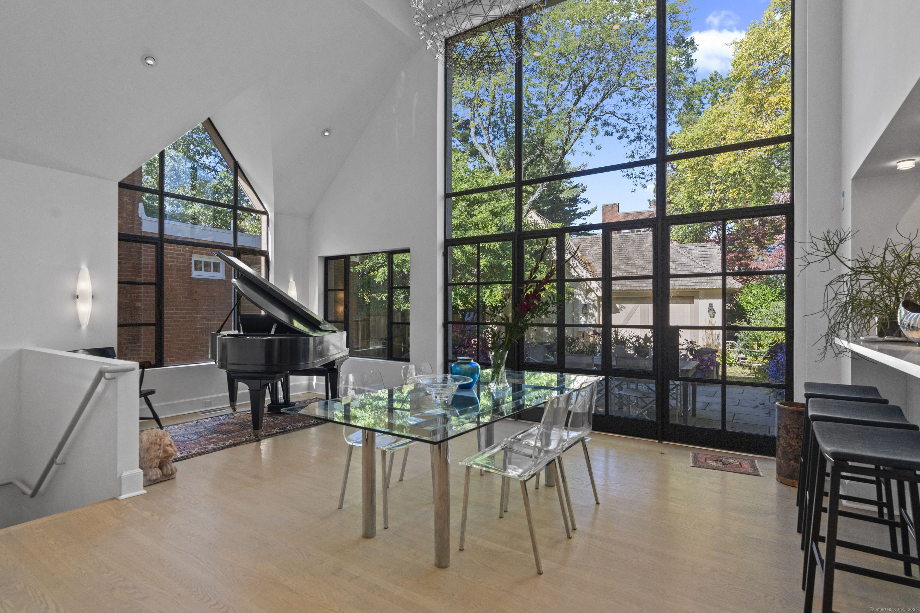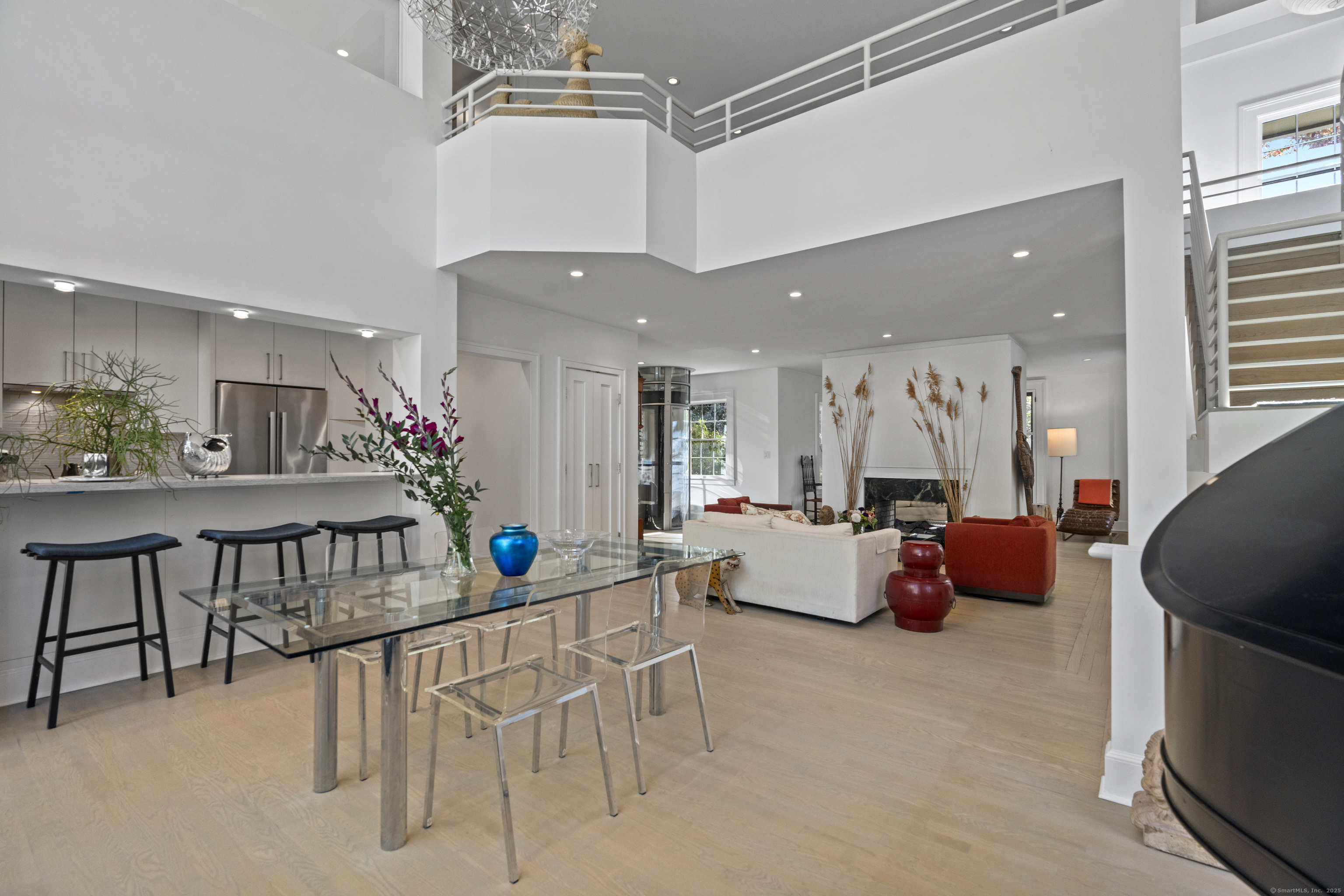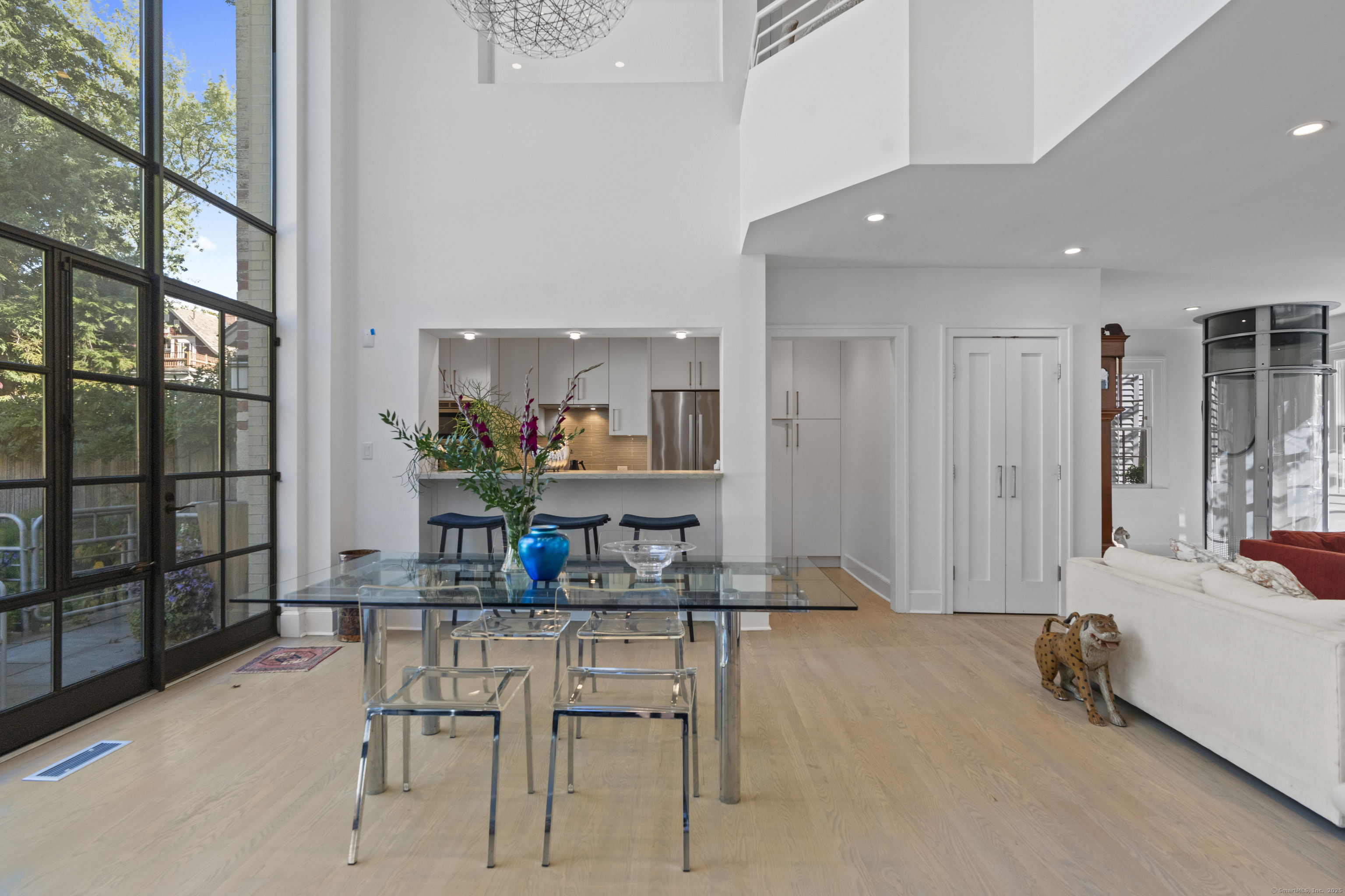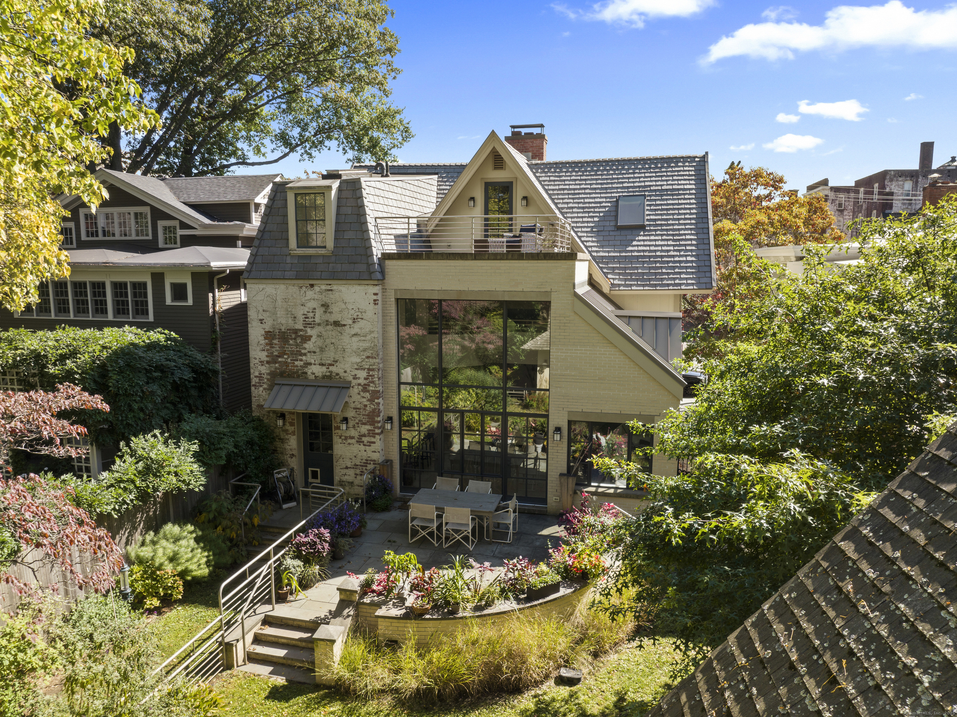 Architect designed, award-winning home on sought after Lincoln Street. Built in 1840 and renovated and expanded in 2016 by architect Paul Bailey, this contemporary design is truly breathtaking. The main level is an open concept floor plan with flexible living and dining space, soaring coffered ceilings, professional lighting, and a show stopping two story steel glass window. A cozy den or living space in the front of the house has restored original windows and a double-sided fireplace. The designer kitchen has stone counters, custom cabinetry, stainless appliances and a breakfast bar. An alcove is used for a piano currently and would also be well suited for an office, with more custom designed window. The first floor also includes a remodeled half bath, a stunning staircase, and an elevator for ease of access from first to second floor. The second floor offers a two-room primary suite with a walk-in closet and renovated bathroom. The third floor has a second bedroom with a remodeled bathroom, a large closet, and access to an incredible rooftop deck that overlooks New Haven. Professionally landscaped yard with a bluestone terrace, and a 2 car garage. Steps from Yale, Downtown New Haven, New Haven Lawn Club and Yale SOM. Houses like this one do not come on the market often!
