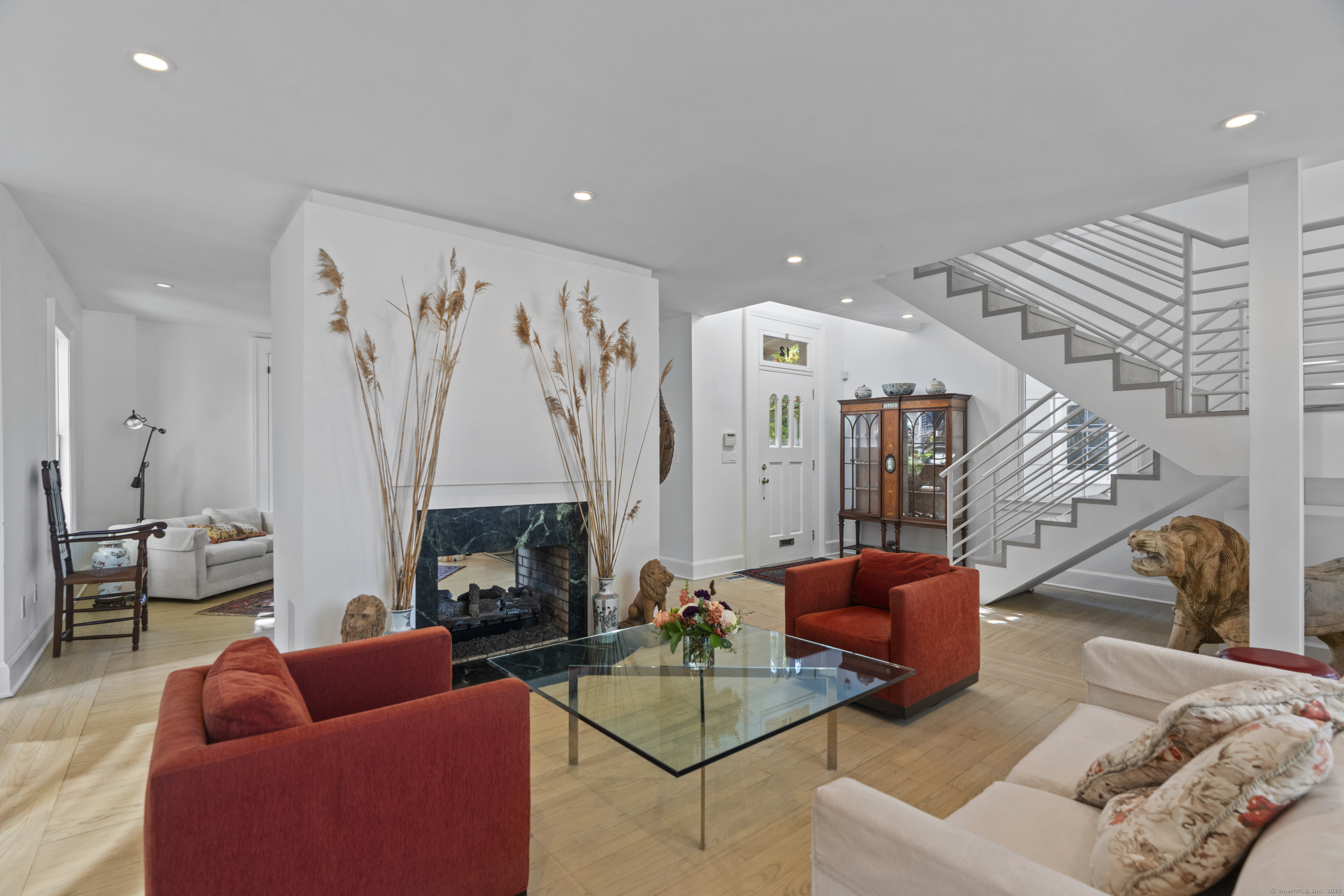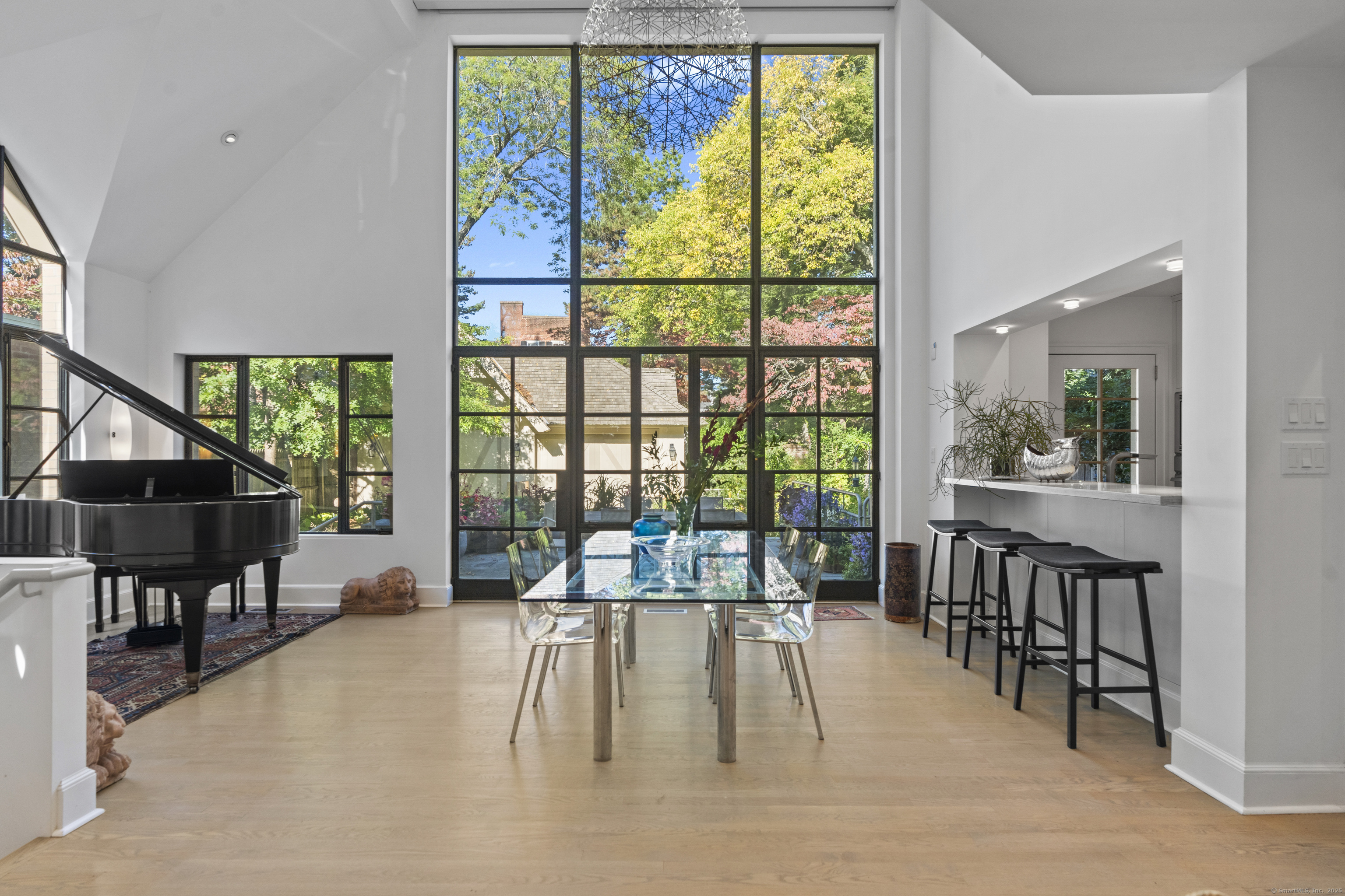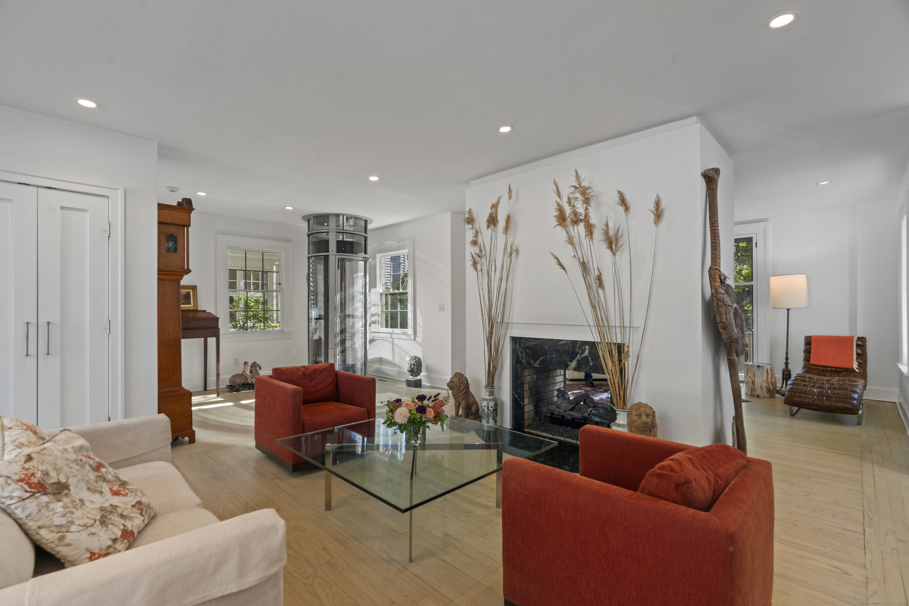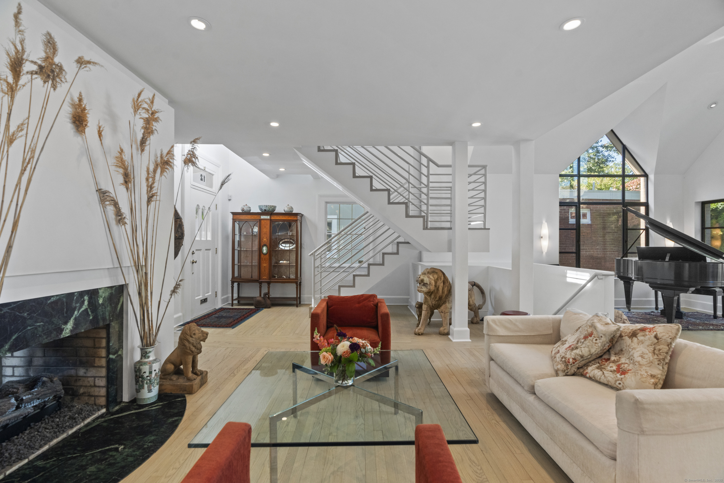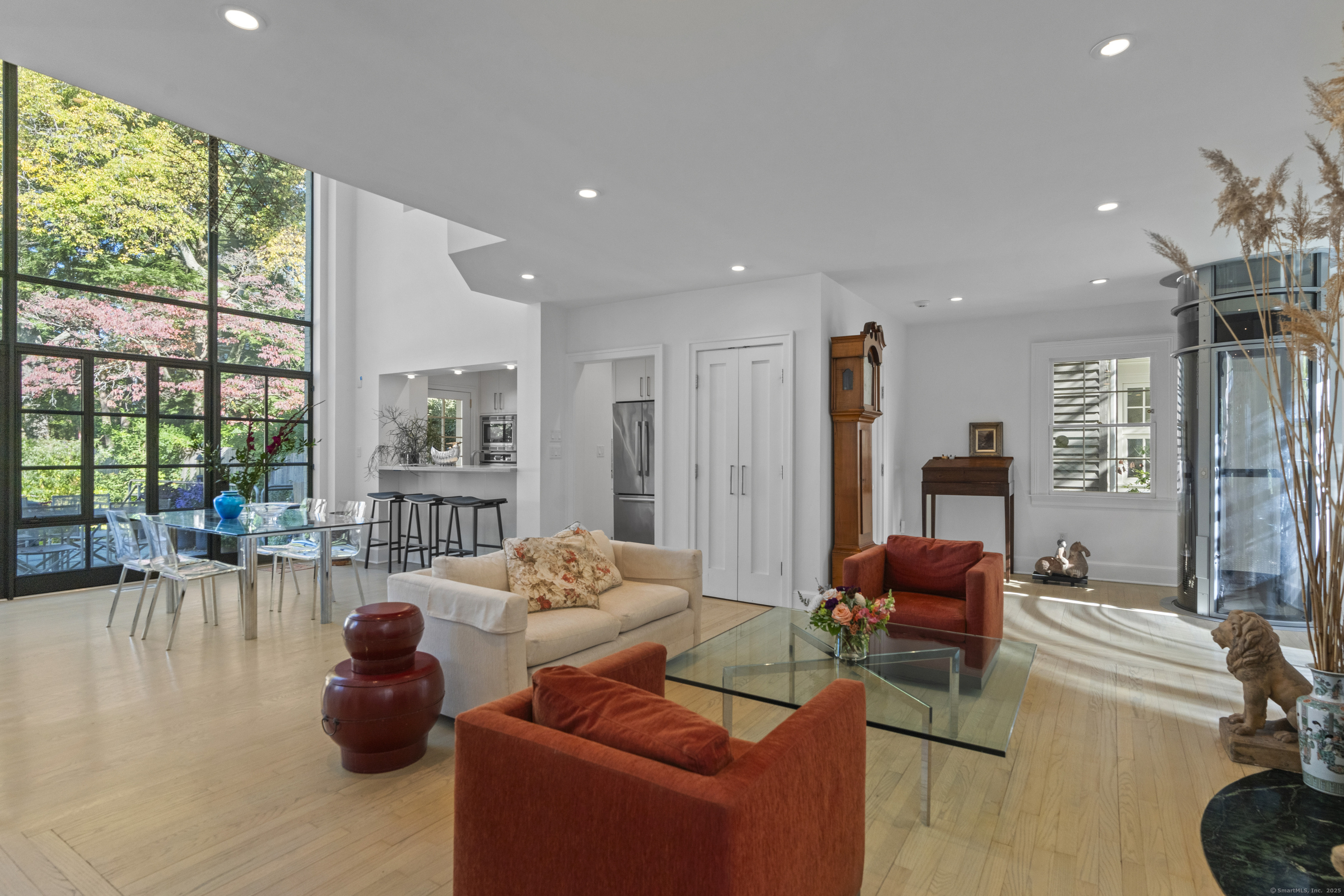Architect designed, award-winning home on sought after Lincoln Street. Built in 1840 and renovated and expanded in 2016 by architect Paul Bailey, this contemporary design is truly breathtaking. The main level is an open concept floor plan with flexible living and dining space, soaring coffered ceilings, professional lighting, and a show stopping two story steel glass window. A cozy den or living space in the front of the house has restored original windows and a double-sided fireplace. The designer kitchen has stone counters, custom cabinetry, stainless appliances and a breakfast bar. An alcove is used for a piano currently and would also be well suited for an office, with more custom designed window. The first floor also includes a remodeled half bath, a stunning staircase, and an elevator for ease of access from first to second floor. The second floor offers a two-room primary suite with a walk-in closet and renovated bathroom. The third floor has a second bedroom with a remodeled bathroom, a large closet, and access to an incredible rooftop deck that overlooks New Haven. Professionally landscaped yard with a bluestone terrace, and a 2 car garage. Steps from Yale, Downtown New Haven, New Haven Lawn Club and Yale SOM. Houses like this one do not come on the market often!