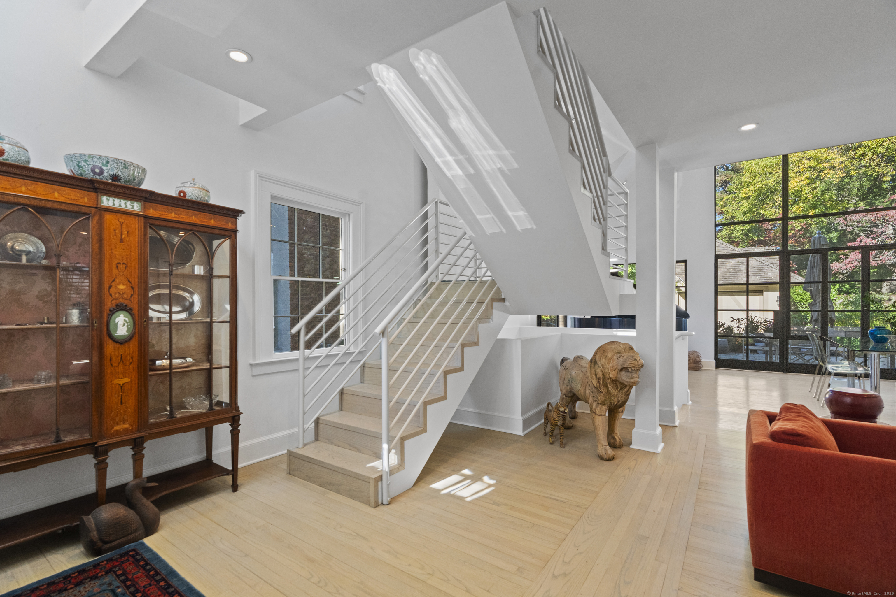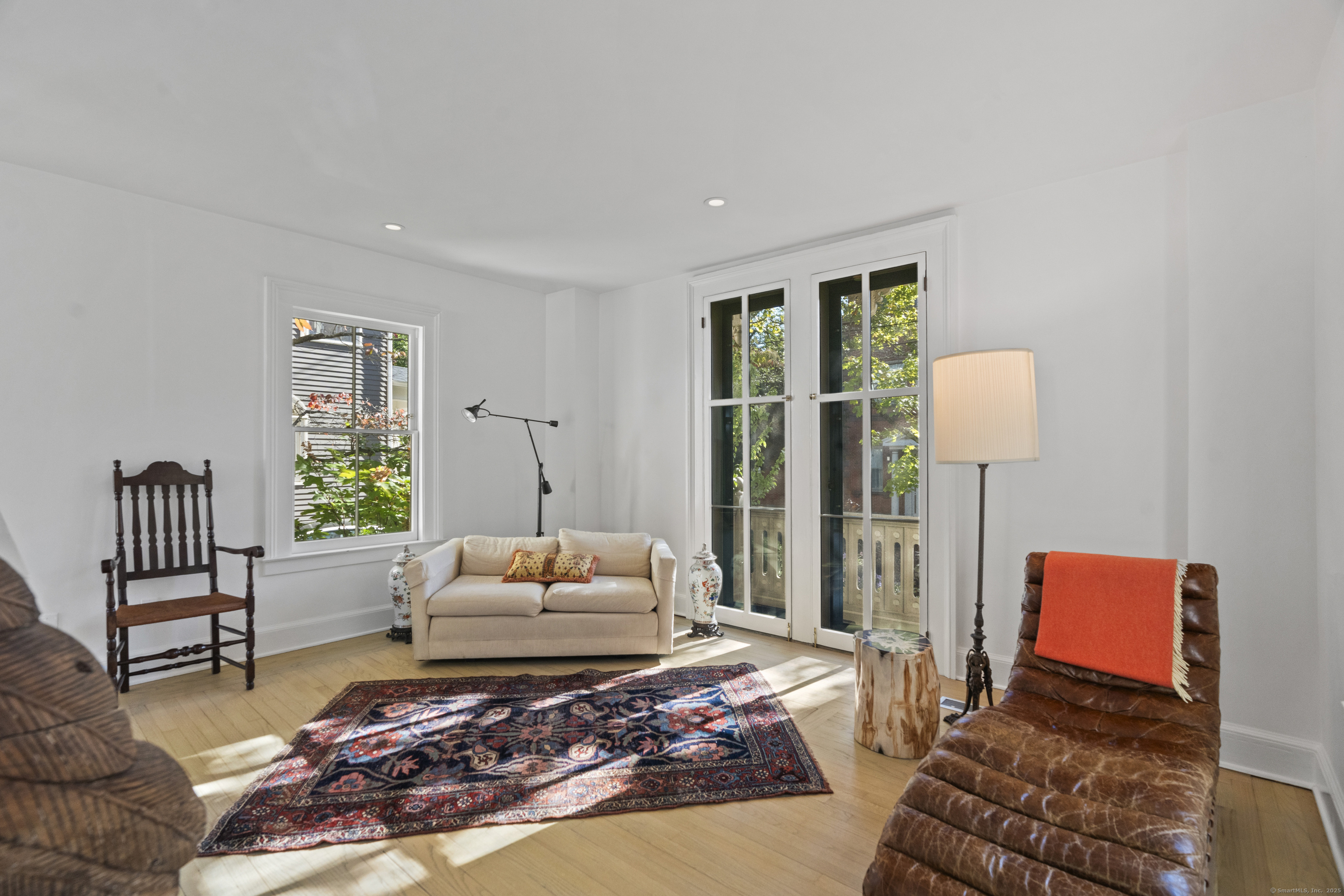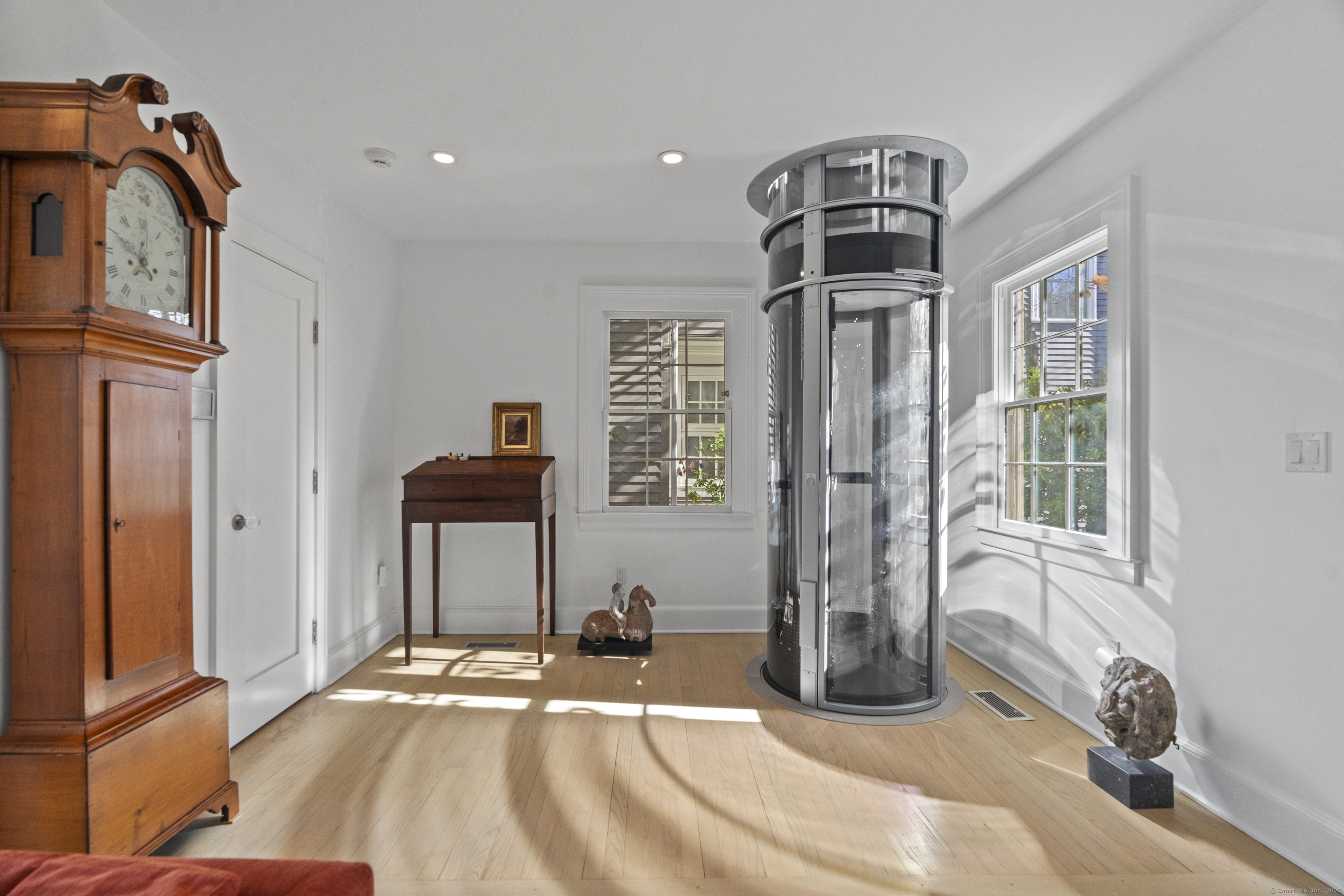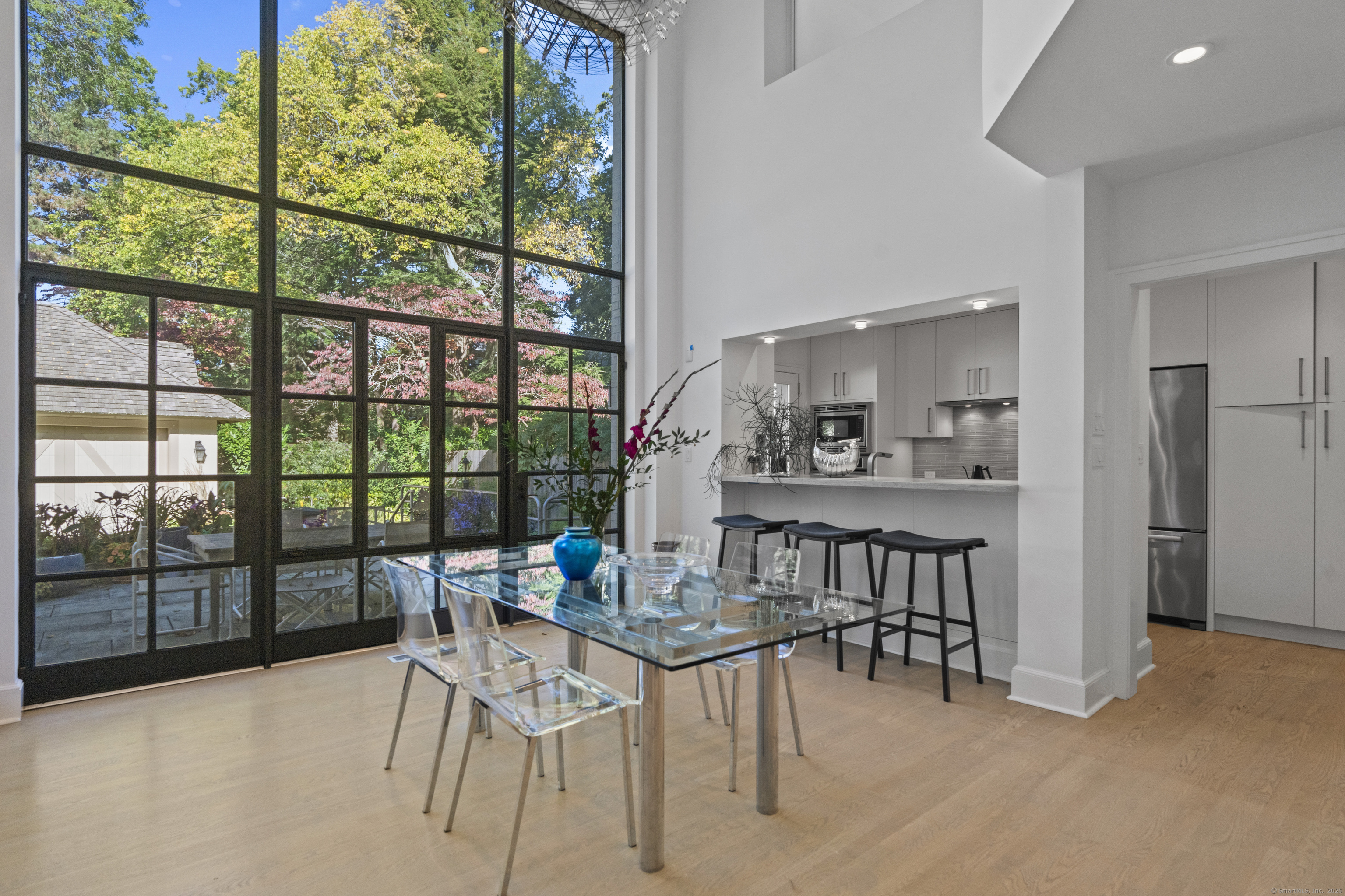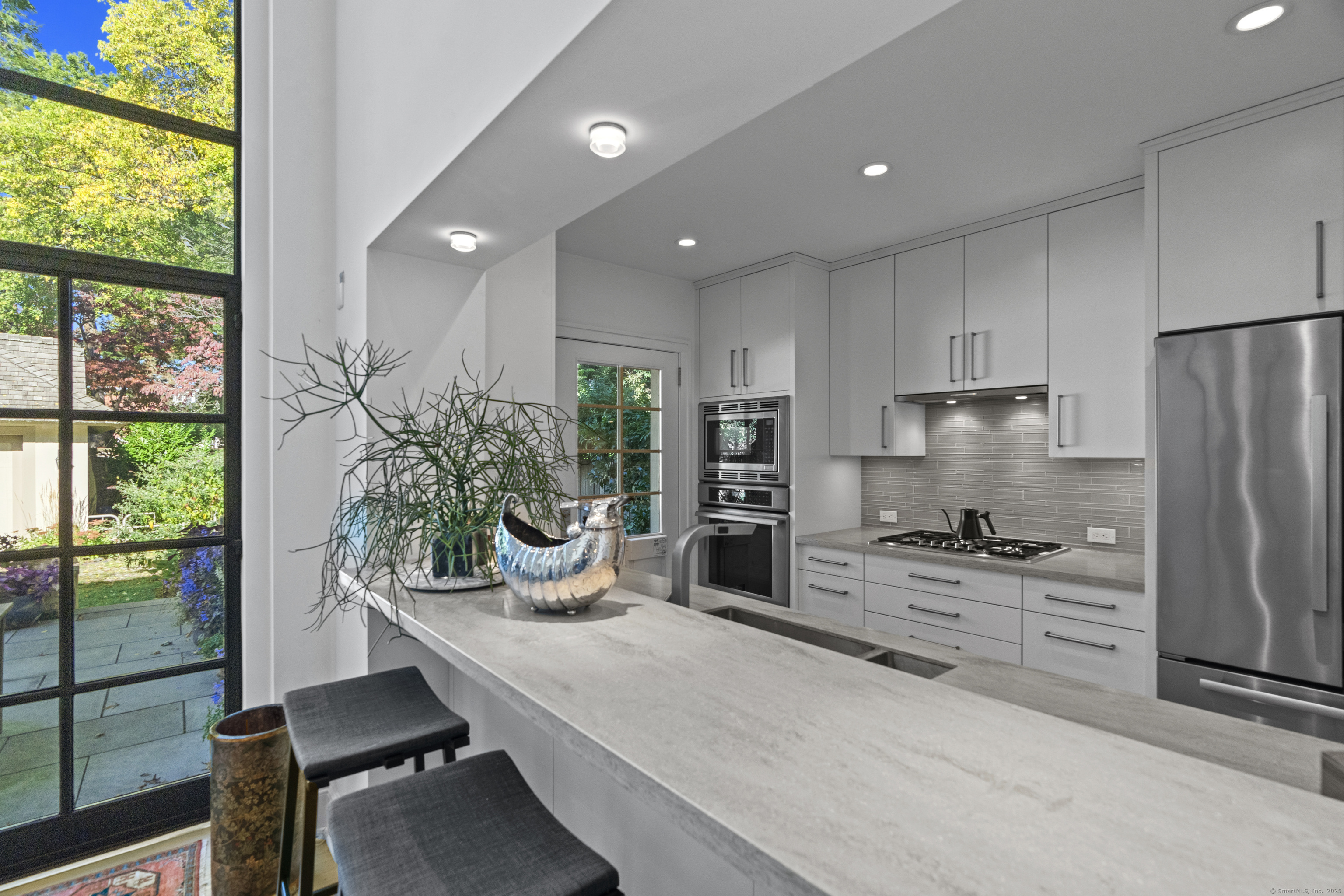Architect designed, award-winning home on sought after Lincoln Street. Built in 1840 and renovated and expanded in 2016 by architect Paul Bailey, this contemporary design is truly breathtaking. The main level is an open concept floor plan with flexible living and dining space, soaring coffered ceilings, professional lighting, and a show stopping two story steel glass window. A cozy den or living space in the front of the house has restored original windows and a double-sided fireplace. The designer kitchen has stone counters, custom cabinetry, stainless appliances and a breakfast bar. An alcove is used for a piano currently and would also be well suited for an office, with more custom designed window. The first floor also includes a remodeled half bath, a stunning staircase, and an elevator for ease of access from first to second floor. The second floor offers a two-room primary suite with a walk-in closet and renovated bathroom. The third floor has a second bedroom with a remodeled bathroom, a large closet, and access to an incredible rooftop deck that overlooks New Haven. Professionally landscaped yard with a bluestone terrace, and a 2 car garage. Steps from Yale, Downtown New Haven, New Haven Lawn Club and Yale SOM. Houses like this one do not come on the market often!