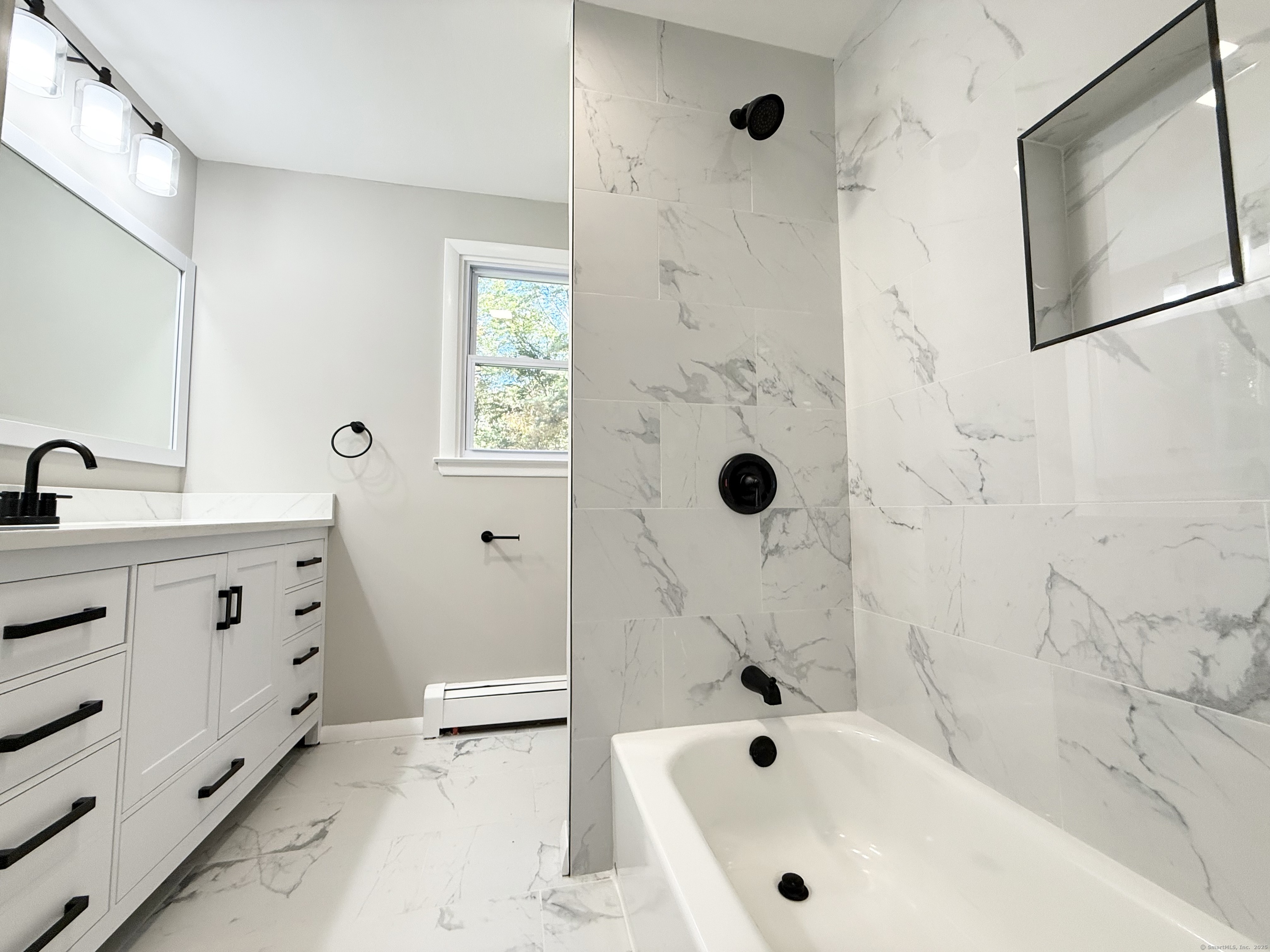 Welcome to 197 Meyer Rd in Torrington! This sun-filled 3-bedroom home blends modern updates with timeless comfort. Step inside and enjoy two beautifully renovated bathrooms, upstairs features a custom tiled shower with a built-in shampoo niche for spa-like ease. The kitchen is a cook's delight, complete with sleek stainless-steel appliances and granite countertops. Relax in the cozy living room by the fireplace or stretch out in the spacious finished lower-level bonus room, perfect for gatherings or quiet retreat. Outside, a brand-new back deck overlooks a parklike backyard and refreshed front walkway create inviting spaces for entertaining or simply soaking up the seasons. Additional highlights include a two-car attached garage, thoughtfully tiled bathrooms, and upgrades throughout that add both function and style. This is more than a house, it's a move-in ready home designed for comfort, convenience, and a touch of luxury.