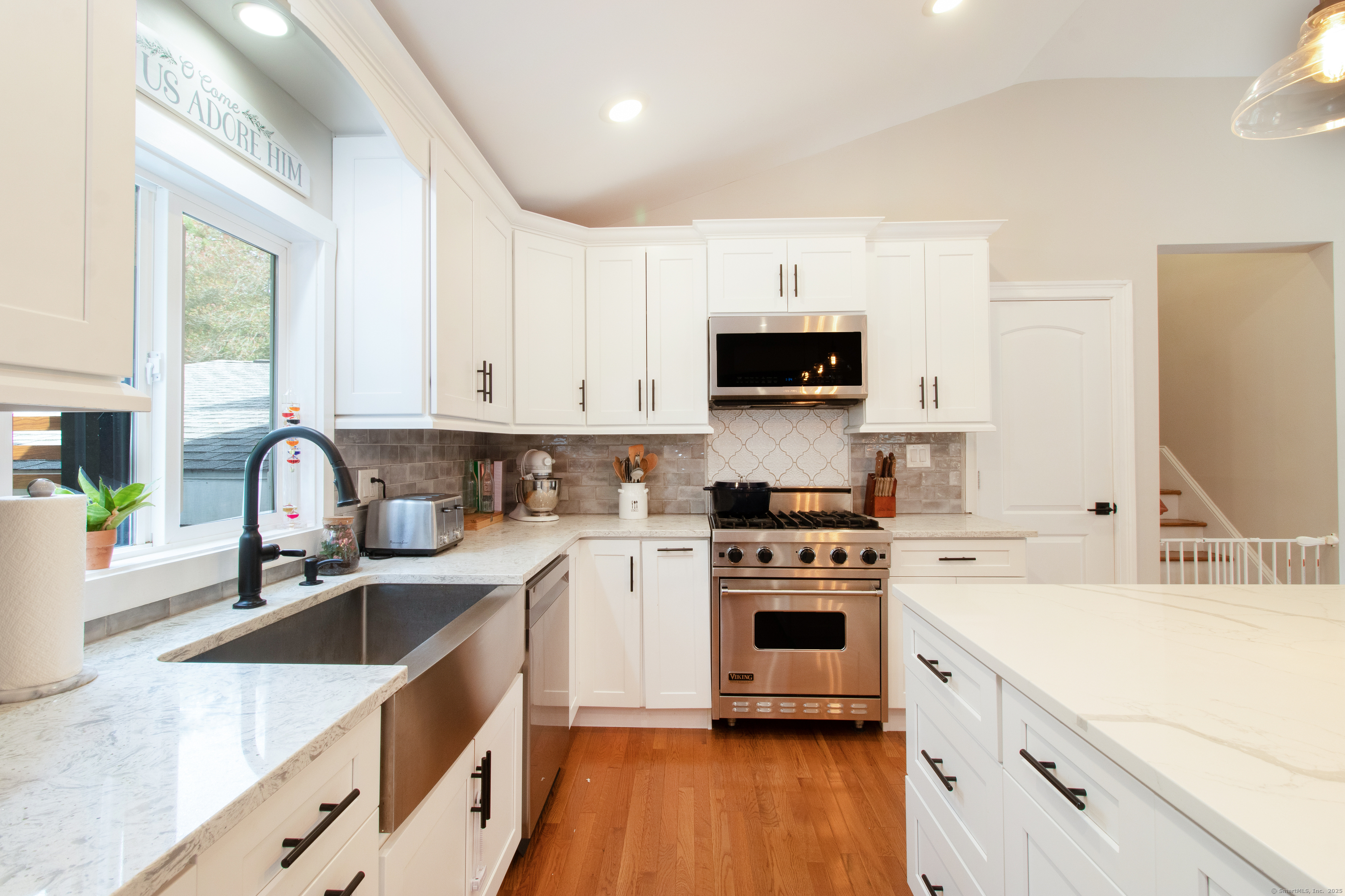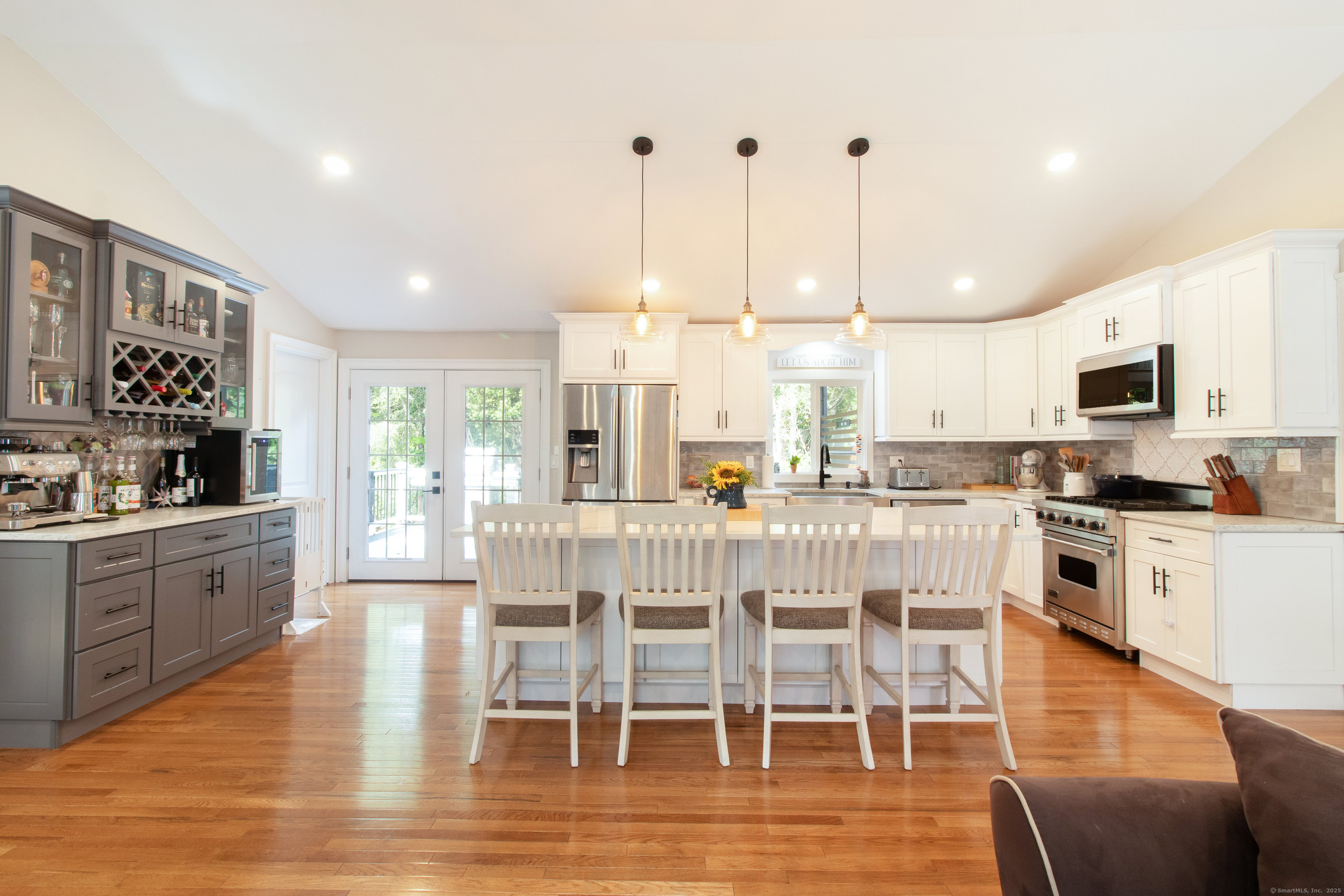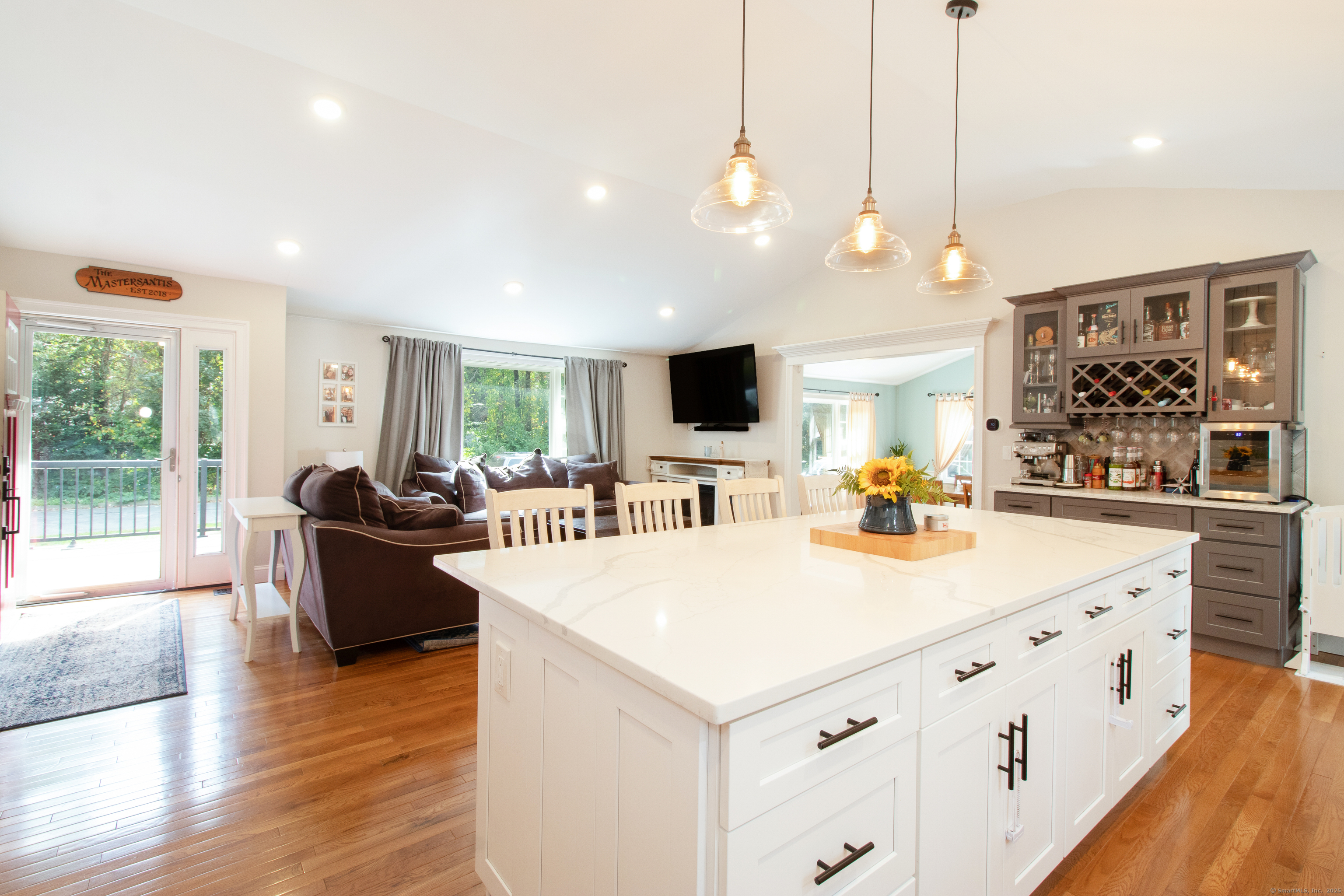 *SQFT differs from the property card roughly 2340 living area and roughly 3479 including garage and finishable basement. From the moment you step inside, this home tells a story of thoughtful craftsmanship and modern comfort. Over the past five years, it's been beautifully reimagined-The kitchen shines as the heart of the home, with quartzite countertops, a Viking stove, and a custom coffee bar with glass cabinetry. The home features andersen windows and rich hardwood floors that bring warmth throughout. Just off the kitchen, the sunlit formal living room is perfect for gathering, while the nearby dining room offers flexibility-ideal as-is or for a future sunken lounge. Up a few steps are three spacious bedrooms, including a primary the with deep double closets. All bathrooms have been rebuilt from the studs up with marble cobblestone floors. The lower level offers slate flooring, a cozy fireplace wall, full bath, private entrance, and dedicated office-perfect for a den or in-law suite. Off the kitchen, a half bath and laundry room to add convenience with ease to the breezeway that leads to a dream garage-featuring a tall bay for a lift, mezzanine storage, and new insulation, a tradesman dream! Step outside to low-maintenance multi level Trex deck, and paver patio designed for entertaining and relaxation. With all-new plumbing, electrical, HVAC, and Energy Star features, this home is truly move-in ready-crafted to last, built to enjoy.