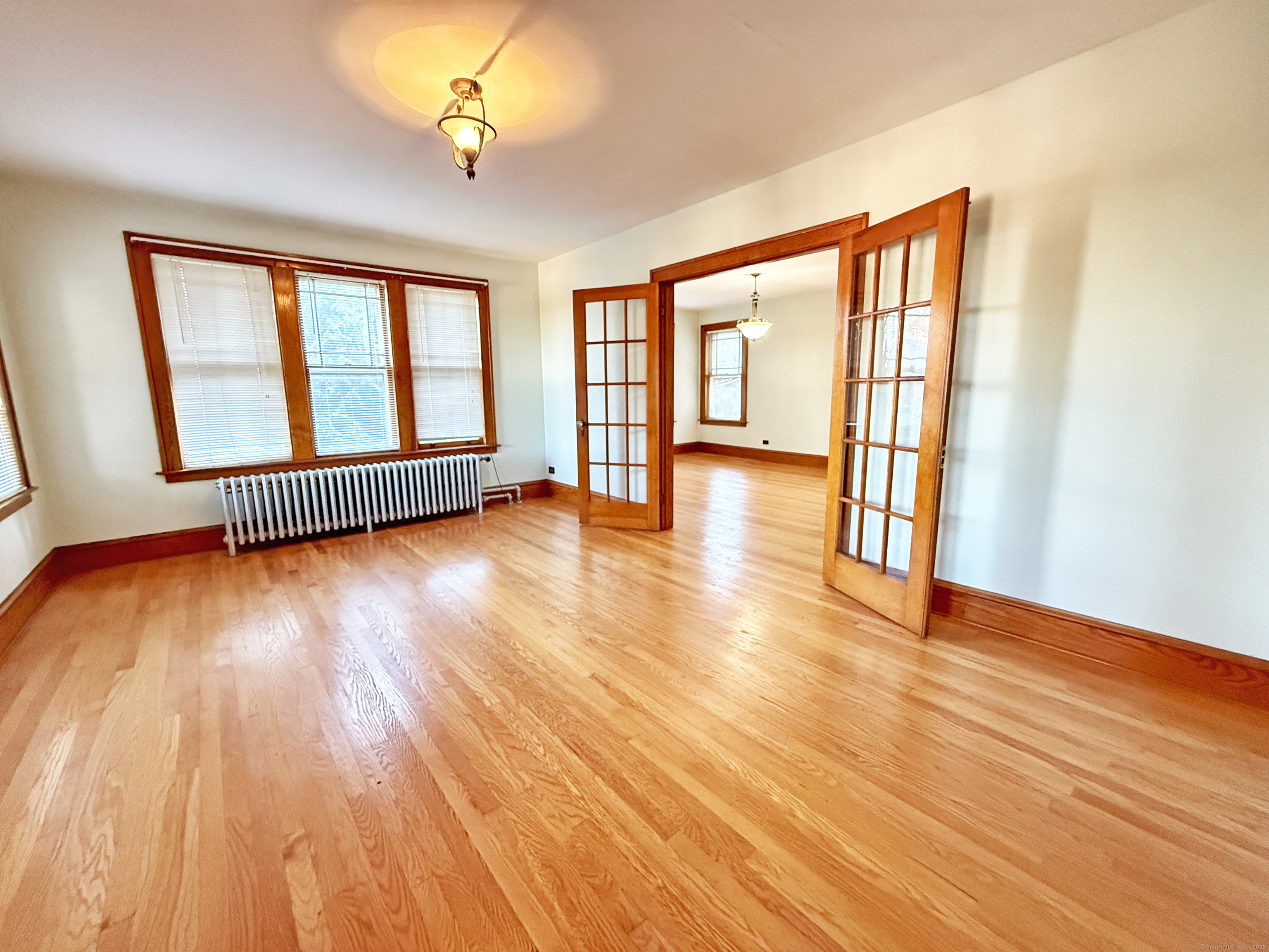 Charming Vintage Brick Two-Family on Corner Lot Discover this classic 1930s two-family home, offering a rare blend of character, space, and opportunity. Each floor features an identical five-room layout with 2 spacious bedrooms, 1 full bath, a large living room, and a formal dining room, highlighted by original woodwork and preserved period bathroom motifs. The property offers 10 total rooms across both units, making it ideal for owner-occupancy, multi-generational living, or investment. A walk-up attic provides additional storage or potential expansion. Set on a generous corner lot at the front of a cul-de-sac, this home includes a detached two-car garage and parking for up to six vehicles. The large yard offers plenty of outdoor space with potential for subdivision into an additional lot (buyer to perform due diligence). With its timeless curb appeal, solid brick construction, and endless possibilities, this home is a true find for investors and homeowners alike.