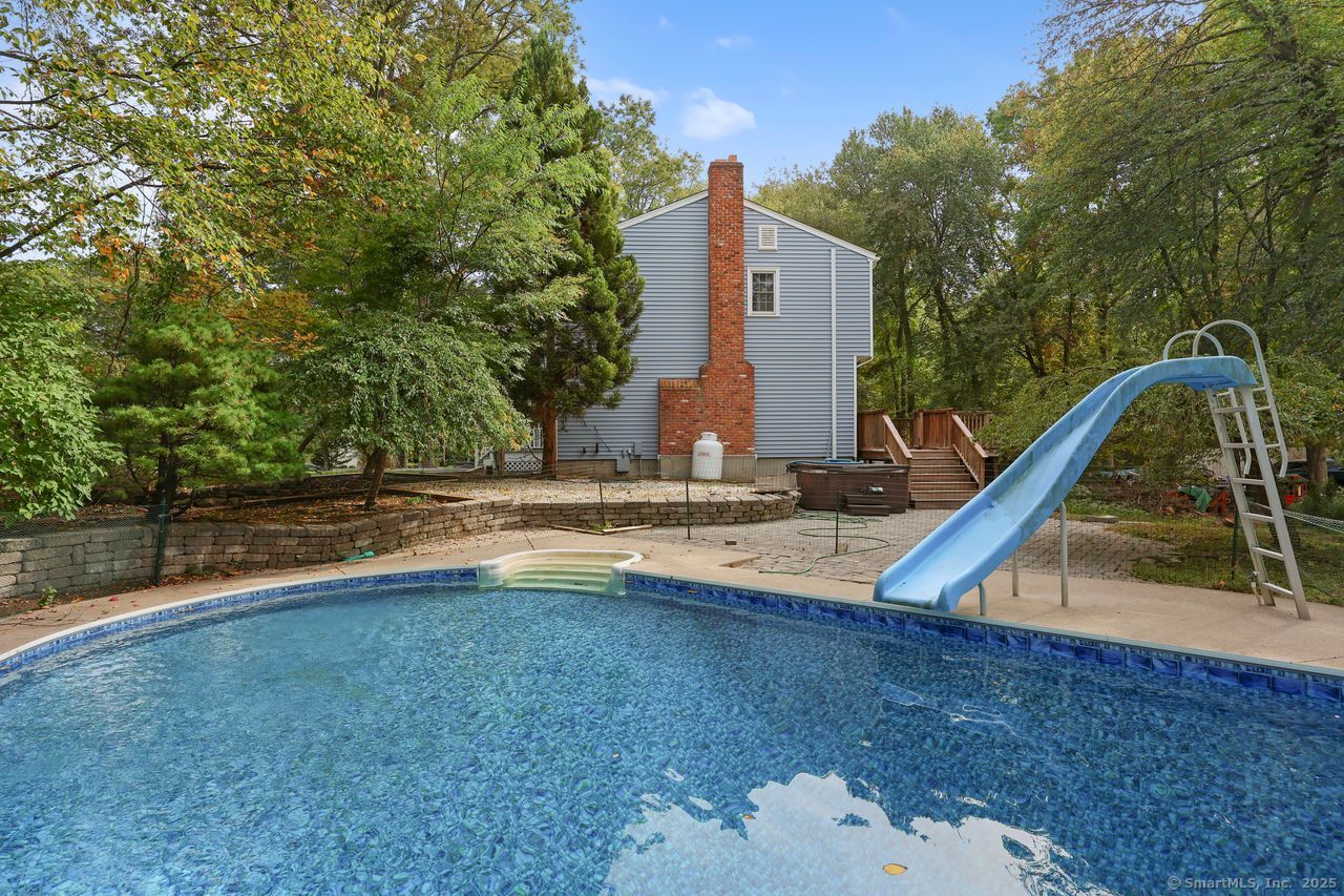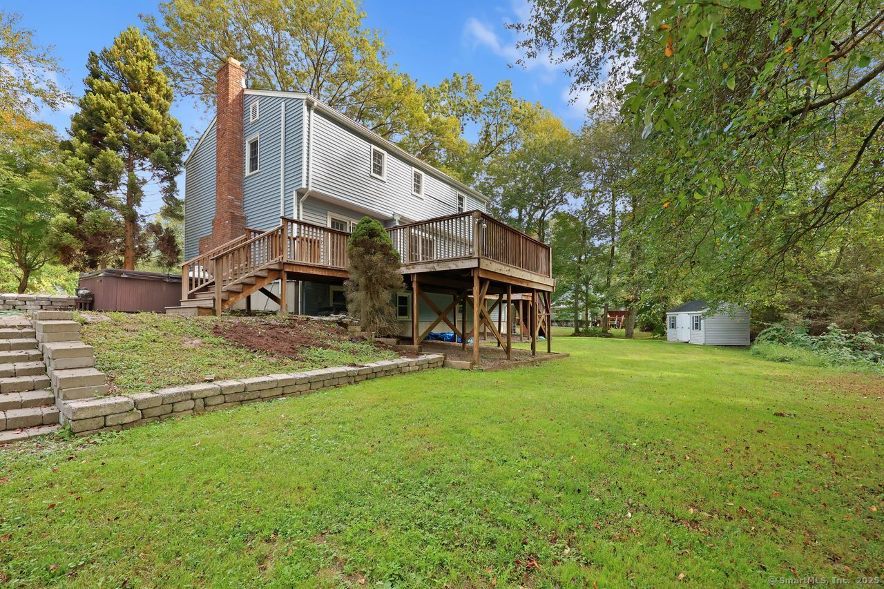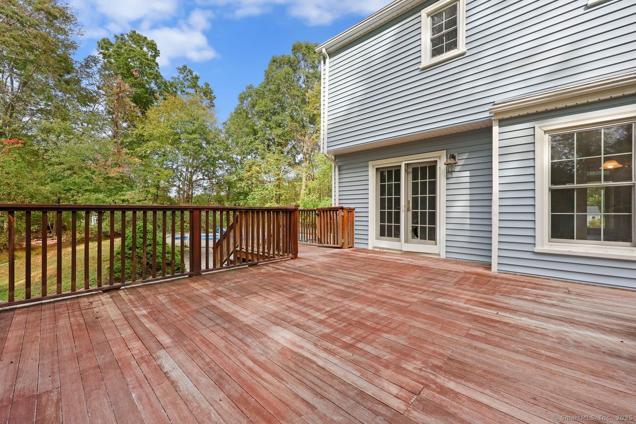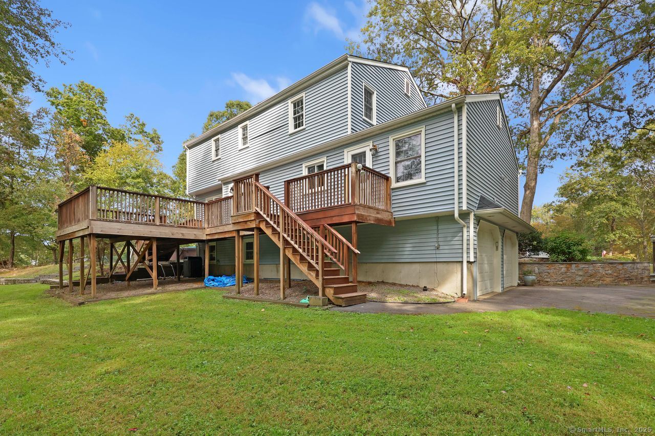 Curb appeal in Huntington! This beautifully maintained 4 bedroom 2.5 bath Colonial that blends timeless charm with modern updates. The inviting front porch, accented by handsome stonework along the walkway and retaining wall, sets the tone as you enter. Inside, the spacious layout offers a comfortable flow for both everyday living and entertaining. The home features a brand-new roof and hardwood floors throughout, recently sanded and polished to perfection. The interior main and upper levels have been freshly painted.The cozy family room has a gas fireplace and French doors leading to an oversized deck. Step outside and enjoy your own backyard oasis with an in-ground pool, perfect for summer gatherings. Mature trees and thoughtful landscaping add privacy and curb appeal. A sun filled kitchen with pantry, offers plenty of space for the family chef. A nice size dining room, living room, and laundry area completes the main level. The upper level includes the primary suite with a full bath and walk-in closet along with 3 bedrooms and a full bath. Finished lower level adds approx. 700 additional ft of living space.With its classic Colonial style, recent updates, and outdoor amenities, this home is move-in ready and waiting for its next chapter. Central A/C, shed, 2 car garage and more! New vinyl pool liner. Estate sale, home sold "as is". No disclosures. Pool is fully operational but lacks up to code fencing.
