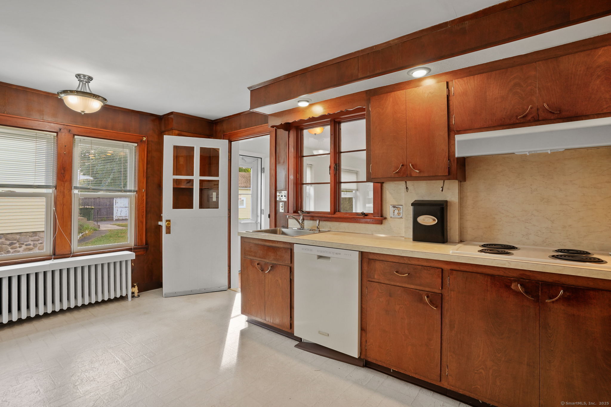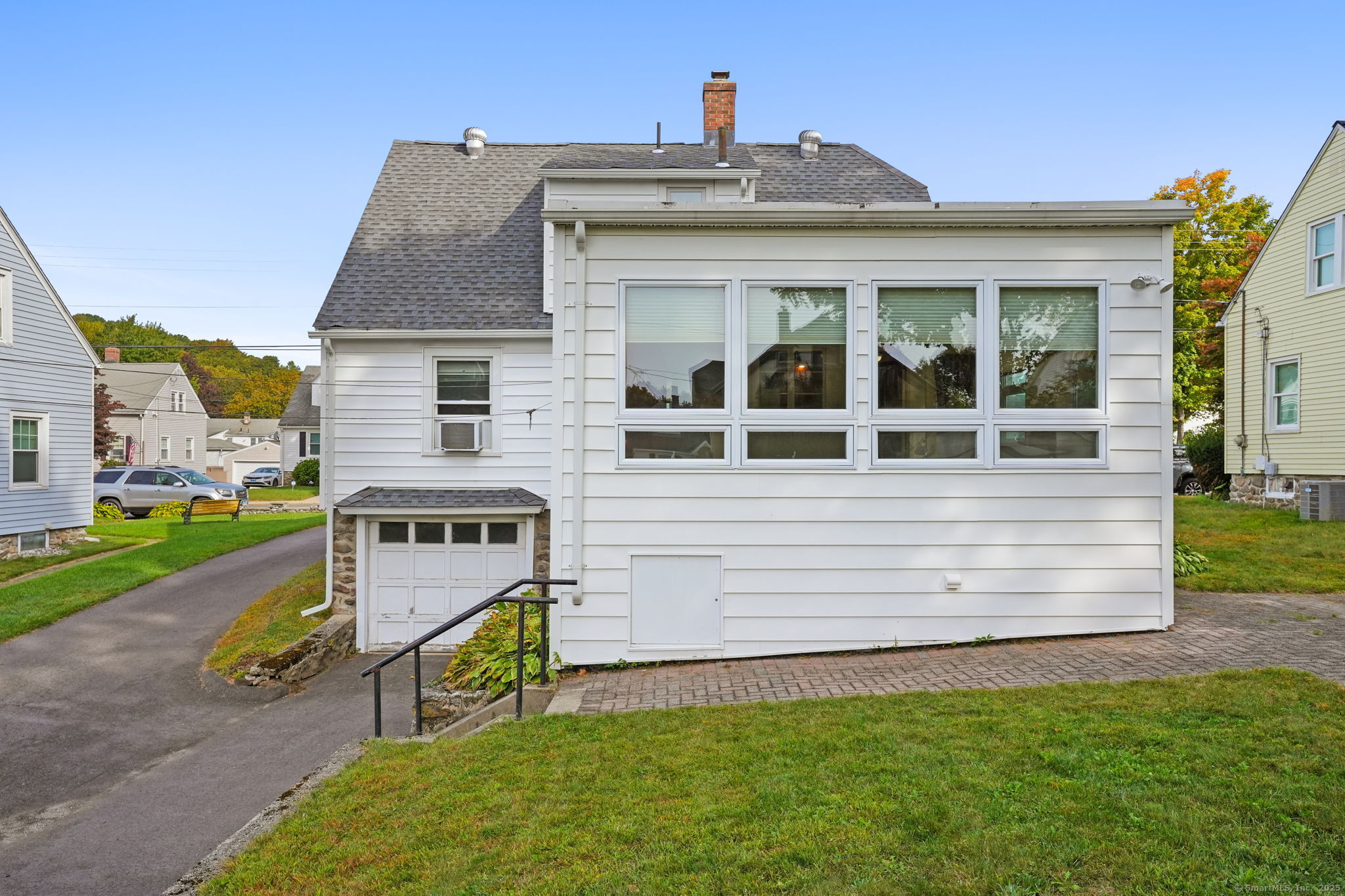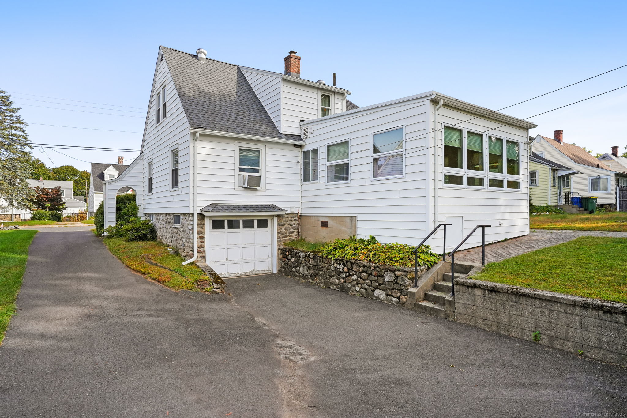 This charming Cape- Style house exudes classic character with its timeless design and cozy ambiance. Featuring two possibly three well sized bedrooms, the home boasts beautiful hardwood floors that adds warmth and elegance throughout. Rich wood trim enhances the architectural details, offering a touch of vintage charm. The layout reflects the traditional Cape style with an efficient design perfect for comfortable living. There is a large, heated sunroom with half bath located off the kitchen area and a spacious garage underneath the home.