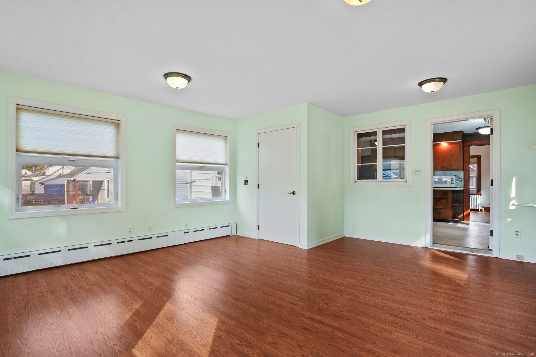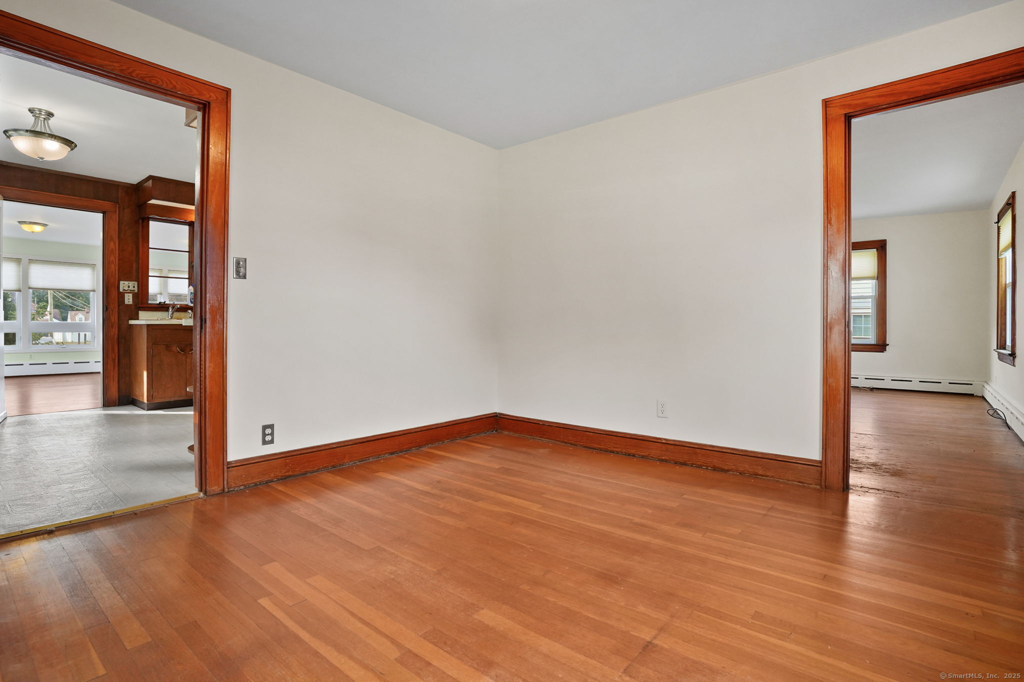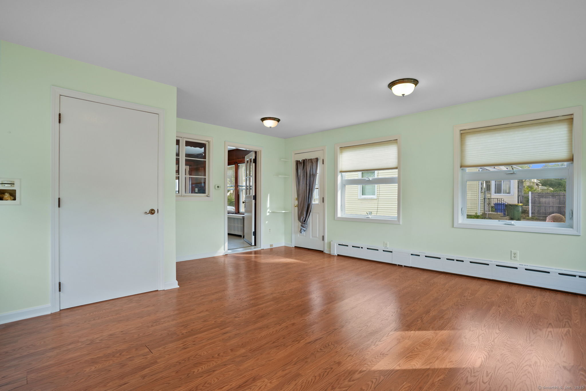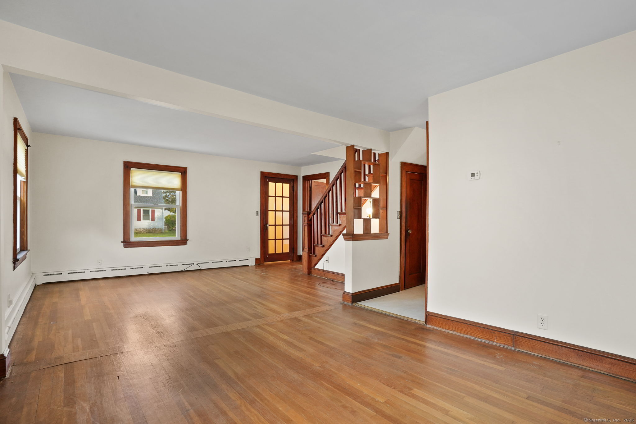 This charming Cape- Style house exudes classic character with its timeless design and cozy ambiance. Featuring two possibly three well sized bedrooms, the home boasts beautiful hardwood floors that adds warmth and elegance throughout. Rich wood trim enhances the architectural details, offering a touch of vintage charm. The layout reflects the traditional Cape style with an efficient design perfect for comfortable living. There is a large, heated sunroom with half bath located off the kitchen area and a spacious garage underneath the home.