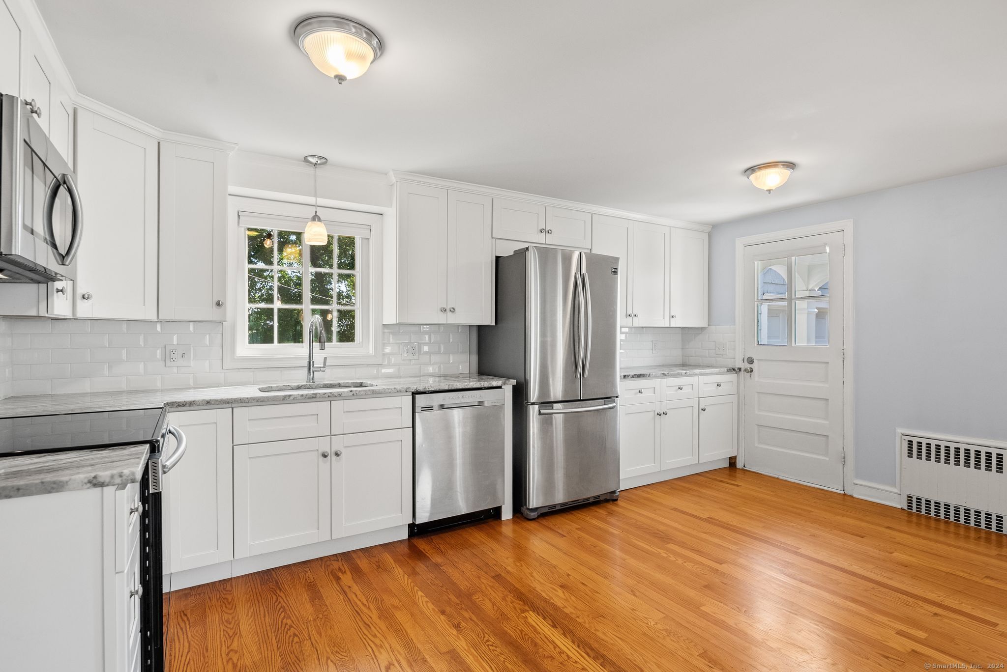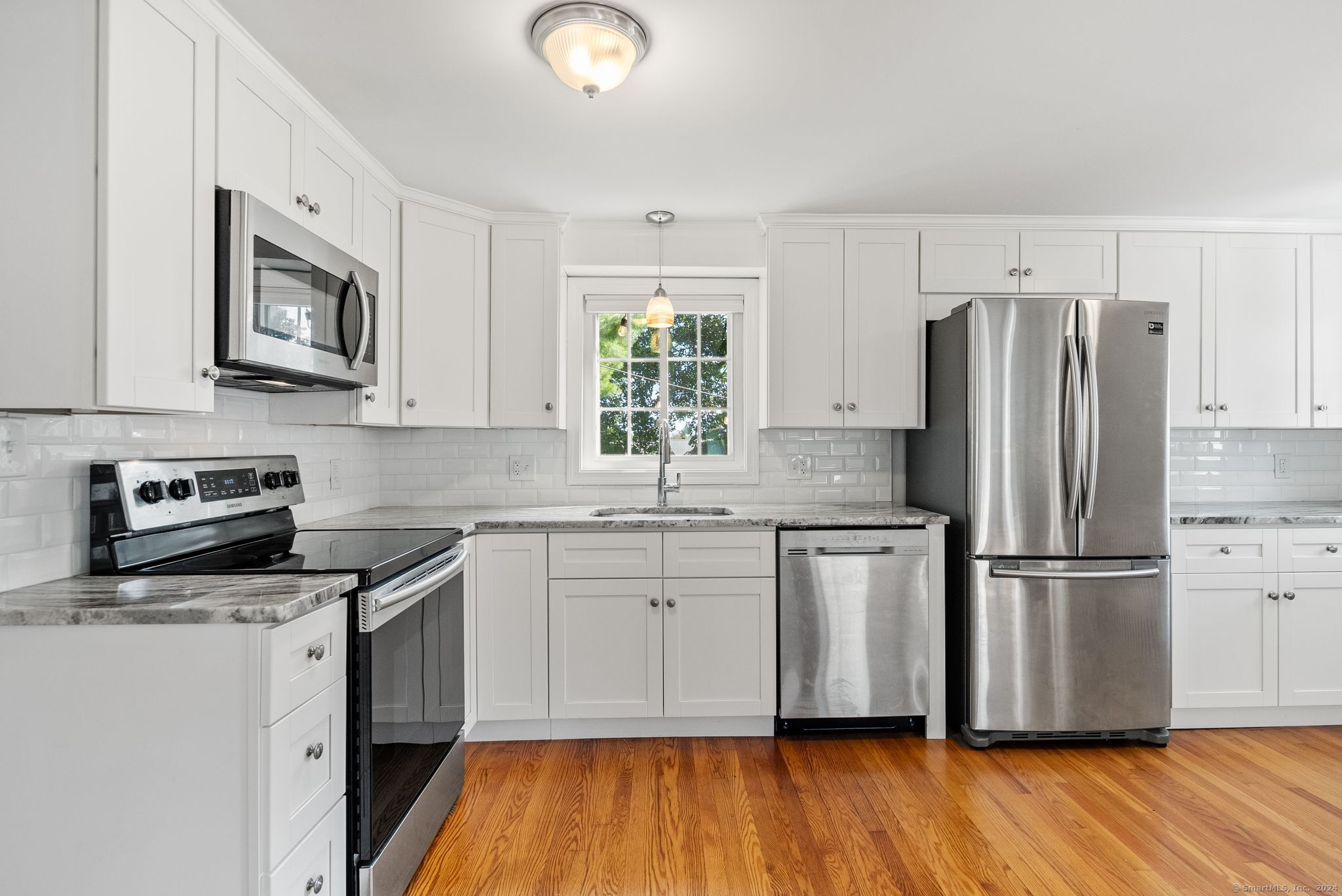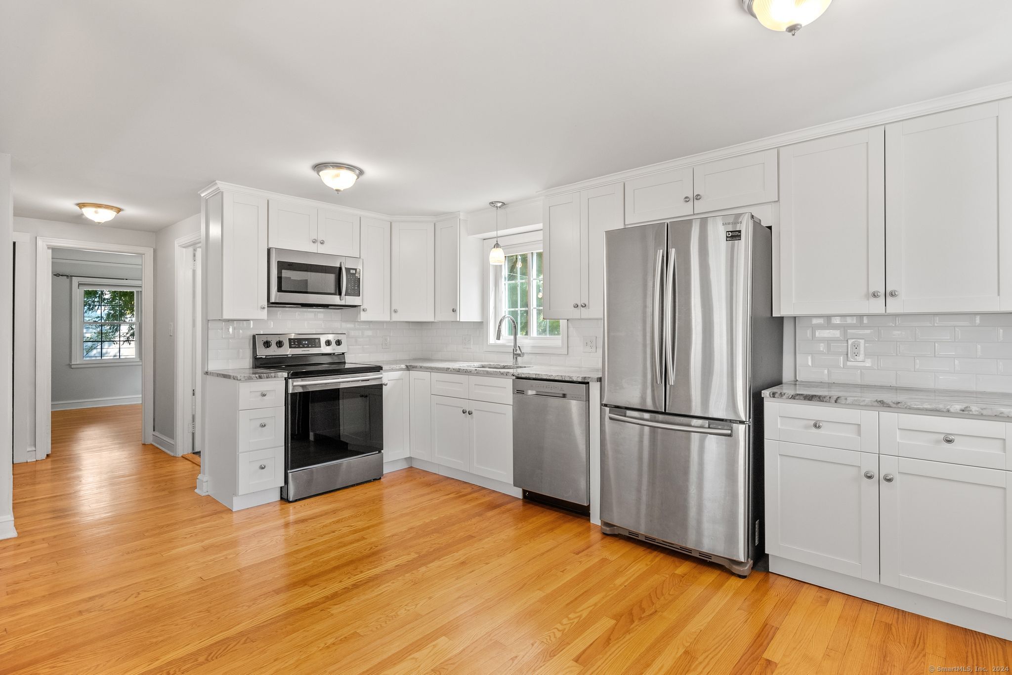 Move-in ready 4 bedroom, 2 bath rental available 11/1 in a great West Hartford neighborhood! The light and bright interior features an open floor plan with a beautifully renovated kitchen that includes granite counters, white cabinets and stainless steel appliances. There are hardwood floors throughout the first floor which includes 2 bedrooms and an updated full bathroom. Upstairs are 2 additional bedrooms with wood floors including a primary bedroom suite attached to a renovated full bathroom with a walk-in shower. There's a full basement with laundry and storage space and a 1-car attached garage. This location can't be beat, just 2 miles from West Hartford Center and Blue Back Square with easy access to I-84, WestFarms Mall and UConn Health Center campus. Credit and background check required, cats ok, small dogs considered, no smoking, no vaping. First month rent and one month security deposit required. Minimum credit score of 640 and renter's insurance required.