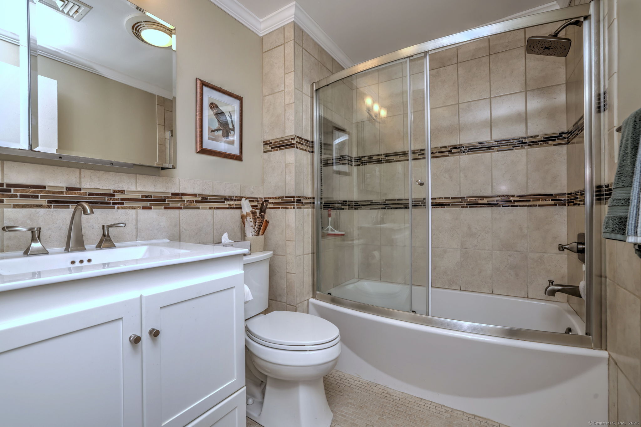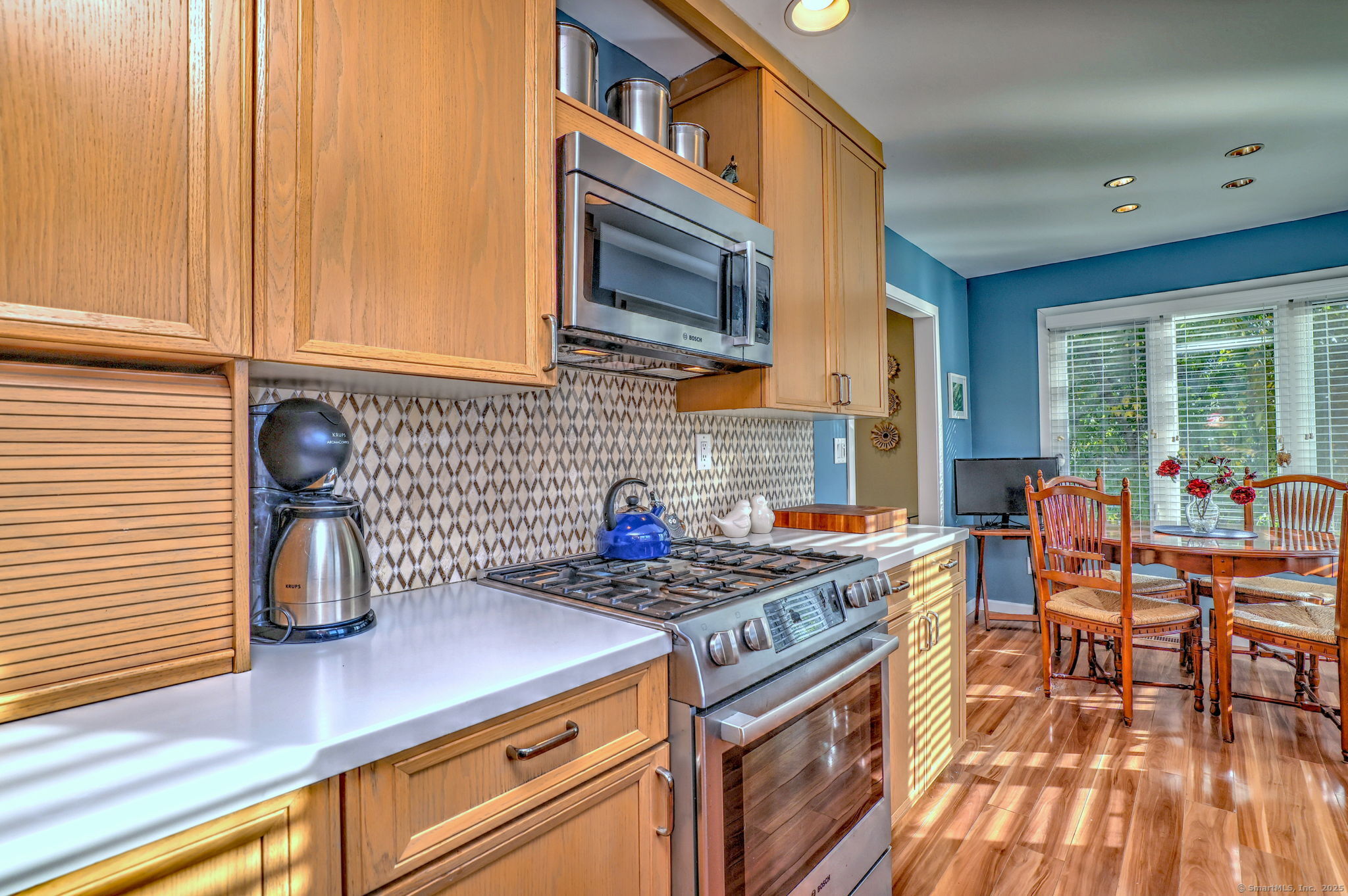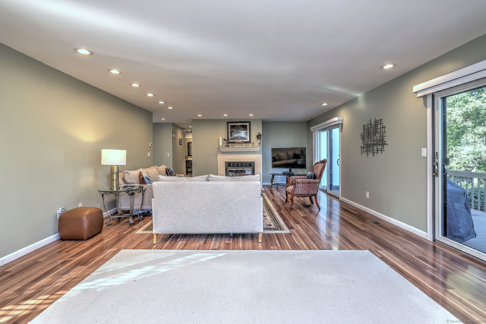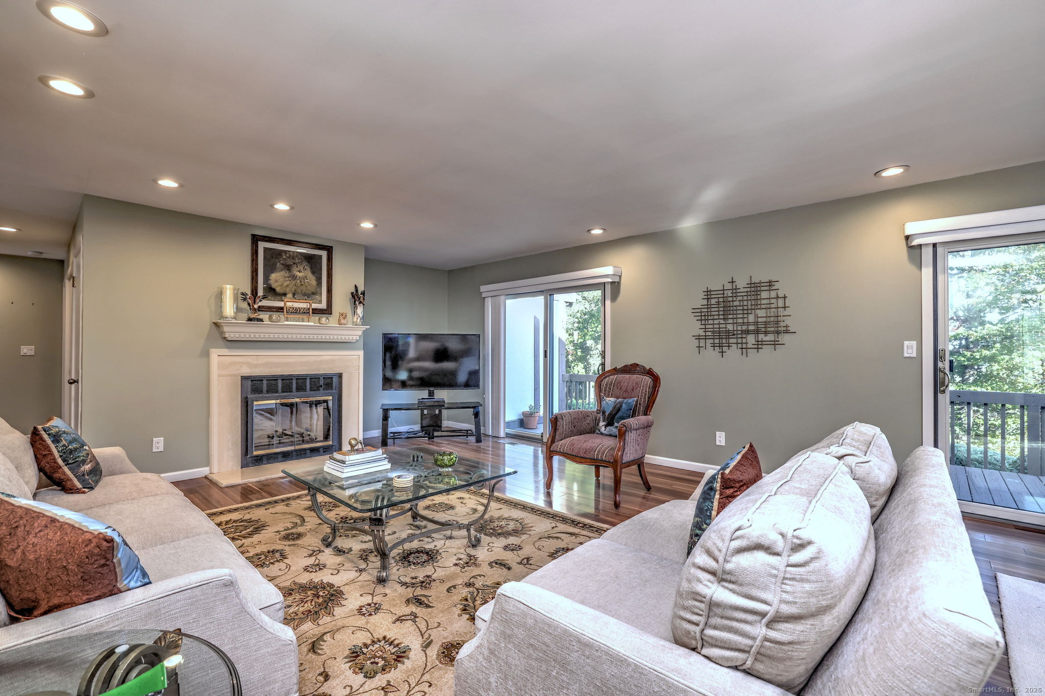 Welcome to Oronoque Forest Complex, sought after two-bedroom ranch style, "Prestwick " end unit, set on desirable corner lot with city views. Bright open layout with a spacious living room, cozy fireplace and dining room, perfect for relaxing or entertaining. A rare find in this style unit are the two sliding glass doors, in both the living room and dining area, both recently replaced which open to oversized deck creating seamless indoor-outdoor space. (Anderson doors) The updated kitchen features stainless steel appliances and ample cabinet & counter space. The primary bedroom suite has walk-in closet and updated en-suite bath. A flexible den or home office adds versatility for remote work or quiet retreat. Renovated guest bath completes the main level. The finished lower level includes spacious second bedroom with full bath ideal for guests or private suite. Attached two car garage and plenty of storage space. Newer furnace and central air installed, and new driveway in 2020, windows were all replaced on the main level and approx. 5 years. Complex has beautifully maintained parklike grounds, pool, tennis and pickle ball court, clubhouse, pond and ample guest parking. Next to Hopkins school, Yale university, local hospitals, local colleges. Don't miss the opportunity to own an end unit with a corner setting, and updated features.