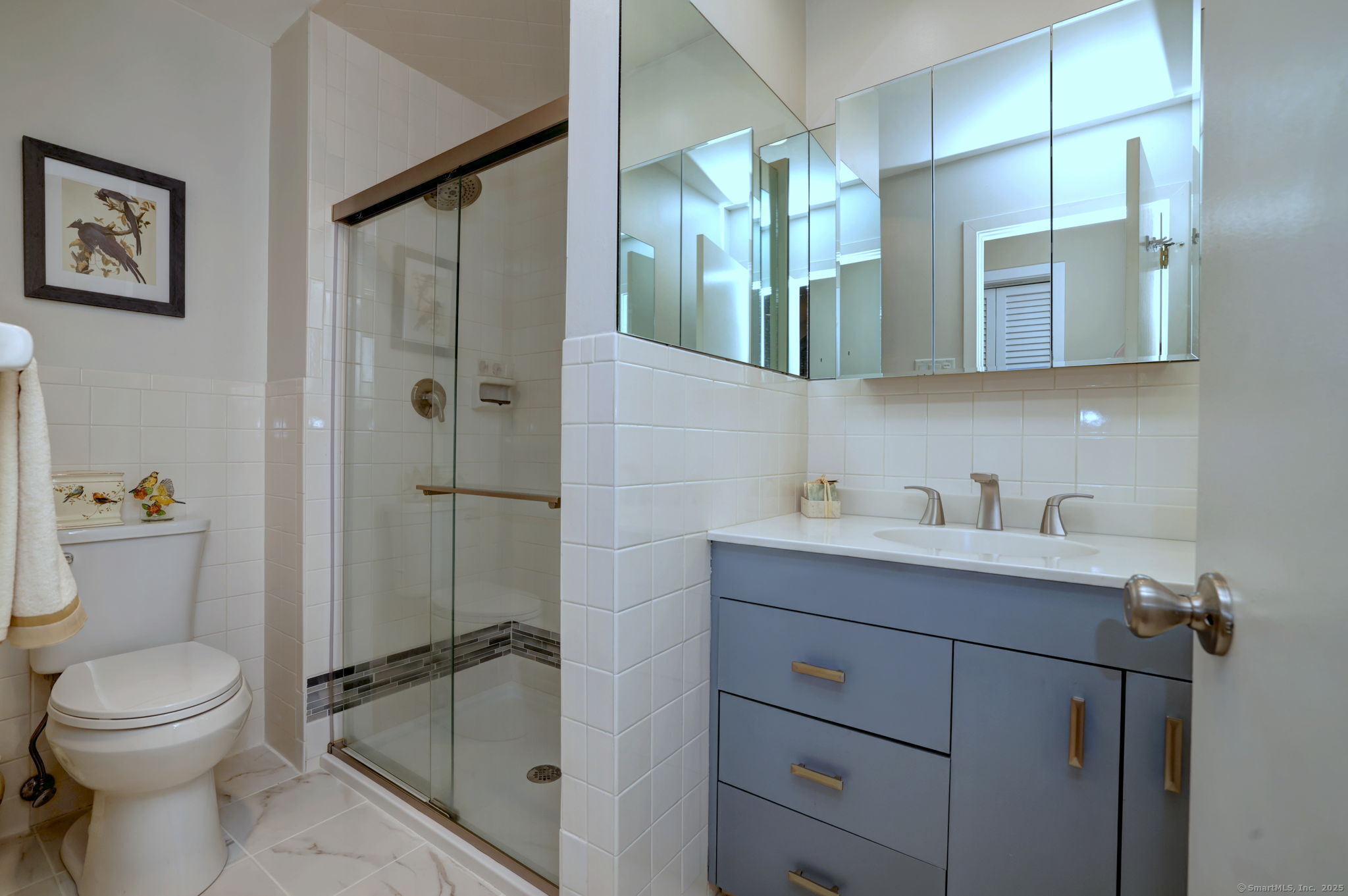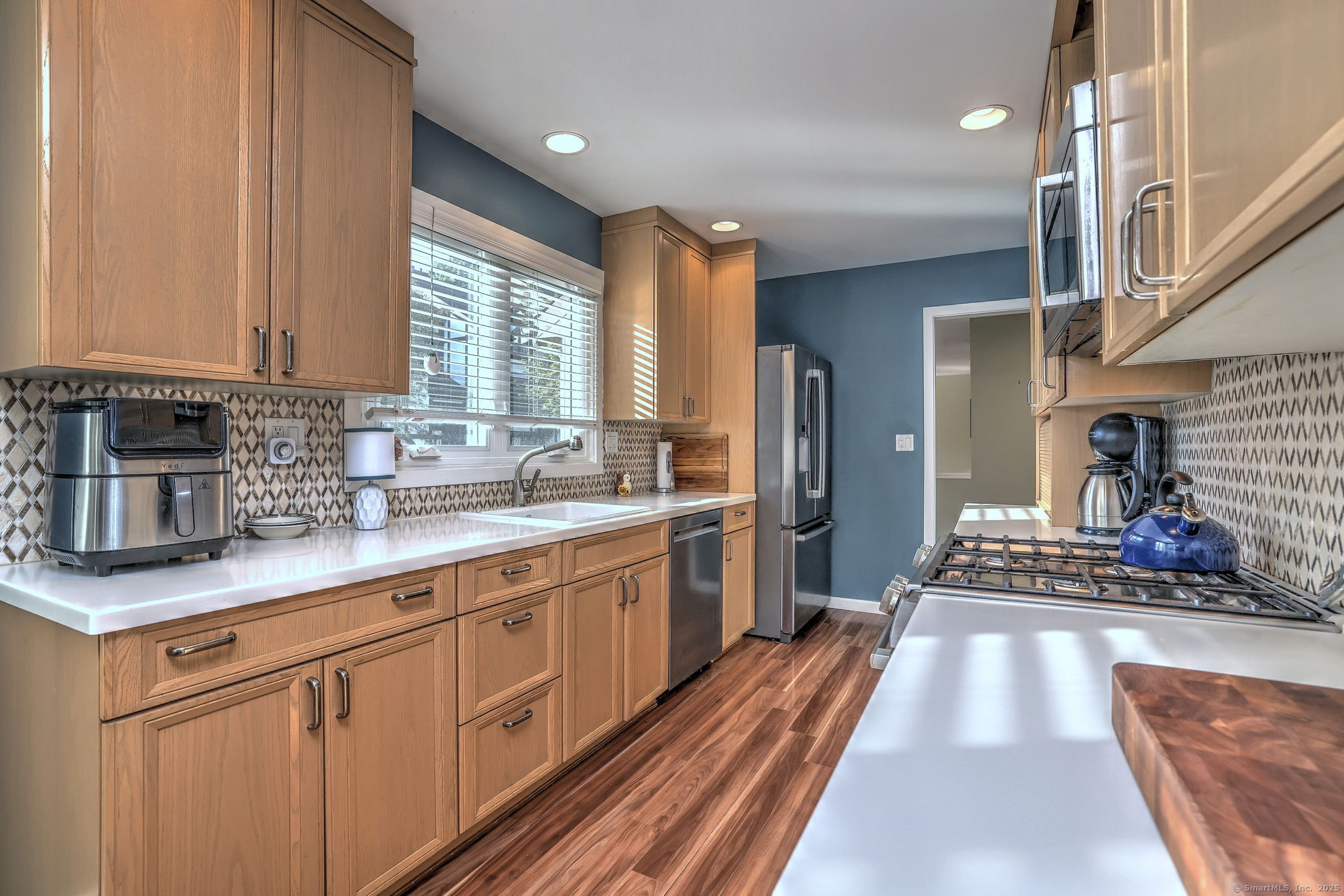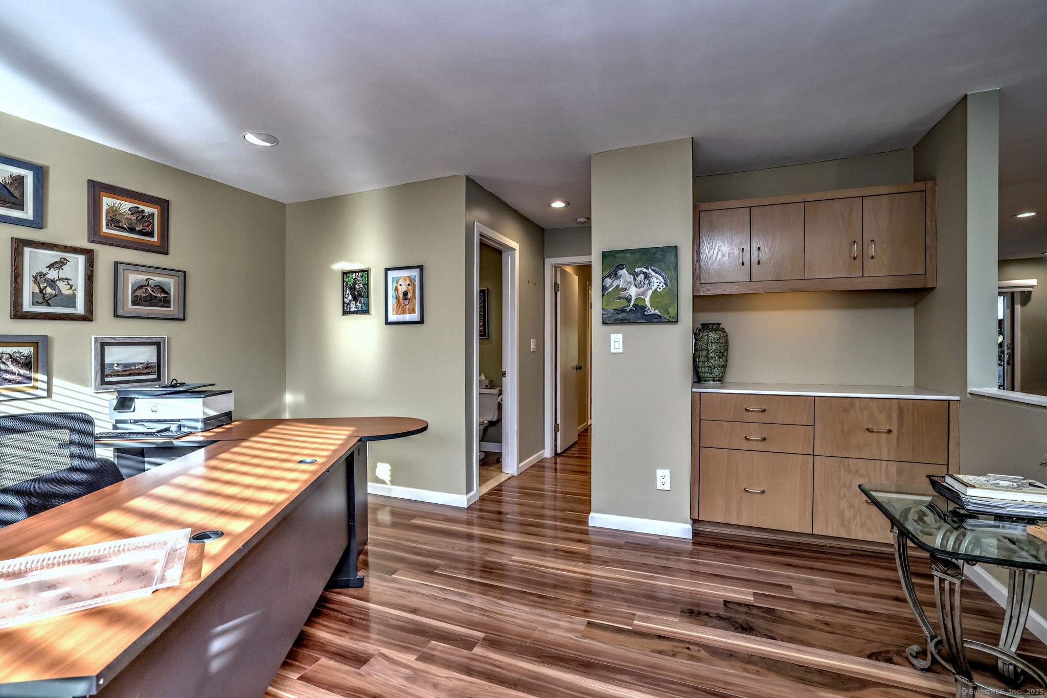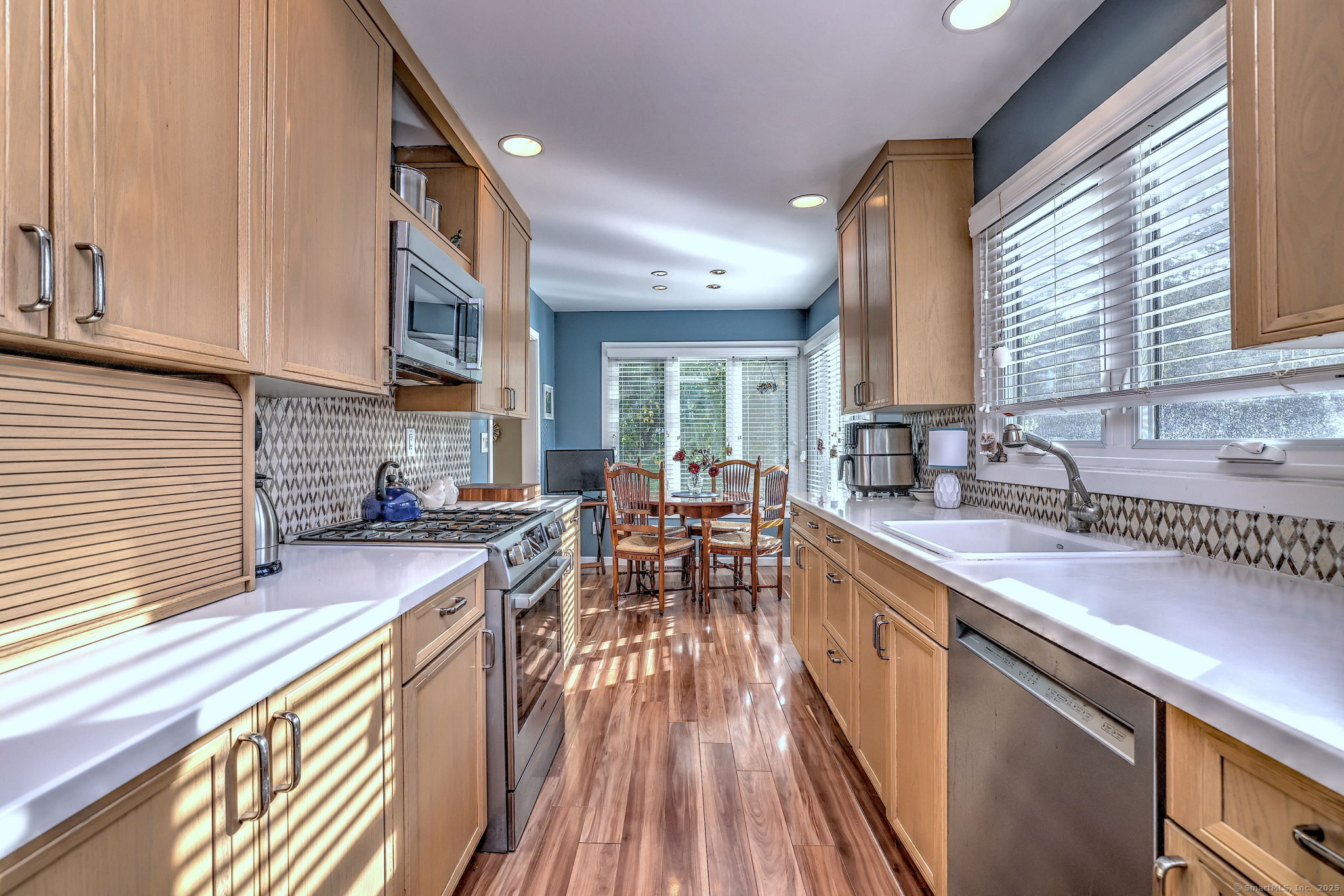 Welcome to Oronoque Forest Complex, sought after two-bedroom ranch style, "Prestwick " end unit, set on desirable corner lot with city views. Bright open layout with a spacious living room, cozy fireplace and dining room, perfect for relaxing or entertaining. A rare find in this style unit are the two sliding glass doors, in both the living room and dining area, both recently replaced which open to oversized deck creating seamless indoor-outdoor space. (Anderson doors) The updated kitchen features stainless steel appliances and ample cabinet & counter space. The primary bedroom suite has walk-in closet and updated en-suite bath. A flexible den or home office adds versatility for remote work or quiet retreat. Renovated guest bath completes the main level. The finished lower level includes spacious second bedroom with full bath ideal for guests or private suite. Attached two car garage and plenty of storage space. Newer furnace and central air installed, and new driveway in 2020, windows were all replaced on the main level and approx. 5 years. Complex has beautifully maintained parklike grounds, pool, tennis and pickle ball court, clubhouse, pond and ample guest parking. Next to Hopkins school, Yale university, local hospitals, local colleges. Don't miss the opportunity to own an end unit with a corner setting, and updated features.