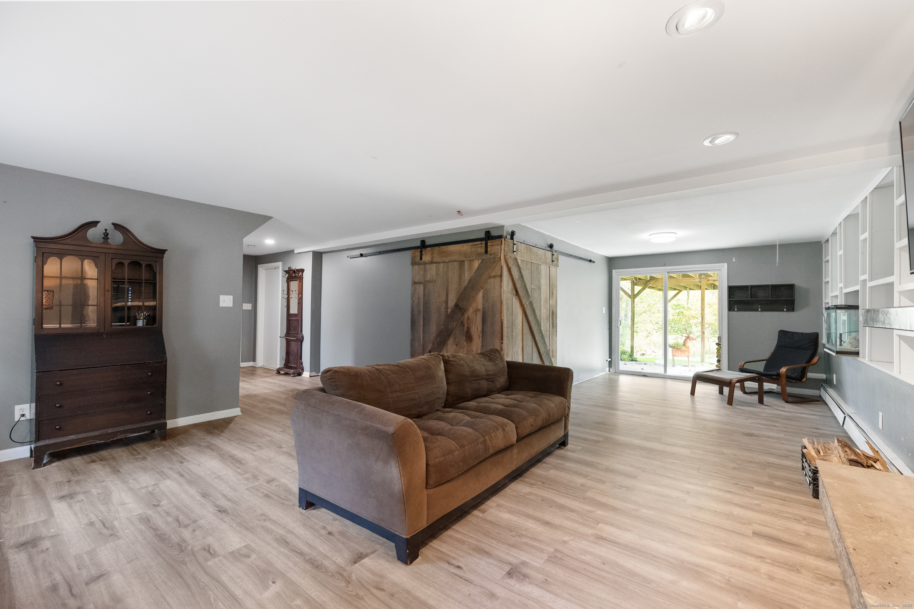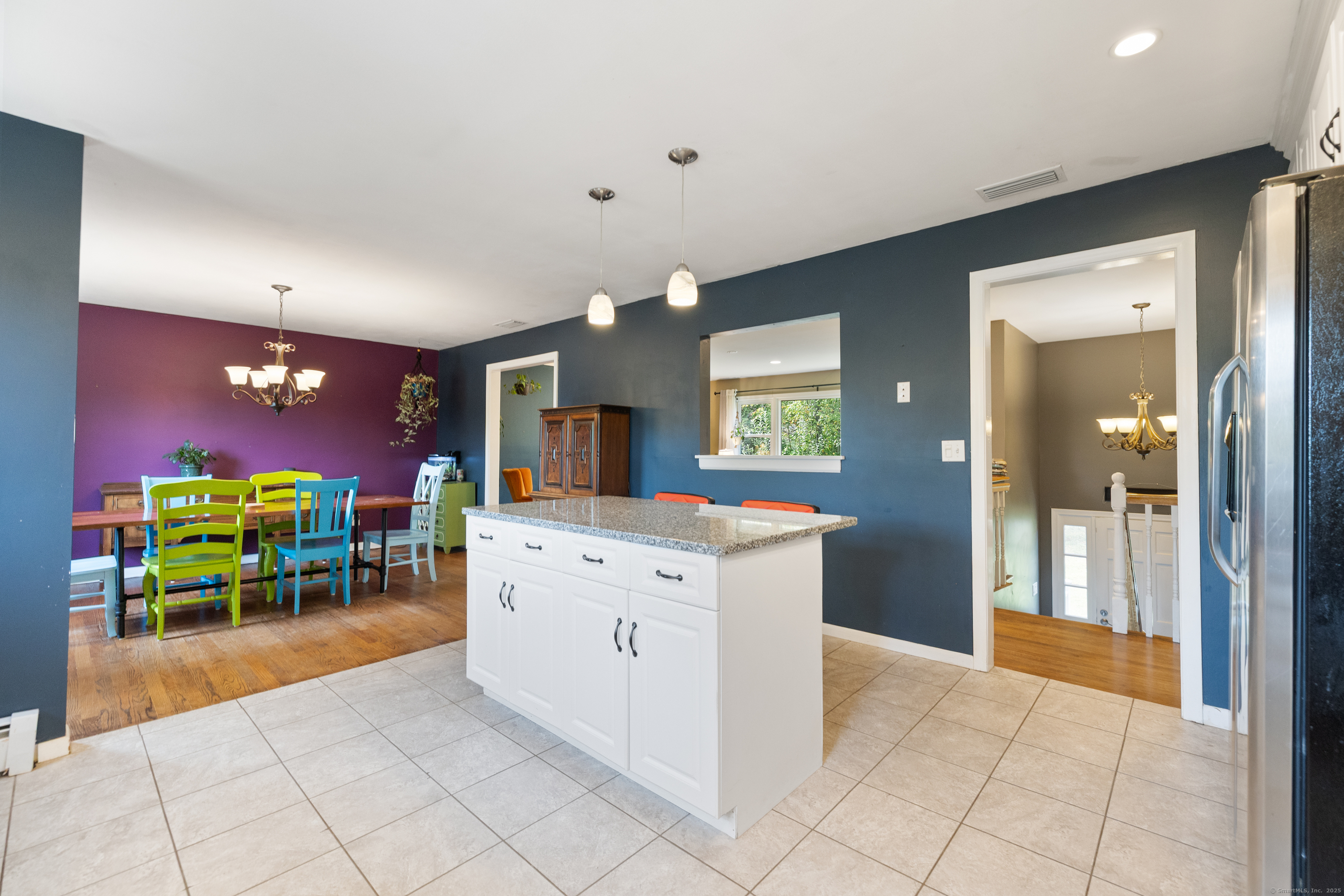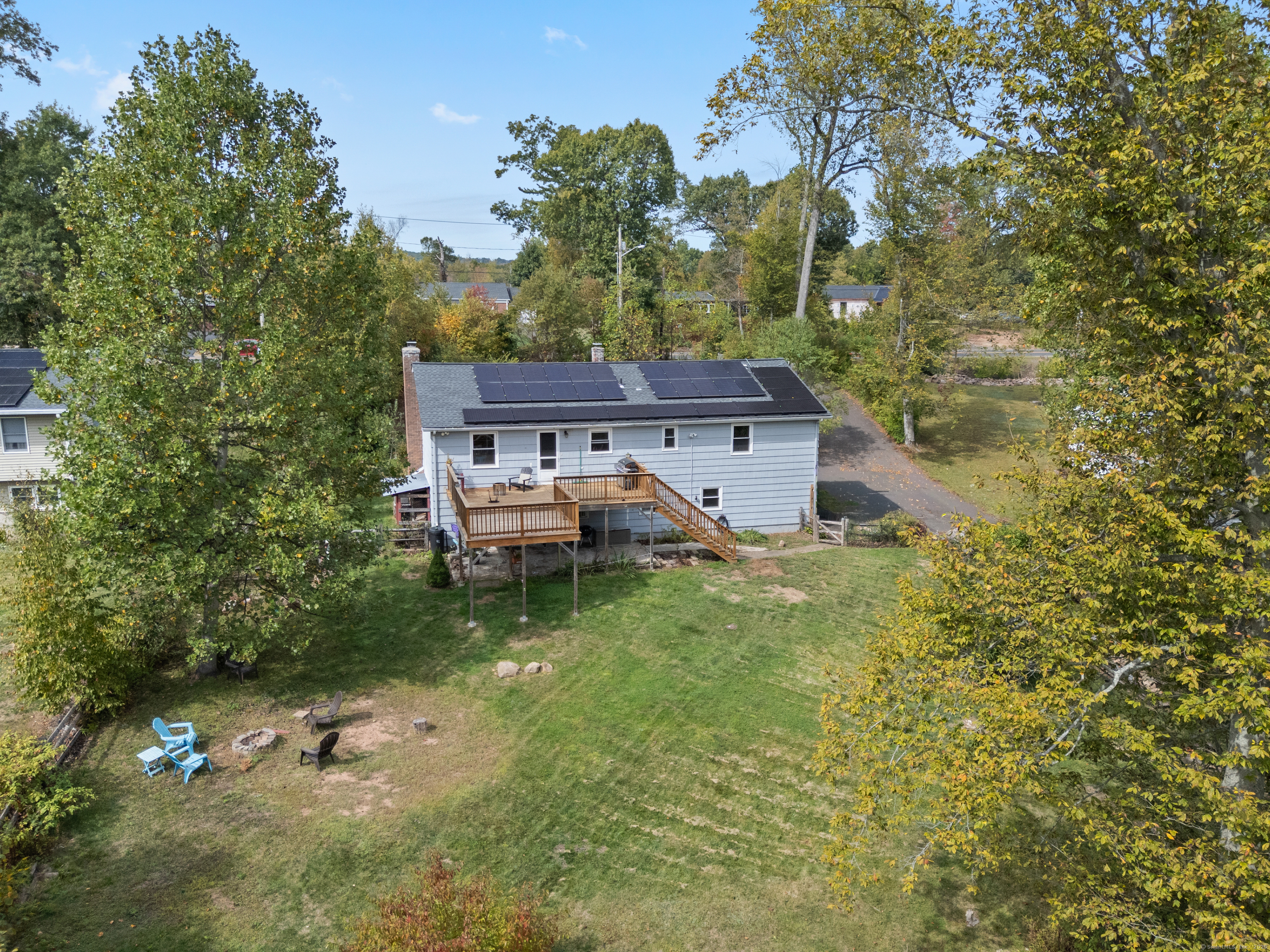 Low bills. Big style. Perfect location. Enjoy unbelievably low electric bills thanks to solar panels in this expansive 3-bedroom, 3-bath Raised Ranch, updated in 2015 with a newer roof, furnace, windows, beautifully refinished fireplace, and a stunning kitchen with granite counters, stainless steel appliances, and a center island. The open floor plan offers bright, spacious rooms with gleaming hardwood floors and a seamless flow to the large deck overlooking a tree-lined private backyard. The primary bedroom features its own en-suite bath, and the full walkout basement provides incredible flexibility-ideal for a family room, home gym, office, or additional living space with direct access to the outdoors. With an oversized 2-car garage, three modern baths, and a quiet neighborhood setting on two-thirds of an acre, this home combines comfort, style, and efficiency. Ideally located in Hamden's sought-after North End within the West Woods Elementary School district, with a view of Sleeping Giant.