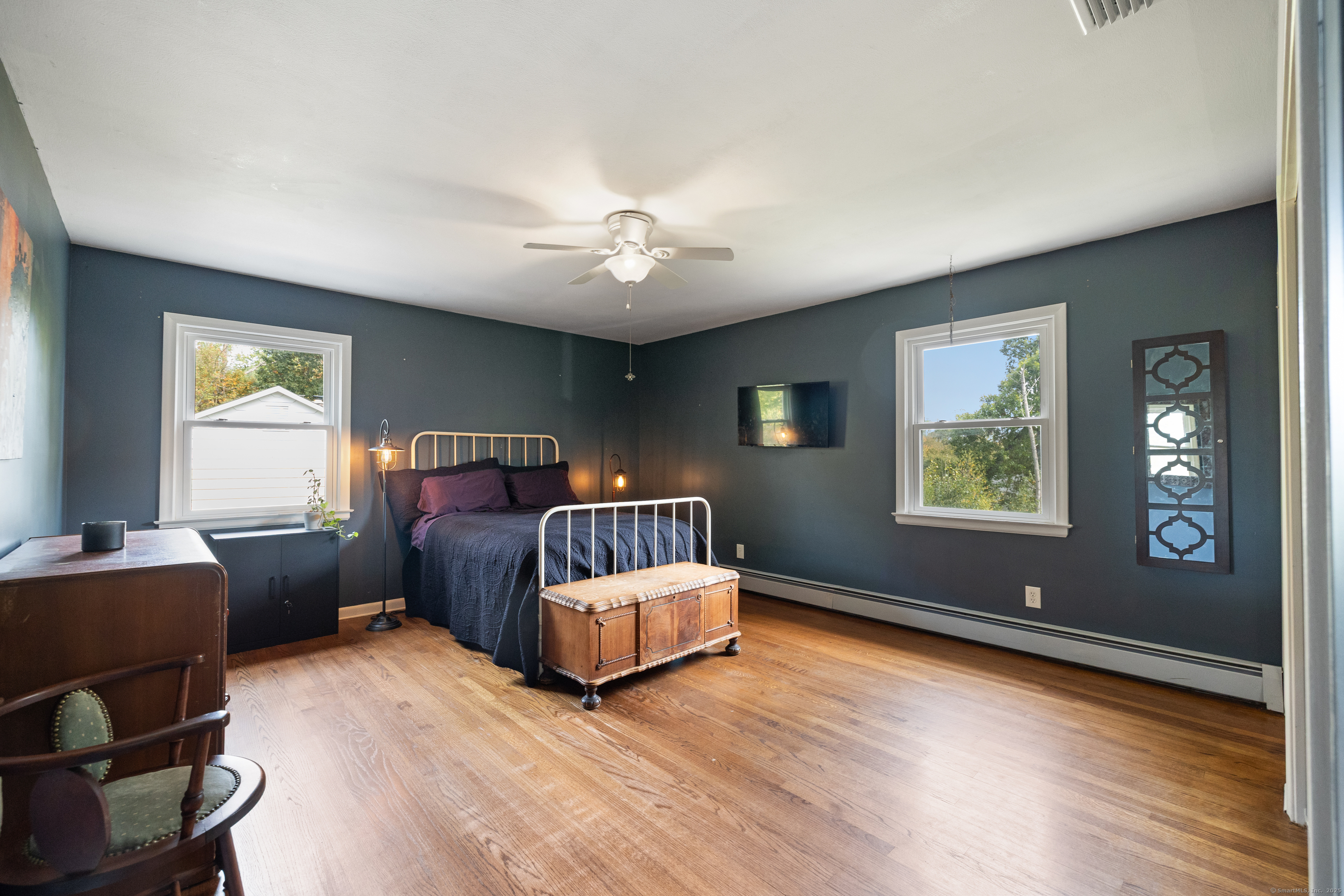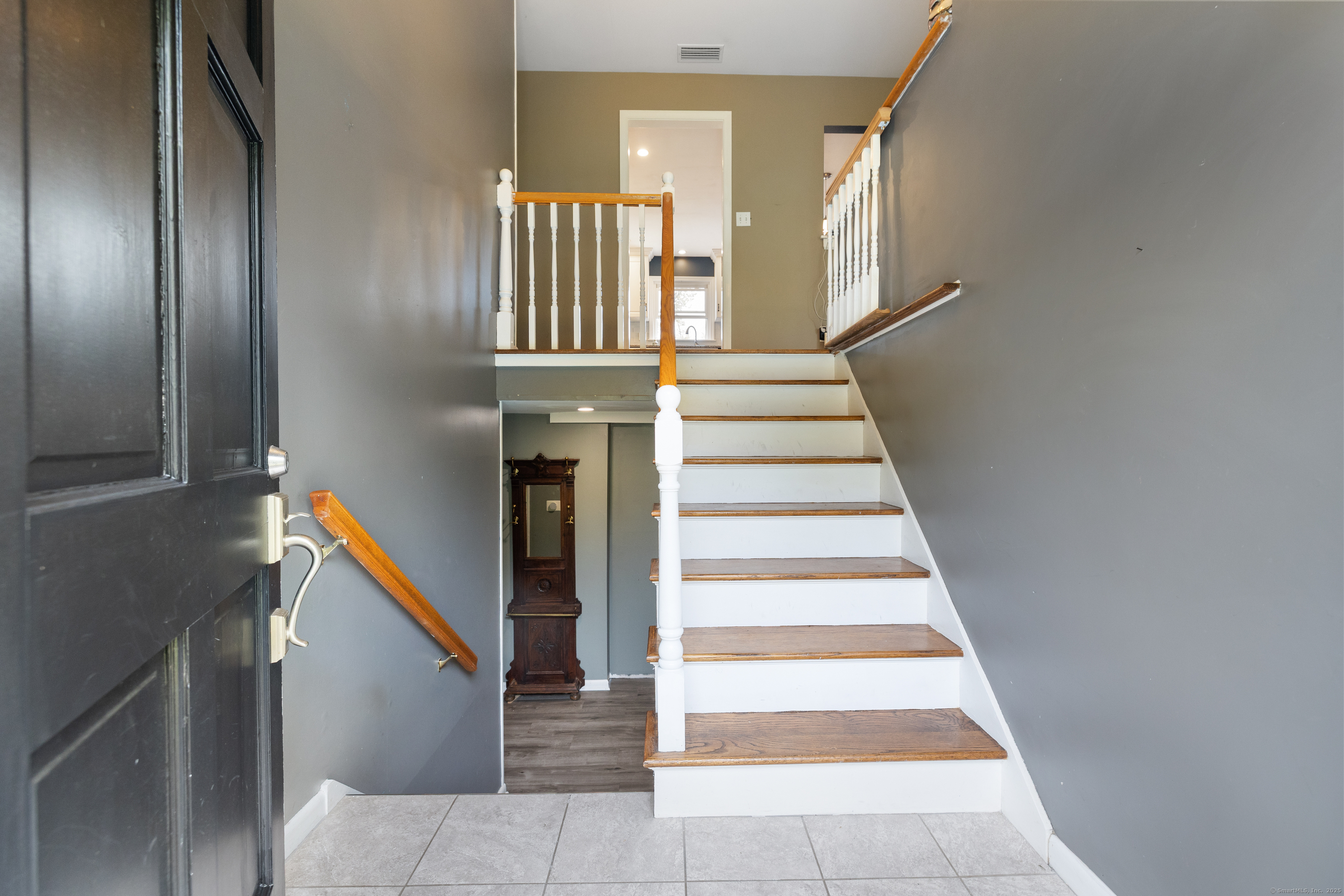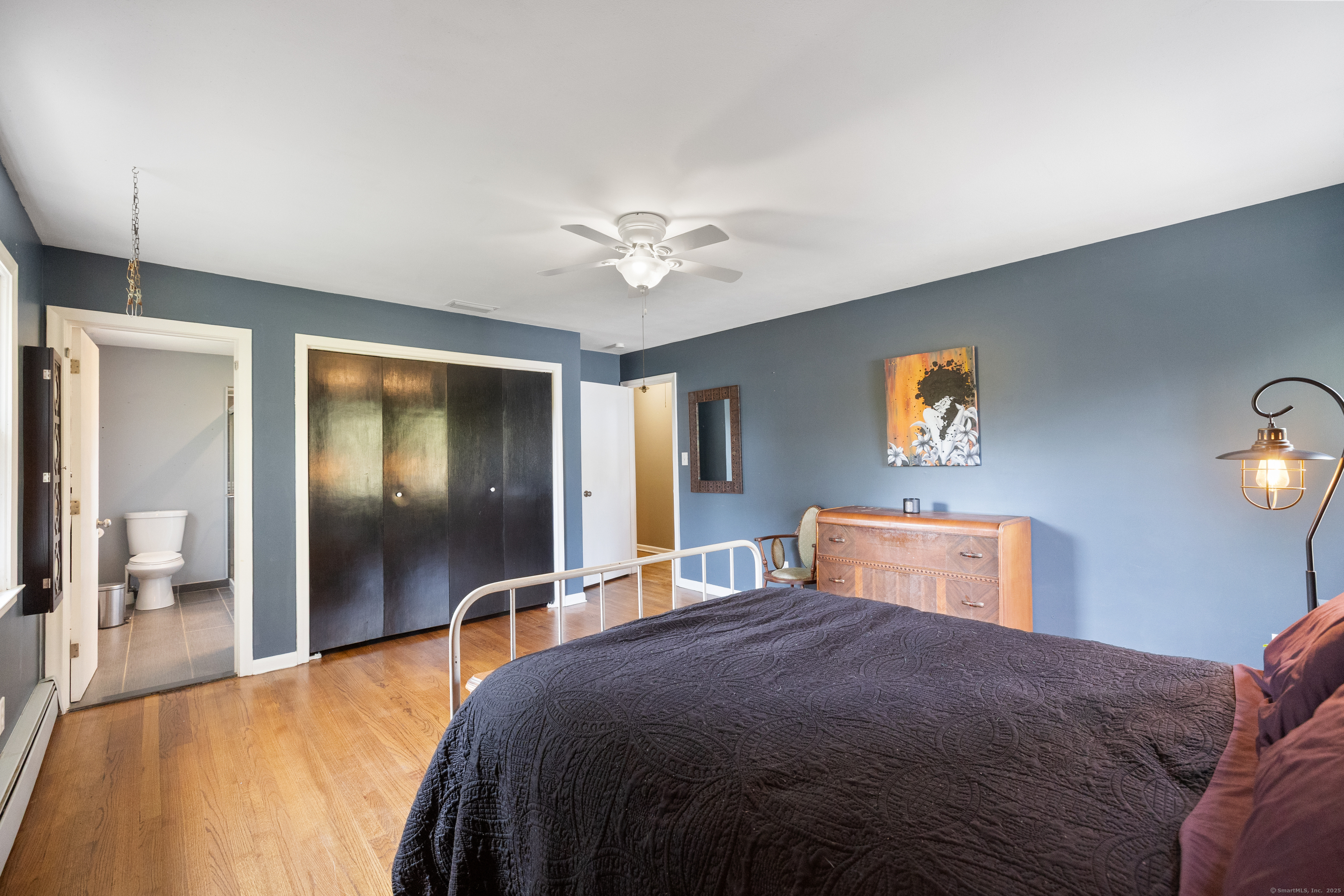 Low bills. Big style. Perfect location. Enjoy unbelievably low electric bills thanks to solar panels in this expansive 3-bedroom, 3-bath Raised Ranch, updated in 2015 with a newer roof, furnace, windows, beautifully refinished fireplace, and a stunning kitchen with granite counters, stainless steel appliances, and a center island. The open floor plan offers bright, spacious rooms with gleaming hardwood floors and a seamless flow to the large deck overlooking a tree-lined private backyard. The primary bedroom features its own en-suite bath, and the full walkout basement provides incredible flexibility-ideal for a family room, home gym, office, or additional living space with direct access to the outdoors. With an oversized 2-car garage, three modern baths, and a quiet neighborhood setting on two-thirds of an acre, this home combines comfort, style, and efficiency. Ideally located in Hamden's sought-after North End within the West Woods Elementary School district, with a view of Sleeping Giant.