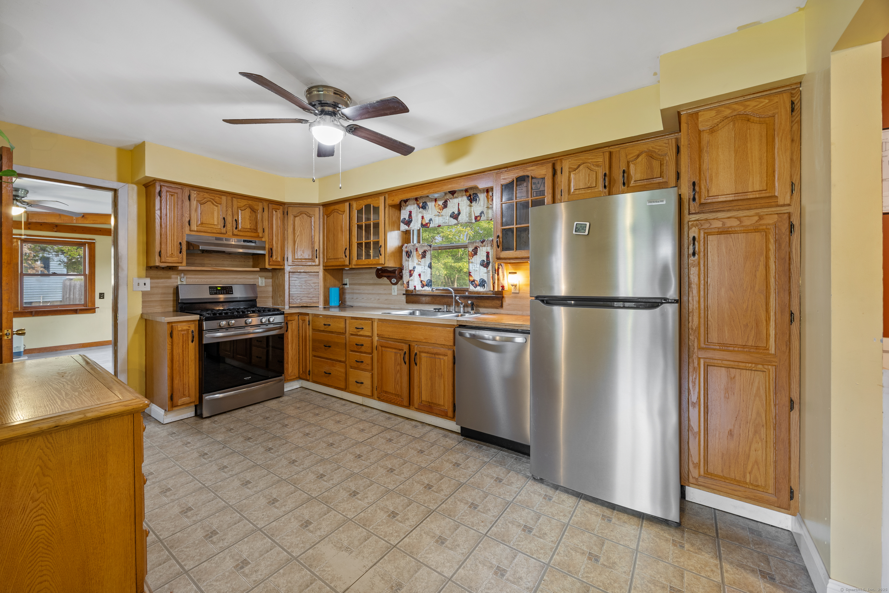 Welcome to the Ridges! This spacious ranch offers 4 bedrooms and 2 full baths, including a private en-suite in the primary bedroom. The home features hardwood floors throughout, central air, and forced hot air heating for year-round comfort. The kitchen is equipped with stainless steel appliances and opens to a large bonus room that provides great flexibility for a family room, den, or play space. The large fenced in back yard lends plenty of space to the property which combines comfortable living space with practical updates, making it a solid option for buyers looking for value and versatility. Enjoy everything Wallingford has to offer including Wallingford electric!