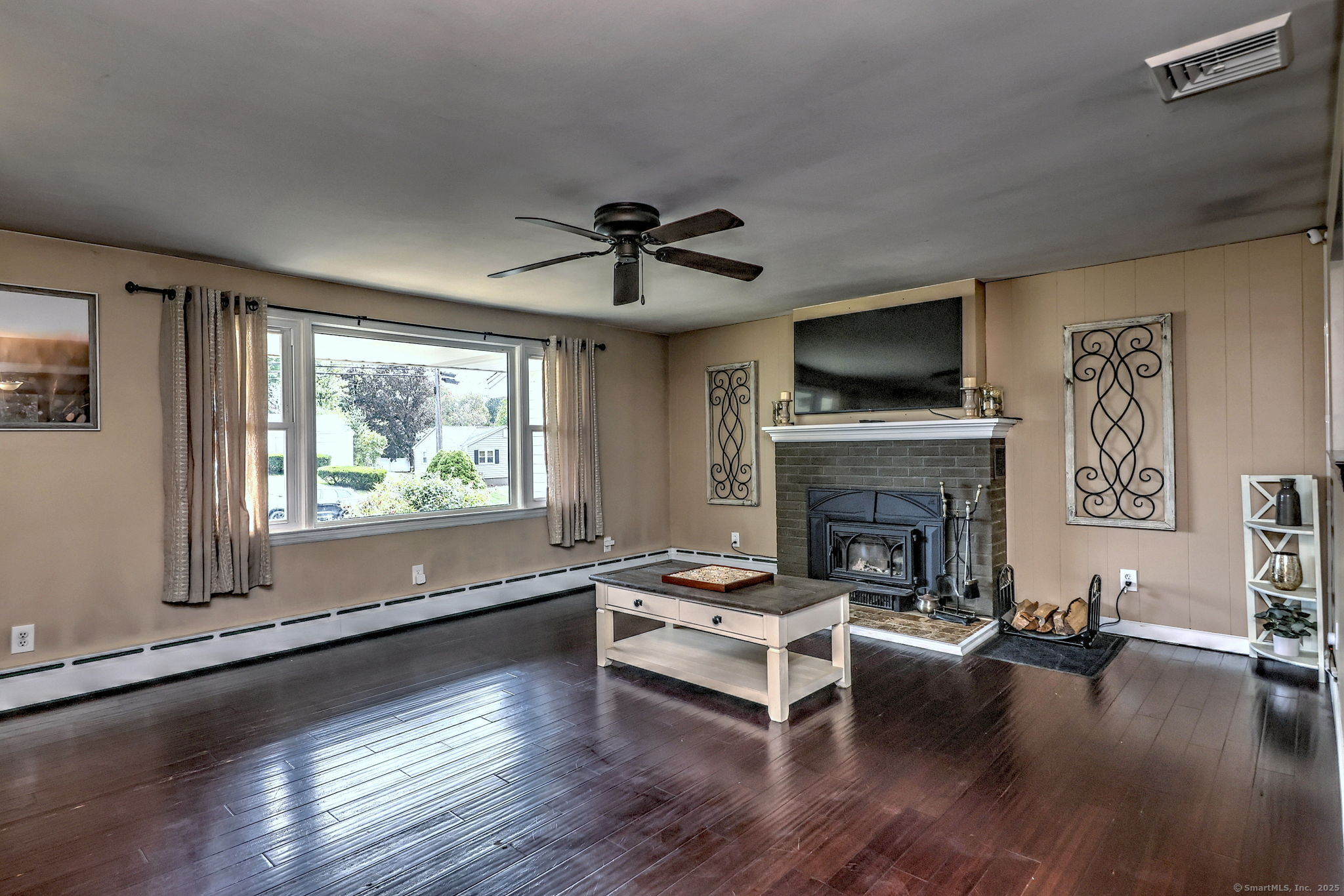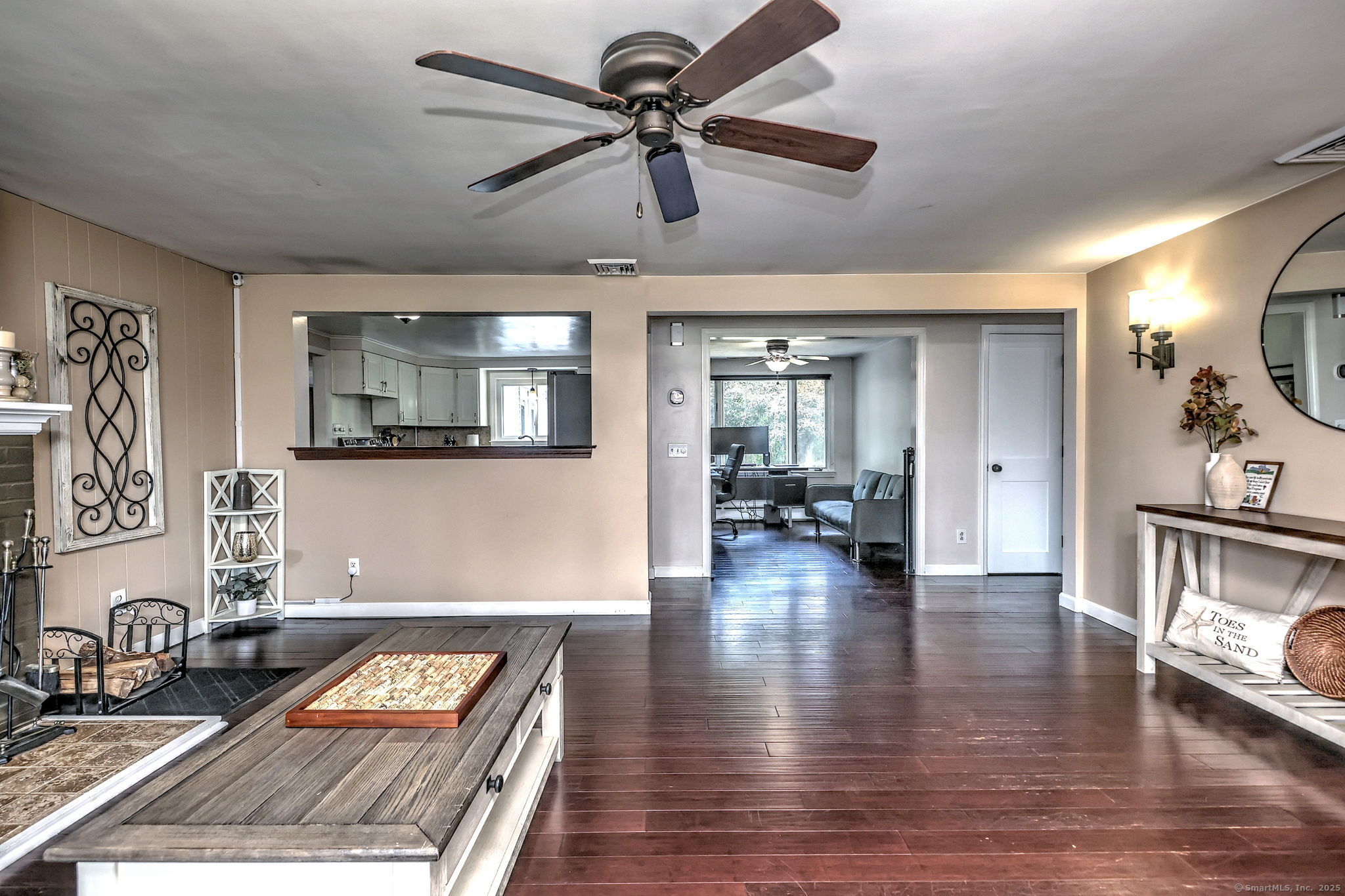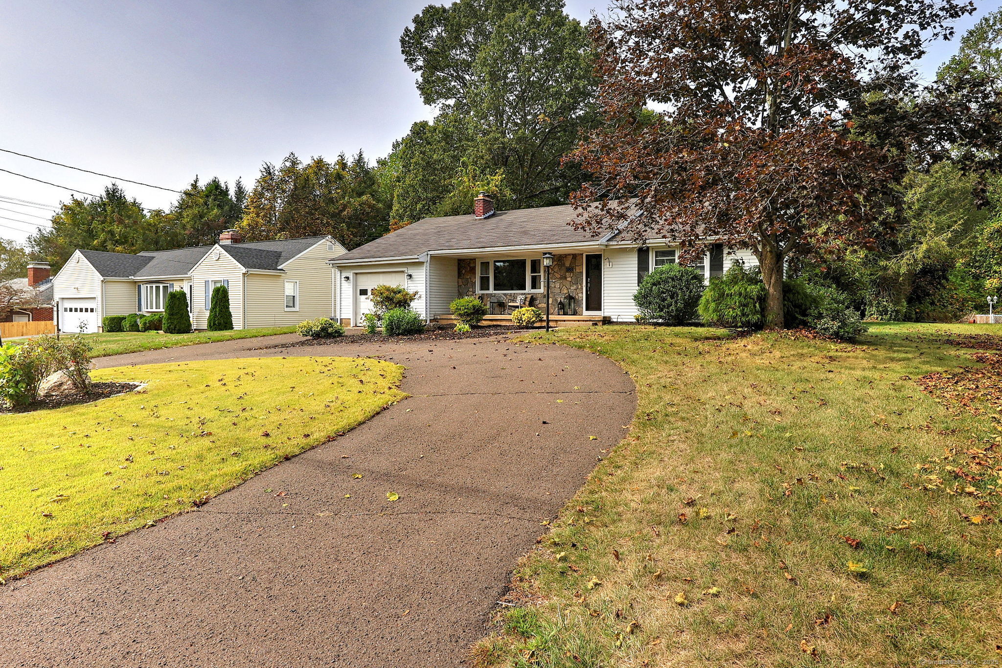 Meticulous!! Move in in ready 2 bedroom, 1 bath 1600 sqft ranch style homestyle home. Lovely curb appeal with circular driveway and center island with plantings in quiet established neighborhood. This home boasts open floor plan, large living room with ceiling fan, wood flooring and wood burning fireplace. Open floor plan with eat in kitchen. There is a large family room, dining room combination with French doors leading to rear composite decking with large level yard. Home also has conversation seating area and fire pit for those upcoming fall nights. There are 2 generous sized bedrooms and separate office space. Don't miss your opportunity to view this lovely home.