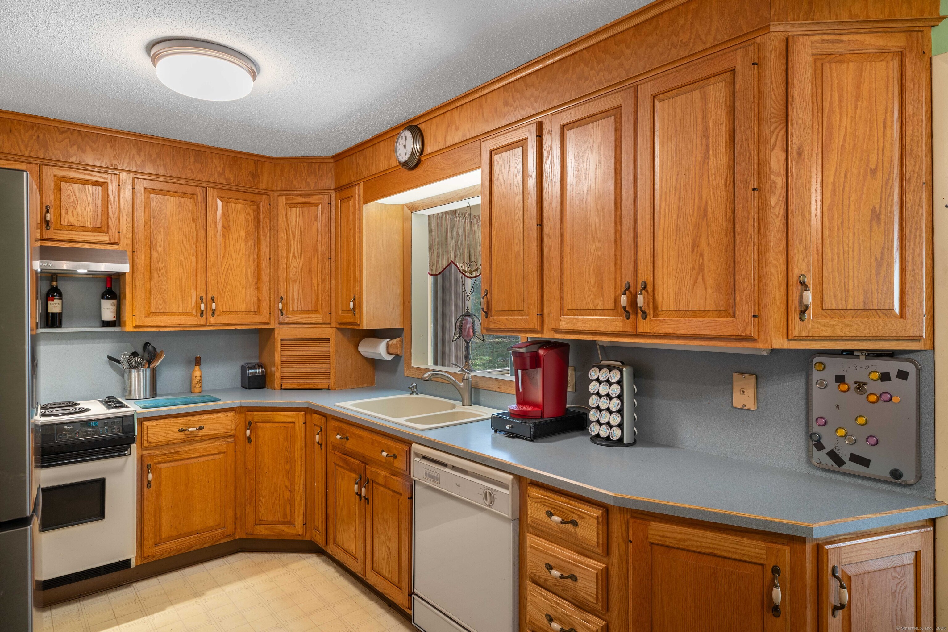 Charming 3-bedroom, 1.5-bath ranch nestled among mature trees in the Ethel Acres neighborhood. The backyard is truly unique, featuring a dramatic stone ledge that provides natural privacy (who needs a fence when you have a rock face?) along with a large back deck to enjoy the outdoors. Inside, a spacious bonus space off the dining area is filled with natural light, perfect for relaxing or extra entertaining space. The cozy wood stove in the living room can off-set heat costs this winter and the kitchen is roomy and centrally located. While the home does need some TLC, including an older roof, it's easy to see the lasting charm this home and its setting have to offer.